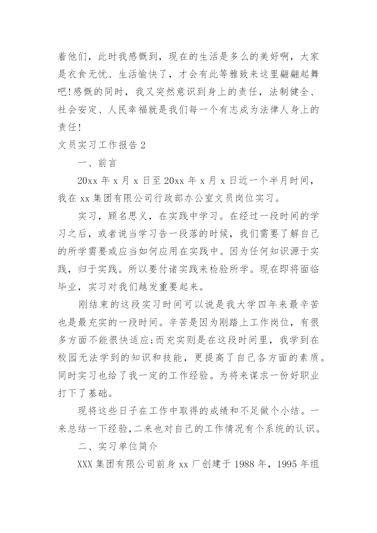 文员实习工作报告文员实习工作报告在我们平凡的日常里,接触并使用报告的人越来越多,我们在写报告的时候要避免篇幅过长。一起来参考报告是怎么写的吧,下面是小编整理的文员实习工作报告,希望对大家有所帮助。文员实习工作报告1为期十二周的实习即将结束了,从这次实习中,我学会了很多东西,它们不仅包括我法律专业课的运用与提高,同时,还包括着我为人处事的经验与成熟,更多的,还有我对社会、对生活的观察与感悟……学业在这次的实习中,我共在老师的指导下完成了完整的六个案件(即从接案到审查做审查报告,到提审被告人,到进行起诉,最后参加法庭审理都由我经手),配合老师接触了大概八到九个案件的部分过程,协助老师整理装订了20xx—20xx年的所有案卷,进行核对与编排。在接触每个案件的过程中,我都或多或少的学到了一些法律知识,对于自己以前没有在书本中学到的东西,我也都认真的向老师请教,了解了很多在书本上无法接触到的实际案例,总结和理解了很多实践经验,这些,对于我以后无论是继续学习还是参加工作都有很大的帮助。生活这个暑假不同于从前。自从上了大学后,我们就摆脱了寒暑假作业的困扰,也使得我们的每个假期真的成为了完全休息放松的日子。大学前三年经历过的假期,除了偶尔有短期的社会时间外,其余时间我们都在玩、在闹、在睡觉。可是这个假期不同了,我们如同每个朝九晚五的上班族一样,每天要早起,要挤车,要早早赶到办公室打扫卫生,要踏踏实实的完成自己的工作,要按时上下班,不得迟到、不得早退,有时回到家还要思考,白天的工作中有一个问题解决不了,晚上要早早的上床,免得第二天起不来……就是这样,我们的生活丰富又有些机械,充实又略嫌忙碌,规律又稍显枯燥。现在这样有规律的生活固然是好的,它使得我们有了规范的作息时间,有了对于生活习惯的合理养成,有了对于日常生活的合理安排。所以,这也是实习带给我们的。思考实习使我养成了思考的习惯。以前无论做什么事,无论是学习还是生活,我总是有过去就过去了的习惯,不喜欢想的太多,还自认为这是洒脱的新新人类所应有的处世方式。然而,三个月的实习生活教会了我思考是作为现代人、作为有感知能力的人所必须具备的。过去了的事情什么是好的,什么是坏的;一件事情哪方面是利的,哪方面是弊的;今后怎么做是对的,怎么做是错的?在实习中我了解到,我应该学会的两种思考,一种是反思,一种是计划。反思,使得我可以在日后遇同类问题时,趋其利、避其害;计划,使得我的行动都是有目的性和规划性的.,不会盲目而为之。这是我在以后的学习生活中所必须注意和刻意培养的。感悟一些案件中,被告人因为不懂法律而犯罪,他们充满着无奈;一些案件中,司法机关的工作人员因为证据不足而无法给重大嫌疑人定罪,他们充满着无奈;一些案件中,被害人家属因不懂法律说理无门,他们充满着无奈……在我们目前的国家中,社会主义的法制还没有真正完善,在很多领域还存在着这样或那样的缺陷,因而给法律事件的参与人造成着不同方面的遗憾。如何完善我们的法律,将我们的法律向怎么样方向构建,这是一代又一代法律人永远怀揣着的问题。我,将成为不久后主导法制建设的这代法律人之中的一员,我应当做点什么,我可以做点什么呢?有一天下班比较早,我决定晚上尽尽女儿的孝心,陪爸爸妈妈去散步。在一个大型超市门前的空地上,眼前的景象使得我心潮澎湃。那是一群中年以上的人们,在和着音乐跳着整齐的集体舞,他们不是专门组建的娱乐队伍,也不是受过什么专业训练的业内人士,只是一些晚饭后将此作为锻炼的人们。他们的舞姿并不那么优美,步调也不是多么的一致,可是他们身上却散发着我无法抵挡的吸引力,我久久的注视着他们,此时我感慨到,现在的生活是多么的美好啊,大家是衣食无忧、生活愉快了,才会有此等雅致来这里翩翩起舞吧!感慨的同时,我又突然意识到身上的责任,法制健全、社会安定、人民幸福就是我们每一个有志成为法律人身上的责任!文员实习工作报告2一、前言20xx年x月x日至20xx年x月x日近一个半月时间,我在xx集团有限公司行政部办公室文员岗位实习。实习,顾名思义,在实践中学习。在经过一段时间的学习之后,或者说当学习告一段落的时候,我们需要了解自己的所学需要或应当如何应用在实践中。因为任何知识源于实践,归于实践。所以要付诸实践来检验所学。现在即将面临毕业,实习对我们越发重要起来。刚结束的这段实习时间可以说是我大学四年来最辛苦也是最充实的一段时间。辛苦是因为刚踏上工作岗位,有很多方面不能很快适应;而充实则是在这段时间里,我学到在校园无法学到的知识和技能,更提高了自己各方面的素质。同时实习也给了我一定的工作经验。为将来谋求一份好职业打下了基础。现将这些日子在工作中取得的成绩和不足做个小结。一来总结一下经验,二来也对自己的工作情况有个系统的认识。二、实习单位简介XXX集团有限公司前身xx厂创建于1988年,19