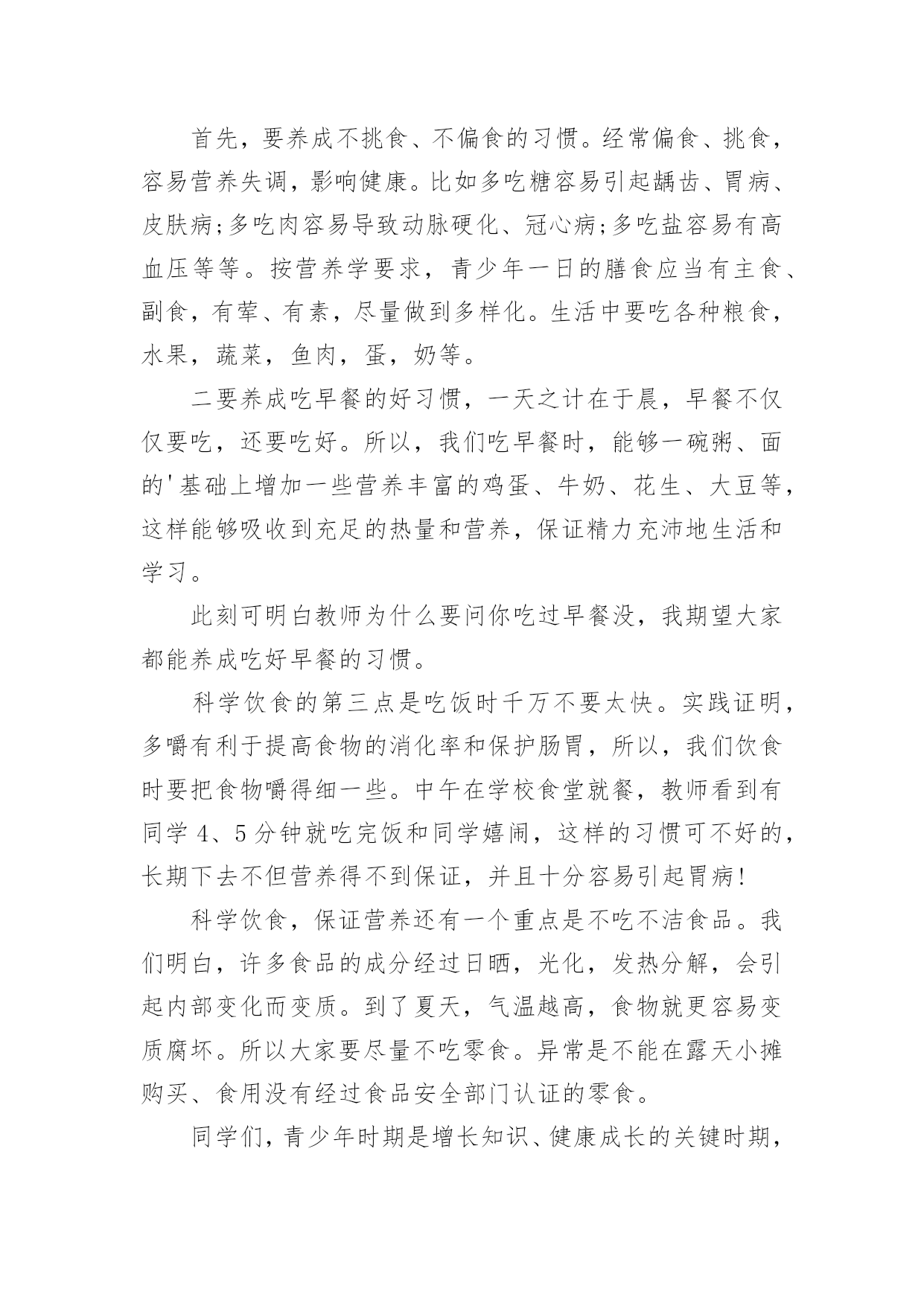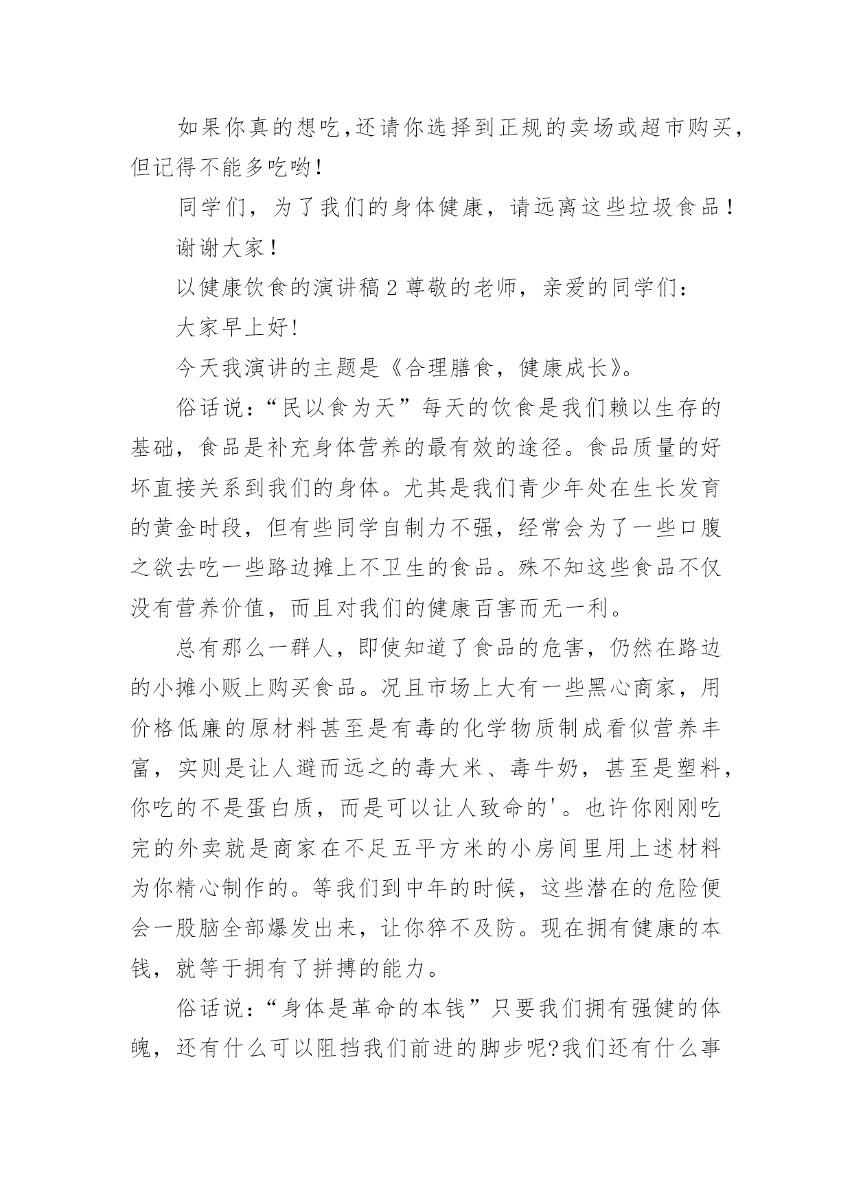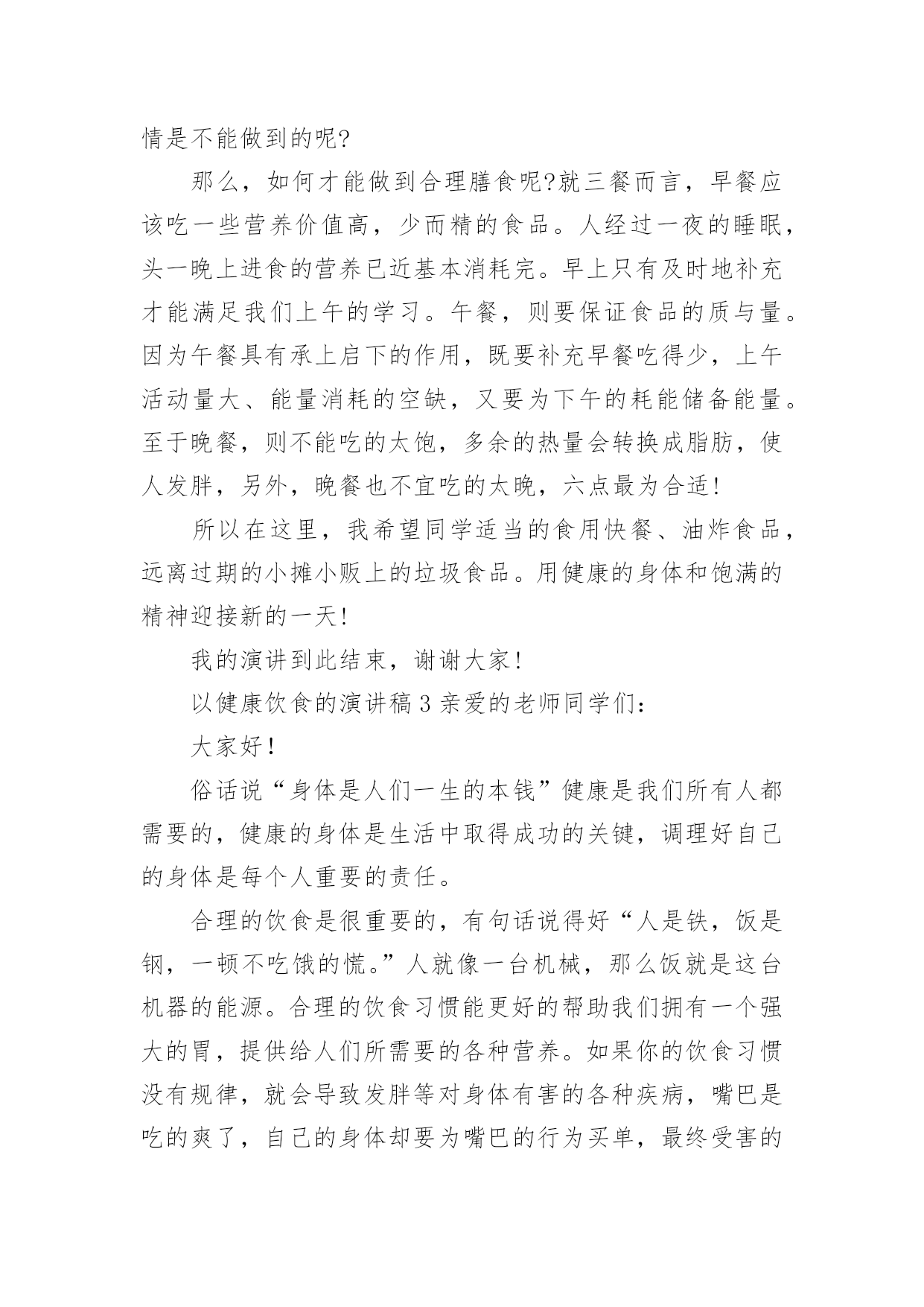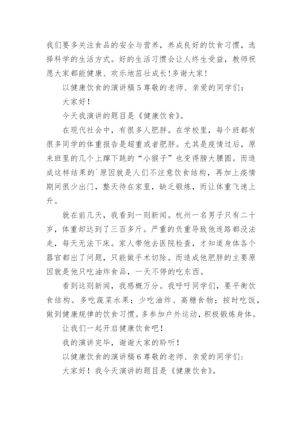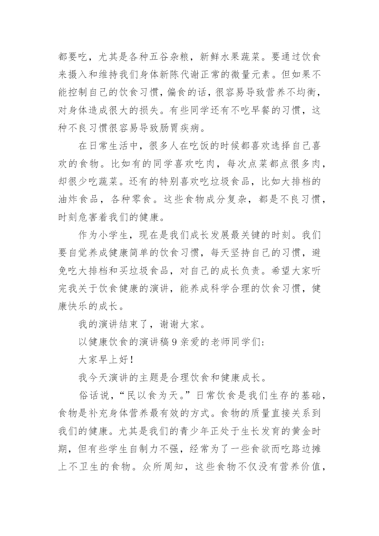 以健康饮食的演讲稿以健康饮食的演讲稿(精选13篇)演讲稿可以提高演讲人的自信心,有助发言人更好地展现自己。在社会一步步向前发展的今天,我们可以使用演讲稿的机会越来越多,你知道演讲稿怎样才能写的好吗?下面是小编收集整理的以健康饮食的演讲稿(精选13篇),希望能够帮助到大家。以健康饮食的演讲稿1尊敬的老师、亲爱的同学们:大家上午好!近期,我在放学的时候,经常发现很多同学一出校门便奔向门口的小卖部,不一会儿,一个个手中便出现了一袋袋的“战利品”,一边迫不及待的往嘴里塞一边愉快的聊着天,感觉“美味极了”!再说说我们的午托部,一些同学仗着爸妈不在身边,经常挑食、不吃饭。然后趁着午托老师不注意跑去街边小店买一些所谓的“极好吃食品”,什么“米线”呀,“肉饼”呀,“辣条”呀等等。更嚣张的'是他们不仅睡前吃,躺在床上还偷吃,午托老师拦都拦不住。我好奇的问他们这些东西什么味道的,真有那么好吃么?他们的神情告诉我,这个东西确实十分的“美味”。妈妈总是告诉我,那些“无良”的产品,里边放了很多的“香精”,就像“毒品”一样,会使人痴迷。如果你真的想吃,还请你选择到正规的卖场或超市购买,但记得不能多吃哟!同学们,为了我们的身体健康,请远离这些垃圾食品!谢谢大家!以健康饮食的演讲稿2尊敬的老师,亲爱的同学们:大家早上好!今天我演讲的主题是《合理膳食,健康成长》。俗话说:“民以食为天”每天的饮食是我们赖以生存的基础,食品是补充身体营养的最有效的途径。食品质量的好坏直接关系到我们的身体。尤其是我们青少年处在生长发育的黄金时段,但有些同学自制力不强,经常会为了一些口腹之欲去吃一些路边摊上不卫生的食品。殊不知这些食品不仅没有营养价值,而且对我们的健康百害而无一利。总有那么一群人,即使知道了食品的危害,仍然在路边的小摊小贩上购买食品。况且市场上大有一些黑心商家,用价格低廉的原材料甚至是有毒的化学物质制成看似营养丰富,实则是让人避而远之的毒大米、毒牛奶,甚至是塑料,你吃的不是蛋白质,而是可以让人致命的'。也许你刚刚吃完的外卖就是商家在不足五平方米的小房间里用上述材料为你精心制作的。等我们到中年的时候,这些潜在的危险便会一股脑全部爆发出来,让你猝不及防。现在拥有健康的本钱,就等于拥有了拼搏的能力。俗话说:“身体是革命的本钱”只要我们拥有强健的体魄,还有什么可以阻挡我们前进的脚步呢?我们还有什么事情是不能做到的呢?那么,如何才能做到合理膳食呢?就三餐而言,早餐应该吃一些营养价值高,少而精的食品。人经过一夜的睡眠,头一晚上进食的营养已近基本消耗完。早上只有及时地补充才能满足我们上午的学习。午餐,则要保证食品的质与量。因为午餐具有承上启下的作用,既要补充早餐吃得少,上午活动量大、能量消耗的空缺,又要为下午的耗能储备能量。至于晚餐,则不能吃的太饱,多余的热量会转换成脂肪,使人发胖,另外,晚餐也不宜吃的太晚,六点最为合适!所以在这里,我希望同学适当的食用快餐、油炸食品,远离过期的小摊小贩上的垃圾食品。用健康的身体和饱满的精神迎接新的一天!我的演讲到此结束,谢谢大家!以健康饮食的演讲稿3亲爱的老师同学们:大家好!俗话说“身体是人们一生的本钱”健康是我们所有人都需要的,健康的身体是生活中取得成功的关键,调理好自己的身体是每个人重要的责任。合理的饮食是很重要的,有句话说得好“人是铁,饭是钢,一顿不吃饿的慌。”人就像一台机械,那么饭就是这台机器的能源。合理的饮食习惯能更好的帮助我们拥有一个强大的胃,提供给人们所需要的各种营养。如果你的饮食习惯没有规律,就会导致发胖等对身体有害的各种疾病,嘴巴是吃的爽了,自己的身体却要为嘴巴的行为买单,最终受害的还不是自己吗?财富是什么?是诚信、快乐、还是经验?不,这些虽然都很重要,但都比不上一个人的心身健康。同学们,培根曾经说过:“健康的'身体是灵魂的客厅,病弱的身体是灵魂的监狱”由此可见,健康真的非常重要,注重健康就是关爱自己亦是关爱他人。只有注重健康。才能幸福一生。我的演讲完毕,谢谢大家!以健康饮食的演讲稿4亲爱的教师、同学们:上午好!我想先问大家一个问题——今日你们吃过早饭吗?猜一猜教师为什么会想到这个问题?有一句俗话叫“民以食为天”,大家必须听说过。从这句话,能够看出“食”对我们的重要性。其实,这句话告诉我们要重视“吃”,还要重视对“吃”的资料的选择。营养学家指出,食物营养状况和营养成分的优劣是影响一个民族人口素质的重要因素,它也直接关系到青少年体能与智能的发育状况。据调查显示,目前我国中小学生营养状况不容乐观,中小学生中挑食、厌食、偏食的人比较多,很多同学都有喜欢吃零食、不爱吃主食的习惯,不科学的饮食习惯导致营养不良的人不断增多。那我们应当怎样科学地饮食,保证身体得到的营养恰到好处呢?首先,要养成不挑食、不偏食的习惯。经常偏食、挑食,容易营养