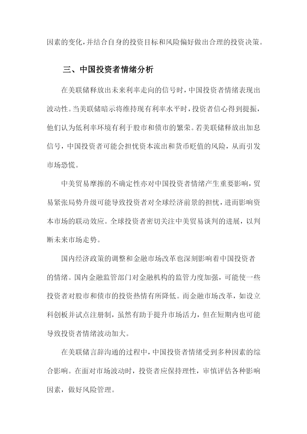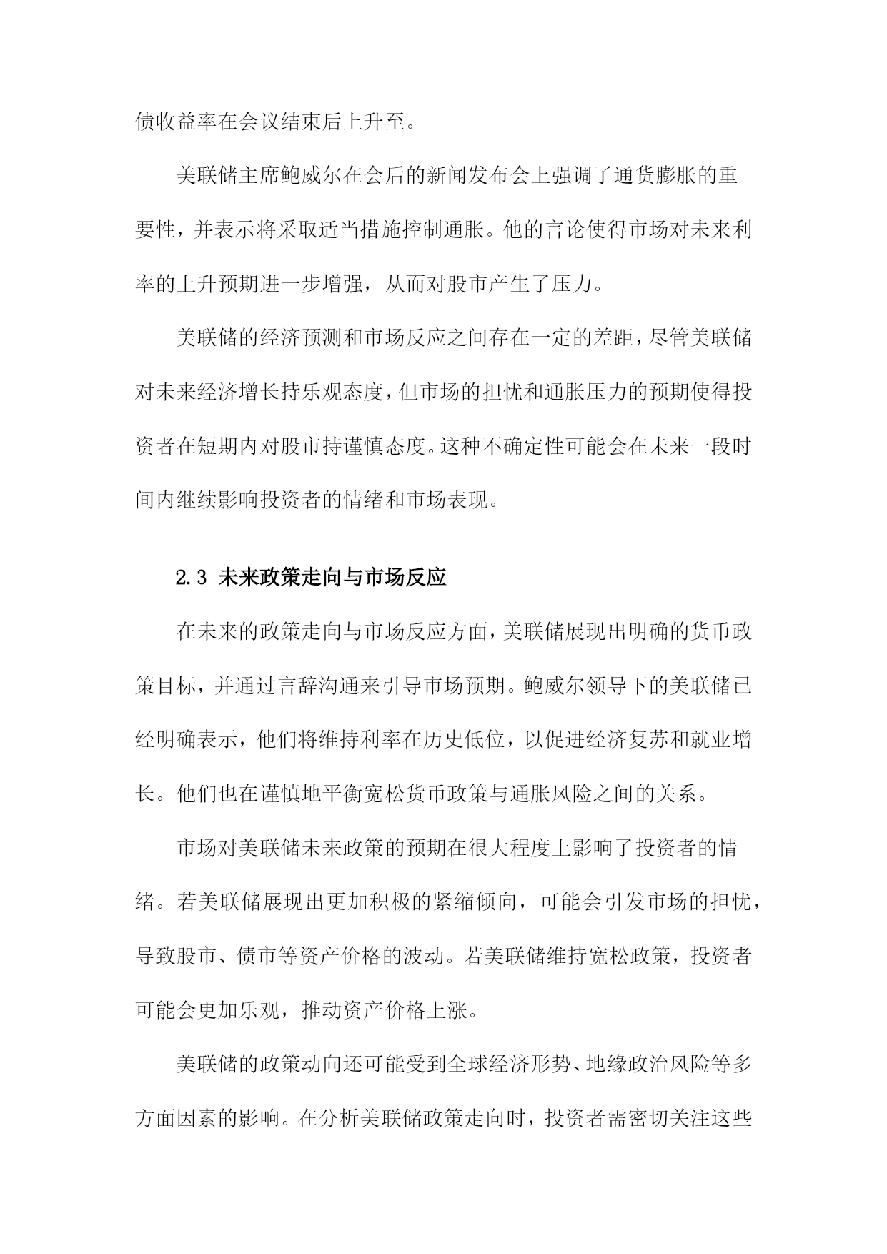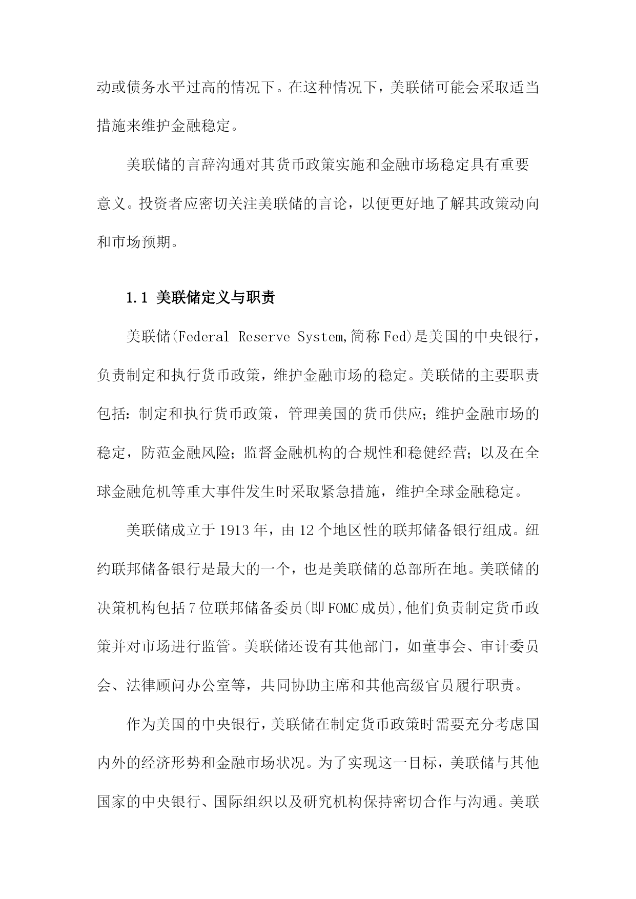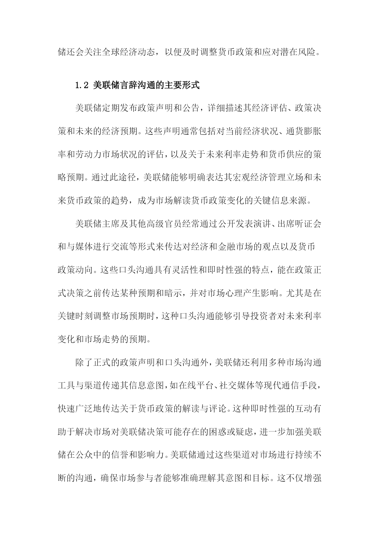 美联储言辞沟通与中国投资者情绪目录一、美联储言辞沟通概述......................................21.1美联储定义与职责.....................................31.2美联储言辞沟通的主要形式.............................4二、美联储言辞沟通与市场反应................................52.1利率决策与市场反应...................................62.2经济预测与市场反应...................................62.3未来政策走向与市场反应...............................7三、中国投资者情绪分析......................................83.1投资者情绪的定义与度量...............................93.2影响投资者情绪的主要因素............................10四、美联储言辞沟通对中国投资者情绪的影响机制...............114.1宏观经济因素........................................124.2政策因素............................................134.3市场因素............................................14五、美联储言辞沟通对中国投资者情绪的实证研究...............155.1文献综述............................................165.2实证模型构建与分析..................................17六、结论与建议.............................................186.1研究结论............................................196.2对未来研究的建议....................................20一、美联储言辞沟通概述自2000年以来,美联储的言辞沟通在引导市场和经济方面发挥了重要作用。通过定期发布货币政策报告、新闻发布会和政策声明,美联储向公众传达其对经济状况、通货膨胀和就业市场的看法。这些言辞沟通对于投资者信心和预期产生了显著影响。在新冠疫情期间,美联储采取了前所未有的宽松政策来支持经济,包括降低利率和实施量化宽松计划。美联储的言辞沟通变得更加积极和透明,以安抚市场并增强其行动的合理性。利率决策:美联储通过调整联邦基金利率的目标范围来实施货币政策。公开市场委员会(FOMC)会根据经济状况和通胀压力来制定适当的利率水平。量化宽松政策:为了刺激经济增长和稳定金融市场,美联储购买了大量国债和其他金融资产。这些量化宽松政策对市场流动性和长期利率产生了影响。经济预测:美联储会发布季度经济预测,包括对未来几年GDP增长率、失业率和通货膨胀率的预测。这些预测有助于市场了解美联储对未来经济走势的看法。金融稳定:美联储还会关注金融市场的稳定性,特别是在股市波动或债务水平过高的情况下。在这种情况下,美联储可能会采取适当措施来维护金融稳定。美联储的言辞沟通对其货币政策实施和金融市场稳定具有重要意义。投资者应密切关注美联储的言论,以便更好地了解其政策动向和市场预期。1.1美联储定义与职责美联储(FederalReserveSystem,简称Fed)是美国的中央银行,负责制定和执行货币政策,维护金融市场的稳定。美联储的主要职责包括:制定和执行货币政策,管理美国的货币供应;维护金融市场的稳定,防范金融风险;监督金融机构的合规性和稳健经营;以及在全球金融危机等重大事件发生时采取紧急措施,维护全球金融稳定。美联储成立于1913年,由12个地区性的联邦储备银行组成。纽约联邦储备银行是最大的一个,也是美联储的总部所在地。美联储的决策机构包括7位联邦储备委员(即FOMC成员),他们负责制定货币政策并对市场进行监管。美联储还设有其他部门,如董事会、审计委员会、法律顾问办公室等,共同协助主席和其他高级官员履行职责。作为美国的中央银行,美联储在制定货币政策时需要充分考虑国内外的经济形势和金融市场状况。为了实现这一目标,美联储与其他国家的中央银行、国际组织以及研究机构保持密切合作与沟通。美联储还会关注全球经济动态,以便及时调整货币政策和应对潜在风险。1.2美联储言辞