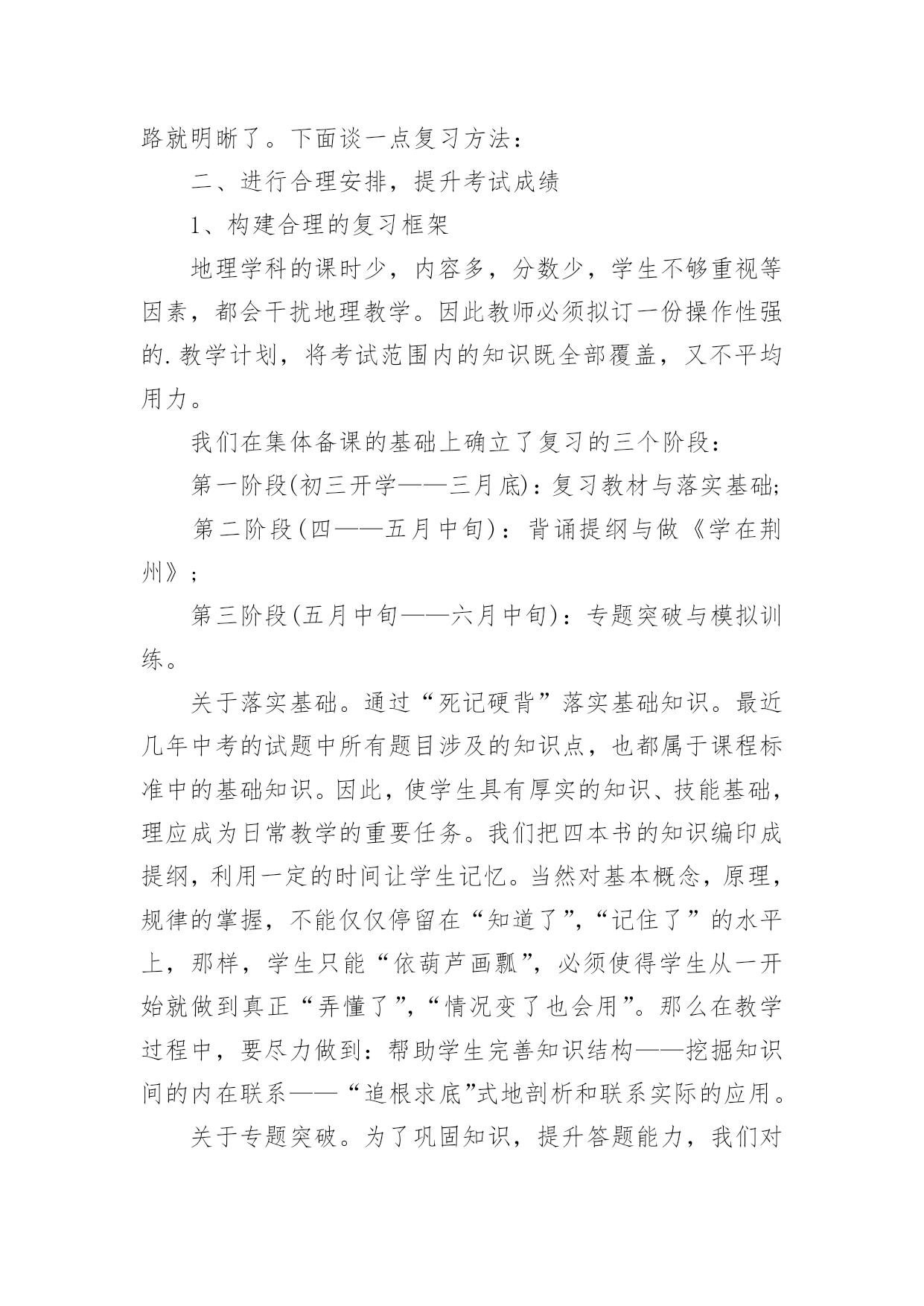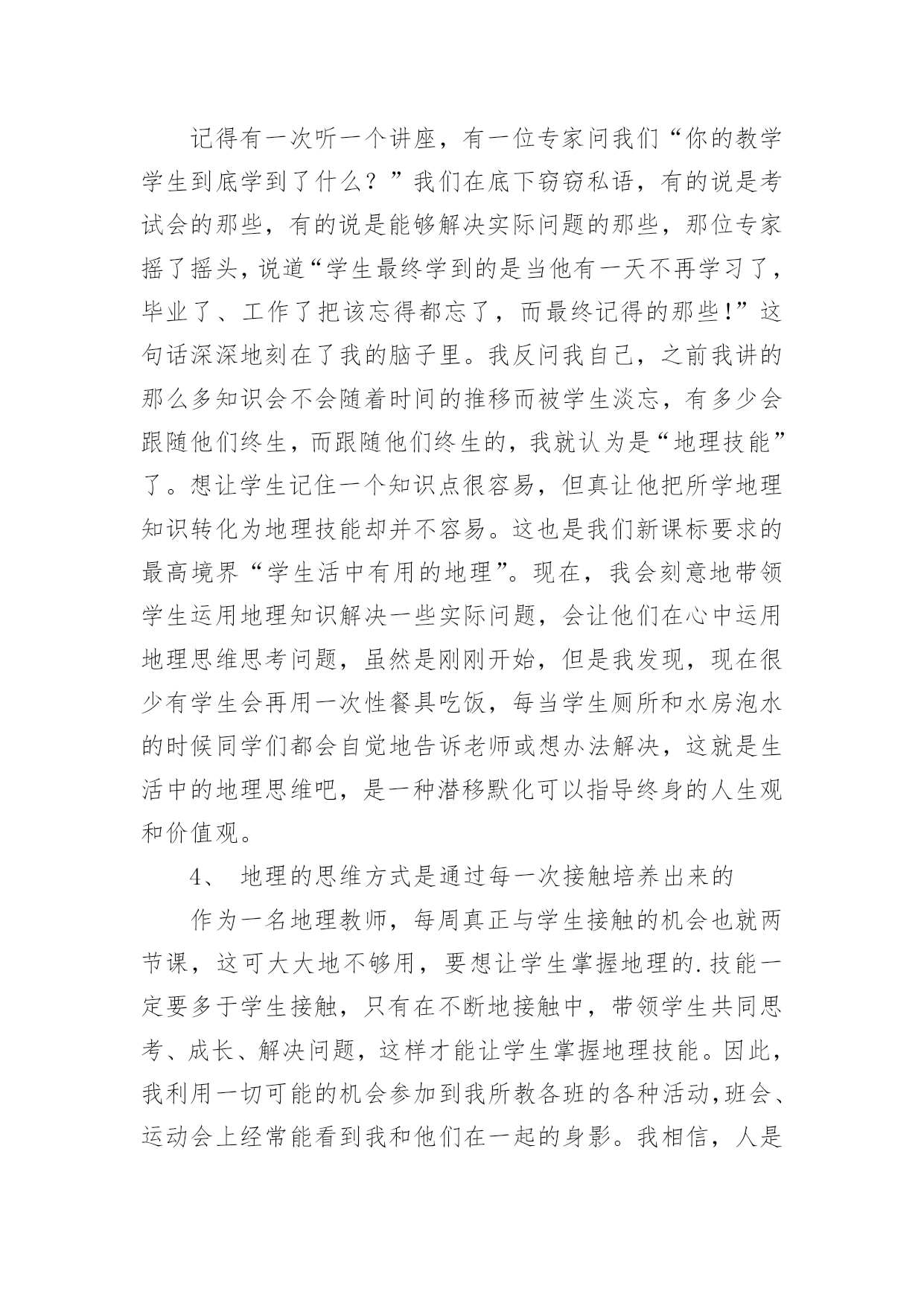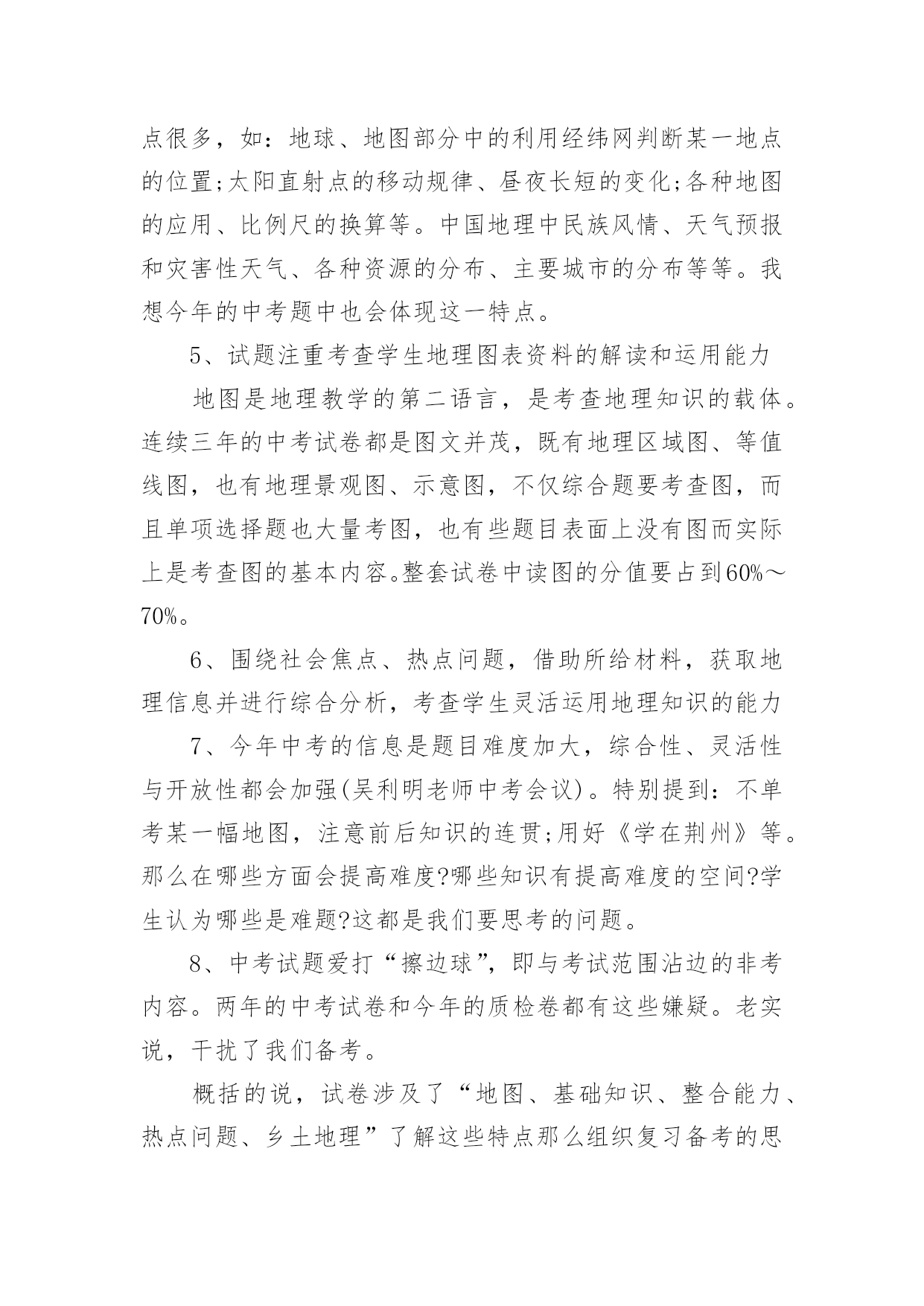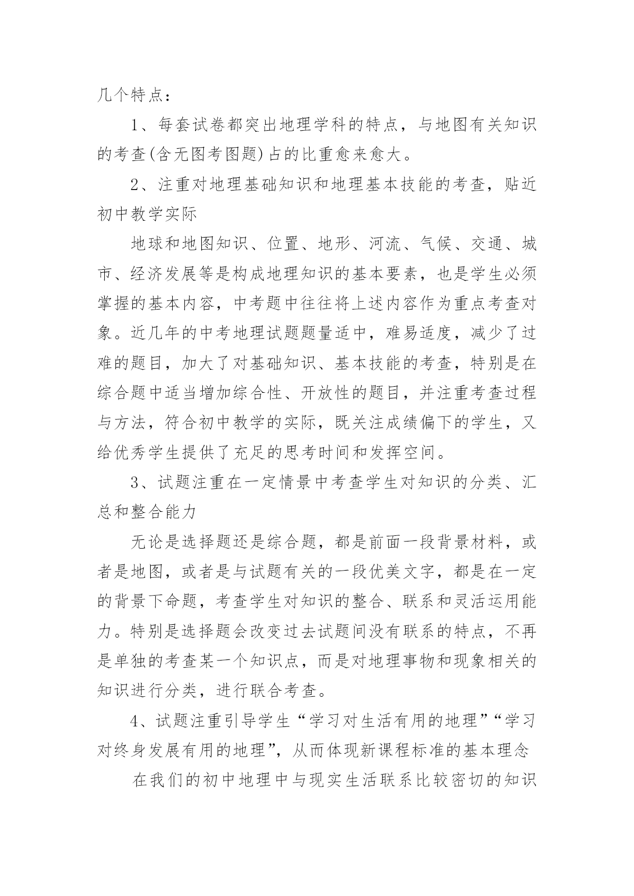学生地理考试反思学生地理考试反思(通用12篇)在快速变化和不断变革的今天,我们要有很强的课堂教学能力,反思是思考过去的事情,从中总结经验教训。那么反思应该怎么写才合适呢?下面是小编精心整理的学生地理考试反思(通用7篇),欢迎阅读,希望大家能够喜欢。学生地理考试反思1通过这次期末考试,我发现在我的教学过程中还有许多需要提高和加强的地方,但是我也看到三年的成长在我的身上留下了深刻的烙印,许多的方法我再不断地尝试和总结之中,只要我能继续坚持刻苦学习、积极探索方法、及时进行经验总结,我相信我能把我们的学生培养成为真正具有地理技能的人。下面将我的反思简述如下:1、授人以鱼不如授人以渔以前我总是希望学生能够掌握书中的所有知识点,于是课前做非常精心地准备,把每一个知识点都画出来,把重点的知识点圈出,然后要在课堂上重点讲授。但是我发现学生变懒了,他们习惯于依赖我画的知识点,依赖我的课件、板书,而他们自己的地理学习能力并没有变强。现在我会把这一提前预习的工作交给学生,让他们读书发现本节课的重点,发现应该怎样学习。其实有的时候地理学习的过程有点像是背单词,最开始的时候都是死记硬背,根本就没有方法可言,但是只有通过前期这样艰苦的积累过程,才会在日后逐渐摸索出适合自己的背单词的方法,如形象记忆、音标记忆、拼写记忆、联想记忆等等。如果我不让学生走这段路,而是直接把方法告诉他,由于他没有深厚的积累,他是很难体会和应用的。反观地理教学,我提早的告诉学生做题、审题的方法,不如和他一起去做,在每一次预习、复习中发现问题,在每一张图中分析问题,这种能力的培养要远远比知识本身重要得多。2、兴趣与能力并重学习地理的兴趣一定是非常关键的。地理这门学科最大的特点就是包罗万象,天文、历史、植物、动物都是我们会涉及到得知识,而这也就意味着我们学科的综合性非常强,我们地理教师也要做一个综合性非常强的老师。一个学生也许会偏科,无论是偏文还是偏理,我认为他都不该不喜欢地理,因为地理拥有许多综合性的知识,十分引人入胜。因此,在课外,我利用一切机会多读书,我想无论什么书都会跟地理取得一些联系,而这每一点课外延伸的知识都可以吸引学生的兴趣。而且我并不认为这些知识会影响到学生对于考试知识点的记忆。现在的地理新课标的要求也在提,要学“生活中有用的地理”,什么是生活中有用的地理?一定是一个复杂的、触类旁通的、综合性的地理,而我们每讲的一点课外知识,就是地理的一个“触手”,它会指引学生逐步触及到地理的本质,这个过程也是正在培养学生具有地理技能的过程,因此,在教学中我非常重视学生地理兴趣的培养。3、生活中的地理就最后变为学生能力的那些内容记得有一次听一个讲座,有一位专家问我们“你的教学学生到底学到了什么?”我们在底下窃窃私语,有的说是考试会的那些,有的说是能够解决实际问题的那些,那位专家摇了摇头,说道“学生最终学到的是当他有一天不再学习了,毕业了、工作了把该忘得都忘了,而最终记得的那些!”这句话深深地刻在了我的脑子里。我反问我自己,之前我讲的那么多知识会不会随着时间的推移而被学生淡忘,有多少会跟随他们终生,而跟随他们终生的,我就认为是“地理技能”了。想让学生记住一个知识点很容易,但真让他把所学地理知识转化为地理技能却并不容易。这也是我们新课标要求的最高境界“学生活中有用的地理”。现在,我会刻意地带领学生运用地理知识解决一些实际问题,会让他们在心中运用地理思维思考问题,虽然是刚刚开始,但是我发现,现在很少有学生会再用一次性餐具吃饭,每当学生厕所和水房泡水的时候同学们都会自觉地告诉老师或想办法解决,这就是生活中的地理思维吧,是一种潜移默化可以指导终身的人生观和价值观。4、地理的思维方式是通过每一次接触培养出来的作为一名地理教师,每周真正与学生接触的机会也就两节课,这可大大地不够用,要想让学生掌握地理的.技能一定要多于学生接触,只有在不断地接触中,带领学生共同思考、成长、解决问题,这样才能让学生掌握地理技能。因此,我利用一切可能的机会参加到我所教各班的各种活动,班会、运动会上经常能看到我和他们在一起的身影。我相信,人是有人格魅力的,我希望我能够做得更好,用自己带有地理韵味的人格魅力感染学生,让他们也热爱上我所热爱的学科——地理。5、综合评价每一位学生通过本次考试,我发现了自己还存在许多的问题,其中一个就是没有综合评价每一位学生。其实地理是一门可以综合评价学生的学科,最终的期末考试绝不能成为评价学生的唯一手段。我们平时的实践活动、各种动手实验都可以加入进来。现在地理的综合实践活动多为“定向越野”,但是在冬天,这一活动多由于气候等原因而无法开展,但是北京的博物馆资源这么丰富,自然博物馆、地质博物馆、天文馆、甚至是各种玉石商店、商场、旅游景点都可以成为学生学习、探索地理知识的课堂,通过户外的学习,我们能