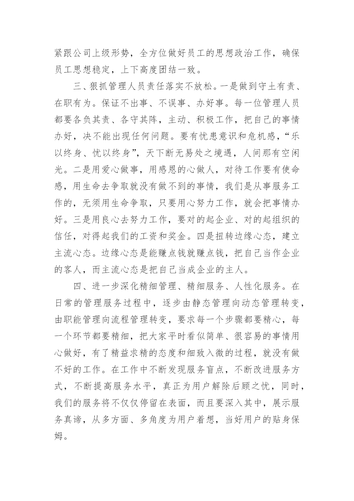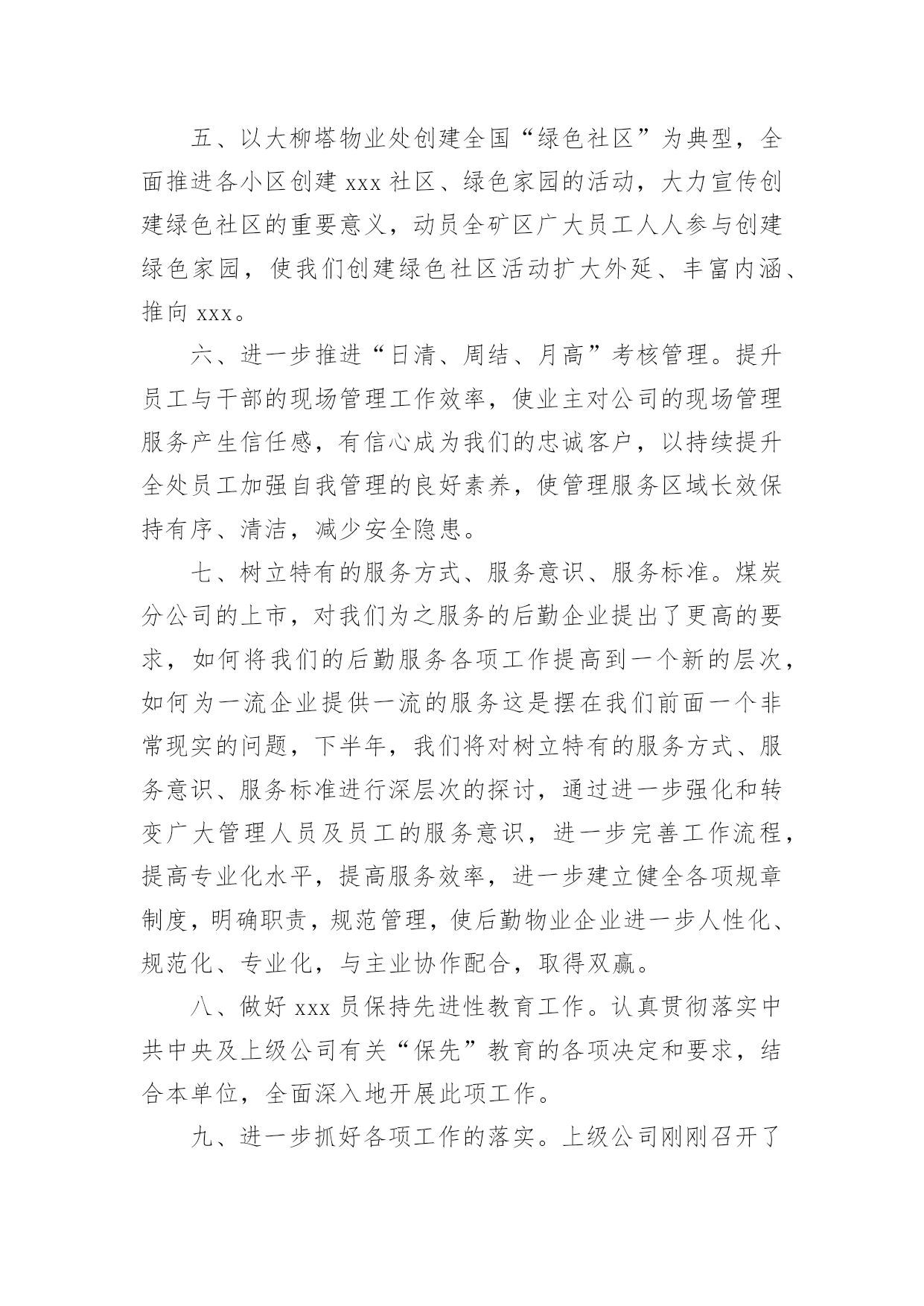 企业后勤工作报告企业后勤工作报告随着个人的文明素养不断提升,报告使用的次数愈发增长,报告具有双向沟通性的特点。那么什么样的报告才是有效的呢?下面是小编帮大家整理的企业后勤工作报告,仅供参考,希望能够帮助到大家。虽然上半年我们做了很多工作,加大了基础设施建设投入,整顿清理了单身公寓和王渠沟,成功接待了几次大型会议,也创建了全国绿色社区等,但我们的个别单位、部分场所的服务质量非但没有提高,反而出现了服务质量的滑坡,虽然存在着这样、那样的因素,但我们不能以客观困难的存在就否定了我们的主观能动性,工作认真努力做,办法总比困难多。上半年出现了很多问题,究其原因主要是部分管理人员及员工存在着严重的麻痹思想,在抓工作落实上不深不细,存在工作漂浮甚至敷衍应付现象,面临目前市场化服务的严峻形势,管理人员的管理作风还要进一步转变,扎扎实实工作,一步一个脚印,坚决克服飘浮思想、松劲情绪,摆正我们的工作心态,认识到优质就是我们生活的保证,优质服务就是我们经济效益的保证。分公司随上级集团上市,分公司由我们的主业真正成为我们的业主,下半年的各项工作的顺利开展对于全公司的生存与上级具有极为现实的重要意义,我们要全面贯彻落实上级公司半年工作会精神,围绕年初既定的目标方针,以全年资产经营为目标,以全面提高服务质量和提高全员综合素质为工作重心,使各项工作进一步向标准化、规范化、科学化、精细化、人性化方向迈进,抓好执行力,大力推行“日清、周结、月高”考核法,抓好各项工作的落实,切实提高服务质量,提供优质服务,努力实现物业管理服务工作的新跨越。一、牢固树立优质服务求生存的管理思想,狠抓服务质量的提高。公司作为上级公司直接为主业服务的单位,服务质量的优劣,工作的好坏,直接影响着整个上级公司的形象。随着分公司上市,有偿服务机制的建立和深化,对后勤服务的标准要求越来越高,考核越来越细,监督越来越严,如果服务不好,业主不满意,我们不仅没有收入,甚至砸了饭碗,因此,任何时候我们应始终坚持服务为本、用户至上、质量第一的管理理念,把业主的需要作为我们工作出发点和落脚点,一心一意为业主着想,为业主排忧解难,全心全意搞好服务,提升服务质量。二、狠抓执行力不放松。紧紧围绕两级公司工作重心,抓好执行力。主业上市、存续公司成立运行,公司正处在上级、改革的关键时刻,可以说也是一次较大变革,变化势必带来人们的思想波动。保持稳定和强化执行力摆在我们面前的重要工作,因此要不折不扣地贯彻两级公司指示精神,保持稳定,保障服务,机构不管怎么变,我们服务理念不能变,服务宗旨不能变,服务质量不能变,执行上级指示不能变。紧跟公司上级形势,全方位做好员工的思想政治工作,确保员工思想稳定,上下高度团结一致。三、狠抓管理人员责任落实不放松。一是做到守土有责、在职有为。保证不出事、不误事、办好事。每一位管理人员都要各负其责、各守其阵,主动、积极工作,把自己的事情办好,决不能出现任何问题。要有忧患意识和危机感,“乐以终身、忧以终身”,天下断无易处之境遇,人间那有空闲光。二是用爱心做事,用感恩的心做人,对待工作要有使命感,用生命去争取就没有做不到的事情,我们是从事服务工作的,无须用生命争取,只要用心努力工作,就会把事情办好。三是用良心去努力工作,要对的起企业、对的起组织的信任,对得起我们的工资和奖金。四是扭转边缘心态,建立主流心态。边缘心态是能赚点钱就赚点钱,把自己当作企业的客人,而主流心态是把自己当成企业的主人。四、进一步深化精细管理、精细服务、人性化服务。在日常的管理服务过程中,逐步由静态管理向动态管理转变,由职能管理向流程管理转变,要求每一个步骤都要精心,每一个环节都要精细,把大家平时看似简单、很容易的事情用心做好,有了精益求精的态度和细致入微的过程,就没有做不好的工作。在工作中不断发现服务盲点,不断改进服务方式,不断提高服务水平,真正为用户解除后顾之忧,同时,我们的服务将不仅仅停留在表面,而且要深入其中,展示服务真谛,从多方面、多角度为用户着想,当好用户的贴身保姆。五、以大柳塔物业处创建全国“绿色社区”为典型,全面推进各小区创建xxx社区、绿色家园的活动,大力宣传创建绿色社区的重要意义,动员全矿区广大员工人人参与创建绿色家园,使我们创建绿色社区活动扩大外延、丰富内涵、推向xxx。六、进一步推进“日清、周结、月高”考核管理。提升员工与干部的现场管理工作效率,使业主对公司的现场管理服务产生信任感,有信心成为我们的忠诚客户,以持续提升全处员工加强自我管理的良好素养,使管理服务区域长效保持有序、清洁,减少安全隐患。七、树立特有的服务方式、服务意识、服务标准。煤炭分公司的上市,对我们为之服务的后勤企业提出了更高的要求,如何将我们的后勤服务各项工作提高到一个新的层次,如何为一流企业提供一流的服务这是摆在我们前面一个非常现
