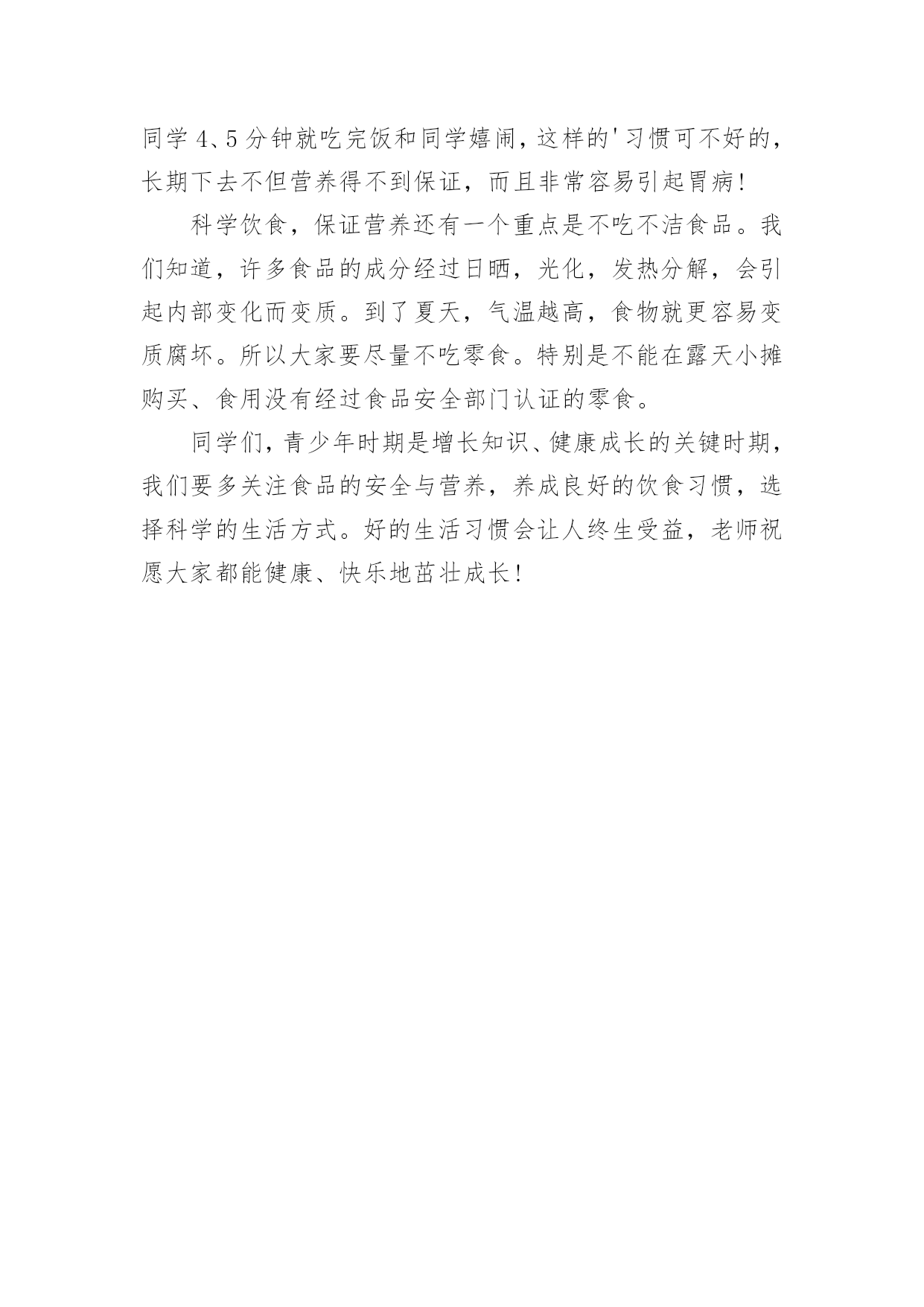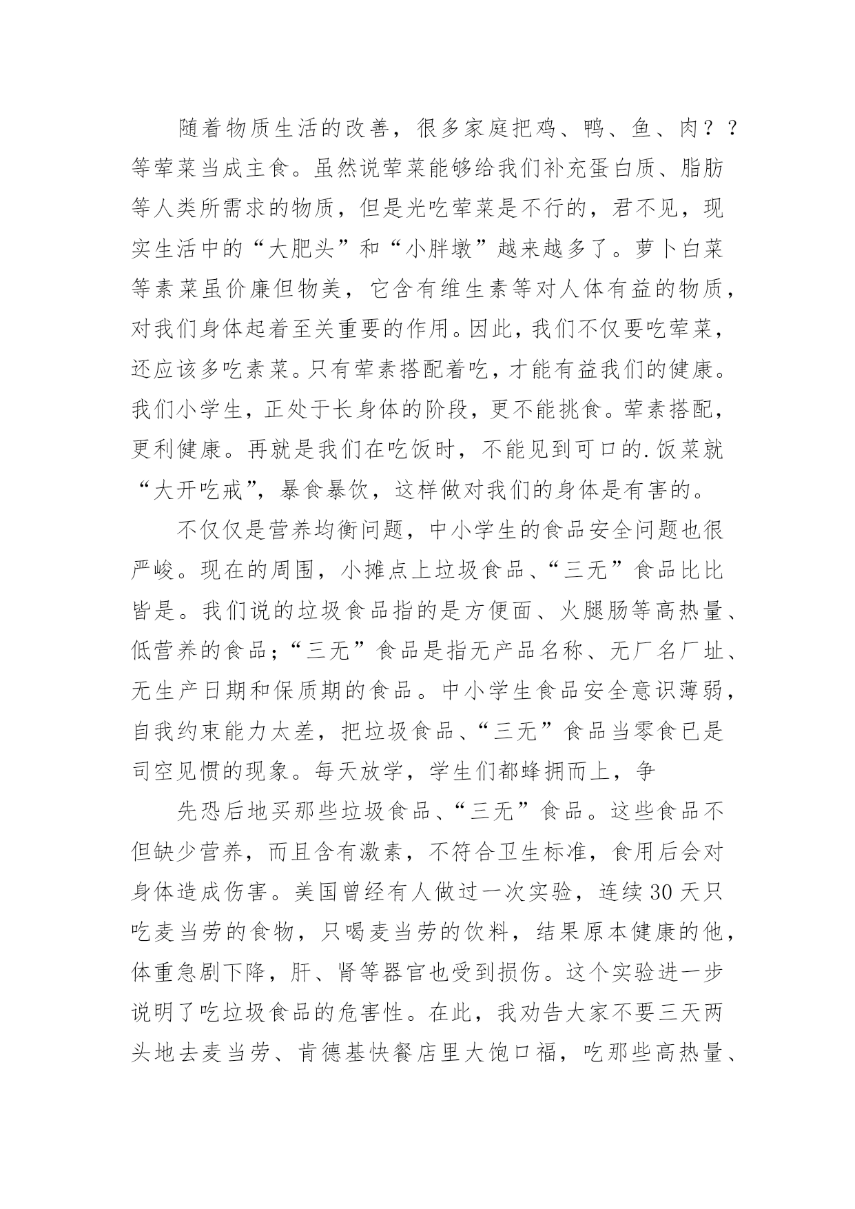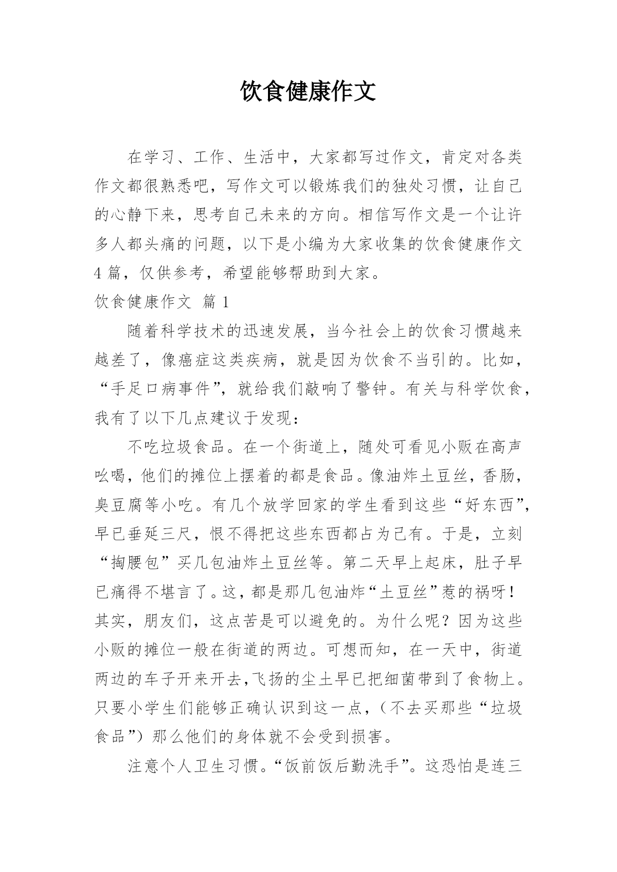 饮食与健康作文无论在学习、工作或是生活中,许多人都有过写作文的经历,对作文都不陌生吧,作文是从内部言语向外部言语的过渡,即从经过压缩的简要的、自己能明白的语言,向开展的、具有规范语法结构的、能为他人所理解的外部语言形式的转化。那么,怎么去写作文呢?下面是小编整理的饮食与健康作文,仅供参考,大家一起来看看吧。饮食与健康作文1俗话说:“民以食为天。”当今社会上,许多饭店拔地而起,各种菜系蜂拥而来,中有闽菜、川菜、粤菜、鲁菜。。。。。。外有意大利菜、法国菜、日本料理、韩国菜等等。我们都知道,健康是做任何事的本钱,健康又是与食物紧紧相连的。今天,我们就来看看餐桌上的食物吧。食物分为许多种,有蔬果类、豆类、肉类、谷类、奶制品类、脂肪类等。这几类组合成了一个食物金字塔,处处影响着我们的健康。所以,在用餐时要做到合理搭配,多蔬菜、水果,少肉类、脂肪类。谷物类为主食,可适当增加豆类、奶制品类,并且要记住,吃饭只吃八分饱,不可挑食厌食,也不可暴饮暴食,吃干净食物最为重要。在食物中,都含有一种对人们的健康起重要作用的.元素——维生素。维生素又分为A、B、C、D。不同的维生素有不同的作用。维生素A通常在红、黑色的食物中较多,如胡萝卜、黑豆等。它的功能主要是保护眼睛,可用于保护视力,治疗夜盲证等维生素C通常都在蔬菜水果中,它有利于治疗坏血病、皮肤病。它的发现还有一个故事:一艘轮船在大海上漂泊数日,许多水手都得了坏血病,其中一名病得十分严重,被抛弃在一个荒岛上。之后这名水手吃了许多柠檬,没想到坏血病消失了。这个消息一传十,十传百。之后科学家在柠檬中发现大量维生素C,病用来治疗坏血病。维生素B、D也有许多功能,在此就不多说了。当然也要注意:有些食物不能混在一起吃,以免发生危险。如虾不能与维生素C同时吃,螃蟹不能和柿子同吃。。。。。。现在,人们想身体健康,还吃了许多补品,鹿茸、人参、灵芝等都成了美食。在此向大家推荐南极鳞虾,它不是虾,却比虾更有营养,蛋白质是其他动物的2—3倍,并且数量多,每年捕捞3000万吨是没有影响的,因此被誉为“冷甘露”。饮食还有许多地方和健康相连,希望大家在日常生活中多加注意,有了合理的饮食,才有健康的身体。饮食与健康作文2随着科技的飞速发展,人们的物质生活水平越来越高,“衣食无忧”的人们对于食品安全与营养也越来越重视。但在生活中还有很多人,尤其是中小学生在这方面做的不够好。为了我们的身心健康,为了我们能茁壮成长,我在此谈谈自己对“食品安全与营养”问题的见解。随着物质生活的改善,很多家庭把鸡、鸭、鱼、肉??等荤菜当成主食。虽然说荤菜能够给我们补充蛋白质、脂肪等人类所需求的物质,但是光吃荤菜是不行的,君不见,现实生活中的“大肥头”和“小胖墩”越来越多了。萝卜白菜等素菜虽价廉但物美,它含有维生素等对人体有益的物质,对我们身体起着至关重要的作用。因此,我们不仅要吃荤菜,还应该多吃素菜。只有荤素搭配着吃,才能有益我们的健康。我们小学生,正处于长身体的阶段,更不能挑食。荤素搭配,更利健康。再就是我们在吃饭时,不能见到可口的.饭菜就“大开吃戒”,暴食暴饮,这样做对我们的身体是有害的。不仅仅是营养均衡问题,中小学生的食品安全问题也很严峻。现在的周围,小摊点上垃圾食品、“三无”食品比比皆是。我们说的垃圾食品指的是方便面、火腿肠等高热量、低营养的食品;“三无”食品是指无产品名称、无厂名厂址、无生产日期和保质期的食品。中小学生食品安全意识薄弱,自我约束能力太差,把垃圾食品、“三无”食品当零食已是司空见惯的现象。每天放学,学生们都蜂拥而上,争先恐后地买那些垃圾食品、“三无”食品。这些食品不但缺少营养,而且含有激素,不符合卫生标准,食用后会对身体造成伤害。美国曾经有人做过一次实验,连续30天只吃麦当劳的食物,只喝麦当劳的饮料,结果原本健康的他,体重急剧下降,肝、肾等器官也受到损伤。这个实验进一步说明了吃垃圾食品的危害性。在此,我劝告大家不要三天两头地去麦当劳、肯德基快餐店里大饱口福,吃那些高热量、低营养的食品,更不要吃其他垃圾食品、“三无”食品。请大家一定要记住均衡营养,不吃垃圾食品、“三无”食品。为了我们的健康,我要再次呼吁:大家一定要管住自己的嘴,懂得科学饮食,养成良好的饮食习惯,吃得营养,吃出健康。饮食与健康作文3在春天,还有冬天,是我们感冒最多的时候,春天感冒多是因为太多雨,气温冷,地又湿,是病毒繁衍的最佳时期。而冬天则是因为冷,我们常常因为少穿了一天衣服便受凉感冒。然后经常感冒,便是我们的抵抗力不行。在那个春季,我在那个季节里,一共感冒了三次。那个时候的我,抵抗力非常不好,因此经常感冒。记得那个时候的春天,雨是一下就下一个星期,基本是没有间隔的,都是连续性的下雨。那个时候,我无端的感冒了,如何妈妈把我送到了医院里,在医院里,医生告诉我,因为我