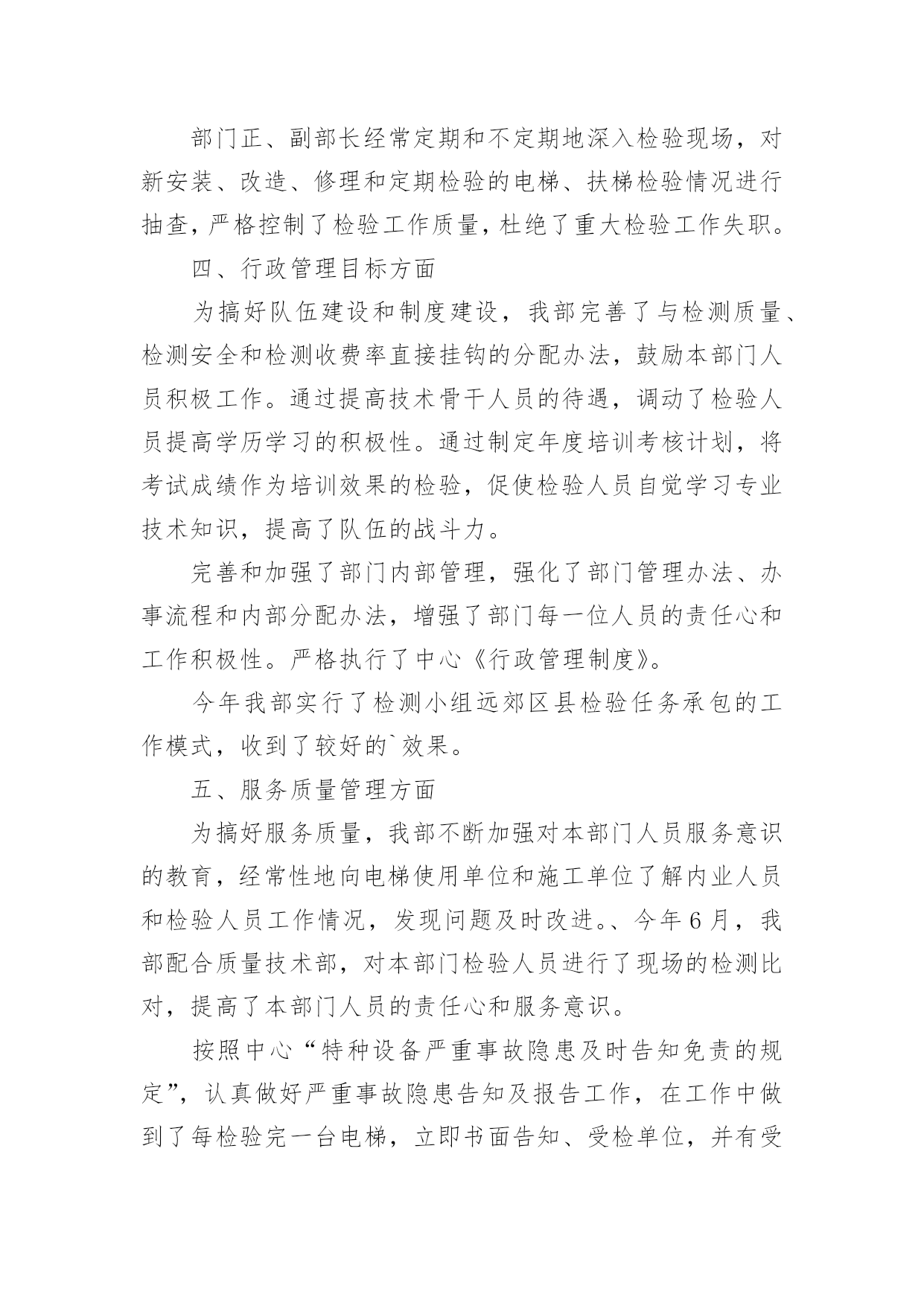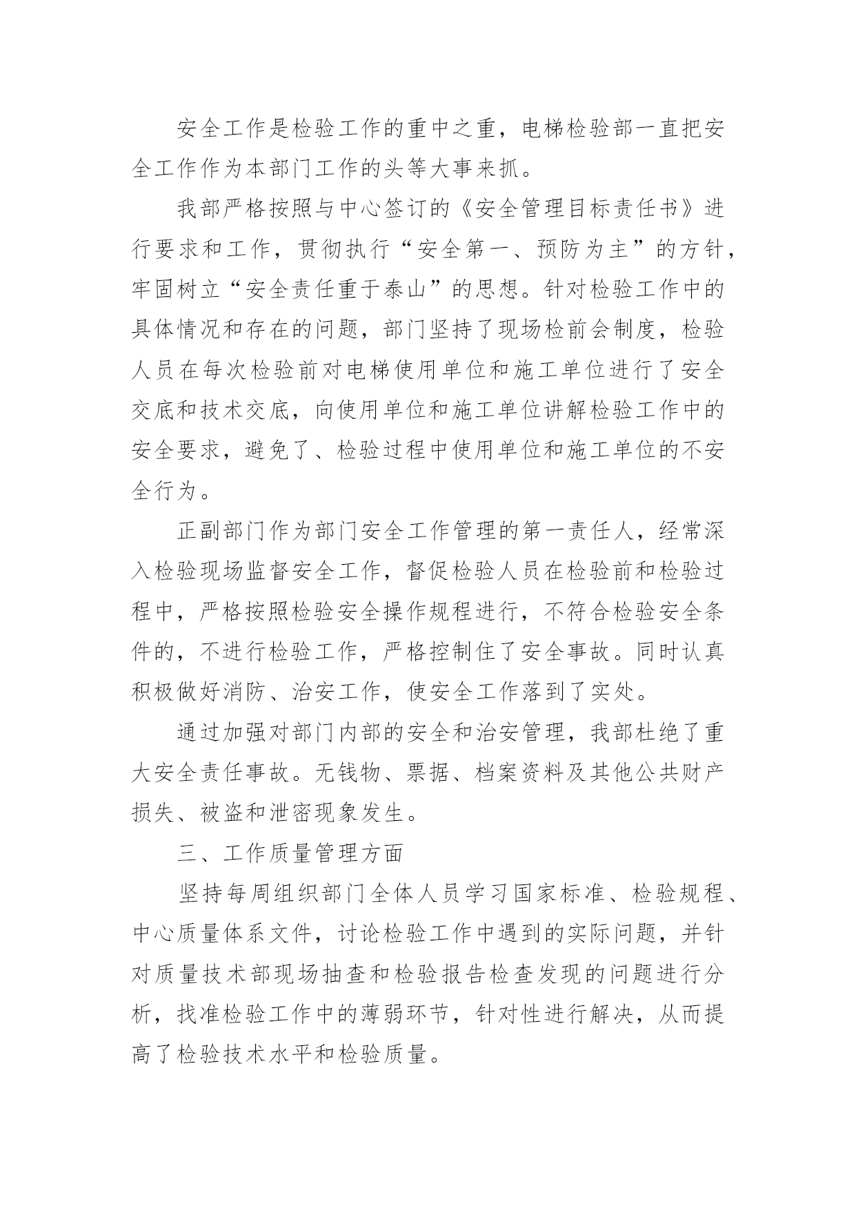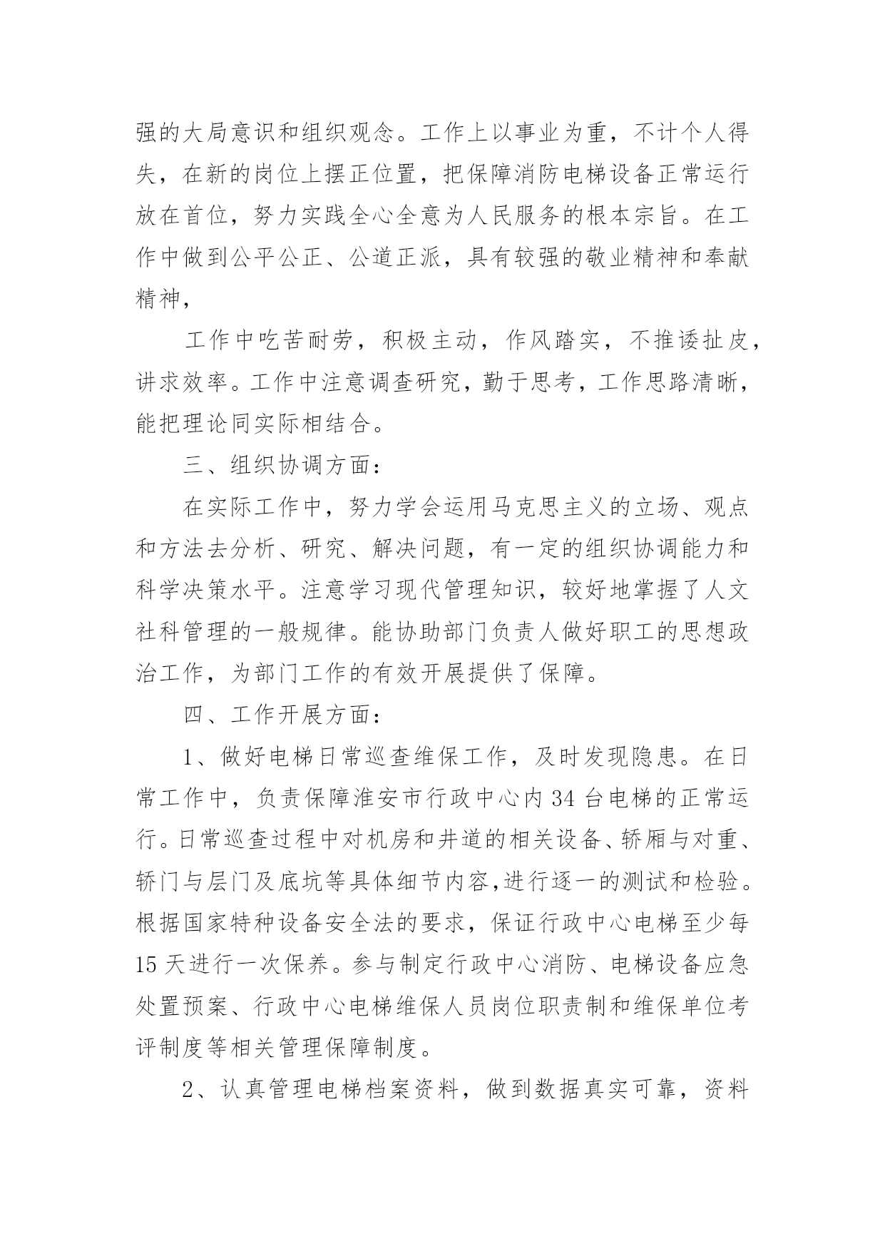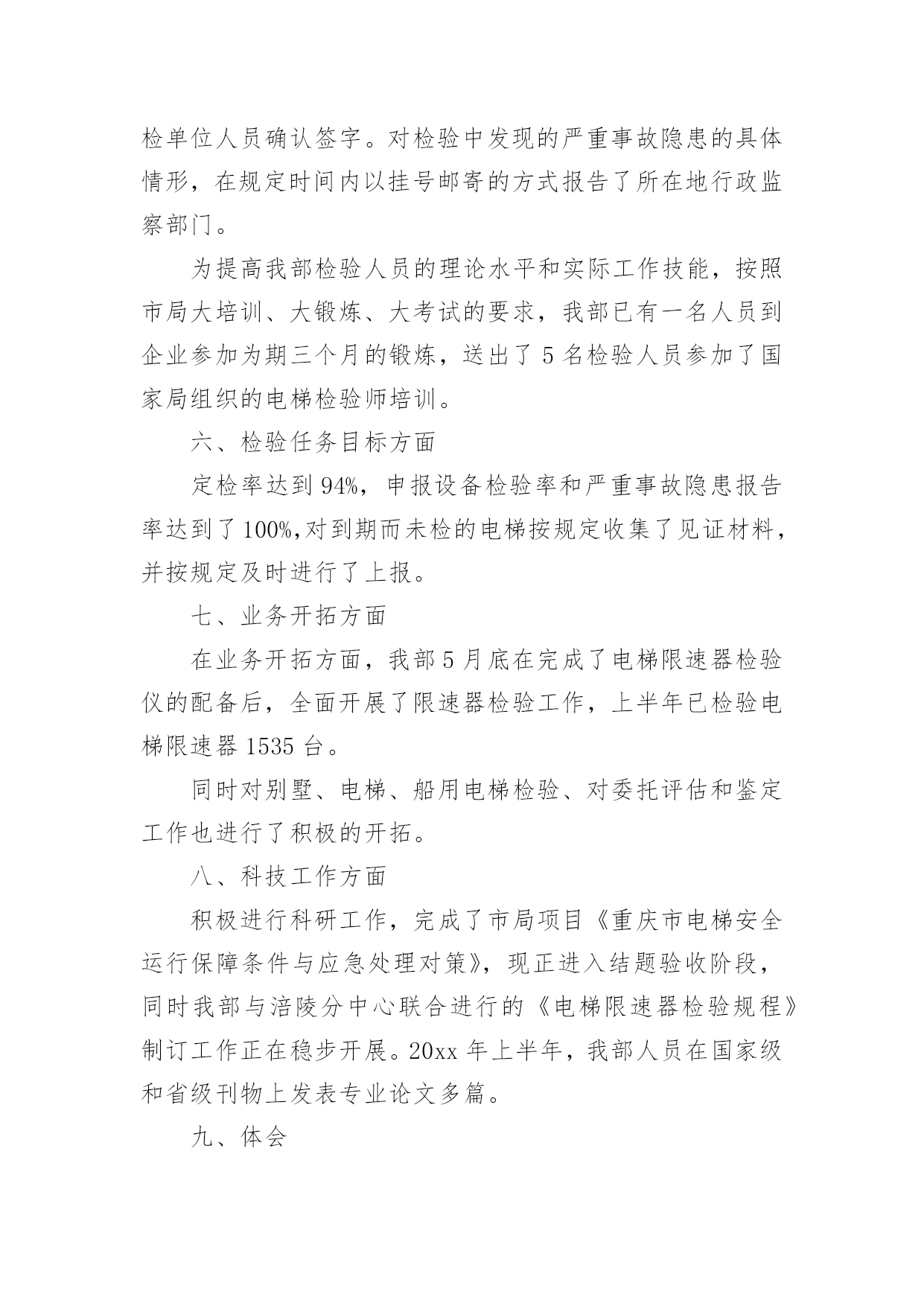 电梯工作总结电梯工作总结15篇总结是对某一特定时间段内的学习和工作生活等表现情况加以回顾和分析的一种书面材料,它能帮我们理顺知识结构,突出重点,突破难点,是时候写一份总结了。你所见过的总结应该是什么样的?下面是小编整理的电梯工作总结,欢迎大家借鉴与参考,希望对大家有所帮助。电梯工作总结1一、学习专业知识,提高岗位技能:本人于20xx年4月正式参加工作,工作伊始,我发现学校里学到的专业知识同实际工作有很大的不同和差距,为了尽快转变角色,适应工作的要求,我努力学习消防电梯方面的专业知识,努力提高自己的岗位技能。先后前往淮安市消防支队和淮安市特检院进行专业知识的学习,在短短的半年内,我通过自己的努力及同事的帮助,能比较熟练地进行设备管理的日常事务工作。清楚了解电梯安全管理人员理论知识,熟练掌握相关实际操作技能。取得了建构筑物初级消防员证和电梯安全管理员证。二、政治思想方面:在政治上,我对自己严格要求,积极参加各项政治活动,自觉学习政治理论,努力提高自己的政治理论修养,具有较强的大局意识和组织观念。工作上以事业为重,不计个人得失,在新的岗位上摆正位置,把保障消防电梯设备正常运行放在首位,努力实践全心全意为人民服务的根本宗旨。在工作中做到公平公正、公道正派,具有较强的敬业精神和奉献精神,工作中吃苦耐劳,积极主动,作风踏实,不推诿扯皮,讲求效率。工作中注意调查研究,勤于思考,工作思路清晰,能把理论同实际相结合。三、组织协调方面:在实际工作中,努力学会运用马克思主义的立场、观点和方法去分析、研究、解决问题,有一定的组织协调能力和科学决策水平。注意学习现代管理知识,较好地掌握了人文社科管理的一般规律。能协助部门负责人做好职工的思想政治工作,为部门工作的有效开展提供了保障。四、工作开展方面:1、做好电梯日常巡查维保工作,及时发现隐患。在日常工作中,负责保障淮安市行政中心内34台电梯的正常运行。日常巡查过程中对机房和井道的相关设备、轿厢与对重、轿门与层门及底坑等具体细节内容,进行逐一的测试和检验。根据国家特种设备安全法的要求,保证行政中心电梯至少每15天进行一次保养。参与制定行政中心消防、电梯设备应急处置预案、行政中心电梯维保人员岗位职责制和维保单位考评制度等相关管理保障制度。2、认真管理电梯档案资料,做到数据真实可靠,资料完整齐全。负责电梯设备台账的整理工作,完好保存电梯设备的制造资料、安装资料、改造资料和维修保养相关记录。符合淮安市特检院对电梯管理的相关要求,每年均顺利通过特检院对行政中心电梯的年检工作。为每一台电梯都有编制详细的健康档案记录,在健康档案中清楚地记录下了电梯设备出厂的所有参数数据,电梯自投入使用以来的故障维修记录等电梯重要档案数据。3、电梯改造维修,使电梯运行更加节能方便。先后参与多次行政中心电梯改造项目。20xx年参与南楼东消防电梯导轨矫正改造,通过对电梯井道内导靴、导轨的.调整,减少电梯高速运行下的抖动。20xx年参与会议中心共2台扶梯实现有人乘坐时自动运行,无人乘坐时自动停止;会议中心、东南辅楼共5部电梯实现停靠B层(地下室)改造项目。配合上海三菱电梯工作对会议中心两台扶梯控制系统进行变频改造,客梯负一层井道内相关机械设备调整,顺利完成客梯到达负一层运行改造,降低了电梯使用能耗、方便会议中心及东南辅楼电梯使用。20xx年参与档案馆3号电梯维修项目。协助江苏奥的斯电梯公司对意外进水损坏后的电梯进行配件更换和维修工作。4、快速及时处理故障,保障电梯多次运行。全年共处理100余起大小电梯故障,电梯发生困人事故时,能够根据应急处置预案第一时间救出被困人员,确保乘客人身安全。全年共保障单台电梯运行20余万次。尽管我的理论知识和业务水平提升较快,但电梯技术工作专业性很强,涉及知识方面广,我的管理能力和技术水平有待进一步提高。为了能再上新台阶,本人热忱希望能够获得初级职称工程师,以便更好地开展本职工作。我将一如既往对工作认真负责,勤勤恳恳,努力地学习专业知识,对业务精益求精,勇于创新,不断丰富我的理论知识,提高我的工作能力,做好电梯消防运行保障工作。电梯工作总结220xx年对我们公司是一个充满挑战、机遇、希望的一年。20xx年我公司对电梯安装、维保工作还要加大力度,加强公司内部管理,深挖潜力。今年公司在20xx年安装工作的基础上,还要安装的xx等楼盘,以及正在洽谈的楼盘电梯,同时维保工作也有跟上进行维护保养。20xx年我们会更加努力、认真负责的去对待每一个业务,每一件事情,力争赢得更多的机会,寻求更多的客户,完善公司所有业务的开展工作,只有这样在新的一年里公司才有更大的进步和成绩。相信我们会以更好的能力,迎接20xx年新的挑战。一、年度工作总结在这将近一年多的时间中我通过努力的工作,也有了一点收获,新的一年开始了,我觉得要对自己的