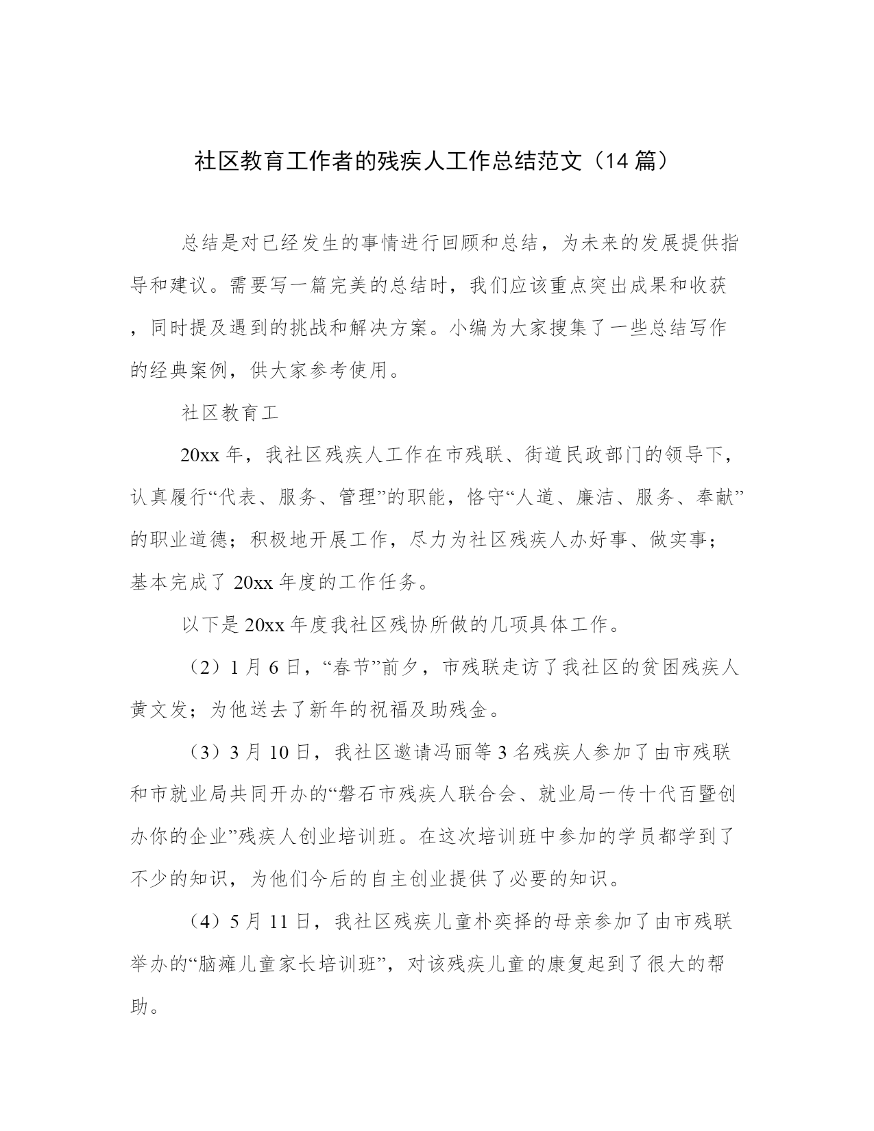 社区教育工作者的残疾人工作总结范文(14篇).docx