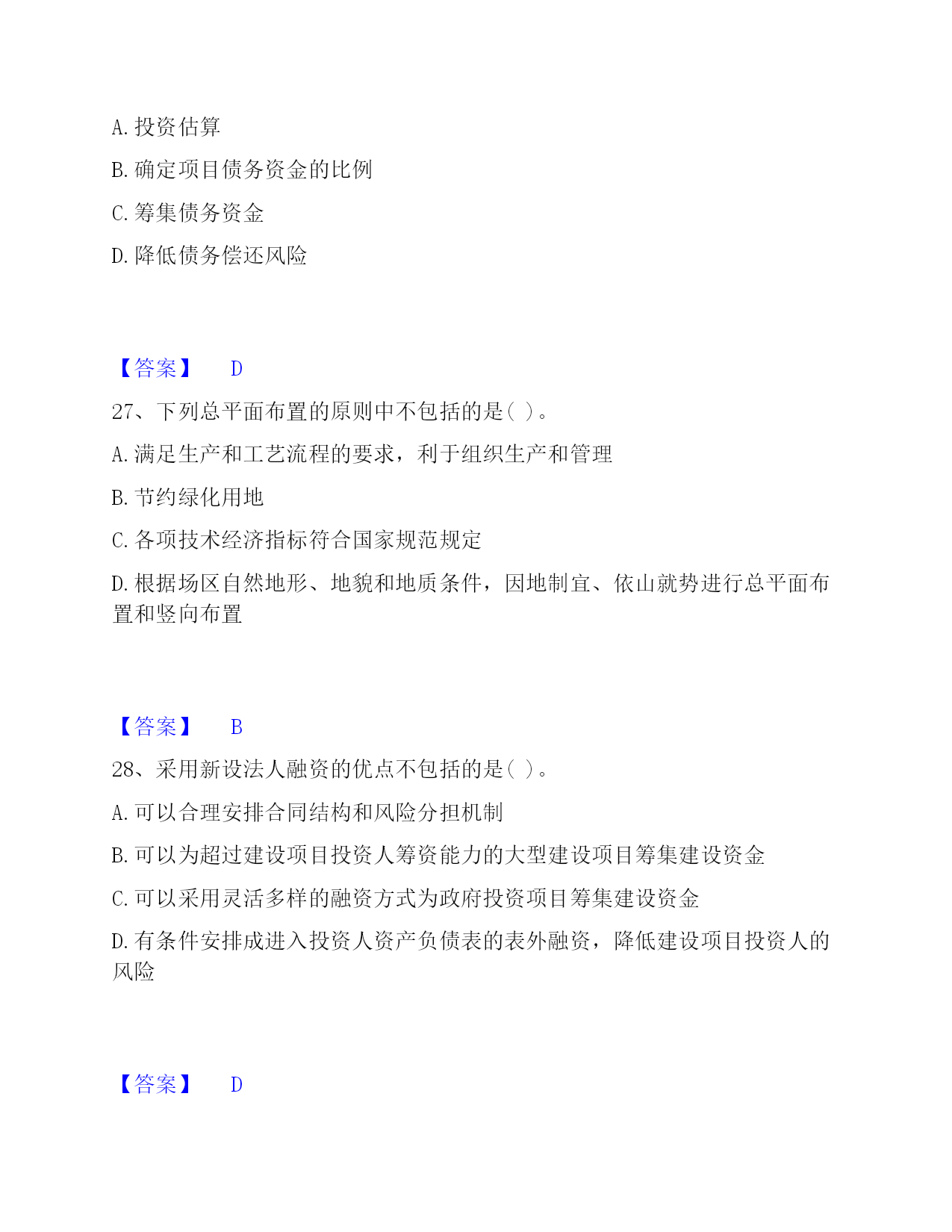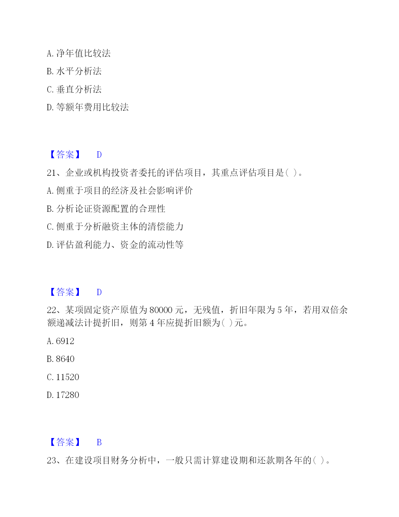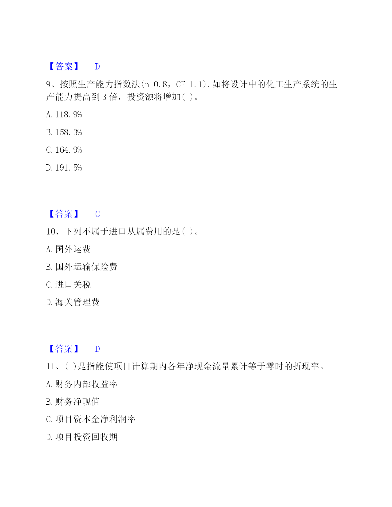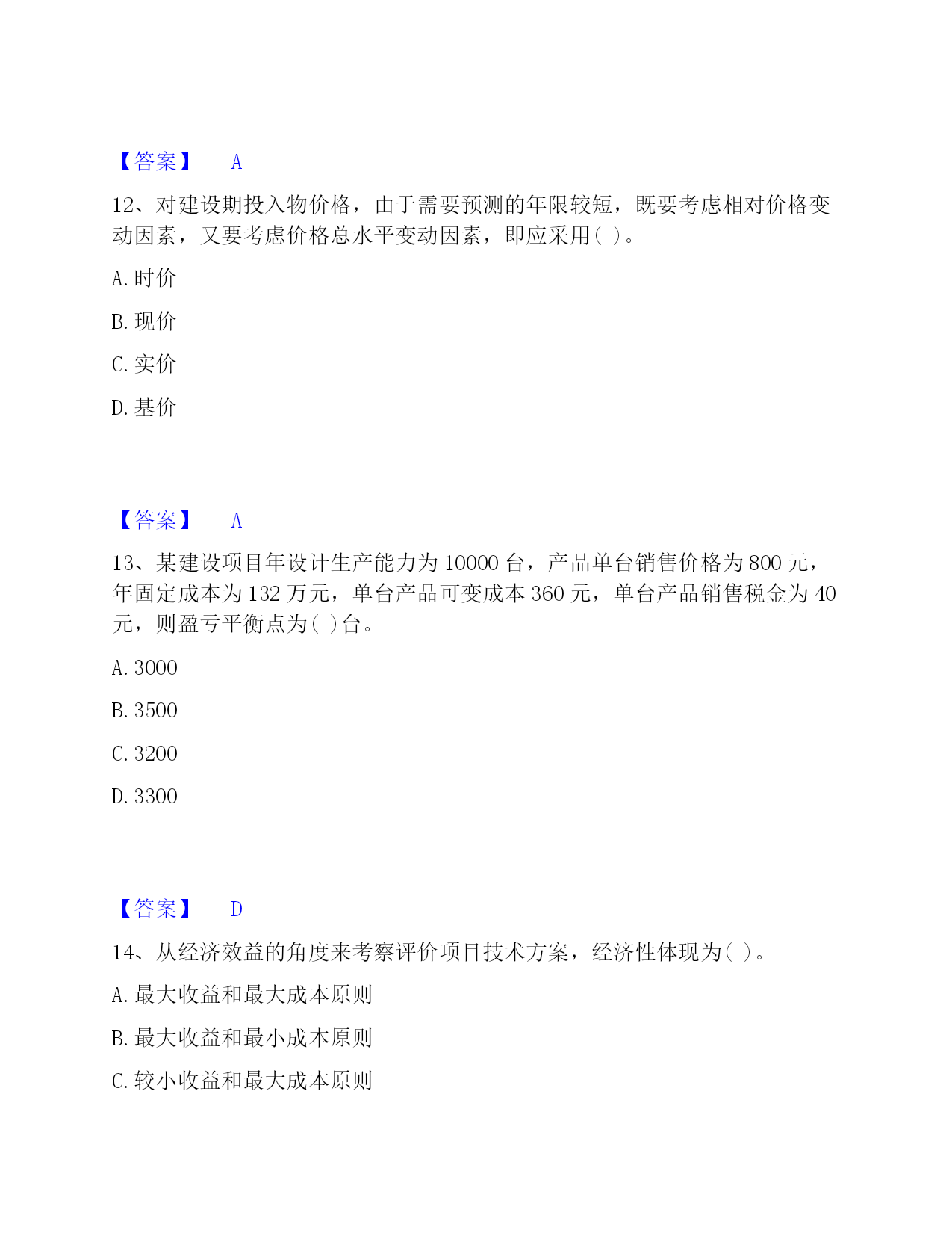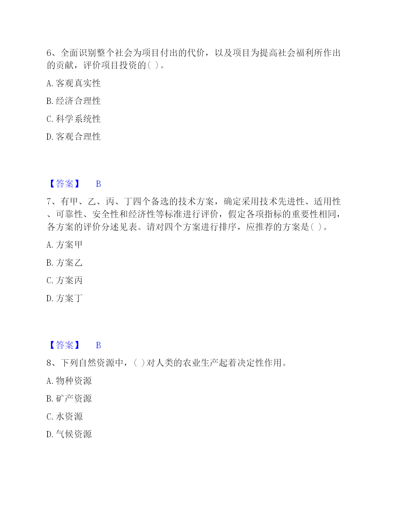 2022-2023年投资项目管理师之投资建设项目决策自我检测试卷A卷附答案单选题(共50题)1、在项目可行性研究阶段,应采用()和分类估算法。A.比例估算法B.系数估算法C.指标估算法D.生产能力指数法【答案】C2、如果扶贫是建设项目的(),则项目的关键利益相关者就应该是穷人,这就要求制定相应的瞄准机制和制度来真正保证贫困人口受益。A.关键目标B.首要目标C.次要目标D.重点目标【答案】B3、若能合理判断未来市场价格变动趋势,投入物和产出物可采用相对变动价格,即采用()。A.基价B.时价C.实价D.市价【答案】C4、采用()需要较为详细的工程资料、建筑材料价格和工程费用指标,工作量较大。A.单位生产能力投资估算法B.单位实物工程量投资估算法C.单位建筑工程投资估算法D.概算指标投资估算法【答案】D5、下列选项中,()是对政府关注的涉及公共利益的有关问题进行论证说明,以获得政府投资主管部门的核准。A.技术评审报告B.项目申请报告C.可行性研究报告D.项目审批报告【答案】B6、全面识别整个社会为项目付出的代价,以及项目为提高社会福利所作出的贡献,评价项目投资的()。A.客观真实性B.经济合理性C.科学系统性D.客观合理性【答案】B7、有甲、乙、丙、丁四个备选的技术方案,确定采用技术先进性、适用性、可靠性、安全性和经济性等标准进行评价,假定各项指标的重要性相同,各方案的评价分述见表。请对四个方案进行排序,应推荐的方案是()。A.方案甲B.方案乙C.方案丙D.方案丁【答案】B8、下列自然资源中,()对人类的农业生产起着决定性作用。A.物种资源B.矿产资源C.水资源D.气候资源【答案】D9、按照生产能力指数法(n=0.8,CF=1.1).如将设计中的化工生产系统的生产能力提高到3倍,投资额将增加()。A.118.9%B.158.3%C.164.9%D.191.5%【答案】C10、下列不属于进口从属费用的是()。A.国外运费B.国外运输保险费C.进口关税D.海关管理费【答案】D11、()是指能使项目计算期内各年净现金流量累计等于零时的折现率。A.财务内部收益率B.财务净现值C.项目资本金净利润率D.项目投资回收期【答案】A12、对建设期投入物价格,由于需要预测的年限较短,既要考虑相对价格变动因素,又要考虑价格总水平变动因素,即应采用()。A.时价B.现价C.实价D.基价【答案】A13、某建设项目年设计生产能力为10000台,产品单台销售价格为800元,年固定成本为132万元,单台产品可变成本360元,单台产品销售税金为40元,则盈亏平衡点为()台。A.3000B.3500C.3200D.3300【答案】D14、从经济效益的角度来考察评价项目技术方案,经济性体现为()。A.最大收益和最大成本原则B.最大收益和最小成本原则C.较小收益和最大成本原则D.较小收益和最小成本原则【答案】B15、下列分析方法中,()一般用于评价公用事业建设方案的经济效果。A.差额投资内部收益率法B.最低价格比较法C.效益/费用比较法D.净年值比较法【答案】C16、为寻找有价值的投资机会而进行的准备性调查研究,其目的在于发现投资机会指的是()。A.资源开发投资机会研究B.地区投资机会研究C.投资机会研究D.部门投资机会研究【答案】C17、下列选项中,()是反映市场成长性的重要指标,影响项目建成后的市场需求,是由现时的市场需求推测未来市场需求的关键因素。A.供应需求B.有效需求C.潜在需求D.需求增长速度【答案】D18、没有考虑到设备规格、材质的差异,估算的准确度也不高的建设项目估算方法是()。A.生产能力指数法B.比例估算法C.朗格系数法D.指标估算法【答案】C19、资源的()分析,主要针对拟建项目性质,研究矿产资源的可采储量、水利水能资源的蕴藏量或森林资源的蓄积量等,提出合理的开发(开采)规模和开发(开采)年限。A.自然品质B.可利用量C.赋存条件D.开发价值【答案】B20、进行建设项目经济比选时,若对效益相同或效益基本相同但难以具体估算的方案进行比较时,可采用费用现值比较法和()。A.净年值比较法B.水平分析法C.垂直分析法D.等额年费用比较法【答案】D21、企业或机构投资者委托的评估项目,其重点评估项目是()。A.侧重于项目的经济及社会影响评价B.分析论证资源配置的合理性C.侧重于分析融资主体的清偿能力D.评估盈利能力、资金的流动性等