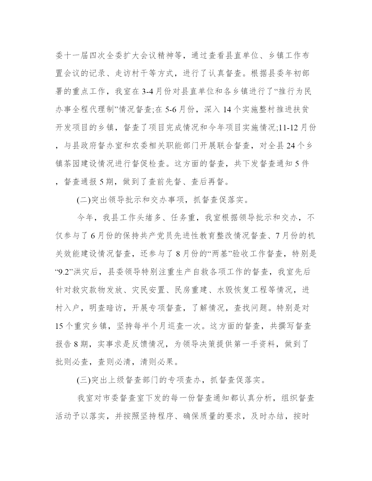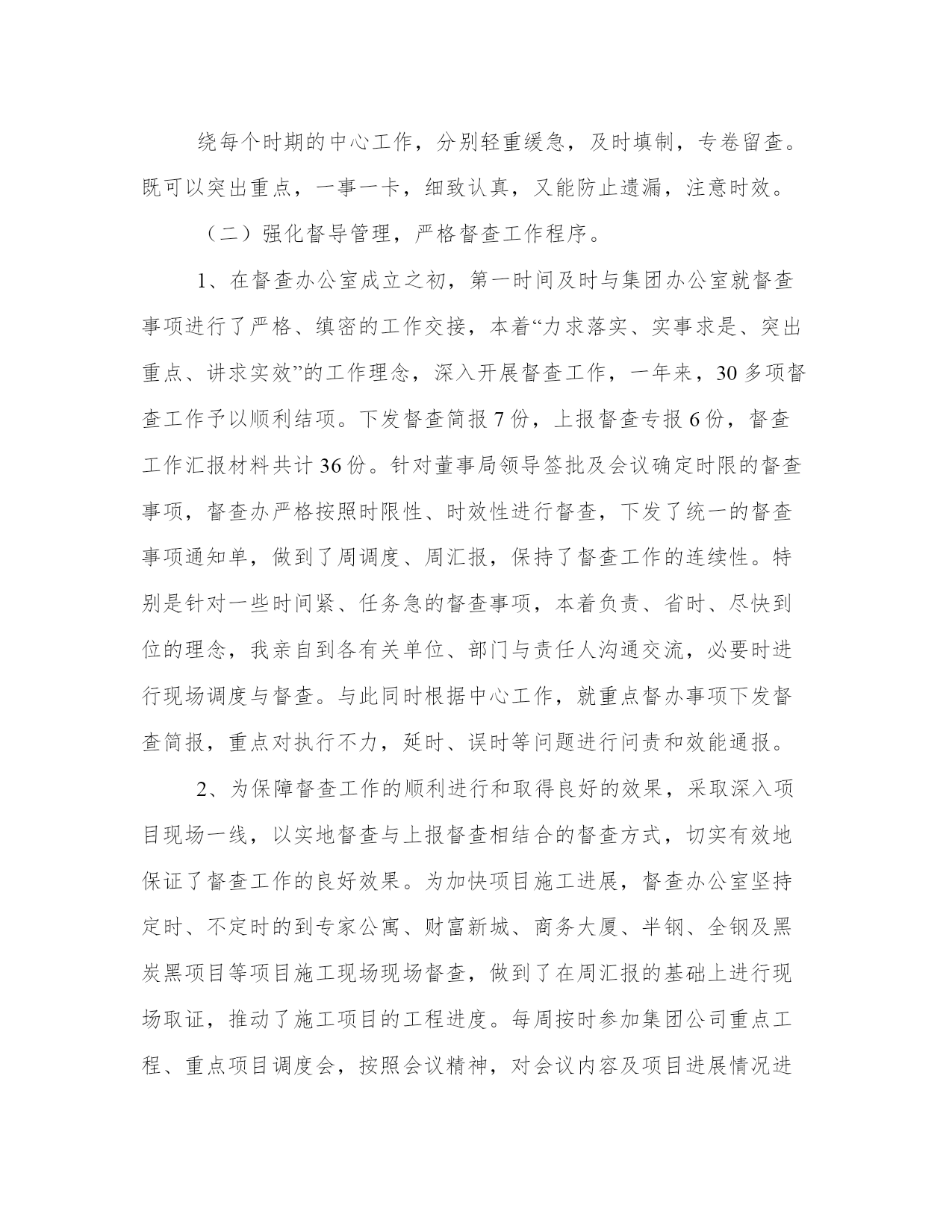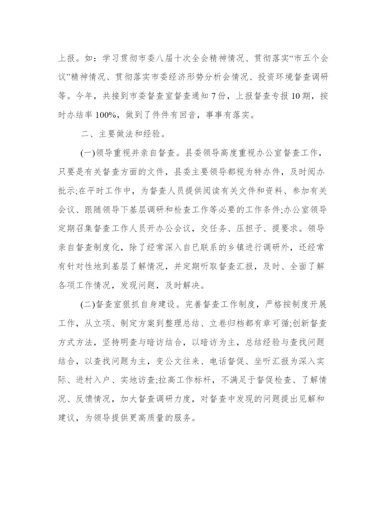 最新环卫督查工作总结督查工作总结(模板13篇)对某一单位、某一部门工作进行全面性总结,既反映工作的概况,取得的成绩,存在的问题、缺点,也要写经验教训和今后如何改进的意见等。相信许多人会觉得总结很难写?那么下面我就给大家讲一讲总结怎么写才比较好,我们一起来看一看吧。环卫督查工作总结篇一一年来,在董事局的正确领导下,在主管领导的支持下,严格按照尚主席的指示精神,紧紧围绕集团公司的发展大局,以公司董事局决定的重大决策和重要工作部署为核心,以各单位、各部门和经营管理、重点工程、重点项目等工作任务目标为重点,以“力求落实、实事求是、突出重点、讲求实效”为工作理念,以“批必查、查必清、清必办、办必果”为工作原则,认真扎实地开展督查工作,现根据公司要求,简要总结如下:一、主要及重要工作。(一)制定督查工作运行实施办法,完善督查程序。1、在本部室的成立之初,按照尚主席的指示要求,在集团办公室的大力协助下,制定了以督查工作内容、督查工作程序和方法、督查结果考核、违反督查纪律处理等内容的督查工作运行实施试行办法及督查工作职责,并在工作中,以该办法为工作准则,扎实而认真的开展了有关事项的督查工作。绕每个时期的中心工作,分别轻重缓急,及时填制,专卷留查。既可以突出重点,一事一卡,细致认真,又能防止遗漏,注意时效。(二)强化督导管理,严格督查工作程序。1、在督查办公室成立之初,第一时间及时与集团办公室就督查事项进行了严格、缜密的工作交接,本着“力求落实、实事求是、突出重点、讲求实效”的工作理念,深入开展督查工作,一年来,30多项督查工作予以顺利结项。下发督查简报7份,上报督查专报6份,督查工作汇报材料共计36份。针对董事局领导签批及会议确定时限的督查事项,督查办严格按照时限性、时效性进行督查,下发了统一的督查事项通知单,做到了周调度、周汇报,保持了督查工作的连续性。特别是针对一些时间紧、任务急的督查事项,本着负责、省时、尽快到位的理念,我亲自到各有关单位、部门与责任人沟通交流,必要时进行现场调度与督查。与此同时根据中心工作,就重点督办事项下发督查简报,重点对执行不力,延时、误时等问题进行问责和效能通报。2、为保障督查工作的顺利进行和取得良好的效果,采取深入项目现场一线,以实地督查与上报督查相结合的督查方式,切实有效地保证了督查工作的良好效果。为加快项目施工进展,督查办公室坚持定时、不定时的到专家公寓、财富新城、商务大厦、半钢、全钢及黑炭黑项目等项目施工现场现场督查,做到了在周汇报的基础上进行现场取证,推动了施工项目的工程进度。每周按时参加集团公司重点工程、重点项目调度会,按照会议精神,对会议内容及项目进展情况进行现场调度与督查,落实项目进展程度,切实有效地保障督查的效果。并按照会议内容,积极与基建办配合,强化督导检查工作,以确保重点工程、重点项目的进展速度。(三)抓好月度工作计划上报及模拟考核工作,完善高管人员的月度绩效考核机制。按照尚主席关于对高管人员实行“年度预算、月计划、周例会、月考核、季总结、年底审计考核兑现”这一新的考核模式,督查办公室与集团办、人力资源部经过外出学习、会同讨论,制定了万达控股集团有限公司高层管理人员绩效考核方案。并在尚主席的大力支持下,在各位董事、副总裁积极配合下,20xx年11月与12月份工作计划上报顺利,并对11月份工作计划进行了模拟考核,通过模拟考核,理顺了考核程序,为20xx年元月份进入正式考核打下了良好的基础。目前,针对所考核的29位高管,20xx年1月份工作计划已经全部上报完毕,并制定出了月度绩效考核初审表。在2月份将依据考核方案,本着有理有据的考核工作原则,严格、认真的对工作计划中的工作内容逐项进行确认考核。(四)完善预算管理,强化绩效考核。督查办公室自成立以来,为配合工作的需要,同时也按照财务部关于各部室编制年度财务预算的要求,办公室结合自身的实际情况编制了20xx年督查办公室预算,本着节省、不超支的原则,严格按照集团公司关于预算费用使用的规定和标准,强化预算管理,细化并减少开支。绩效考核即过去一个绩效周期内管理者对员工的工作的总结。督查办从办公室实际情况出发并结合工作岗位的性质,制定针对各工作岗位的月度绩效考核表,严格遵照公司月度考核方案考核岗位月度计划完成情况及常规工作,严格纪律考核。使得绩效考核不仅仅是简单的打分,而同时进一步提高了工作效率,提高员工积极性,从而达到建立共赢,帮助员工自我发展的最终目的。二、存在的不足与建议。(一)督查工作中学习意识仍需要提高。部门成立时间相对较短,对于督查工作中的一些先进方法和工作理念还有待于学习,以进一步提高督查工作水平。(二)各项目单位、部门对于督查工作的配合力度有待进一步加强。环卫督查工作总结篇二一年来,在县委办公室的领导