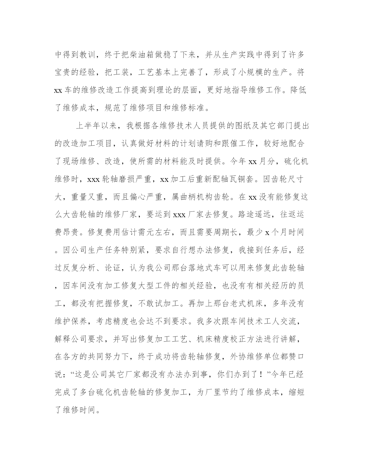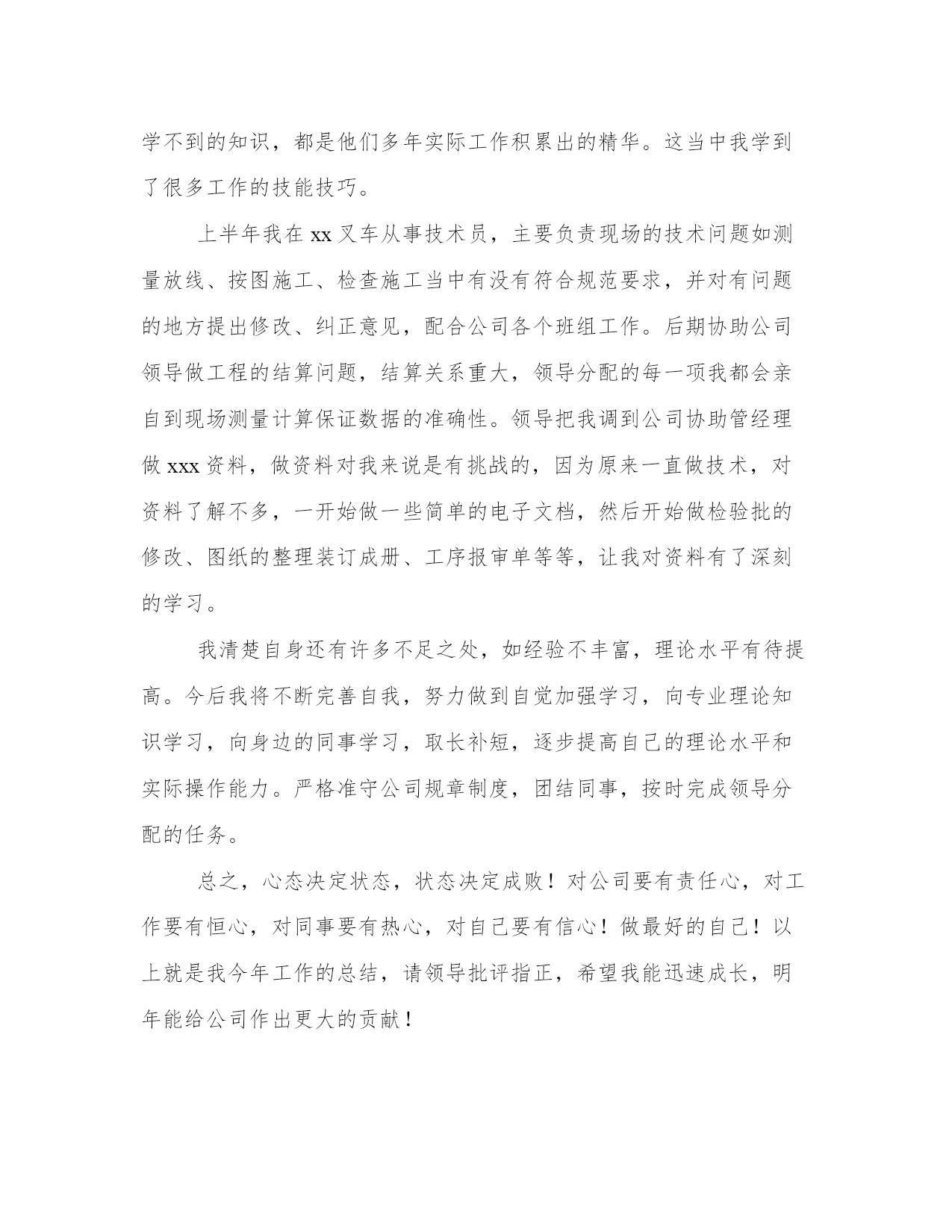 2024年公司技术员上半年个人工作总结(三篇)总结不仅仅是总结成绩,更重要的是为了分析经验,发现做好工作的规律,也可以找出工作失误的教训。这些经验教训是非常宝贵的,对工作有很好的借鉴与指导作用,在今后工作中可以改进提高,趋利避害,避免失误。总结怎么写才能发挥它最大的作用呢?以下是小编收集整理的工作总结书范文,仅供参考,希望能够帮助到大家。公司技术员上半年个人工作总结篇一作为一名刚从学校毕业出来的我,对于公司里面的员工,设备仪器等等都是陌生的。但公司的领导都非常的信任我,支持我,给与我这么一个舞台去施展自己的才华。整个20xx年度我主要负责xx产品的相关技术工作。包括新图纸的画图、审核、工艺、产品的重量计算;生产中的一线操作、现场的技术指导,有时材料零件的准备,到后期的跟踪检验,零部件的请购等。面对一系列繁忙的日常工作任务及生产任务、有时的检验任务;面对在理论和生产实践中遇到的种种陌生和难解决的技术工作。我和技术部的全体同事以及生产工人一起共同探讨,在工作中找方法,从资料中找答案,以慎重的态度,完成了一项又一项的任务。虽然在工作中犯了些错误,但是从这些工作实践当中,这些工作细节当中积累和汲取了大量的宝贵的经验。对我以后的工作提供了宝贵的经验参考。在20xx年度的工作中,我紧跟公司的步伐,加强理论知识方面的学习,努力做到认识上有新提高、运用上有新收获,达到理论能指导实践、促进工作、提高工作水平的目的,不断的提高自己的技术水平,来指导自己的工作。认真学习相关的管理和技术知识,以及xxx质量认证体系的标准。加强xxx的学习,加强对标准的理解,按照标准设计,按照标准做事。为了公司顺利的通过xxx质量体系的论证,按照公司领导的要求和体系的认证标准开展工作,对公司的相关的技术文件,工艺,资料的管理,设备保养文件等进行了完善,并参与了车间的整理,整改工作,对车间的危险源和环境因素,进行了重新完善,对相关的法律法规的适宜性进行评估。参与了对公司的员工进行了传达、解释、贯彻公司的管理方针和公司在质量/环境/职业健康安全管理方面的有关要求。通过公司全体员工的不懈努力,顺利的通过了认证。在平时的工作中,首先做好日常工作,我与车间其他员工既有分工又有合,坚持经常和其他技术人员进行工作交流,充分发扬民主,从不主张个人主义,因为个人能力是有限的,团队的能力才大。油箱一直是我们对柳工的输出产品,也是我们的一个需以解决和完善的技术问题。从我们接到xx油箱的第一张订单起,我们就开始为“做好每一台油箱”的理念而努力着。刚开始时我们对做油箱特别是柴油箱和液压油箱都没有什么经验和技术,但是我们发挥了不怕苦,多动手,多试验,多讨论,与主机厂多沟通的理念;从实验中得到经验,从失败中得到教训,终于把柴油箱做稳了下来,并从生产实践中得到了许多宝贵的经验,把工装,工艺基本上完善了,形成了小规模的生产。将xx车的维修改造工作提高到理论的层面,更好地指导维修工作。降低了维修成本,规范了维修项目和维修标准。上半年以来,我根据各维修技术人员提供的图纸及其它部门提出的改造加工项目,认真做好材料的计划请购和跟催工作,较好地配合了现场维修、改造,使所需的材料能及时提供。今年xx月分,硫化机维修时,xxx轮轴磨损严重,xx加工后重新配轴瓦铜套。因齿轮尺寸大,重量又重,而且偏心严重,属曲柄机构齿轮。在xx没有能修复这么大齿轮轴的维修厂家,要运到xxx厂家去修复。路途遥远,往返运费昂贵。修复费用估计需元左右,而且需要周期长,最少x个月时间。因公司生产任务特别紧,要求自行想办法修复,我接到任务后,经过反复分析、论证,认为我公司那台落地式车可以用来修复此齿轮轴,因车间没有加工修复大型工件的相关经验,也没有有相关经历的员工,都没有把握修复,不敢试加工。再加上那台老式机床,多年没有维护保养,考虑精度也会达不到要求。我多次跟车间技术工人交流,解释公司要求,并写出修复加工工艺、机床精度校正方法进行讲解,在各方的共同努力下,终于成功将齿轮轴修复,外协维修单位都赞口说:“这是公司其它厂家都没有办法办到事,你们办到了!”今年已经完成了多台硫化机齿轮轴的修复加工,为厂里节约了维修成本,缩短了维修时间。在过去的上半年里,感谢公司领导的支持理解,无论是在施工监理过程中,还是在项目竣工验收、零配件的质量验收过程中,我都做到认真仔细,坚持原则,严格按照规范和要求进行。如:叉车配件的验收,下面反映仓库配件验收工作,一直是走过场,有时看都没有看,见单就照签,直接送到现场安装。我接管配件验收工作后,每样零配件都按相关要求,认真验收每个项目。在得不到理解的情况下,坚持原则,做不懈的解释工作:设备配件质量的好坏,不能用简单的价格和使用寿命直接地比较,维修频率增多,增加了人工成本,增加了停机时间,使相关件提前损坏,如: