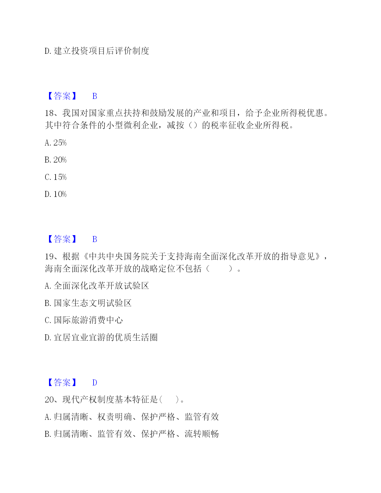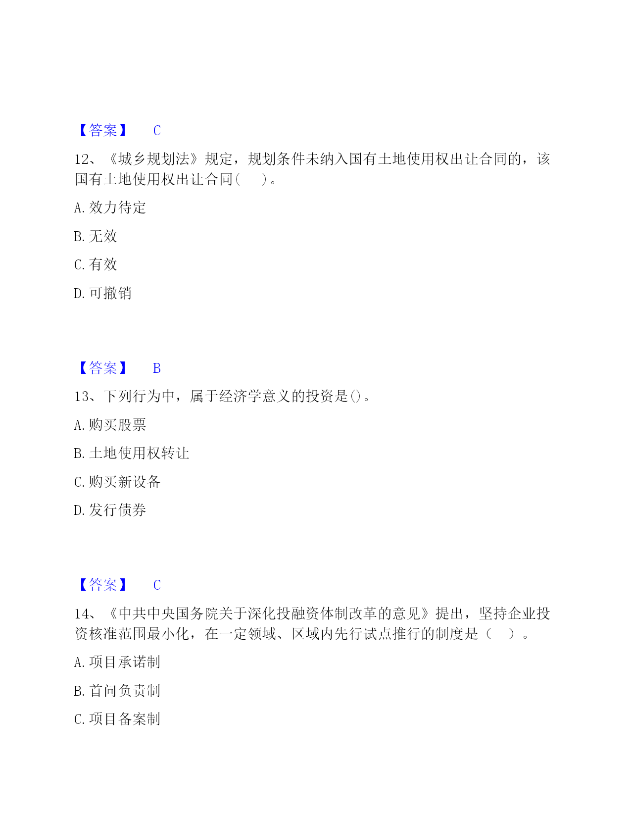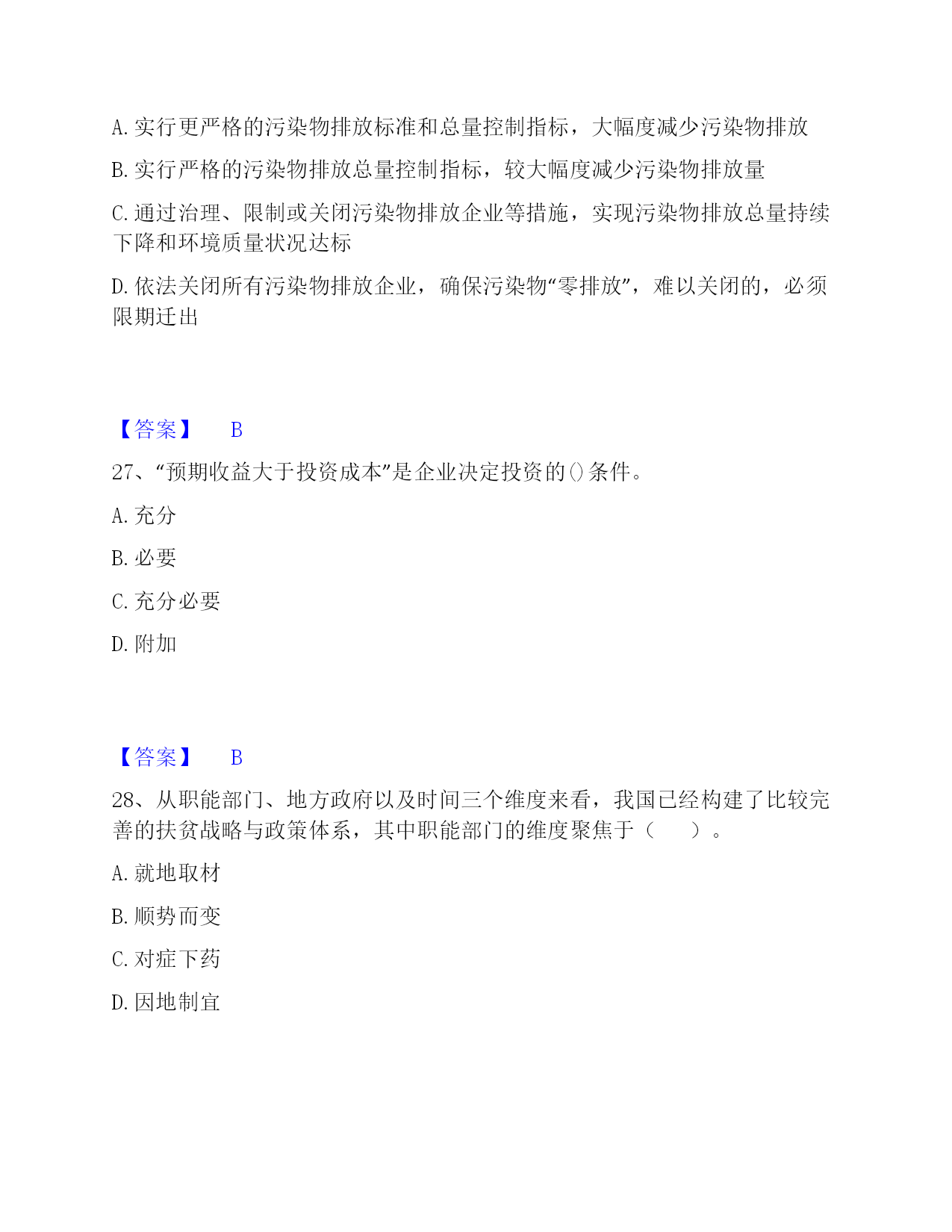 2023年咨询工程师之宏观经济政策与发展规划高分通关题库A4可打印版单选题(共50题)1、根据宏观经济理论,政府稳定经济的政策主要是通过影响()而发生作用。A.价格水平B.生产率C.经济结构D.总需求【答案】D2、集成电路产业和()是信息产业的核心。A.芯片产业B.软件产业C.硬件产业D.制造产业【答案】B3、设某一年度固定资产价值为2OOO亿元,上一年度固定资产价值为1000亿元;同期新增国内生产总值5000亿元,投资完成总额为2500亿元。则当年固定资产交付使用率为()A.20%B.40%C.50%D.80%【答案】B4、下列货币指标中,最能反映企业资金松紧状况的是()A.流通中的现金B.狭义货币供应量C.广义货币供应量D.基础货币【答案】B5、在经济较为发达以后,产业布局政策的侧重点就会转变为强调地区经济发展的()。A.均等性B.均衡性C.先进性D.非均衡性【答案】B6、根据《关于加强固定资产投资项目资本金管理的通知》(国发〔2019〕26号),我国境内投资的下列项目,不适用于项目资本金制度的是()。A.政府投资的经营性项目B.企业投资项目C.政府投资的非经营性项目D.国有企业投资项目【答案】C7、通过分析水、土地、森林等自然资源的数量、质量、结构等特征及变化趋势,对比国家、省域平均情况,对标国际和国内,总结资源环境禀赋优势和短板,这是综合分析中的()。A.资源环境禀赋分析B.现状问题和风险识别C.潜力分析D.情景分析【答案】A8、在汇率制度的安排上,目前世界上多数国家实行的是()A.固定汇率制度B.金本位制度C.自由浮动汇率制度D.有管理的浮动汇率制度【答案】D9、按照国家规定需要有关部门批准或者核准的建设项目,以划拨方式提供国有土地使用权的,建设单位在报送有关部门批准或者核准前,应当向城乡规划主管部门申请核发()。A.选址意见书B.建设用地规划许可证C.建设工程规划许可证D.规划条件通知书【答案】A10、下列市场类型中,垄断程度最高的是()。A.寡头市场B.垄断市场C.垄断竞争市场D.完全竞争市场【答案】B11、根据《关于加快推进生态文明建设的意见》,关于建立体现生态文明要求的政绩考核制度的说法,正确的是()。(新教材已删除)A.把资源消耗、生态效益等指标纳入经济社会发展综合评价体系,适度增加考核权重B.对重点开发区域,取消地区生产总值考核C.对禁止开发的重点生态功能区,重点评价其自然文化资源的原真性、完整性D.对所有国家扶贫开发工作重点县,取消地区生产总值考核【答案】C12、《城乡规划法》规定,规划条件未纳入国有土地使用权出让合同的,该国有土地使用权出让合同()。A.效力待定B.无效C.有效D.可撤销【答案】B13、下列行为中,属于经济学意义的投资是()。A.购买股票B.土地使用权转让C.购买新设备D.发行债券【答案】C14、《中共中央国务院关于深化投融资体制改革的意见》提出,坚持企业投资核准范围最小化,在一定领域、区域内先行试点推行的制度是()。A.项目承诺制B.首问负责制C.项目备案制D.项目责任制【答案】A15、主体功能区按层级,分为()。A.国家和省级两个层面B.国家、省级和市级三个层面C.省级和市级两个层面D.国家、省级、市级和县级四个层面【答案】A16、经济学中用于说明国民收入变动对投资变动影响的理论是()。A.加速数原理B.乘数原理C.边际原理D.效用原理【答案】A17、我国实行项目法人责任制的主要目的是()。A.建立投资项目监管长效机制B.建立投资责任约束机制C.建立投资决策科学化机制D.建立投资项目后评价制度【答案】B18、我国对国家重点扶持和鼓励发展的产业和项目,给予企业所得税优惠。其中符合条件的小型微利企业,减按()的税率征收企业所得税。A.25%B.20%C.15%D.10%【答案】B19、根据《中共中央国务院关于支持海南全面深化改革开放的指导意见》,海南全面深化改革开放的战略定位不包括()。A.全面深化改革开放试验区B.国家生态文明试验区C.国际旅游消费中心D.宜居宜业宜游的优质生活圈【答案】D20、现代产权制度基本特征是()。A.归属清晰、权责明确、保护严格、监管有效B.归属清晰、监管有效、保护严格、流转顺畅C.归属清晰、权责明确、保护严格、流转顺畅D.监管有效、权责明确、保护严格、流转顺畅【答案】C21、中国特色社会主义事业战略布局是()。A.四个全面B.五位一体