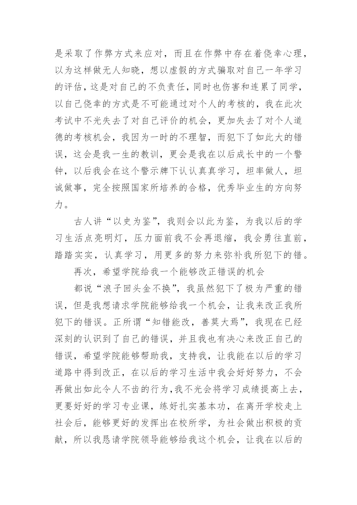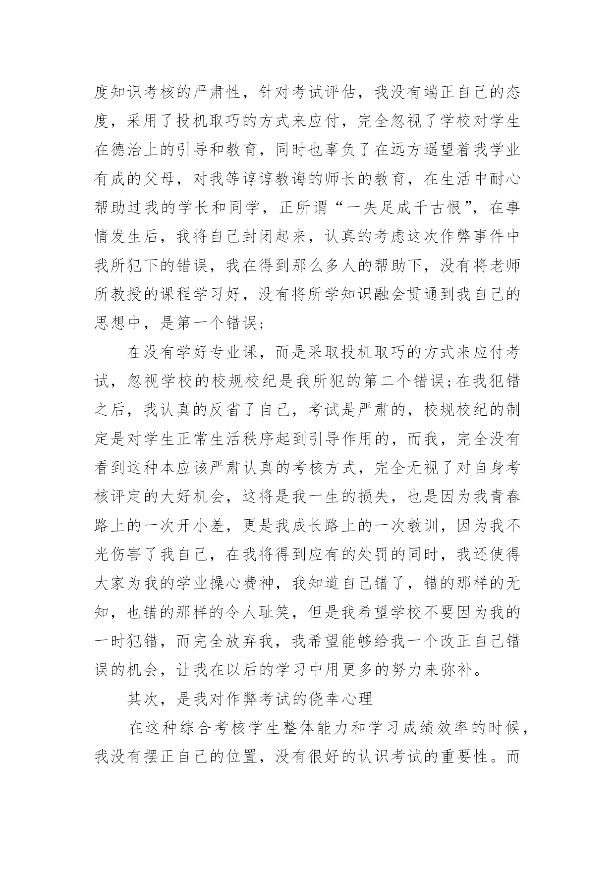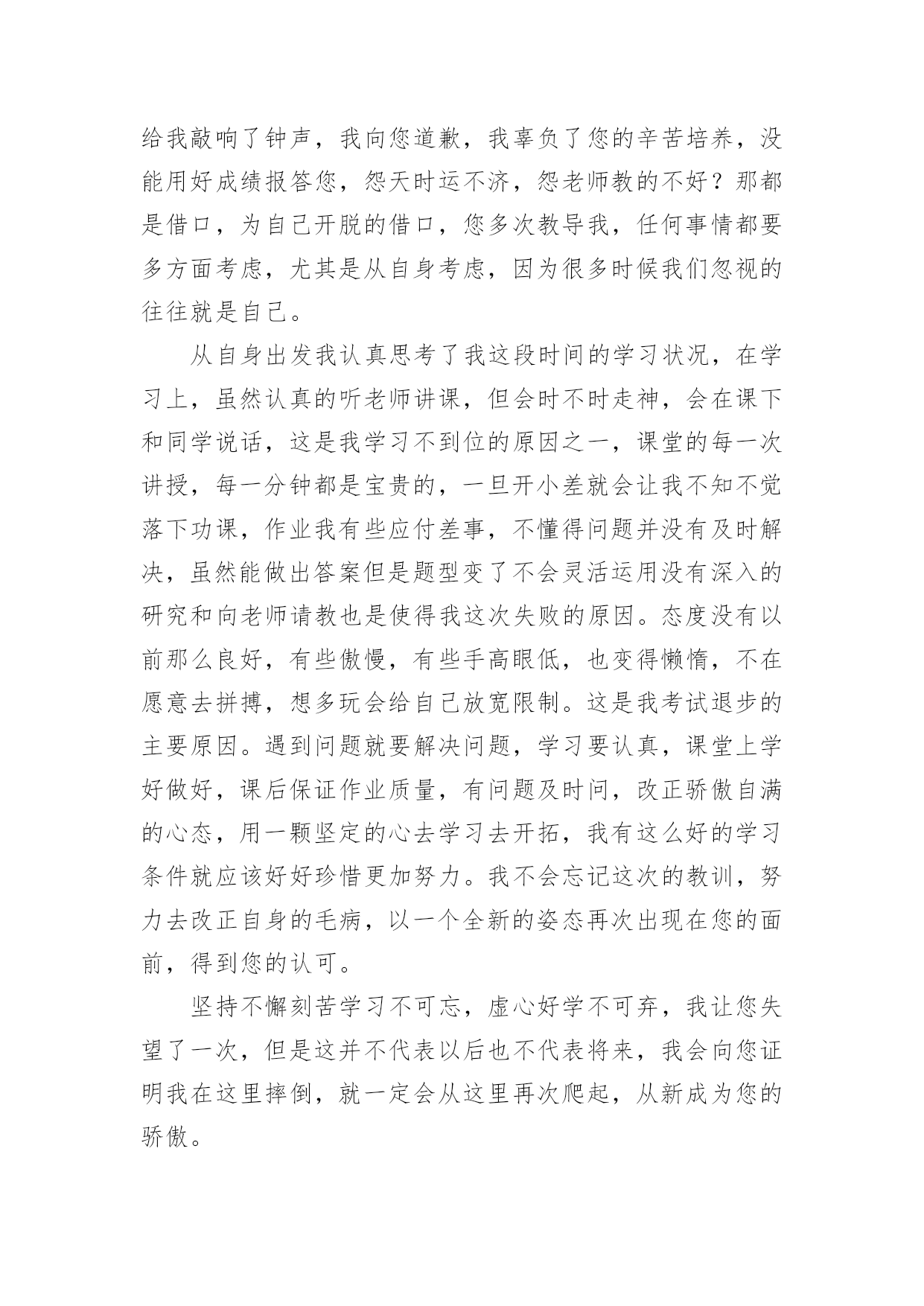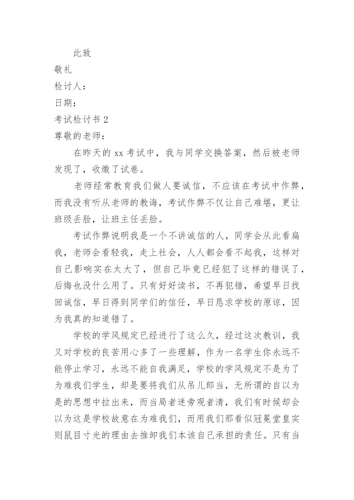 考试检讨书考试检讨书在学习、工作或生活中出现了过错后,为了表明自己悔改的决心,我们通常要用检讨书来悔过自新,我们在写检讨书的时候要注意语言的得体性。那么问题来了,到底应如何写检讨书呢?下面是小编为大家收集的考试检讨书,仅供参考,大家一起来看看吧。考试检讨书1尊敬的老师:您好!期末考试结束了,成绩也经过老师的认真批改出来了,当我看到自己的成绩,那触目惊心的排名,感到非常的失落,老师您对我的期望挺高的,但我却让您失望了,对不起。骄傲使人自满是的,我被期中的成绩蒙蔽了双眼,在期中考试获得了好成绩后就对自己放松了,对自己的要求也降低了,没有以往的那种拼搏精神,也没有了以前的刻苦。期末考试检验了我这段时间的情况,让我从那不可一世的傲慢中苏醒,让我从堕落中抬头,奋进。失败不可怕,可怕的是一次跌倒,永远都爬不起来,顺境让我一路高歌,没有遇到过挫折,也使我慢慢变了,变得没有以前纯粹。老师虽然这次我成绩倒退了但这次的考试也给我敲响了钟声,我向您道歉,我辜负了您的辛苦培养,没能用好成绩报答您,怨天时运不济,怨老师教的不好?那都是借口,为自己开脱的借口,您多次教导我,任何事情都要多方面考虑,尤其是从自身考虑,因为很多时候我们忽视的往往就是自己。从自身出发我认真思考了我这段时间的学习状况,在学习上,虽然认真的听老师讲课,但会时不时走神,会在课下和同学说话,这是我学习不到位的原因之一,课堂的每一次讲授,每一分钟都是宝贵的,一旦开小差就会让我不知不觉落下功课,作业我有些应付差事,不懂得问题并没有及时解决,虽然能做出答案但是题型变了不会灵活运用没有深入的研究和向老师请教也是使得我这次失败的原因。态度没有以前那么良好,有些傲慢,有些手高眼低,也变得懒惰,不在愿意去拼搏,想多玩会给自己放宽限制。这是我考试退步的主要原因。遇到问题就要解决问题,学习要认真,课堂上学好做好,课后保证作业质量,有问题及时问,改正骄傲自满的心态,用一颗坚定的心去学习去开拓,我有这么好的学习条件就应该好好珍惜更加努力。我不会忘记这次的教训,努力去改正自身的毛病,以一个全新的姿态再次出现在您的面前,得到您的认可。坚持不懈刻苦学习不可忘,虚心好学不可弃,我让您失望了一次,但是这并不代表以后也不代表将来,我会向您证明我在这里摔倒,就一定会从这里再次爬起,从新成为您的骄傲。此致敬礼检讨人:日期:考试检讨书2尊敬的老师:在昨天的xx考试中,我与同学交换答案,然后被老师发现了,收缴了试卷。老师经常教育我们做人要诚信,不应该在考试中作弊,而我没有听从老师的教诲,考试作弊不仅让自己难堪,更让班级丢脸,让班主任丢脸。考试作弊说明我是一个不讲诚信的人,同学会从此看扁我,老师会看轻我,走上社会,人人都会看不起我,这样对自己影响实在太大了,但自己毕竟已经犯了这样的错误了,后悔也没什么用了。只有好好读书,不再犯错,希望早日找回诚信,早日得到同学们的信任,早日恳求学校的原谅,因为我真的知道错了。学校的学风规定已经进行了这么久,经过这次教训,我又对学校的良苦用心多了一些理解,作为一名学生你永远不能停止学习,永远不能自我满足,学校的学风规定不是为了为难我们学生,却是要将我们从吊儿郎当,无所谓的自以为是的思想中拉出来,而当局者迷旁观者清,我们有时候却会以为这是学校故意在为难我们,而用我们那看似冠冕堂皇实则鼠目寸光的理由去推卸我们本该自己承担的责任。只有当我们真正理解了学校的规定是对我们改善和发展,理解我们已经长大,肩负着自己是一名学生,理解我们自己应该越来越优秀越来越进步,而不是随波逐流,任意妄为,这才是一名合格的xxx学校的学生。所谓苦口良言,每一个学校都希望自己的学生做到品学兼优,全面发展,以便在将来的社会道路中能一路顺风,也使我们的学校有一个良好形象。检讨人:xxx20xx年x月x日考试检讨书3尊敬的校领导,系领导,你们好:我是xx大学xx学院xx专业xx级的一名学生,我叫xx,在参加年度高数考试中作弊,现在我面对大家做最为深刻的检讨书。针对此次我的考试作弊,完全是因为一时的侥幸心理和对自己没有自信导致,并不是因为学习中的困难和专业知识的匮乏导致,对于这件事,我深刻的剖析了自己的错误,我深知问题的严重性,影响的广泛性和对学校的负面影响深度,现在我将我的认识和体会向大家做一个汇报,希望能在我知道和反省错误的同时,给予我帮助和支持,让我能在以后的学习和工作生活中,摒弃恶习,扎实学好专业课,做一个对社会有用的人。首先,是我对专业课考试的认识不够在此次考试中,我没有认识到考试的重要性和对学生年度知识考核的严肃性,针对考试评估,我没有端正自己的态度,采用了投机取巧的方式来应付,完全忽视了学校对学生在德治上的引导和教育,同时也辜负了在远方遥望着我学业有成的父母,对我等谆谆教诲的师长的教育,在生活中耐心帮助过我的学长和同学,