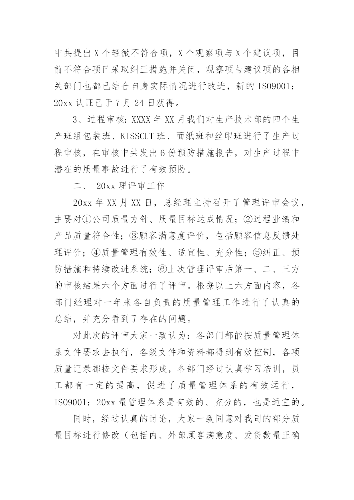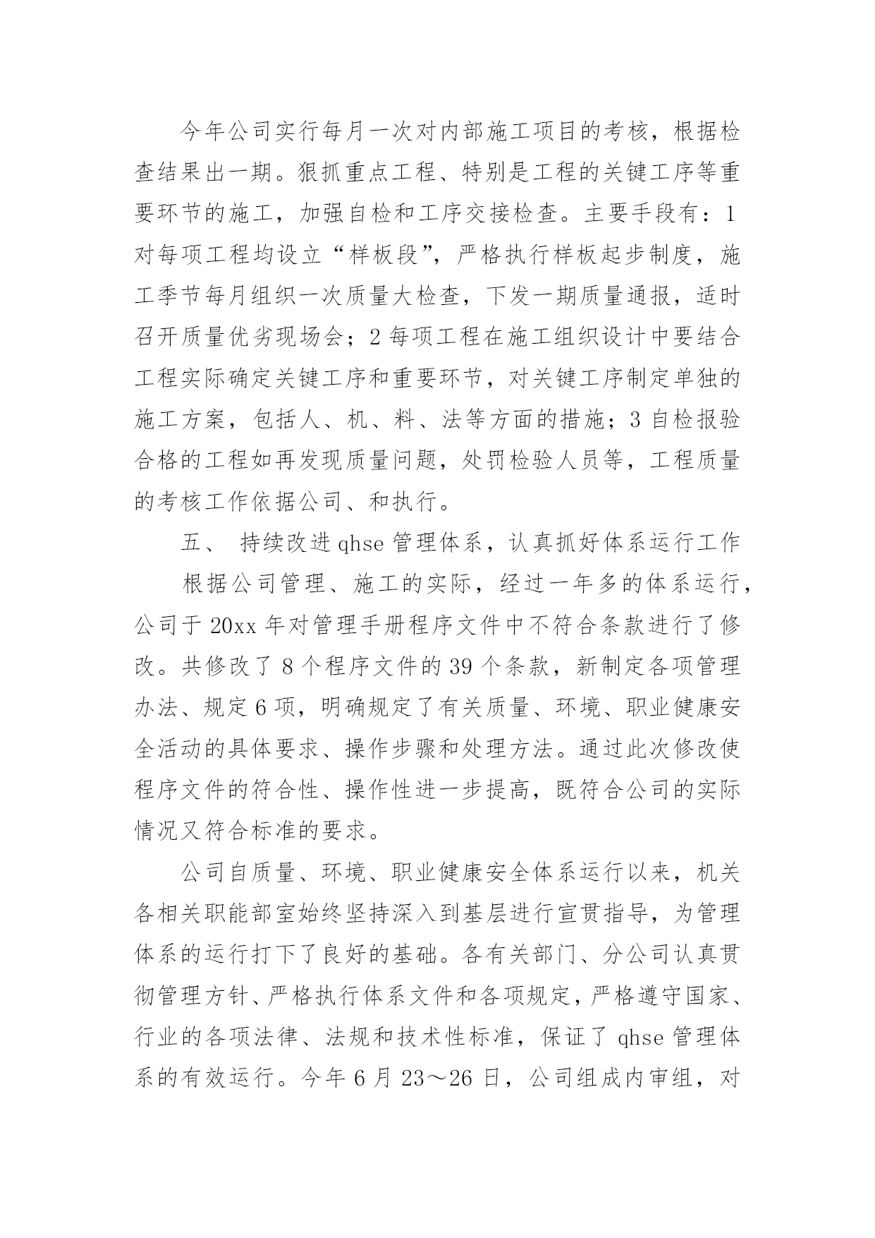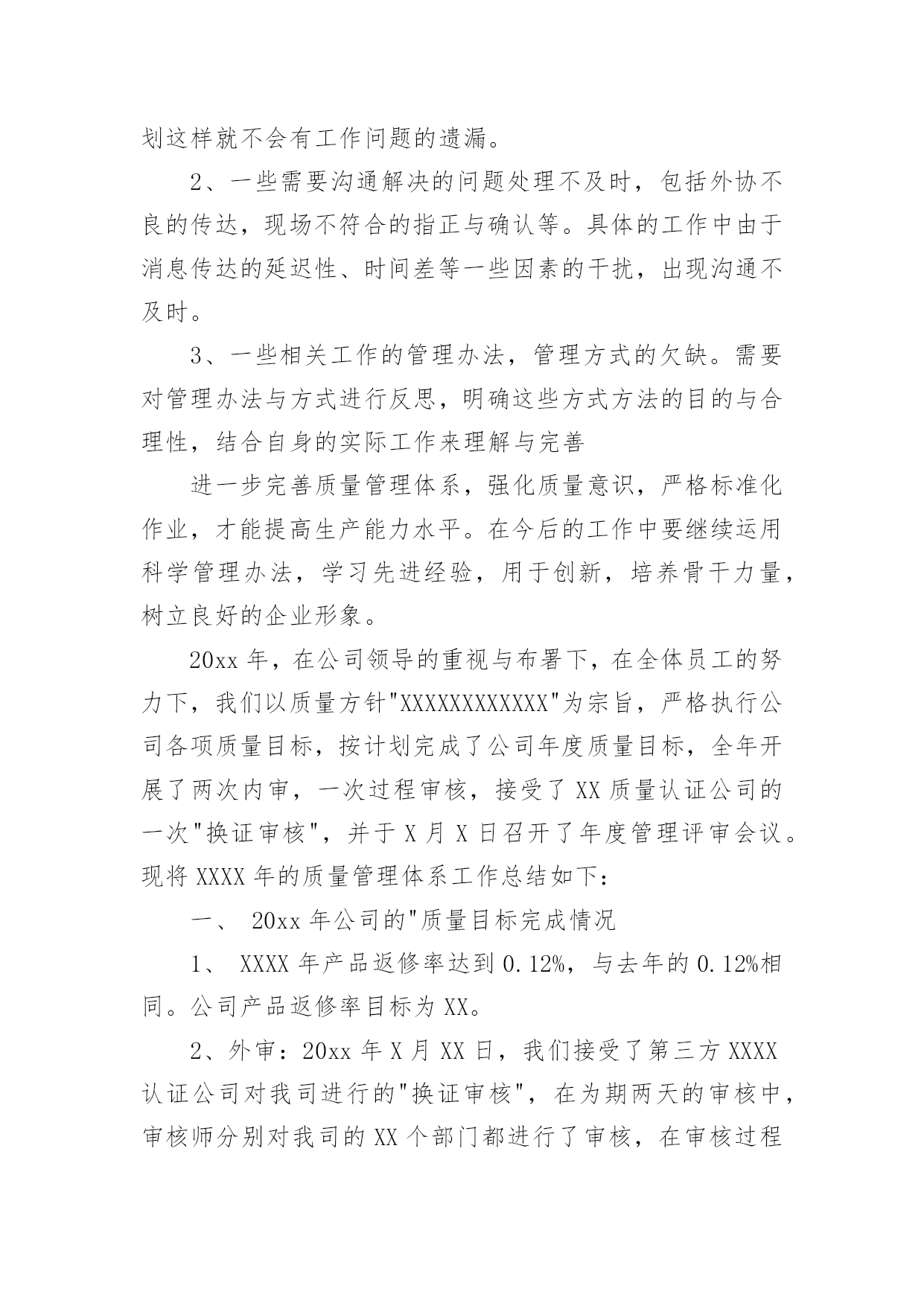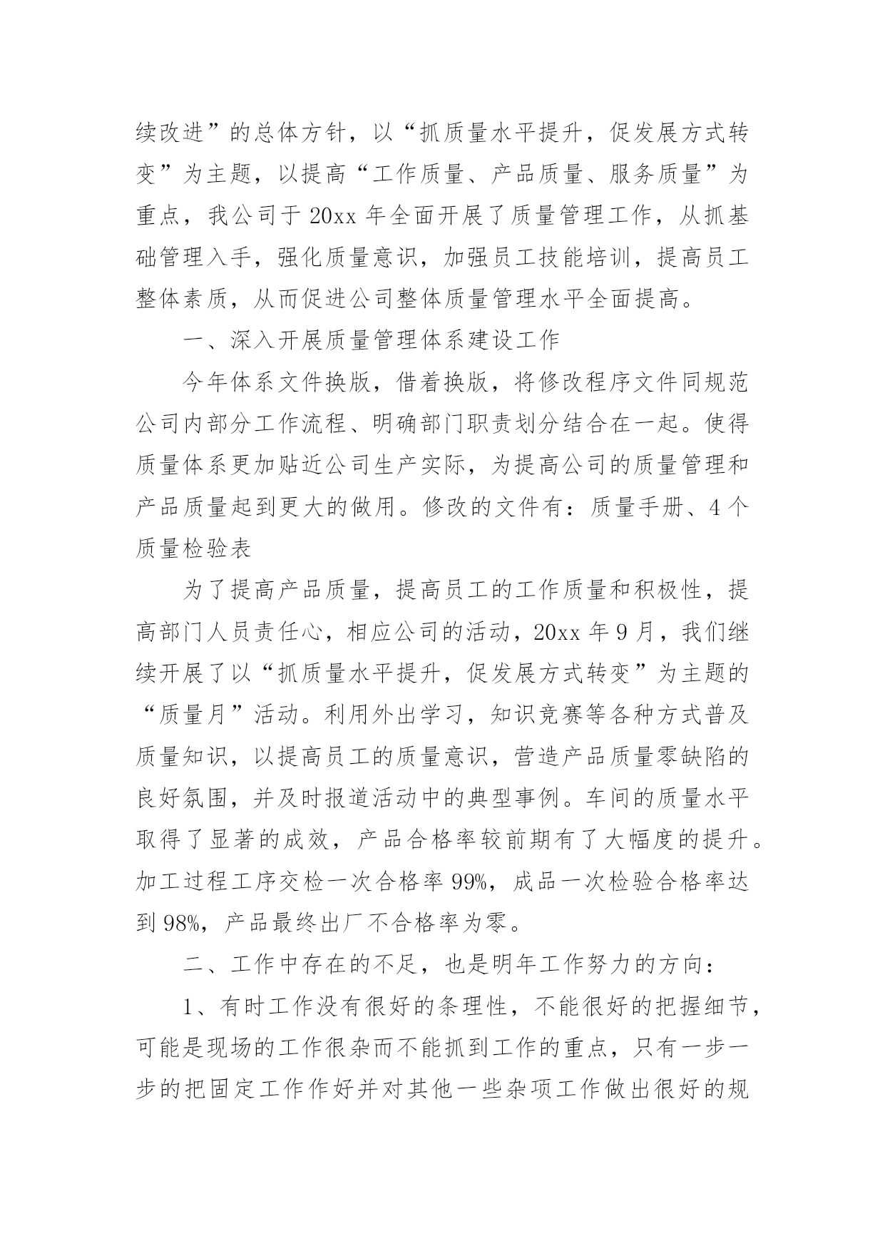 质量工作总结质量工作总结总结是指社会团体、企业单位和个人在自身的某一时期、某一项目或某些工作告一段落或者全部完成后进行回顾检查、分析评价,从而肯定成绩,得到经验,找出差距,得出教训和一些规律性认识的一种书面材料,它能使我们及时找出错误并改正,不妨坐下来好好写写总结吧。那么总结应该包括什么内容呢?下面是小编精心整理的质量工作总结,仅供参考,大家一起来看看吧。质量工作总结1公司技术、质量、科技、标准化、qhse管理体系工作认真贯彻落实管理局和建设集团的工作要求,紧紧围绕公司一届二次职代会精神和公司经营改革总体方案,坚持“遵守承诺让业主满意,追求卓越建优质路桥”的质量方针,夯实技术质量基础工作,完善监督考核约束机制,全面实施名牌战略和科技创新方案,全力打造精品工程,为用户提供满意服务,取得了较好的效果。目前公司内外部工程已有40项通过了竣工验收,一次验交合格率100%,分项工程优良率93.8%,其中已有5项工程申报了局和油田优质工程,创业广场、乘二广场拟申报省优质工程,已完成了年初确定的质量目标。下面就一年来的技术、质量、科技、标准化、qhse管理体系运行等工作总结如下:一、完善各项管理制度,建立健全技术质量保证体系今年初,针对公司生产经营实际,对公司和进行了修订、完善,并提交公司职代会讨论通过。明确了外部项目经理和内部分公司经理为工程质量第一责任人;确定了充实完善现有路基、路面、大中型桥梁、城市给排水、路灯照明施工技术和拓宽发展核心技术的科技创新方案;同时,制定了外部工程技术质量管理办法和技术质量管理工作要点;修改了公司qhse管理体系文件,明确了职责,落实了责任。外部工程项目部均设置了项目总工,内部工程建立了技术质量组织机构。一年来各级管理人员都能履行其职责,并认真执行公司技术质量管理的各项管理制度和规定。二、不断增强为用户提供满意服务的质量意识,树品牌工程为提高公司的施工信誉,树立公司形象,年初针对去年“庆五路”质量问题,在全公司范围内展开了“质量大讨论”,取得了显著效果。特别是第四分公司,他们结合实际分析影响摊铺质量的多种原因,制定相应措施,提出了底层达不到要求不摊铺;人、机、设备不符合要求不摊铺;油砂质量不合格不摊铺的“三不摊铺”原则,使今年的摊铺质量明显好于往年。为达到用户满意,征求业主的意见,了解用户的需求,三月份公司对在保修期内的66项工程进行了质量回访,对15项存在不同性质质量问题的工程,逐一分析原因,制定措施,落实整改时间和责任人,受到了广大用户的好评。今年在位于采油七厂厂区的民意路工程施工中,由于该工程投资不足,设计标准较低,为了达到用户满意,重塑公司在七厂的形象,公司党政领导亲临现场召开现场办公会研究方案,并确定了该工程宁愿一分钱不赚,也要保证质量,达到用户满意的宗旨。公司技术质量部协同施工单位二、四分公司技术人员反复测量计算,并针对工程的每个部位制定了详细的施工方案,该工程最终受到了七厂领导及居民的高度评价,并给公司写来了表扬信,又给四分公司追加了80余万元的摊铺任务。在乘二广场、创业广场的施工中,由于设计存在有与事实不符或没有设计方案的情况,施工单位一、二、四、六、八分公司出于高度负责的态度,顾全大局,树立了为用户提供满意服务的质量意识,主动与监理和业主沟通,提出我们的方案。为保证质量,不计较给增加工程量的多与少,精心施工,为保证广场路面排水通畅,六分公司主动增设设计外的雨水口十余处,对业主临时性的要求,一、二分公司积极响应,在工期紧,质量要求高,交叉作业多的情况下,两个广场保质保量地完成了任务,受到了局领导、当地居民以及业主的高度赞扬。三、以技术指导施工,以质量创信誉以技术指导施工,使多项工程保质保量地完成,在每个工程开工前,项目部均制定了具体施工组织设计或施工方案,为了使方案更加科学合理有效,各项工程分别召开了施工方案汇报研究会,结合人力、设备、材料、技术等实际,确定各分部、分项工程的施工方案,以技术指导施工,加大技术复核力度。特别是在乘二广场、创业广场的施工中,由于该工程的特点:分部、分项工程杂,技术难度大,质量要求高,交叉作业多,专业种类复杂,广场面积大,我们制定了详细的施工工法和质量内控标准,优化队伍,对操作人员认真详细地进行技术交底并落实责任。在广场砖铺装时,由于开始经验不足,技术掌握不熟练,对达不到质量要求的部位曾多次返工推倒从来,为此,加大了技术指导和质量监督力度,在创业广场配置12人,进行广场砖的铺装指导和质量监督。对喷泉、雕塑施工,采取了供料负责安装的方法,控制了各类装饰材料的质量和安装质量,并加大对其技术复核,设专人负责取得了较好效果。今年7~8月份雨季施工中,针对今年雨季时间长,后期西一路、东一路、小ⅰ-ⅱ区道路等工程土方量大的实际,在土方路基施工中,优化施工方案,以技术指导施