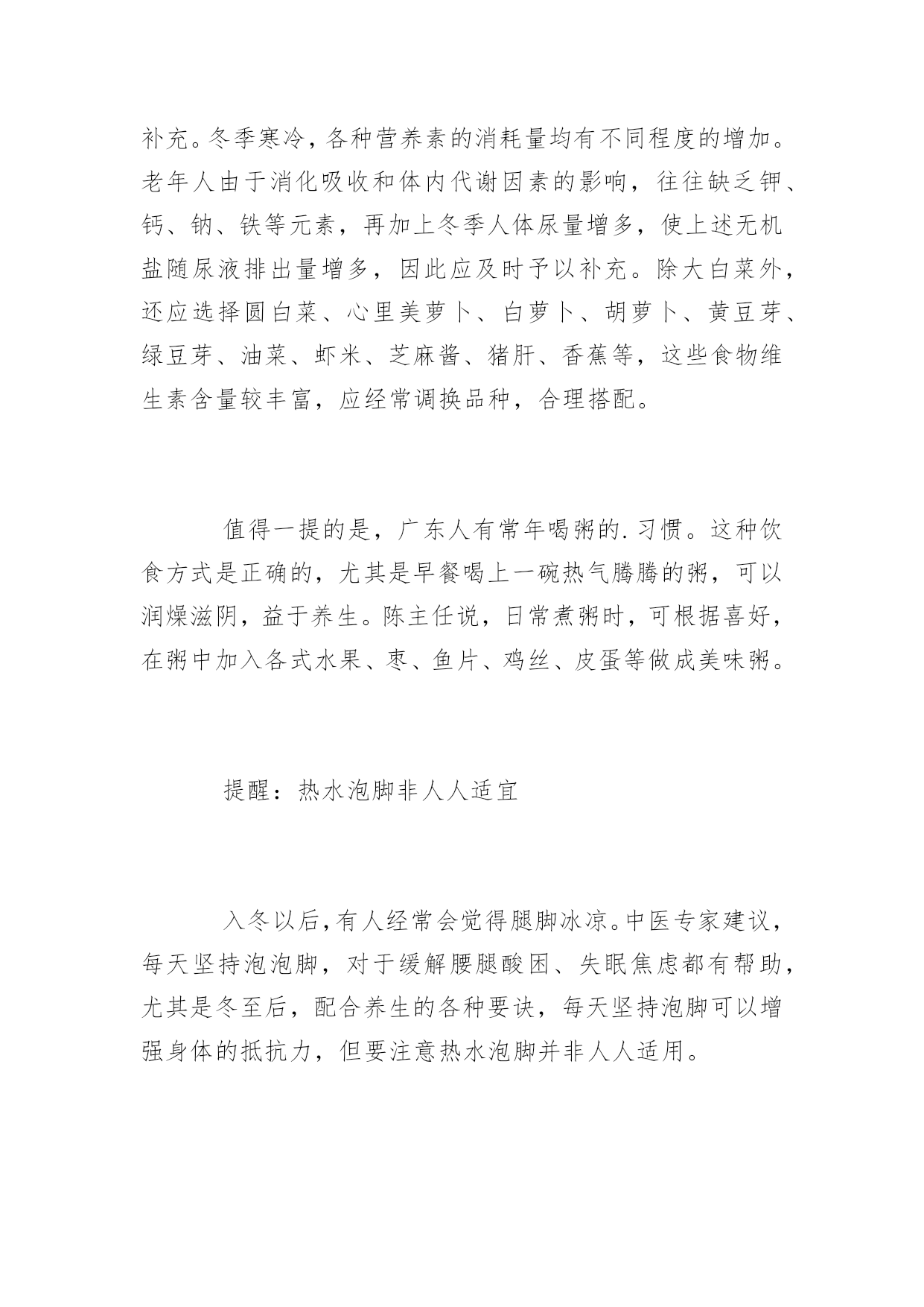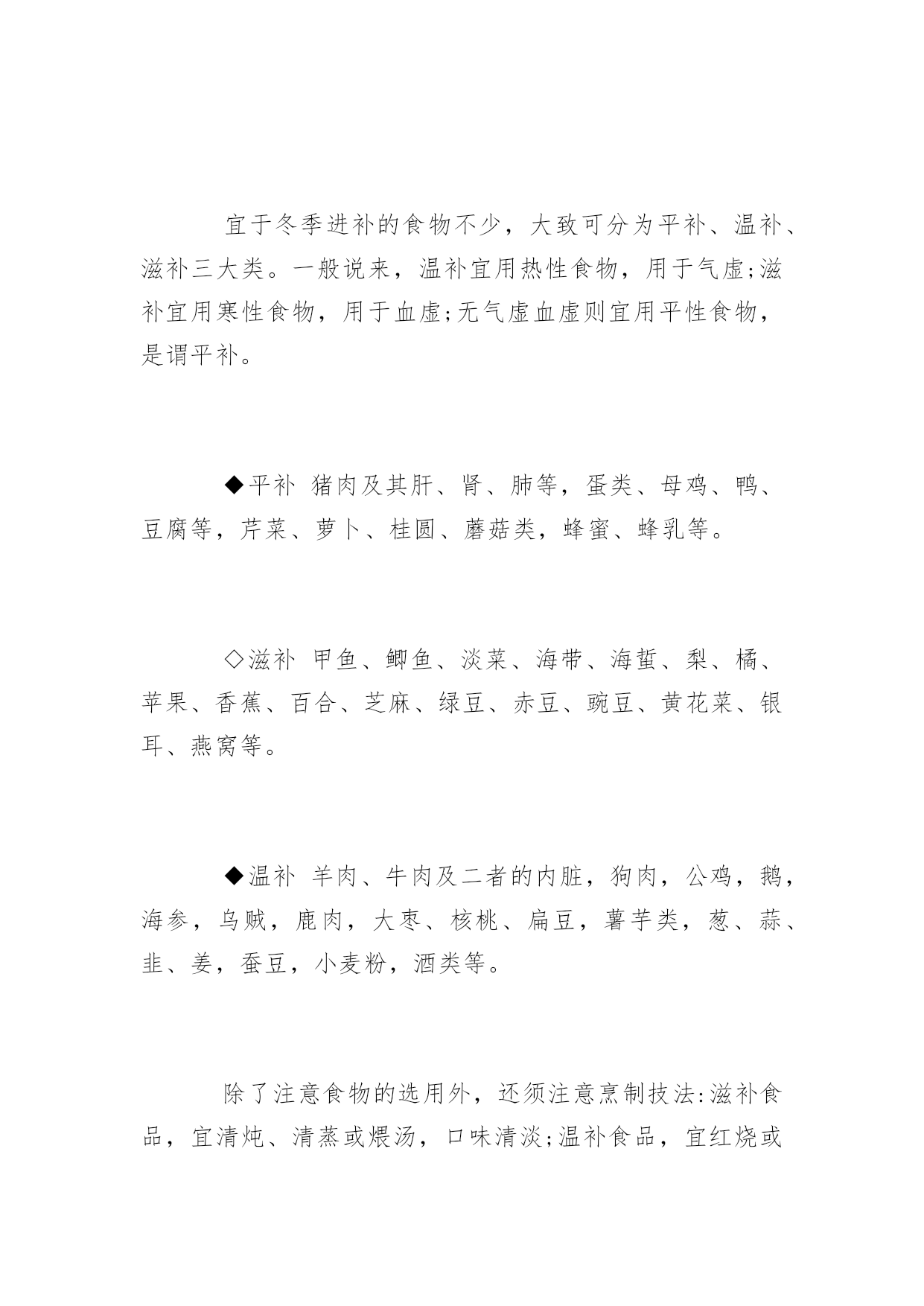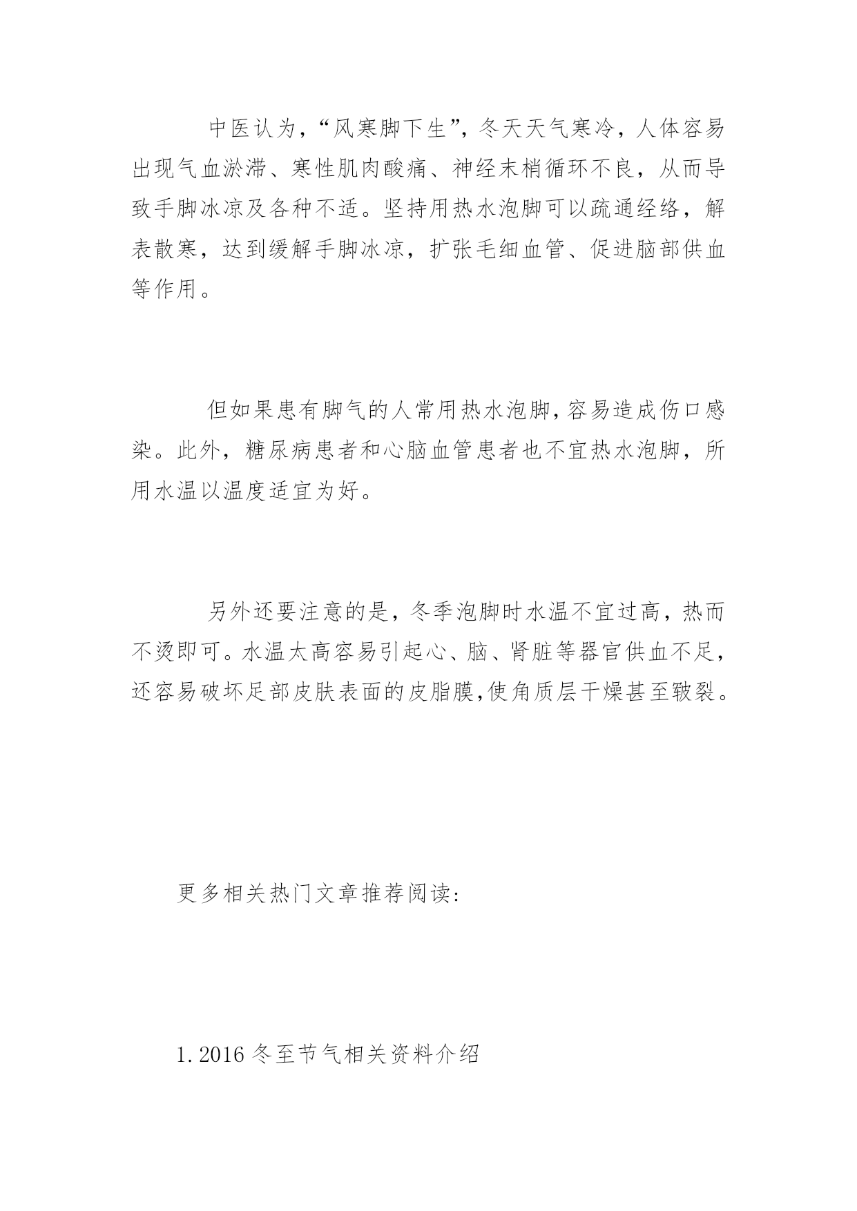 冬至的相关资料简介2016冬至的相关资料简介导语:俗话说“冬至大如年”,冬至是二十四节气中最早制订出的一个,是中国农历中一个重要的节气,冬至俗称“冬节”、“长至节”、“亚岁”等。下面小编就给大家介绍一下冬至的相关知识。2016冬至时间:2016年12月21日农历十一月廿三星期三冬至的来源冬至是24节气中最早被制订的一个,然而多数人并不知道,冬至的起源居然是来自于一次国家层面的都城规划。早在3000多年前,周公始用土圭法测影,在洛邑测得天下之中的位置,定此为土中,这在当时有着政治意义的举动,却成了影响后世几千年的节日之一。周公到洛阳,用土圭法测得洛阳所处的地方即为“天下之中”,然后开始占卜国家社稷的吉地。《尚书·洛诰》记载:周公“朝至于洛师”,对洛阳周边的几个地方做了考察,最后确定涧水东、瀍水西、瀍水东皆“惟洛食”(都是兴建宗庙社稷的好地方)[3]。周公通过“土圭测景”选定洛邑基址的史实,被载入了古代典籍,也被后人奉为封邦建国的.成法。“土圭测景”的目的是找出“土中”(中国的中心)。这种方法的要义是“树八尺之表,夏至日,景长尺有五寸;冬至日,景长一丈三尺五寸”(即竖起高为8尺的标杆,在夏至日观测,中午的日影是1.5尺,冬至日中午的日影是13.5尺),“测土深,正日影,求地中,验四时”。用这种方法测到的就是“土中”洛阳、“洛邑”的理论位置。依周公测影所定的天下之中,周人详细规划了灭商后的第一座国家都城,《逸周书·作雒》载:“乃作大邑成周于土中,……南系于洛水,北因于邙山,以为天下之大凑。”[4]。“定天保,依天室”,国家社稷(都城、宗庙)完成之后,周公在成周明堂制礼作乐,详细制订了国家礼仪制度,据记载,周代以冬十一月为正月,以冬至为岁首过新年,也就是说,周公选取的是经土圭法测得的一年中“日影”最长的一天,为新的一年开始的日子。由周到秦,以冬至日当作岁首一直不变。至汉代依然如此,《汉书》有云:“冬至阳气起,君道长,故贺……”也就是说,人们最初过冬至节是为了庆祝新的一年的到来。古人认为自冬至起,天地阳气开始兴作渐强,代表下一个循环开始,是大吉之日。因此,后来一般春节期间的祭祖、家庭聚餐等习俗,也往往出现在冬至。冬至又被称为“小年”,一是说明年关将近,余日不多;二是表示冬至的重要性。把冬至作为节日来过源于周代,盛于唐宋,并相沿至今。周历的正月为夏历的十一月,因此,周代的正月等于如今的十一月,所以拜岁和贺冬并没有分别。直到汉武帝采用夏历后,才把正月和冬至分开。因此,也可以说专门过“冬至节”是自汉代以后才有,盛于唐宋,相沿至今。冬至吃什么1.饺子传说中,河南名医张仲景因记挂穷乡亲们,冬至那天,在南阳东关空地上搭起医棚,向穷人舍“祛寒娇耳汤”(“娇耳”即现在的饺子),使人吃了以后只觉浑身温暖,两耳发热。Tips祛寒娇耳汤做法先把羊肉、辣椒和一些祛寒的药材放在锅里熬煮,等煮熟后,将羊肉及药材捞起切碎,用面皮包成耳朵样子的“娇耳”,再下锅煮熟。每人一大碗汤,两双娇耳。2.馄饨老北京有“冬至馄饨夏至面”的说法。《燕京岁时记》云:“夫馄饨之形有如鸡卵,颇似天地混沌之象,故于冬至日食之。”除了形态相似,“馄饨”也与“混沌”谐音。3.汤圆在江南地区,汤圆是冬至的必备食品。这是一种用糯米粉制成的圆形甜品,“圆”意味着团圆、圆满,冬至吃的汤圆又叫“冬至团”。古人有诗云:“家家捣米做汤圆,知是明朝冬至天。”汤圆又分“粉团”和“粉圆”两种,《清嘉录》曰:“有馅而大者为粉团,冬至夜祭先品也;无馅而小者为粉圆,冬至朝供神品也。”4.羊肉北方不少地方有冬至吃狗肉和羊肉的`习俗,中医认为,羊肉、狗肉都有壮阳补体的功效。事实上,在江南地区,苏州人从冬至这天起也开始进补,所吃的正是驰名中外的吴中藏书羊肉。5.萝卜民间有言:“冬至萝卜夏至姜,适时进食无病痛。”又说:“冬季萝卜赛过小人参。”在冬至夜,正适合炖上一锅热乎乎的萝卜排骨汤,一家人团团圆圆,过这个历史悠久的“亚岁”节。宜于冬季进补的食物不少,大致可分为平补、温补、滋补三大类。一般说来,温补宜用热性食物,用于气虚;滋补宜用寒性食物,用于血虚;无气虚血虚则宜用平性食物,是谓平补。◆平补猪肉及其肝、肾、肺等,蛋类、母鸡、鸭、豆腐等,芹菜、萝卜、桂圆、蘑菇类,蜂蜜、蜂乳等。◇滋补甲鱼、鲫鱼、淡菜、海带、海蜇、梨、橘、苹果、香蕉、百合、芝麻、绿豆、赤豆、豌豆、黄花菜、银耳、燕窝等。◆温补羊肉、牛肉及二者的内脏,狗肉,公鸡,鹅,海参,乌贼,鹿肉,大枣、核桃、扁豆,薯芋类,葱、蒜、韭、姜,蚕豆,小麦粉,酒类等。除了注意食物的选用外,还须注意烹制技法:滋补食品,宜清炖、清蒸或煨汤,口味清淡;温补食品,宜红烧或酱卤,口味浓重;平补食品,可二法兼用,口味则以平和为主。冬至如何养生?