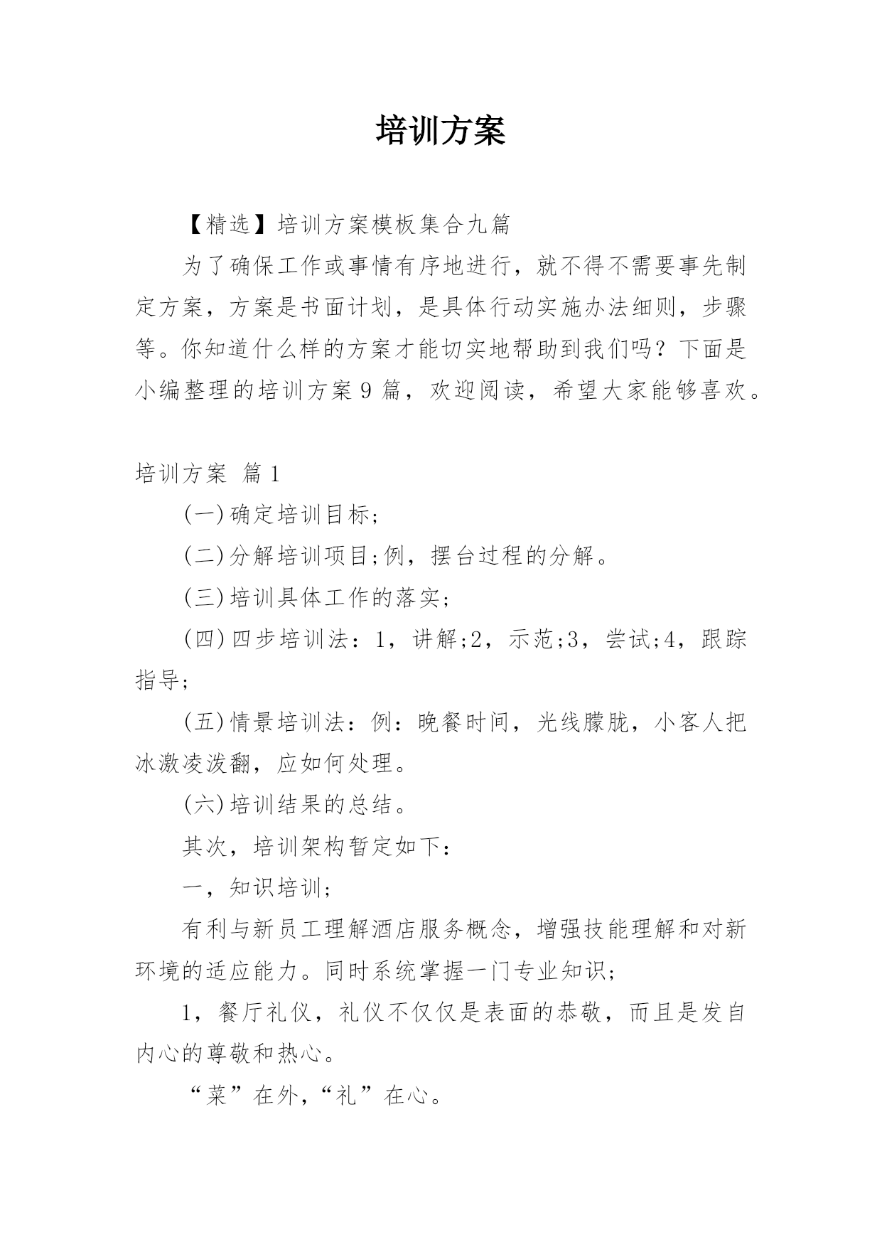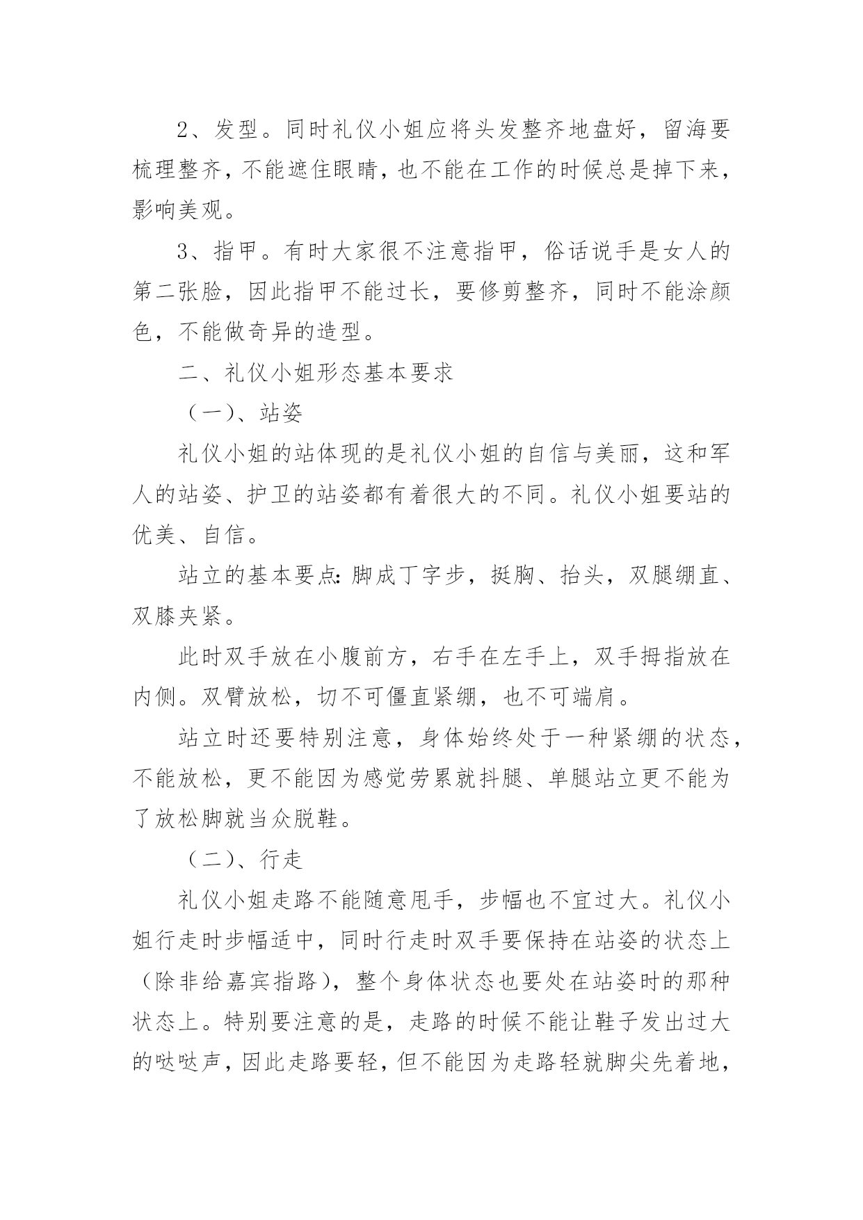 培训方案【必备】培训方案汇编八篇为了确保事情或工作有序有效开展,时常需要预先制定方案,方案是解决一个问题或者一项工程,一个课题的详细过程。那么大家知道方案怎么写才规范吗?下面是小编帮大家整理的培训方案8篇,欢迎大家借鉴与参考,希望对大家有所帮助。培训方案篇1前言:从大一入校到现在,我先后在社团联的礼仪队、校艺术团的礼仪队从事礼仪服务工作,而今我已经是校艺术团礼仪队的队长了,有感于要去呈贡培训新的礼仪,同时也想把我之前的工作进行一个总结,因此我写了这个学校礼仪培训,希望能和大家分享。需要说明的是,我本身不是专业的礼仪,如果有什么说的不对的地方希望大家批评指正,如果大家有补充也希望大家能回复留言哦~!学校作为社会组织的一种,也有自己的公众形象。同时学校也有着非常多的颁奖仪式、文艺活动,另外由于经常进行大型的学术交流会、每个学年要进行的迎接新生、举办开学典礼等诸多活动,因此大学校园里经常需要礼仪。而这些礼仪基本上都是由学校的学生担任。可学生终归不是真正的礼仪小姐,没有接受过正式的培训,但既然是礼仪小姐自然就代表了学校的形象,因此我觉得每一位做礼仪的同学都应该注意一些细节问题,同时也适当补充一些礼仪知识。结合一段时间以来我自身的经验,我把学校需要礼仪的活动大致分成了文艺活动、各项会议、领导接待这三类,而这些活动大多涉及到了迎宾、会场服务、颁奖、引领这四大项。根据不同的场合、面对不同的人和事可能有些许的不同,但大致上是有一定规律可循的。而贯穿整个礼仪活动的除了具体的工作外,更重要的是礼仪小姐自身的素质。作为在校学生的礼仪,或许没有特别多的专业技巧,但如果本身可以落落大方能凸显出大学生身上的气质也会给学校的礼仪活动增添不少的光彩。那我们就从礼仪小姐自身开始,探讨一下学校的礼仪工作吧。一、对礼仪小姐自身的要求(一)、着装一般来说,一场学校活动中所有礼仪小姐的着装都是相同的,当然如果是大型活动也会根据工作分工不同,有不同的着装。以我们学校为例,我们的礼仪服主要是旗袍和套装两种。旗袍主要用于文艺活动、颁奖典礼、迎宾接待等带有喜庆色彩、庆祝性质的活动中,而套装更多的用在一些正式的场合,如会议等。但不管身着何种服装都要注意以下几点:1、套装穿着要利索。这里所谓利索即是要把衬衣揶进裙子里,套装上衣要扣好所有的扣子,套装兜里不放过多的东西,衣领要完全翻好。如有领结,则需把领结系紧、放正。2、需要穿肉色长筒丝袜或连裤袜。在正式的场合穿黑色的袜子过于性感、穿彩色袜子不够正式,而这些特殊颜色的袜子不仅显的人不够庄重更破坏了整个活动的正式性。另外需要特别注意的是袜子必须是长筒丝袜或连裤袜,切不可露出袜子的边缘。3、搭配黑色的高跟鞋。由于学校的礼仪服装比较单一,搭配黑色高跟鞋是最得体最好看的。鞋子的跟不用很高,过高的鞋跟可能不便于走路,要以适宜自己行走站立的鞋子为宜。同时选择一些走起路来声音不会太大的鞋子。另外鞋子不能过于花哨,更不要选择露脚趾的鞋子。4、关于配饰。在从事礼仪活动中不能佩戴夸张的配饰,如大耳环、夸张的戒指以及手链等。为了美观和搭配的需要,可以选择小巧的耳钉、小的吊坠响亮,但都不要夸张,不能让配饰成为整个着装的焦点。5、绶带的佩戴。有时为迎接外校人士或领导,学校会要求礼仪小姐佩戴绶带,而绶带通常在一面写有学校的名字,因此佩戴时要把学校名字放在前面。同时绶带佩戴要遵循左肩右挎的原则。6、特别提醒。如今的大学生大部分都带眼睛,在礼仪工作中不宜佩戴框架眼镜,如果近视度数太深可以选择佩戴隐形眼镜。(二)、妆容1、化妆。在礼仪工作中,礼仪小姐应着淡妆。礼仪小姐所用的眼影等颜色应一致,切不可过于夸张,眼线也不能过于浓密,一切以体现淡雅、高贵的气质为宜。2、发型。同时礼仪小姐应将头发整齐地盘好,留海要梳理整齐,不能遮住眼睛,也不能在工作的时候总是掉下来,影响美观。3、指甲。有时大家很不注意指甲,俗话说手是女人的第二张脸,因此指甲不能过长,要修剪整齐,同时不能涂颜色,不能做奇异的造型。二、礼仪小姐形态基本要求(一)、站姿礼仪小姐的站体现的是礼仪小姐的自信与美丽,这和军人的站姿、护卫的站姿都有着很大的不同。礼仪小姐要站的优美、自信。站立的基本要点:脚成丁字步,挺胸、抬头,双腿绷直、双膝夹紧。此时双手放在小腹前方,右手在左手上,双手拇指放在内侧。双臂放松,切不可僵直紧绷,也不可端肩。站立时还要特别注意,身体始终处于一种紧绷的状态,不能放松,更不能因为感觉劳累就抖腿、单腿站立更不能为了放松脚就当众脱鞋。(二)、行走礼仪小姐走路不能随意甩手,步幅也不宜过大。礼仪小姐行走时步幅适中,同时行走时双手要保持在站姿的状态上(除非给嘉宾指路),整个身体状态也要处在站姿时的那种状态上。特别要注意的是,走路的时候不能让鞋子发出过大的哒哒声,因此走路要轻,但不能因为走路轻就脚尖先着地