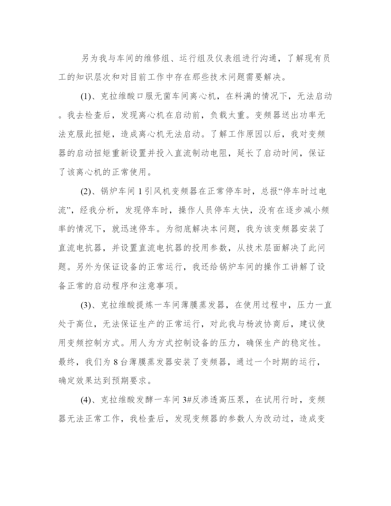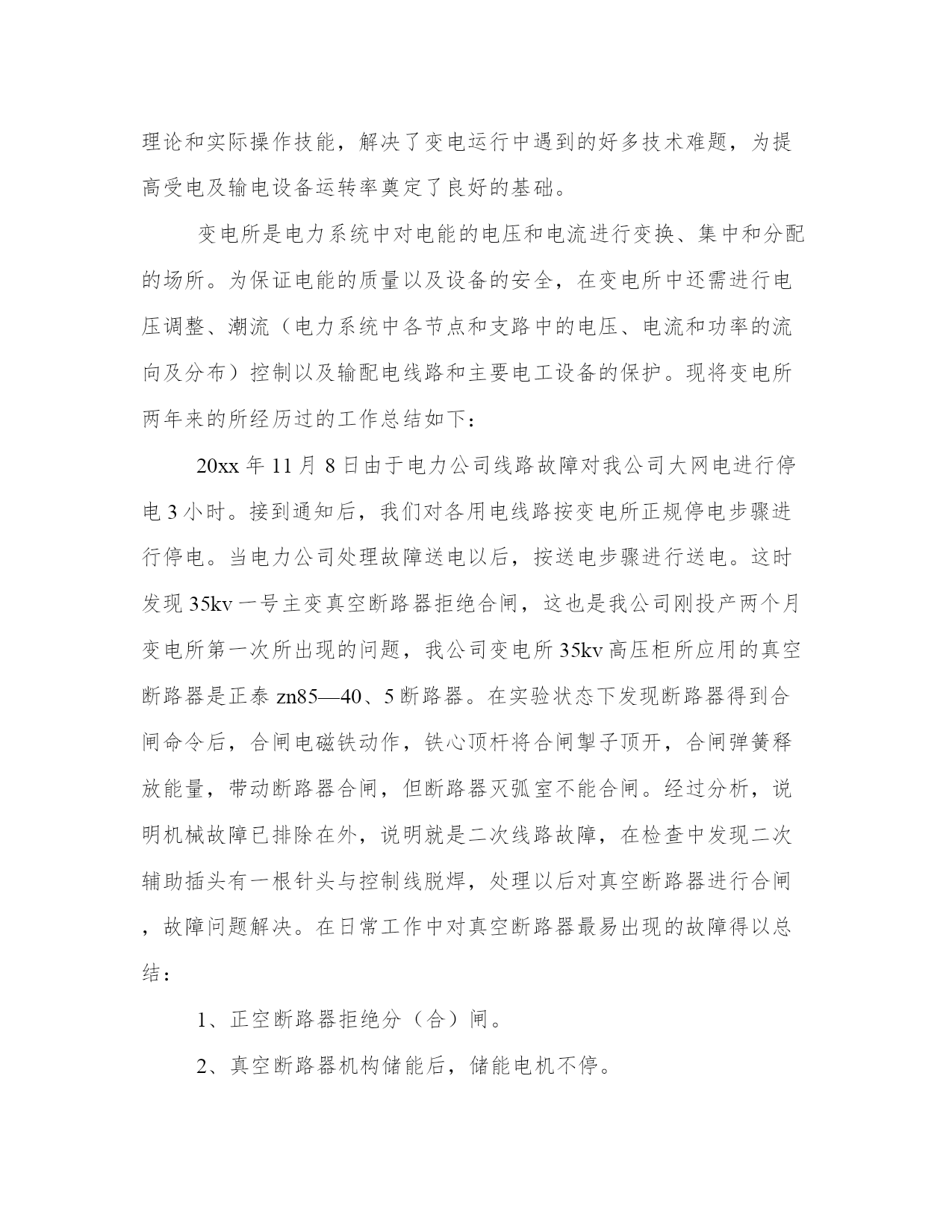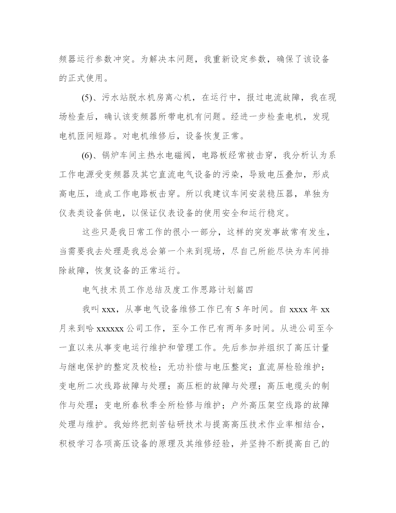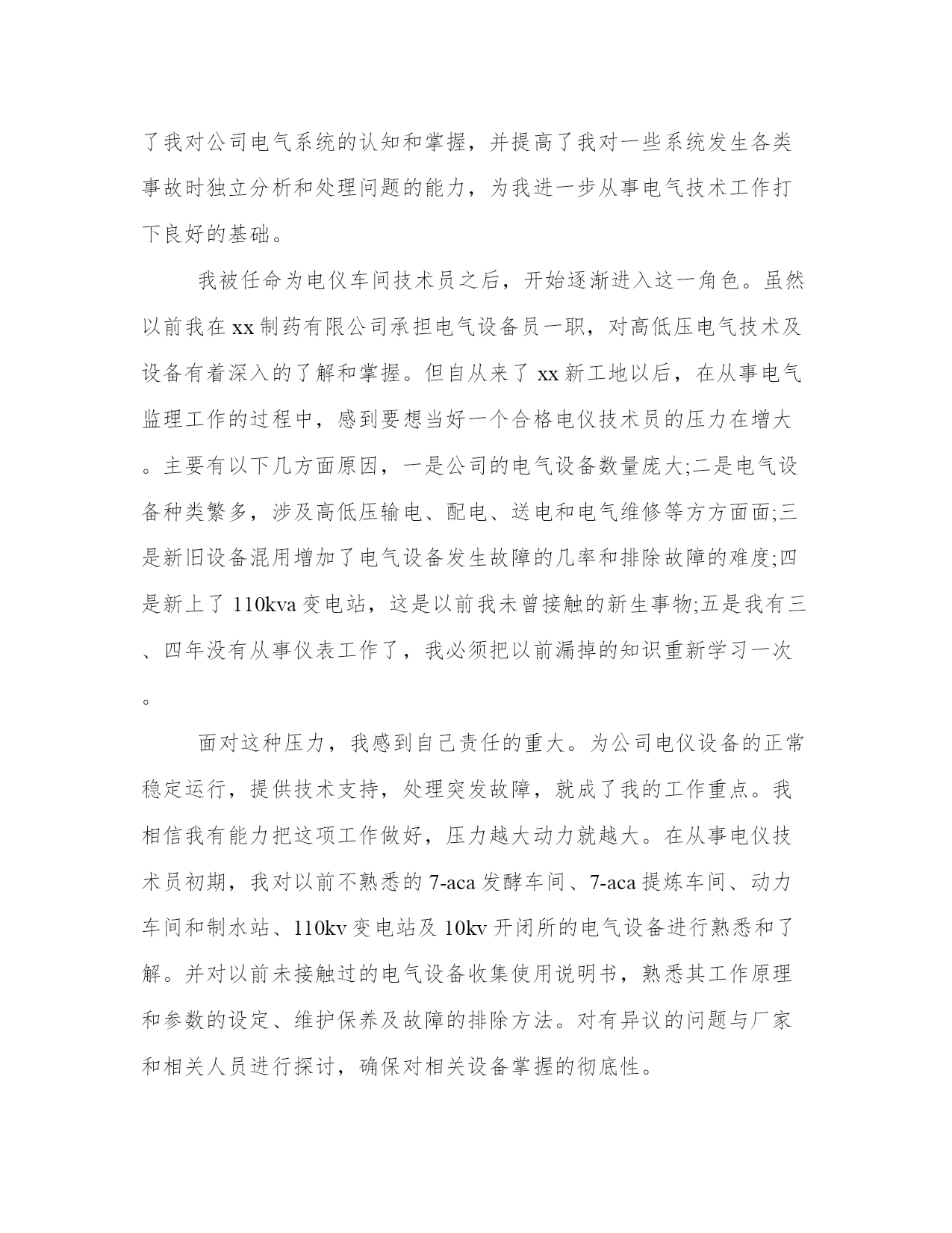 2024年电气技术员工作总结及度工作思路计划(汇总8篇)计划是提高工作与学习效率的一个前提。做好一个完整的工作计划,才能使工作与学习更加有效的快速的完成。因此,我们应该充分认识到计划的作用,并在日常生活中加以应用。以下是小编为大家收集的计划范文,仅供参考,大家一起来看看吧。电气技术员工作总结及度工作思路计划篇一时光飞逝,转眼间到公司已经一年,感受甚多,收获甚多。进入xx市xx电气设x公司,对我来说是一个不错的发展机遇,也是一个很好的锻炼和提升自己各方面潜力的机会。在此,首先个性感谢公司领导和同事们给予我的大力支持、关心与帮忙,使我能很快地适应的公司的管理制度,努力做好本职工作。进入公司以来,我认真了解了公司的发展概况,学习了公司的规章制度,了解了公司工艺流程。同时,更是真切地感受到了向上、催人奋进的企业文化,使我受益匪浅。现将本人一年来的工作状况总结如下:我进入xx是从钣金车间开始,做箱子柜子壳体,能说钣金车间是我对xx公司的第一印象。不得不说,在钣金车间的一个月,师傅们给我树立了不错的形象,使我受益匪浅。去年九月份,我进入组装车间实习,我深刻感受到同事们兢兢业业、力求完美的精神。在组装车间,我重点就是透过查阅相关资料、手册、图纸及说明书,了解各电器设备的操作及原理,学习设备布局,布线,做排,二次线等。进入组装车间开始,我就明白自己的担子很重,我时刻牢记这句话“要给别人一碗水,自己就要有一桶水”。因为我明白要想成为一名合格的技术员不是一件容易的事,作为一名技术员不但仅仅要能处理客户明确提出的要求,更重要的是要能解决现场出现的问题,对现场的机器设备运行状况要做到心中有数。今年五月份,跟随公司安装队去攀枝花,我抓紧时间了解图纸,施工方案、图纸会审、现场施工管理、竣工验收等要求。应对困难及问题,主动请示领导,和设计单位及施工单位沟通,协调各种关系,以便项目顺利开展工作。实际工作中,由于部分地方土建更改和图纸不合,造成墙面没有留孔,桥架及管子不通,需要开孔或者重新布局走线路,增多工作量,此刻经过和领导沟通已经解决。因此,在以后工作中,我会留心相关知识,使自身从土建、装修、预算等方面有所加强,做好外部协调工作,与设计单位,施工单位及政府部分沟通,制定好全局规划,凡是以公司利益为主。在工作中,认真学习,不断提升自己,并且利用其他时间,学习更高新的知识。从最简单的'制造规范做起,到做完整的一套设备,那里既有自己的勤奋好学,更不能离开车间同事的答疑解惑。从老工程师身上我不但仅学到了很多东西,又给了我很多感悟。对于我初次做的设备,同事们不但仅细心帮我审核还耐心的给我讲解,十分感谢同事们的帮忙,也对在我们公司这样的文化氛围中更好的工作有了充足的信心。由于我参加工作不久,因此在很多方面技术和经验都不足,遇到的问题多,处理问题就不能做到得心应手。在以后的工作中,要敢于解决和处理问题,遇到问题,决不逃避,虚心向经验丰富的技术员,老工人学习;另外,及时组织经验教训,把存在的疑惑,不懂的方面都记录下来,并且抓紧时间解决处理,做好记录,以便日后遇到同样的事情,能更快的解决处理好。认真学习各种知识,使自己在今后的工作中,能更好的完成领导布置的工作和任务,使自己更快的成熟起来。虽然我参加生产劳动和技术学习的时间只有一年,但在思想上和技术上都得到了较大的提升和进步。既丰富了知识,又提升了自己的管理和业务水平,最重要的是为自己在今后的工作中,能更好的完成工作任务打下了不错的基础。总结一年来的工作,既有成绩又有不足。在今后的工作中,只有不断的认真总结,发现不足,努力改正,才能得到更快的进步,才能更好为公司服务,实现人生价值。电气技术员工作总结及度工作思路计划篇二回首过去,对我来说是进步、忙碌的一年,在这一年里作为电气运行主操人员,在部门和值长的正确领导下,针对公司制定的安全制度和本年的工作任务,工作任务根据季节特点进行严格管理、分工明确、责任到人,相互协调,努力调动各个专业员工的工作积极性。在工作中不断总结经验和教训,努力探索更好的运行工作方法和应对各种故障、事故问题的处理措施,不断创新,努力提高工作效率,保证发电机组稳定、安全的成产。现对将这段时间的工作加以总结。一、安全方面。在安全生产工作中,全面落实集团公司和公司的安全措施及安全规定。尤其是“两票三制”的执行达到100%。在设备巡检上我们大力度加强细致化检测、不断提高设备可靠性,确保完成公司下达的各项安全指标。避免人身伤亡、设备损坏、火灾事故、影响外网公司和人为责任造成重大事故。在安全学习我们开始了每周培训,不断提高团队安全理念。二、工作方面。认真负责,敬业爱岗,以公司理念要求自己,诚信待人,踏实做事,服从领导安排,克服各种困难,始终以积极认真的心态对待工作。特别是在夏季,电气设