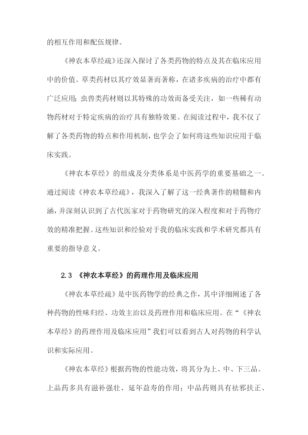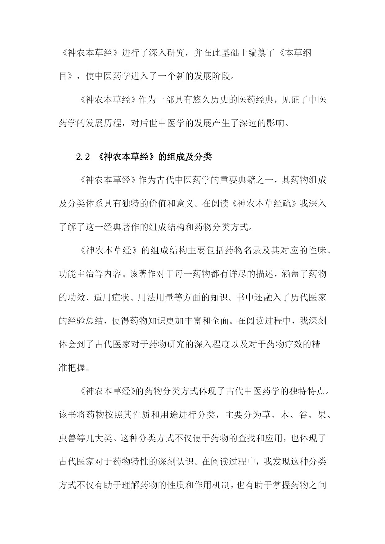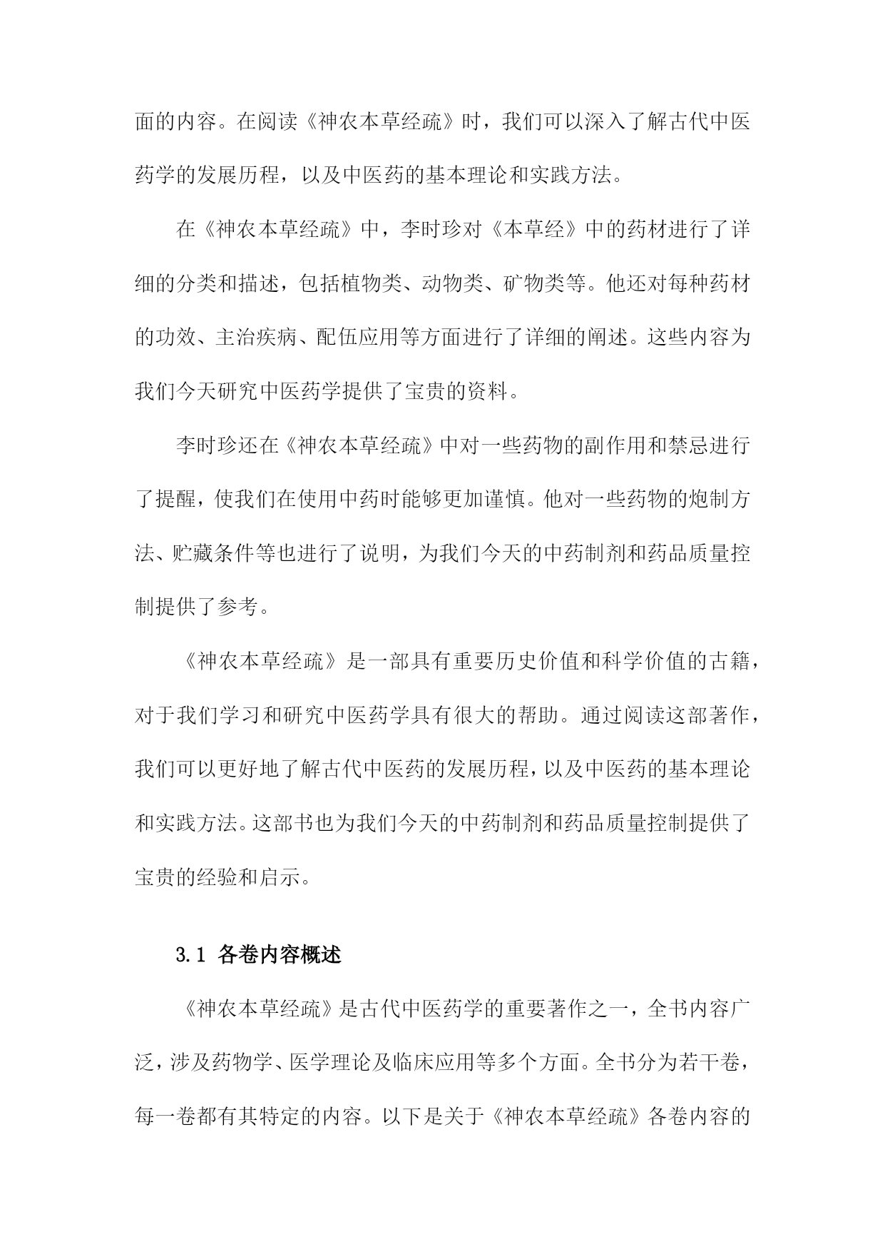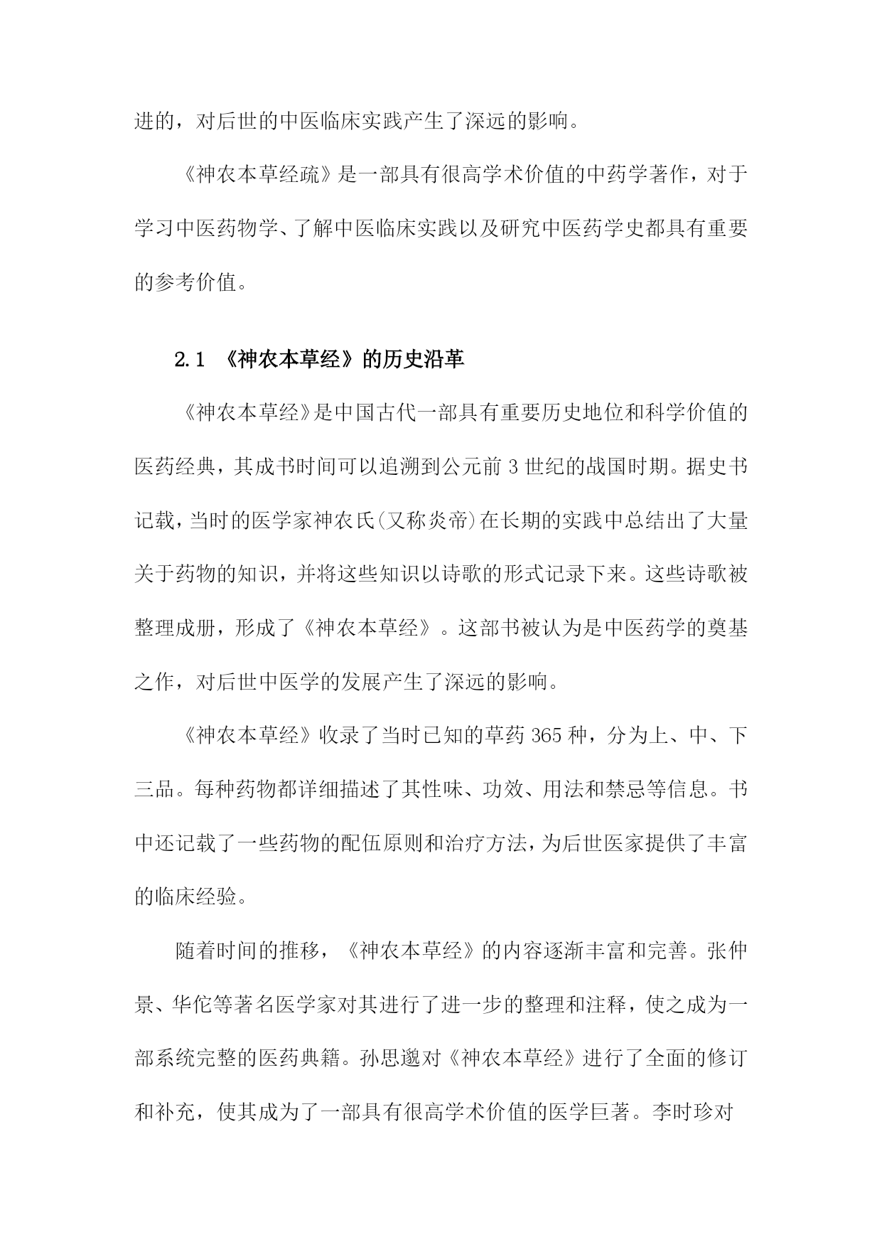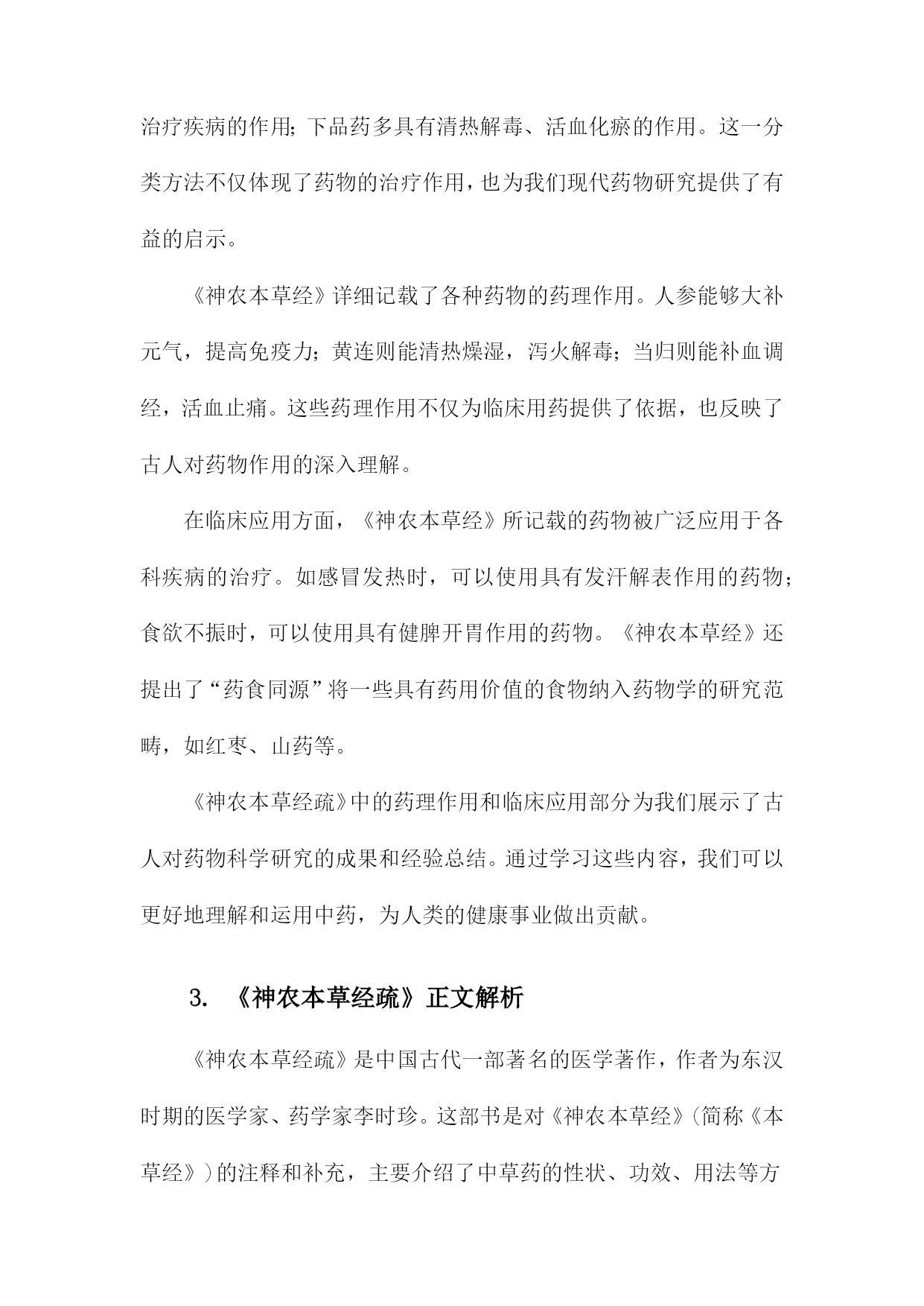 《神农本草经疏》读书笔记1.内容描述在开始阅读《神农本草经疏》这部经典著作之前,我对其背景、作者及其历史地位有了一定的了解。作为中国古代医学的经典之作,它集结了古代医药学家的智慧与经验,为我们揭示了古代对于草药及药物应用的独特见解。在阅读过程中,我深感这部著作不仅仅是对草药的分类与描述,更是对古代医学哲学思想的体现。《神农本草经疏》的内容极为丰富,涉及大量的草药及其疗效的描述。我对每一章节进行了细致的阅读与理解,全书按照草药的性质、功效及应用进行分类,详细介绍了各种草药的生长环境、采集时节、药性、功效及主治病症。书中还对一些草药的配伍、炮制及使用方法进行了阐述。在阅读过程中,我特别关注了书中强调的草药的药性及其临床应用。对于某些常见草药如人参、黄芪、当归等,书中不仅有详细的描述,还有其独特的见解与应用方法。通过对这些内容的解读,我逐渐认识到,草药的应用不仅仅是对其药性的理解,更重要的是结合患者的实际情况,进行合理的配伍与应用。在阅读《神农本草经疏》我深深体会到了古代医药学家的智慧与思想。他们通过观察自然、体验生活,积累了丰富的医药经验。书中还体现了古代医学的哲学思想,如“天人合一”、“阴阳五行”等,这些思想贯穿于整个著作,指导着草药的应用。通过阅读《神农本草经疏》,我对古代医药学有了更深入的了解。我也深感自己在医药学方面的知识储备还有待提高,在阅读过程中,我不仅学到了关于草药的知识,更学到了如何结合实际情况,合理运用所学知识。我还体会到了古代医学的哲学思想,这些思想对于指导我们的生活与工作都有很大的启示。1.1背景介绍《神农本草经疏》是一本古代中医药学著作,作者为清代著名学者周学海。本书共分为三卷,系统地阐述了药物的性味、功能、主治、用法及用量等方面的知识。全书共有365条,每种药物均按其性质分为上、中、下三品。通过研读此书,我们可以了解到古代中医药学的理论基础和实践经验,对于现代中医药学的研究与发展具有很高的参考价值。1.2作者及创作背景《神农本草经疏》是中国古代一部著名的医学著作,作者是东汉末年的著名医学家、药学家、博物学家、地理学家等多重身份的李时珍。李时珍(15181,字东璧,河南南阳人,是明代著名的医学家、药学家、博物学家、地理学家等多重身份的杰出代表。他的一生致力于中医药学的研究和发展,对后世产生了深远的影响。《神农本草经疏》是李时珍在继承和发扬古代中医药学的基础上,结合自己的临床实践和研究成果所著的一部重要著作。该书成书于明朝万历年间(15731,共分为三卷,收录了当时已知的草药一千五百余种,并对每一种草药的性味、功效、用法、用量等方面进行了详细的论述。这部著作不仅系统地总结了古代中医药学的经验,而且对后世的中医药学发展产生了深远的影响。在创作背景方面,当时的社会环境对《神农本草经疏》的成书起到了积极的推动作用。明朝时期国家政治稳重,社会文化氛围浓厚,为李时珍提供了良好的创作环境。明朝末年,民间医药活动逐渐兴起,人们对中医药学的需求不断增加,这也为李时珍的研究和创作提供了广阔的空间。在这种背景下,李时珍凭借自己的才华和毅力,完成了这部具有重要历史价值的医学巨著。1.3内容摘要“内容摘要”,主要是对《神农本草经疏》这部著作的主要内容和核心思想进行简要概述。这一段落将会介绍书籍中详细解析《神农本草经》各部分药物功效及其对应临床应用的关键内容。将会提到书中如何对草药进行分类,以及针对每一类药物的详细解读和阐述。还会强调书中对于药物配伍、药性理论以及药物与疾病关系等方面的独到见解和深入分析。这部分还会提及书中对药物性能及作用机制的新解读,以及其在现代中医药研究与应用中的价值和意义。内容摘要部分将作为读者了解该书核心内容的重要途径,为读者提供一个全面的视角来把握《神农本草经疏》这部古籍的核心思想及学术价值。通过对本书内容的梳理和提炼,使读者在短时间内能够快速掌握该书的精髓所在。2.《神农本草经》概述《神农本草经疏》是中医药物学的经典之作,由明代著名医学家张介宾所著。该书共分为三卷,系统地阐述了药物的性味、功能、主治、用法及采集加工等方面的知识。书中还收录了大量的药方和治疗方法,为后世中医药学的发展奠定了坚实的基础。在《神农本草经疏》中,张介宾首先对《神农本草经》进行了详细的注释和解读,帮助读者更好地理解这部古典著作的精髓。他结合自己的医学实践经验和前人的研究成果,对药物进行了分类和整理,使药物学知识更加系统和完善。《神农本草经疏》还强调了辨证施治的重要性,认为药物的使用应根据患者的病情和体质进行个性化治疗。这一思想在当时是非常先进的,对后世的中医临床实践产生了深远的影响。《神农本草经疏》是一部具有很高学术价值的中药学著作,对于学习中医药物学、了解中医临床实践以及研究中医药学史都具有重要