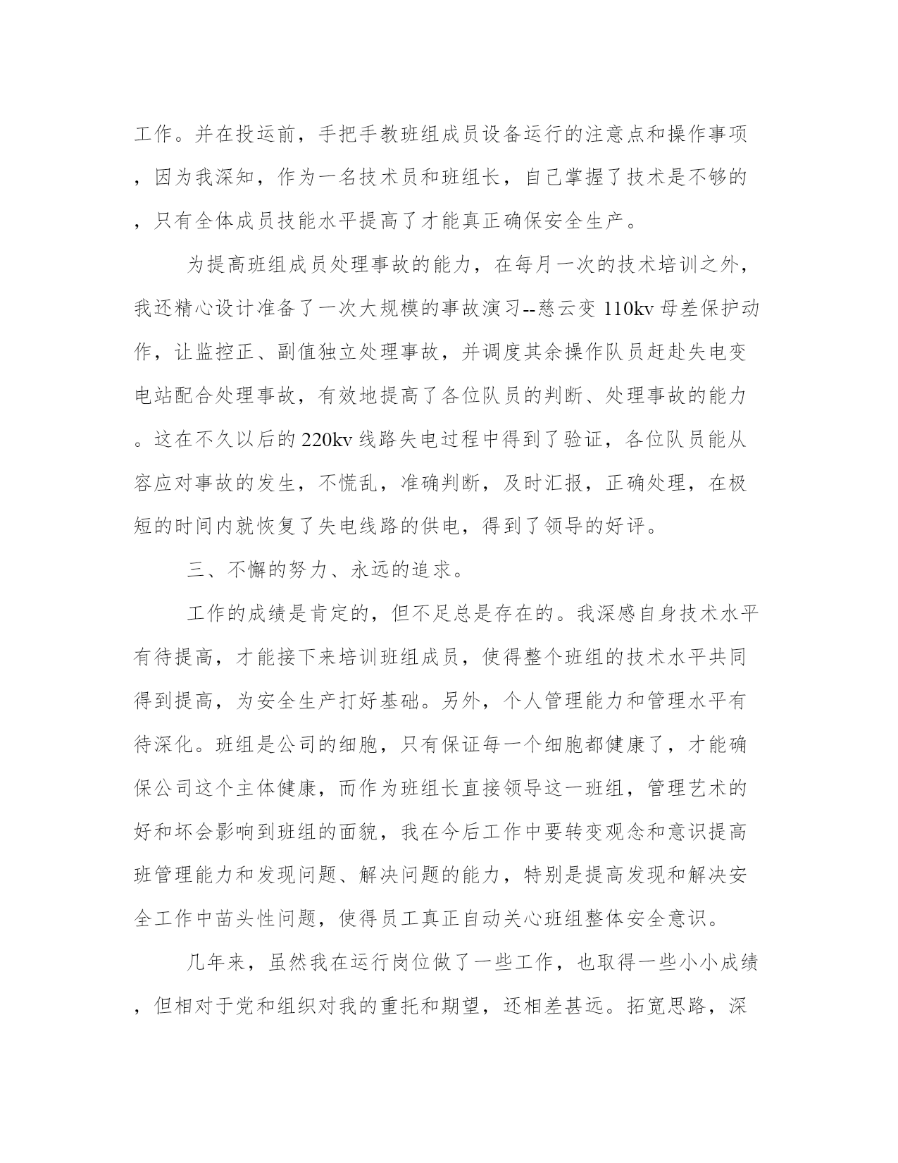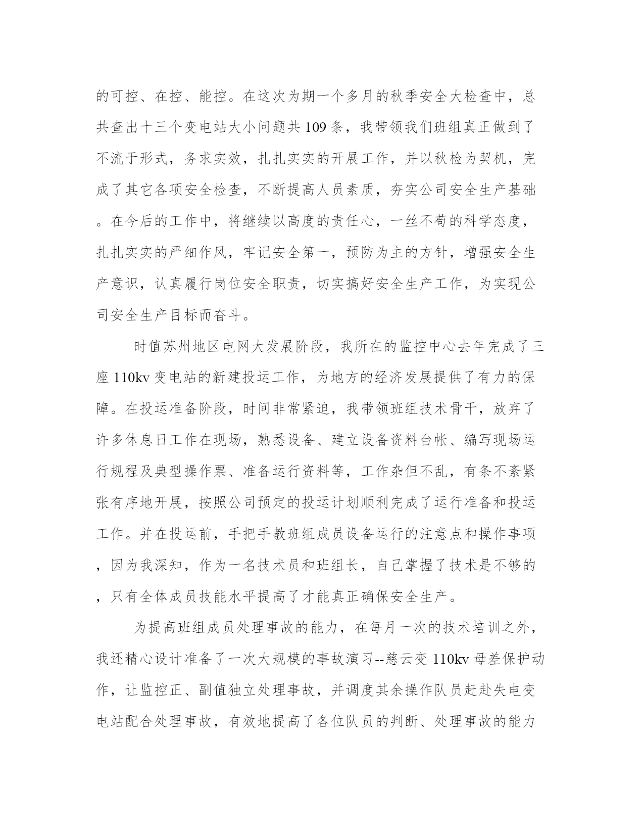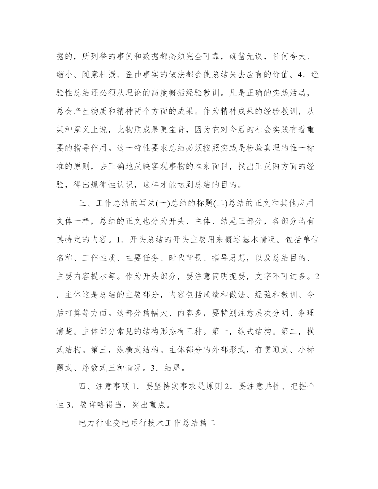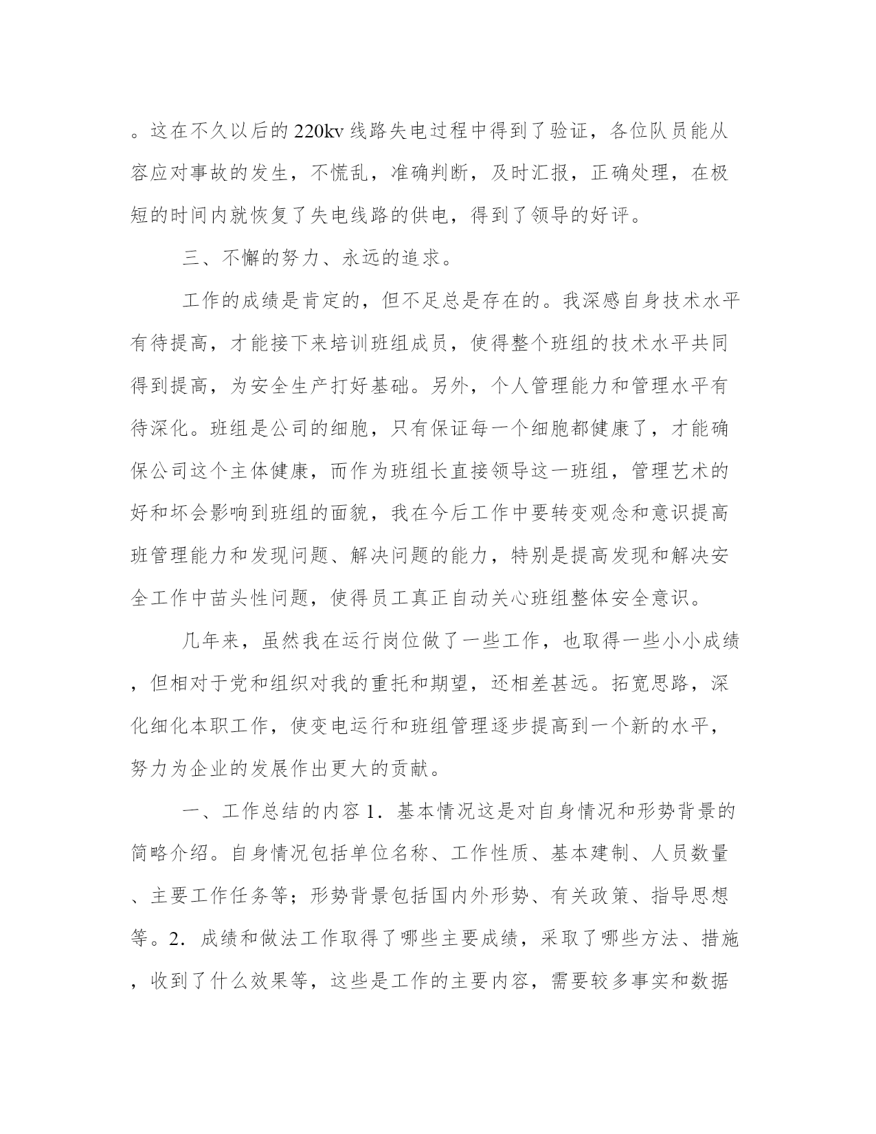 电力行业变电运行技术工作总结(精选17篇)总结是一种反思和思考的过程,能够帮助我们发现问题并提出改进的方案。在写总结之前,我们可以先列出一份详细的提纲,明确要点和结构。接下来是一些总结写作的注意事项和要点,希望对您有所启发。电力行业变电运行技术工作总结篇一自xx年12月我取得了技术员职称到现在,已有两年多的时间。在这两年多的时间里,我一直在输变电运行部一线上工作。在这期间,我由一名普通的变电运行值班员晋升为监控中心的班组长,在不断的工作累计中,我对我们公司运行工作的各个方面有了更深入的了解和认知,对发生的各类事故有了一定的独立分析和处理能力,做好了一名技术员应尽的职责。回首这些年的工作,有硕果累累的喜悦,有与同事协同攻关的艰辛,也有遇到困难和挫折时惆怅。现将这些年的主要工作总结如下:一、政治上坚定,思想上成熟。一个人的信念是人的世界观在奋斗目标方面的集中反映,共产主义信念是我一生执著的追求目标和持久的精神激励力量。我把政治上追求与现实中工作结合起来,我把为共产主义奋斗终身的信念从朴素、直观认识在学习、工作中日益上升到自觉、理性的高度,从感性认识上升到了理性认识。在工作中我焕发出了高度的积极性和创造性,脚踏实地、艰苦创业,捍卫自己的信仰和共产主义事业,努力完成党交给我的各项任务。因为我有了始终不渝的政治信念、坚定不移的政治立场,所以,我才能在实际工作中保持锐意改革,勇于进取的革命气概,保持锲而不舍、顽强奋斗、拼搏到底的作风,保持我乐于奉献、不怕牺牲、全心全意为人民服务的精神。我从做好本职工作和日常工作入手,从我做起、从现在做起、从身边的小事做起并持之以恒。伟大寓于平凡。我在本职工作中尽心尽力、孜孜不倦地做出成绩。鼓实劲、察实情、说实话、办实事、求实效。我不断提高自己的业务本领,努力精通本职的业务知识,做本职工作的骨干和行家里手,脚踏实地的做好本职工作。把远大目标与现实努力结合起来,把为人民谋利益的决心同过硬的本领有机地统一起来、把为人民谋利益的热情同实事求是的态度有机地统一起来、把全心全意为人民服务的良好愿望同本职工作有机地统一起来。把全心全意为人民服务的良好愿望同本职工作统一起来。我在实践中为群众办实事,把着眼点放在本职岗位和现实基础上。二、工作中勤奋,业务上钻研。在工作、生活中我一直相信一份耕耘、一份收获,所以我一直在努力,不断的努力学习、不断的努力工作。98年我参加了南京工程学院大专函授的学习,用四年的时间,以优异的学业取得了大专毕业证书。xx年12月,我在苏州电力职工技能培训中心参加了13(2)期变电值班员高级工培训,并以优异的成绩取得了高级工证书。在工作中,按照上级领导布置,认真落实完成春秋季安全生产大检查、整改及总结,迎峰度夏、交直流专项检查,完成公司开展第二轮安全性评价查评工作。xx秋季安全大检查过程中,依据季节性安全检查流程,精心布置,合理安排,专门召开会议,向班组成员进行宣传动员、组织学习,提高队员对秋季安全生产大检查目的、要求的认识。通过秋季安全大检查使我们队员的安全意识及技术水平有了大幅度的提高,能进一步做好变电运行安全生产工作,切实做到安全生产的可控、在控、能控。在这次为期一个多月的秋季安全大检查中,总共查出十三个变电站大小问题共109条,我带领我们班组真正做到了不流于形式,务求实效,扎扎实实的开展工作,并以秋检为契机,完成了其它各项安全检查,不断提高人员素质,夯实公司安全生产基础。在今后的工作中,将继续以高度的责任心,一丝不苟的科学态度,扎扎实实的严细作风,牢记安全第一,预防为主的方针,增强安全生产意识,认真履行岗位安全职责,切实搞好安全生产工作,为实现公司安全生产目标而奋斗。时值苏州地区电网大发展阶段,我所在的监控中心去年完成了三座110kv变电站的新建投运工作,为地方的经济发展提供了有力的保障。在投运准备阶段,时间非常紧迫,我带领班组技术骨干,放弃了许多休息日工作在现场,熟悉设备、建立设备资料台帐、编写现场运行规程及典型操作票、准备运行资料等,工作杂但不乱,有条不紊紧张有序地开展,按照公司预定的投运计划顺利完成了运行准备和投运工作。并在投运前,手把手教班组成员设备运行的注意点和操作事项,因为我深知,作为一名技术员和班组长,自己掌握了技术是不够的,只有全体成员技能水平提高了才能真正确保安全生产。为提高班组成员处理事故的能力,在每月一次的技术培训之外,我还精心设计准备了一次大规模的事故演习--慈云变110kv母差保护动作,让监控正、副值独立处理事故,并调度其余操作队员赶赴失电变电站配合处理事故,有效地提高了各位队员的判断、处理事故的能力。这在不久以后的220kv线路失电过程中得到了验证,各位队员能从容应对事故的发生,不慌乱,准确判断,及时汇报,正确处理,在极短的时间内就恢复了失电线