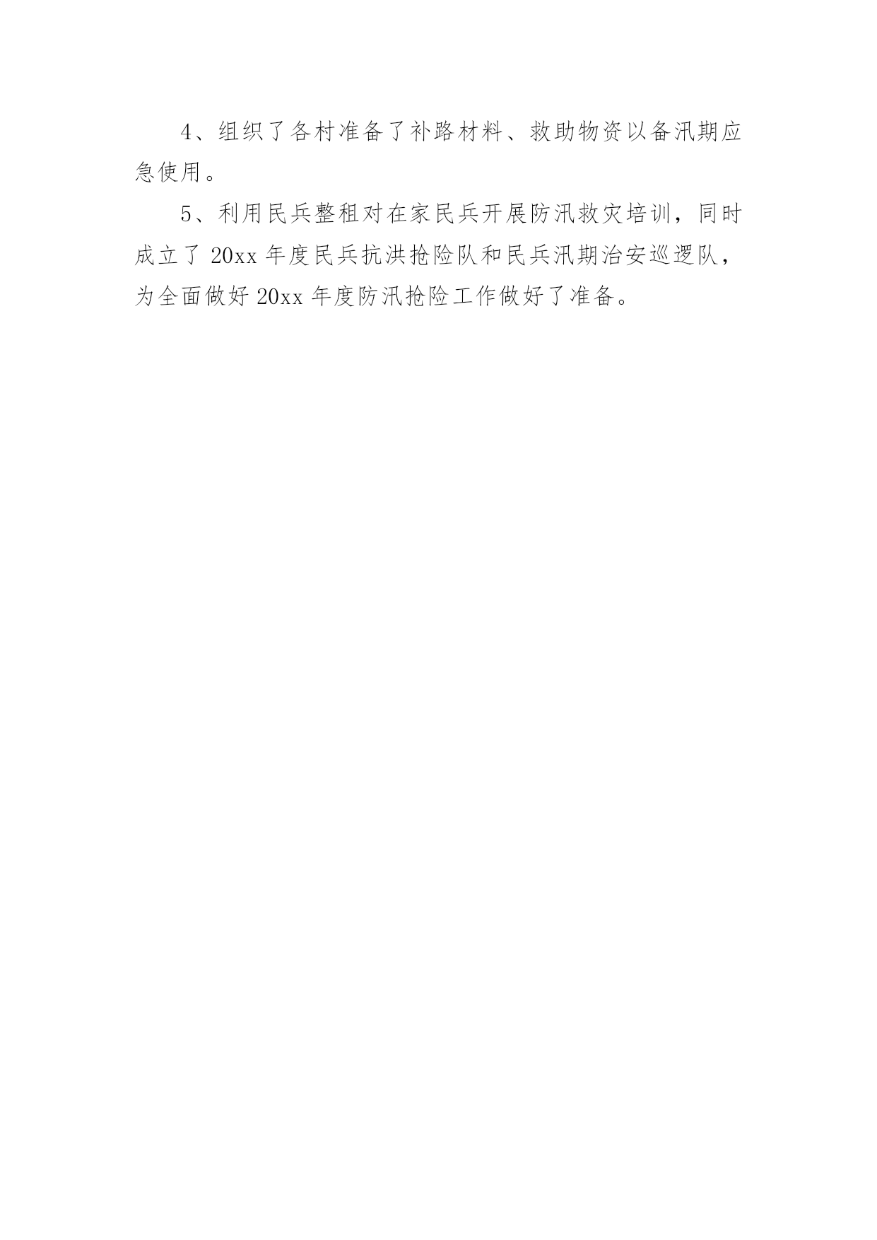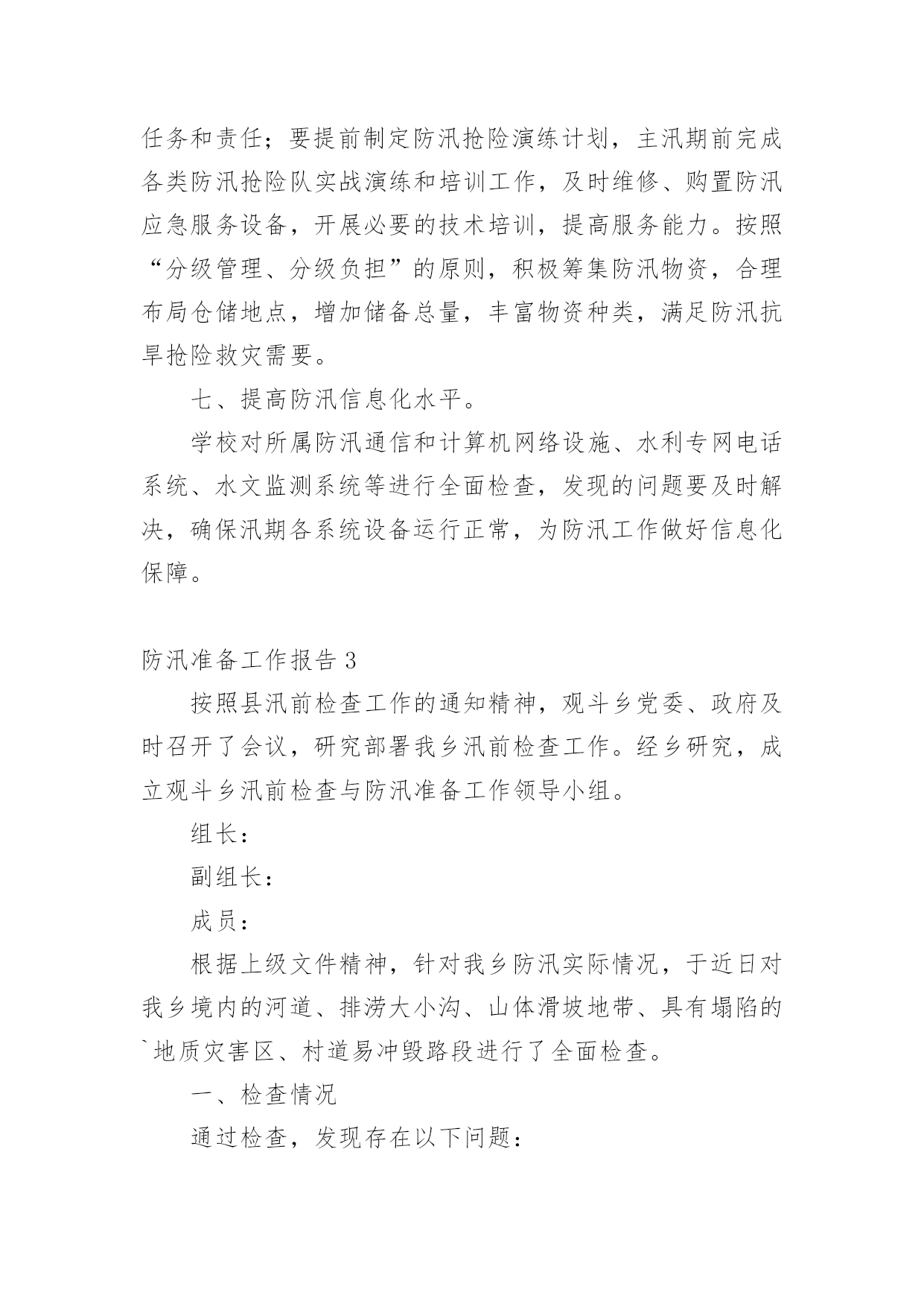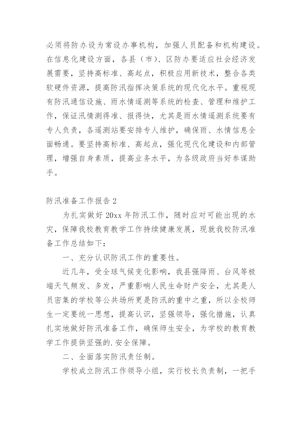防汛准备工作报告随着社会一步步向前发展,越来越多人会去使用报告,报告中涉及到专业性术语要解释清楚。其实写报告并没有想象中那么难,下面是小编收集整理的防汛准备工作报告,仅供参考,欢迎大家阅读。防汛准备工作报告1各县(市)、区防指:为全力做好今年的各项防汛准备工作,确保度汛安全,按照国家防总、省防指的要求和市委、市政府的统一部署,结合我市实际情况,对于做好各项防汛工作提出以下要求:一、提高防汛认识,树立以人为本、以防为主的防汛主导思想。我市经过多年的努力,整体防洪减灾能力有了很大提高,但病险工程仍然较多,非工程防御措施方面仍有急需完善和加强的环节,难以适应防大汛、抢大险的要求。对此,各级、各部门必须引起足够重视,把确保人民生命财产安全放在各项工作的首位,坚决克服麻痹思想和侥幸心理,切实增强水患意识,从实际出发,扎扎实实落实各项防汛备汛措施,确保度汛安全。二、进一步落实各项防汛责任制度。各县(市)、区要根据各防汛抗旱指挥部成员单位人员及领导班子变化情况,及时调整充实防汛抗旱指挥机构,进一步明确各成员单位的职责,加强行业工作的组织协调。要继续贯彻落实国家防总印发的《各级地方政府行政首长防汛抗旱职责》,抓紧落实以行政首长负责制为主要内容的各项防汛责任制,进一步完善各项规章制度,把行政首长负责制落实贯穿到防汛准备、抗洪抢险和救灾工作的全过程。严格执行国家防总及省防指制定的《防汛抗旱责任追究暂行办法》。要认真落实行政首长负责制为核心的分级、分部门责任制,对每一处工程的责任人和专职看护人员都要逐一明确到位,特别是小型病险水库。各级防汛抗旱指挥部要将责任制落实情况及时公布,以利监督,并加强检查和督导。三、进一步加大工程治理建设力度。各县(市)、区要进一步加大投入力度,合理安排水毁工程修复,抓紧进行度汛应急工程和小型病险水库加固、险工险段、病险涵闸的加固处理,争取汛前完成工程建设任务。对投资巨大,一时难以解决并严重影响人民群众生命财产安全的小型水库,要及时采取必要的应急处理措施。对确需跨汛施工的,必须明确度汛施工方案和抢险预案,落实相关责任人,统筹组织,在保证施工安全和工程质量的前提下,加快施工进度。对河道、湖泊行洪通道进行排查,对阻水障碍,依据《防洪法》,按照谁设障、谁清除的原则,限期清除。四、加强防汛抢险基础性工作。要认真总结近几年抗洪抢险的经验教训,按照与经济社会状况、防汛实际和工程现状相结合的原则,结合洪水资源的.开发利用,抓紧修订、完善工程洪水调度方案、应急抢险预案、城市防洪预案,并加强宣传,明确职责,确保防汛抢险工作有序高效进行。要进一步加强防汛物资储备管理工作,及时按照防汛物资储备定额要求,做好防汛物资的补充和更新,并抓好群众号料落实。要抓好防汛抢险队伍的组织和落实,突出专业队伍建设,加强设备配备,搞好技术培训和实战演练,提高防汛抢险实战能力。同时应加强与当地驻军的联系,搞好军民联防。各县(市)、区防办务于5月12日前将防汛物资准备表、防汛队伍落实情况表报市防办(见附件)。各大、中型水库的防洪抢险应急预案要按照国家防总下发的《水库防汛抢险应急预案编制大纲》和各水库的实际情况,重新进行修订,修订完善后的预案务于5月10日前一式三份报市防办。五、全面组织开展防汛大检查。各级、各部门要采取自查和抽查等多种方式,按照“纵向到底、横向到边”的要求,抓紧组织力量对防汛准备工作进行全面细致的检查,确保每一个工程、每一个环节不出纰漏。特别是对通讯预警设施、群众安全转移方案等要进行严格检查,并对所有泄洪、行洪启闭设施试运行,保证正常运转。对检查中发现的问题要落实责任,及早采取措施。六、加强防办自身建设,提高防汛工作信息化水平。各级防办承担着防汛的组织、协调、监督和指导工作,各级防办要按照国家防总要求和省统一部署,进一步加强防办自身建设,按照国家防总及省防指的要求,县(市)、区必须将防办设为常设办事机构,加强人员配备和机构建设。在信息化建设方面,各县(市)、区防办要适应社会经济发展需要,坚持高标准、高起点,积极应用新技术,整合各类软硬件资源,提高防汛指挥决策系统的现代化水平。重视现有防汛通信设施、雨水情遥测等系统的检查、管理和维护工作,保证汛情测得准、报得快,尤其是雨水情遥测系统要有专人负责,各遥测站要安排专人维护,确保雨、水情信息全面畅通。要坚持高标准、高起点,强化现代化建设和内部管理,增强自身素质,提高业务水平,为各级政府当好参谋助手。防汛准备工作报告2为扎实做好20xx年防汛工作,随时应对可能出现的水灾,保障我校教育教学工作持续健康发展,现就我校防汛准备工作总结如下:一、充分认识防汛工作的重要性。近几年,受全球气候变化影响,我县强降雨、台风等极端天气频发、多发,严重影响人民生命财产安全,尤其是人员密集的学校等公共场所更是防汛的重中之重,所以全