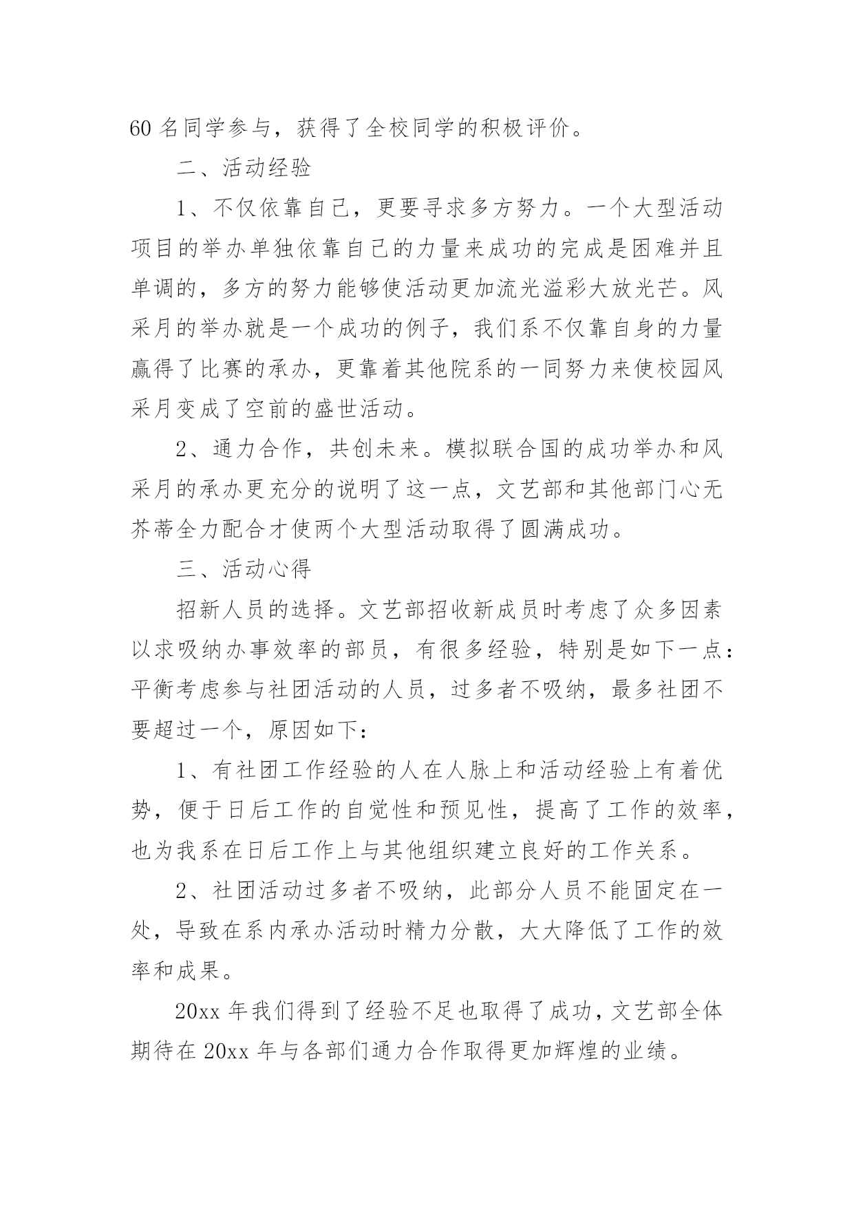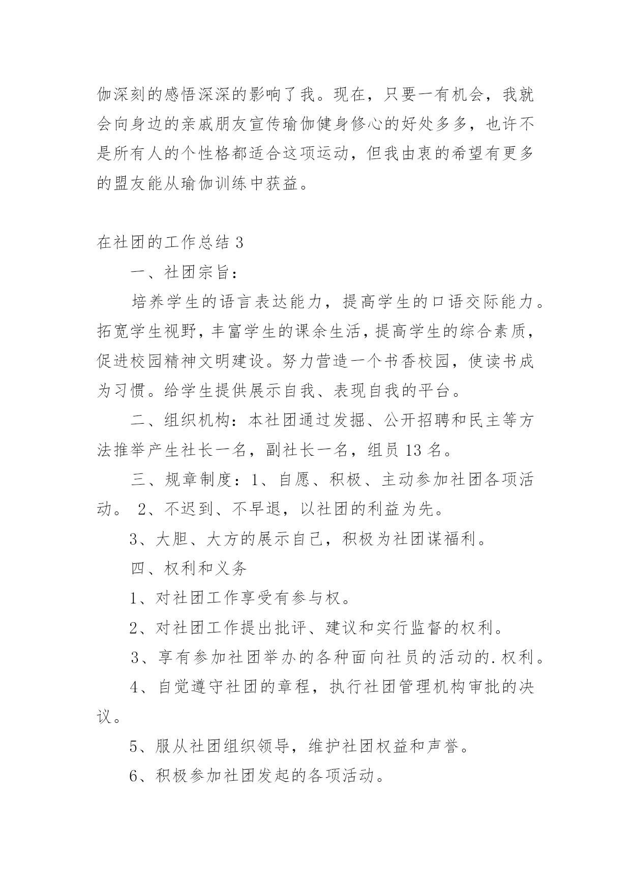 在社团的工作总结总结是指对某一阶段的工作、学习或思想中的经验或情况进行分析研究,做出带有规律性结论的书面材料,它可以促使我们思考,让我们好好写一份总结吧。那么总结要注意有什么内容呢?下面是小编整理的在社团的工作总结,仅供参考,大家一起来看看吧。在社团的工作总结120xx年的尾声已悄然临近,回顾这下半年我系文艺部的工作,可谓是紧张而又忙碌。在这半年中,有疲惫有辛酸,但的收获还是莫过于这半年内文艺部的成长。文艺部先后组织参与并发挥积极作用。主要有两个大的工作:模拟联合国大赛,校园风采大赛。一、活动回顾1、模拟联合国大赛。此活动为我系的立项活动,并在全校范围内得到了大力支持,文艺部与学生会各部门相互配合,申请场地,场地布置等一系列前期准备工作,使本次活动的顺利举办发挥了积极的作用。2、校园风采月。校园风采月的举办可谓是下半年全校比较有轰动效应的`一个“盛世活动”,我文艺部与七系八系一同参与校总会的项目竞标并获得了成功,承办举行了“校园风采月——中英双语绿之诵读”,此项活动一经举办便获得了全校同学的积极参与,从报名到正式比赛开始,先后有60名同学参与,获得了全校同学的积极评价。二、活动经验1、不仅依靠自己,更要寻求多方努力。一个大型活动项目的举办单独依靠自己的力量来成功的完成是困难并且单调的,多方的努力能够使活动更加流光溢彩大放光芒。风采月的举办就是一个成功的例子,我们系不仅靠自身的力量赢得了比赛的承办,更靠着其他院系的一同努力来使校园风采月变成了空前的盛世活动。2、通力合作,共创未来。模拟联合国的成功举办和风采月的承办更充分的说明了这一点,文艺部和其他部门心无芥蒂全力配合才使两个大型活动取得了圆满成功。三、活动心得招新人员的选择。文艺部招收新成员时考虑了众多因素以求吸纳办事效率的部员,有很多经验,特别是如下一点:平衡考虑参与社团活动的人员,过多者不吸纳,最多社团不要超过一个,原因如下:1、有社团工作经验的人在人脉上和活动经验上有着优势,便于日后工作的自觉性和预见性,提高了工作的效率,也为我系在日后工作上与其他组织建立良好的工作关系。2、社团活动过多者不吸纳,此部分人员不能固定在一处,导致在系内承办活动时精力分散,大大降低了工作的效率和成果。20xx年我们得到了经验不足也取得了成功,文艺部全体期待在20xx年与各部们通力合作取得更加辉煌的业绩。在社团的工作总结2初次接触瑜伽,大约是在XX年,我们单位聘请的东方瑜伽郑先红老师教授的瑜伽课程,因为感觉好奇,于是试探性的体验了一把,当然这一次的尝试并没有真正开启我的瑜伽训练之路,由于当时我孩子还小,工作又异常繁忙,两三次课之后我就中断了训练。我几乎还没有找到做瑜伽的感觉,甚至连最基本的腹式呼吸的要领都没有掌握,呼吸非但不能缓慢深长,反而变得十分不自然;尽管如此,这短短的一两次课仍然给我留下了美好的印象,尤其是郑老师娴静、幽雅的气质令我如沐春风。此后几年,无论在身体还是在心理方面,我都进入了低谷状态,工作和家庭的重担使我的性情变得十分急躁,内心的焦虑导致我的身体也长期处于亚健康状态——头发掉落得厉害,腰也常常感到没来由的疼痛。我隐约觉得生活出现了偏差,也正是在这段时间,我开始阅读论及人的内在问题和内心修持的书籍。书中的知识仿佛是一道涓涓细流滋润了我的心?1?7?1?7,这些此前从不曾了解的真知灼见象一盏明灯照彻了我的内心,多年郁积的情绪和心理问题,也在阅读的过程中焕然冰释了。去年年初,一次偶然的机会,我又重拾瑜伽课程,这一次开始得相当顺利。之前书中读到的静心理论和方法都在瑜伽训练中有了用武之地,在静定身心的打坐中,我不再企图控制呼吸,而是让自己的意识慢慢专注于身体和心理的细微变化——每一块肌肉的酸痛和紧张,微风拂过皮肤的.凉爽,掠过脑际的每一个念头——无论出现的是什么,都既不试图压抑它,也尽量不为其所动。慢慢地,打坐对我成了一件很容易又很享受的事情。身心的静定和呼吸的问题解决之后,瑜伽训练就顺利的渐次展开了,有了之前阅读积累的正知正见使我对瑜伽训练的真谛有了更清晰的认识。瑜伽通过锻炼身体的柔韧和力量来达到调节内心的作用。例如,我是一个追求完美的人,一开始,我总是试图将每一个动作完全按照老师的要求来完成,如果哪次课上有一两个动作做不到位,我就会为此感到郁闷。后来,我领悟到对于瑜伽运动来说,重要的不是结果,而是过程。动作到位不是重点,重点全在于在做动作的过程中于完全专注于身体的感受和很好的配合呼吸,在于享受肌肉抻拉带来的适度的酸痛感,肌肉的放松只是随之而来结果。通过这一年半坚持不懈的练习,瑜伽已经成了我生活的一部分,平日我不想漏掉任何一次训练。我的身体也从恢复了健康状态,其中最重要的改变是我的心态越来越平和,有时,甚至能感到一种从未有过的平静、愉悦。急躁和焦虑当然不会从此不见,但出现的次数是越