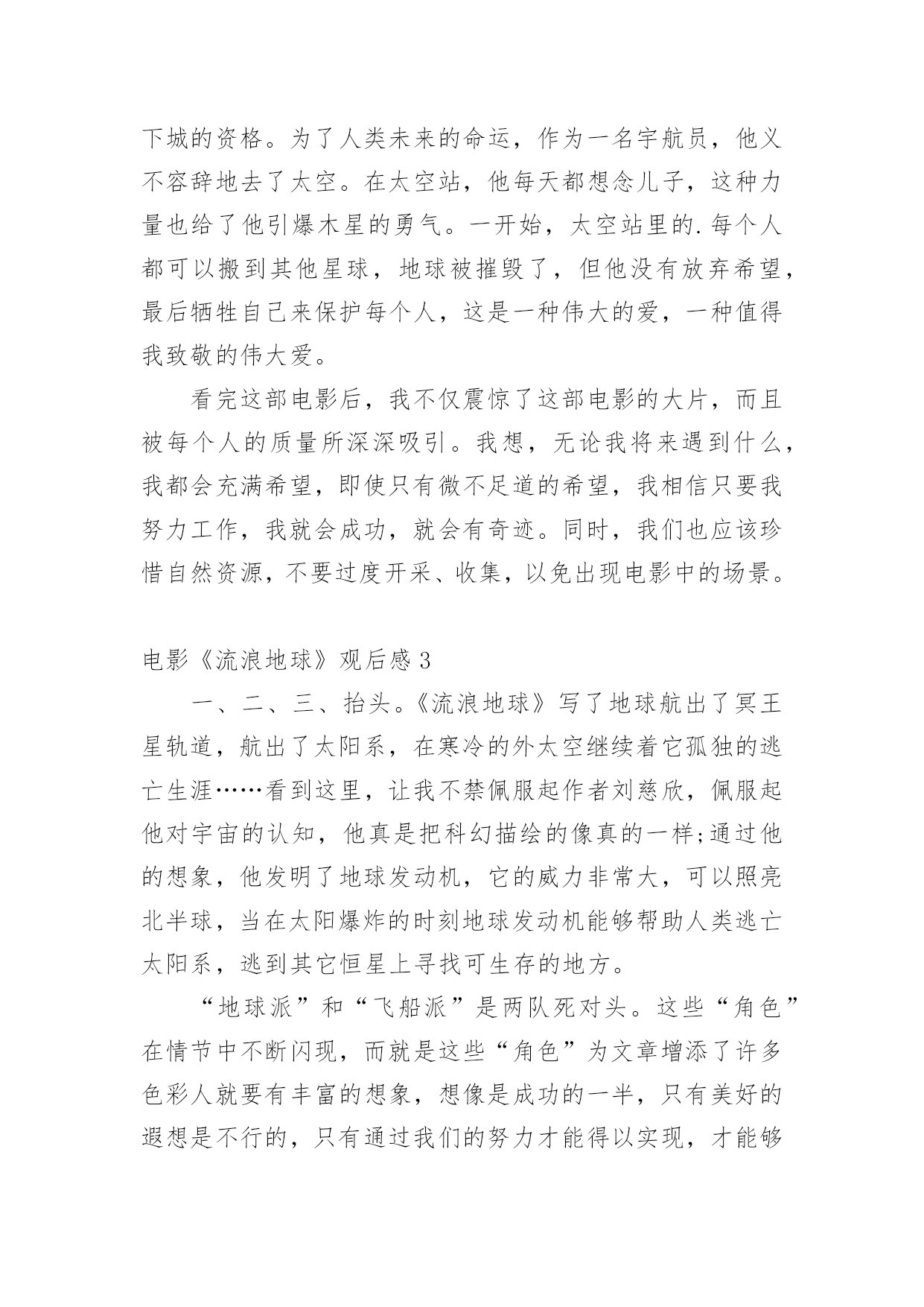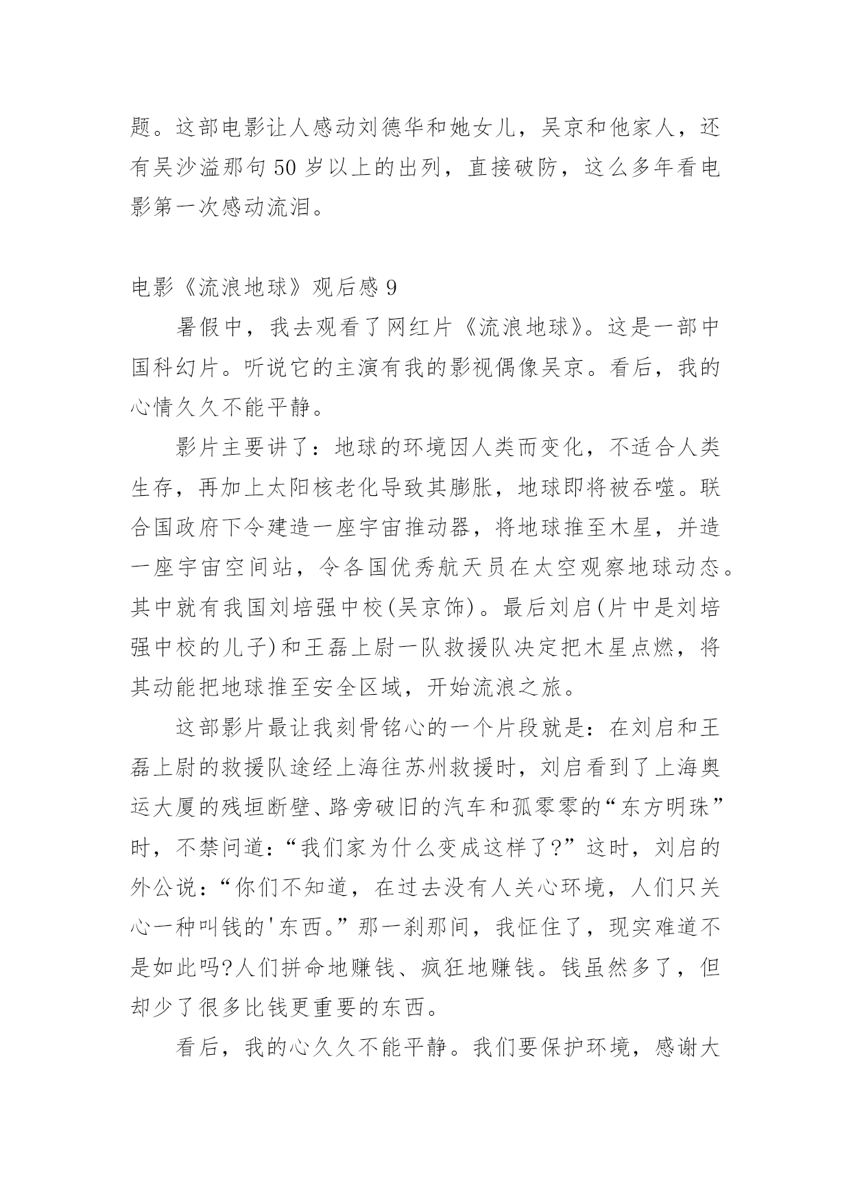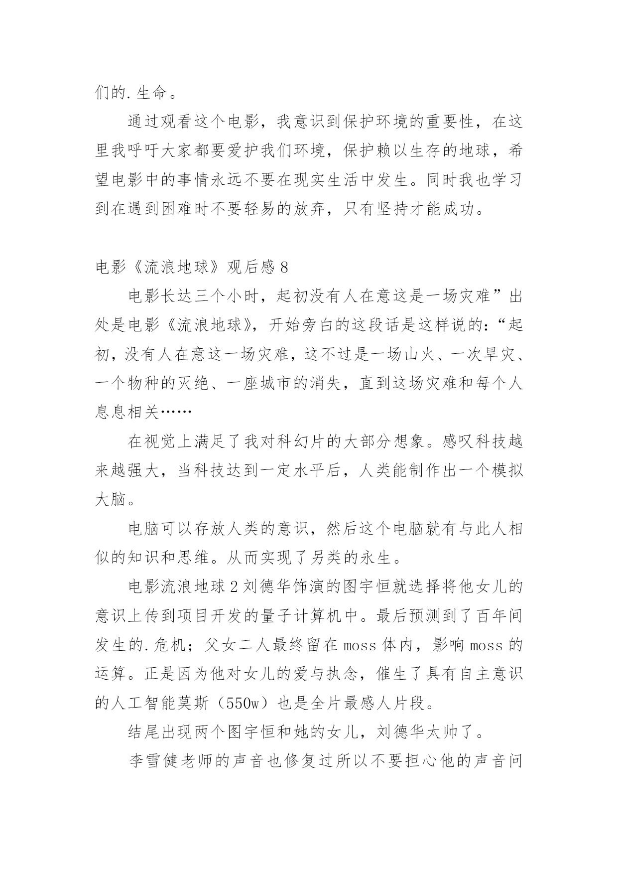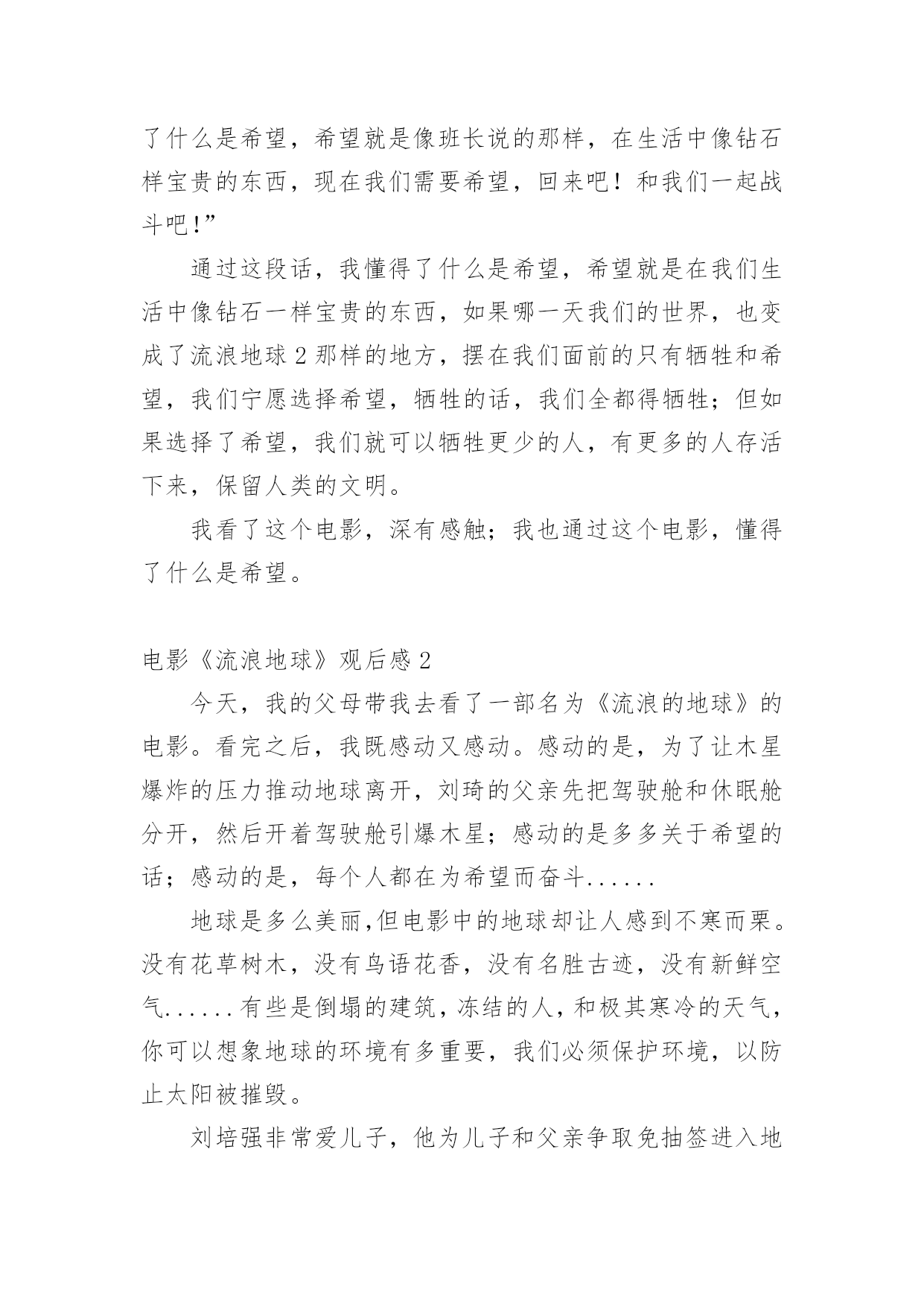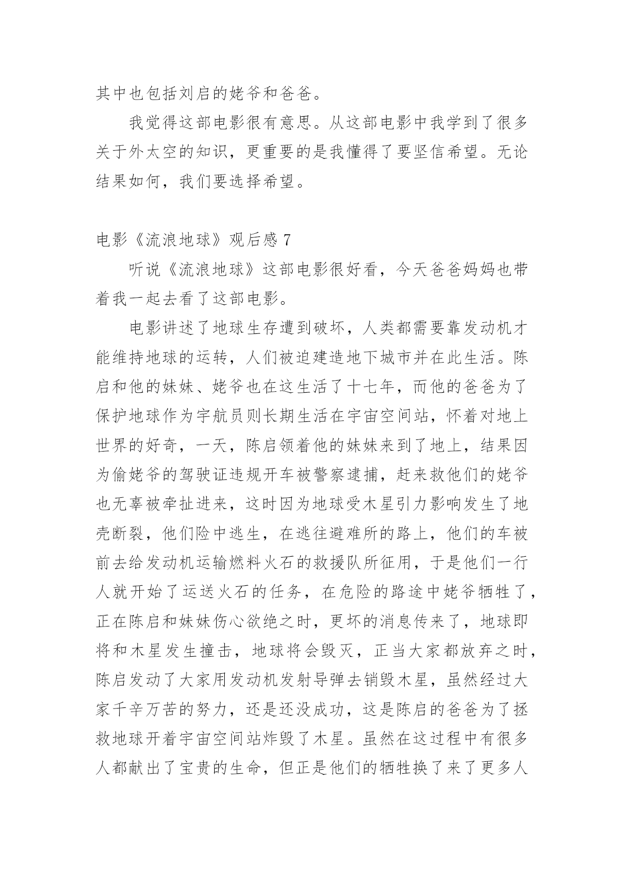 电影《流浪地球》观后感在观看完一部作品以后,你有什么总结呢?透过观影,我们可以发现一些深刻的感悟。可能你现在毫无头绪吧,下面是小编帮大家整理的电影《流浪地球》观后感,欢迎大家分享。电影《流浪地球》观后感1当太阳即将毁灭的时候,处于太阳系中的我们应该怎么办呢?不知道大家有没有想过这个问题呢?电影《流浪地球2》中的人类则开始启用流浪地球2计划,带着地球离开太阳系,寻找新家园。影片画面震撼,一起来看看网友们的感受吧!今天,我看了电影《流浪地球2》,从这部电影里,我懂得了希望是什么。在电影最后一个部分里,刘启想出了点燃木星推动地球的办法,他们的37号车里的成员分了工。韩朵朵和其他的成员一起推动接口的时候,他们的人太少,根本推不动。国际太空战里的.刘培强,联系联合国政府,想让政府把调到地下城里的汽车再派回去,帮助韩朵朵他们一起推动接口。但联合国政府没有答应他的请求,不过答应了他在全球播放韩朵朵的讲话。韩朵朵说了这样一段话:“昨天,我的老师还在讲希望,那个时候,我不认为这个世界上有希望,但是今天,我知道了什么是希望,希望就是像班长说的那样,在生活中像钻石样宝贵的东西,现在我们需要希望,回来吧!和我们一起战斗吧!”通过这段话,我懂得了什么是希望,希望就是在我们生活中像钻石一样宝贵的东西,如果哪一天我们的世界,也变成了流浪地球2那样的地方,摆在我们面前的只有牺牲和希望,我们宁愿选择希望,牺牲的话,我们全都得牺牲;但如果选择了希望,我们就可以牺牲更少的人,有更多的人存活下来,保留人类的文明。我看了这个电影,深有感触;我也通过这个电影,懂得了什么是希望。电影《流浪地球》观后感2今天,我的父母带我去看了一部名为《流浪的地球》的电影。看完之后,我既感动又感动。感动的是,为了让木星爆炸的压力推动地球离开,刘琦的父亲先把驾驶舱和休眠舱分开,然后开着驾驶舱引爆木星;感动的是多多关于希望的话;感动的是,每个人都在为希望而奋斗......地球是多么美丽,但电影中的地球却让人感到不寒而栗。没有花草树木,没有鸟语花香,没有名胜古迹,没有新鲜空气......有些是倒塌的建筑,冻结的人,和极其寒冷的天气,你可以想象地球的环境有多重要,我们必须保护环境,以防止太阳被摧毁。刘培强非常爱儿子,他为儿子和父亲争取免抽签进入地下城的资格。为了人类未来的命运,作为一名宇航员,他义不容辞地去了太空。在太空站,他每天都想念儿子,这种力量也给了他引爆木星的勇气。一开始,太空站里的.每个人都可以搬到其他星球,地球被摧毁了,但他没有放弃希望,最后牺牲自己来保护每个人,这是一种伟大的爱,一种值得我致敬的伟大爱。看完这部电影后,我不仅震惊了这部电影的大片,而且被每个人的质量所深深吸引。我想,无论我将来遇到什么,我都会充满希望,即使只有微不足道的希望,我相信只要我努力工作,我就会成功,就会有奇迹。同时,我们也应该珍惜自然资源,不要过度开采、收集,以免出现电影中的场景。电影《流浪地球》观后感3一、二、三、抬头。《流浪地球》写了地球航出了冥王星轨道,航出了太阳系,在寒冷的外太空继续着它孤独的逃亡生涯……看到这里,让我不禁佩服起作者刘慈欣,佩服起他对宇宙的认知,他真是把科幻描绘的像真的一样;通过他的想象,他发明了地球发动机,它的威力非常大,可以照亮北半球,当在太阳爆炸的时刻地球发动机能够帮助人类逃亡太阳系,逃到其它恒星上寻找可生存的地方。“地球派”和“飞船派”是两队死对头。这些“角色”在情节中不断闪现,而就是这些“角色”为文章增添了许多色彩人就要有丰富的想象,想像是成功的一半,只有美好的遐想是不行的,只有通过我们的努力才能得以实现,才能够驶向成功的彼岸!也许在实现理想的'道路上,难免有崎岖和坎坷,但只要有打不垮的信念,希望之光就会驱散绝望之云!作者用丰富的想象,写出了我们不保护地球的严重后果,虽有地球发动机给予我们的帮助,但它也需要资源{各种山体},如果地球真的灭亡了,那我们就要坐着超音数速汽车到别的星球生存,爱护地球,别让他离我们而去!电影《流浪地球》观后感4这是一个希望与牺牲的故事。很久很久以后,太阳将不断老化,即将吞噬地球,甚至毁灭银河系,我们采用“流浪地球”计划,将地球推开太阳系。没想到,移动偏了9。3度,结果地球受到木星影响,无数人员伤亡。最后,一部分人采用了伟大的方法——牺牲……后面,就是一段感人的、令人心酸掉泪的故事。里面有一句话我非常喜欢:“希望,是‘我们’这个年代像钻石一样的.东西;希望,是‘我们’回家的方向”。没错,地球就是我们的家,是千千万万,数以亿计的家。如果不好好保护地球,面临我们的就是一场灾难。有多少人相信希望?很多很多。希望,是我们每个人必须存有的,它激励着我们前进。最感人的那一段是刘叔叔为地球而牺牲的那段。他为了地球而牺牲。世上总有人很伟大地牺牲,他就是“生当作人杰