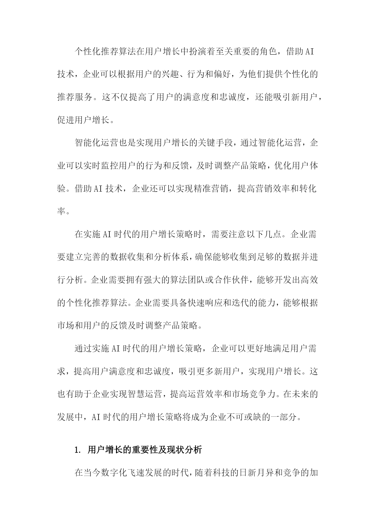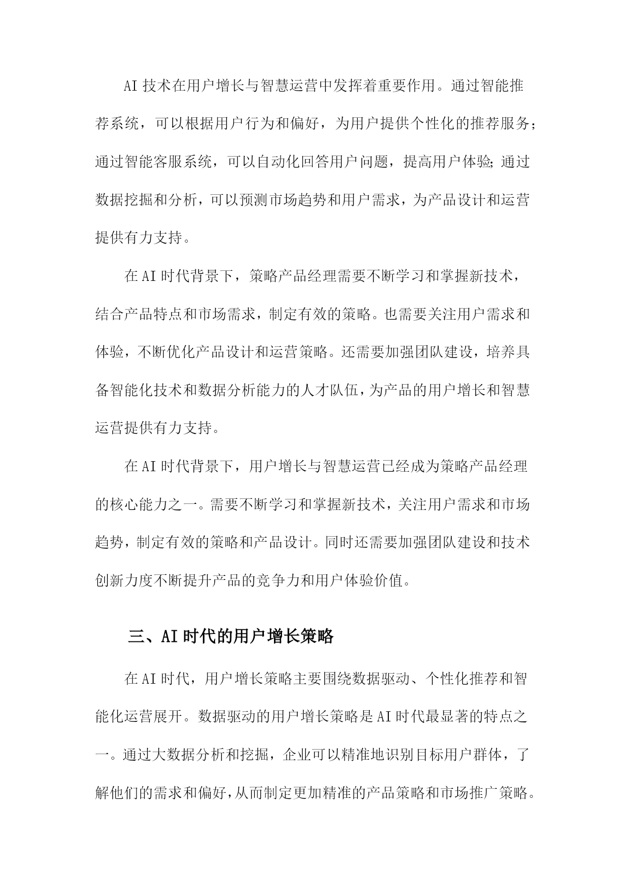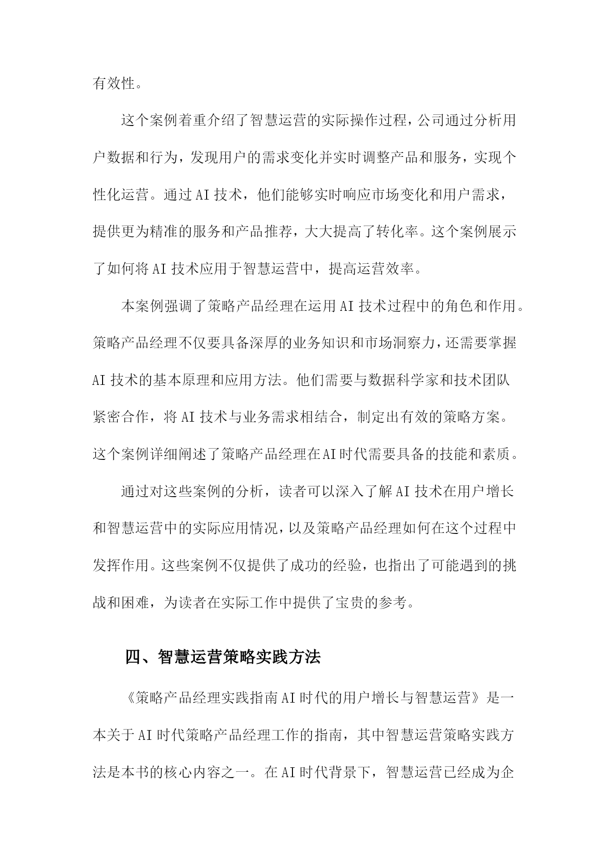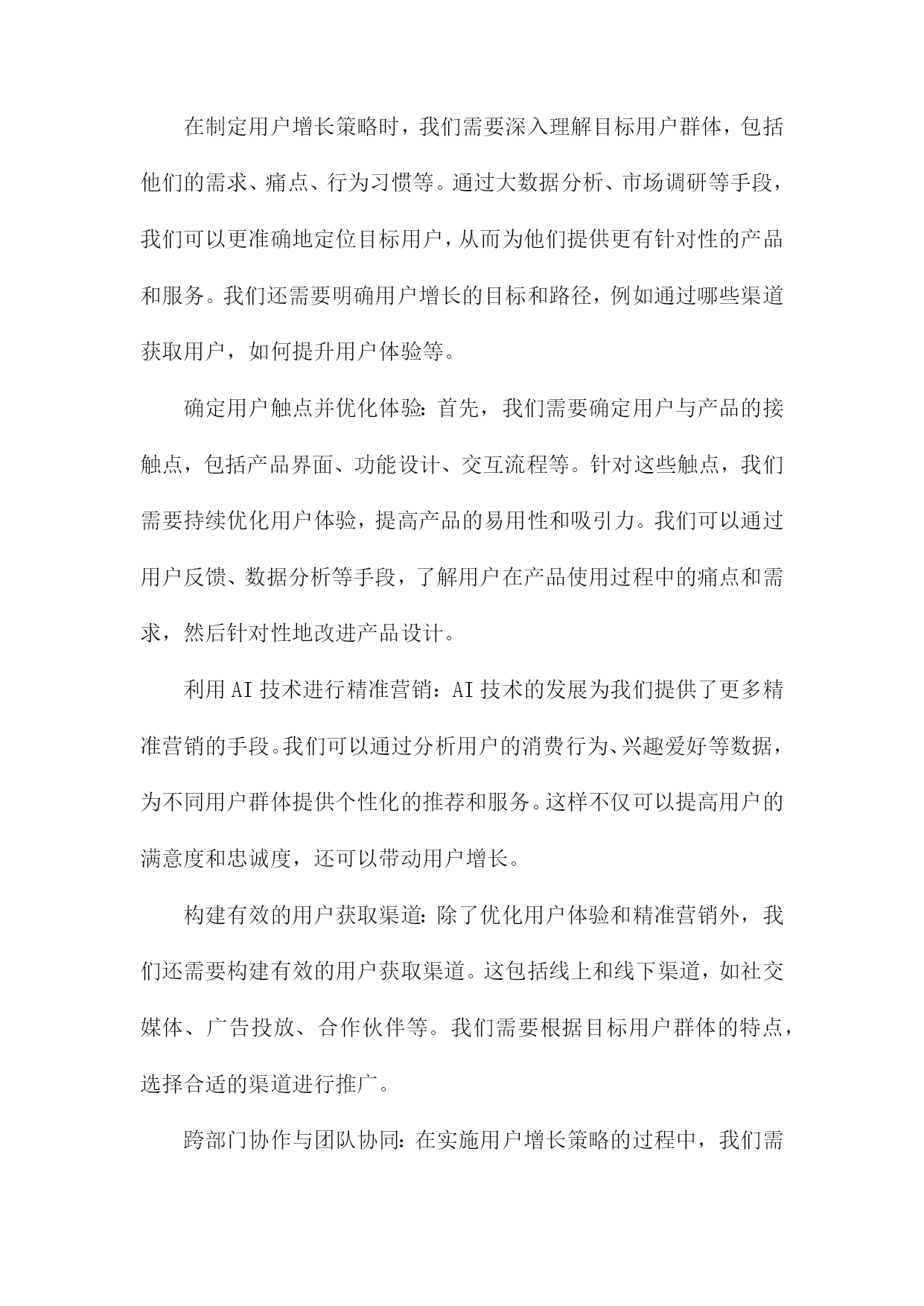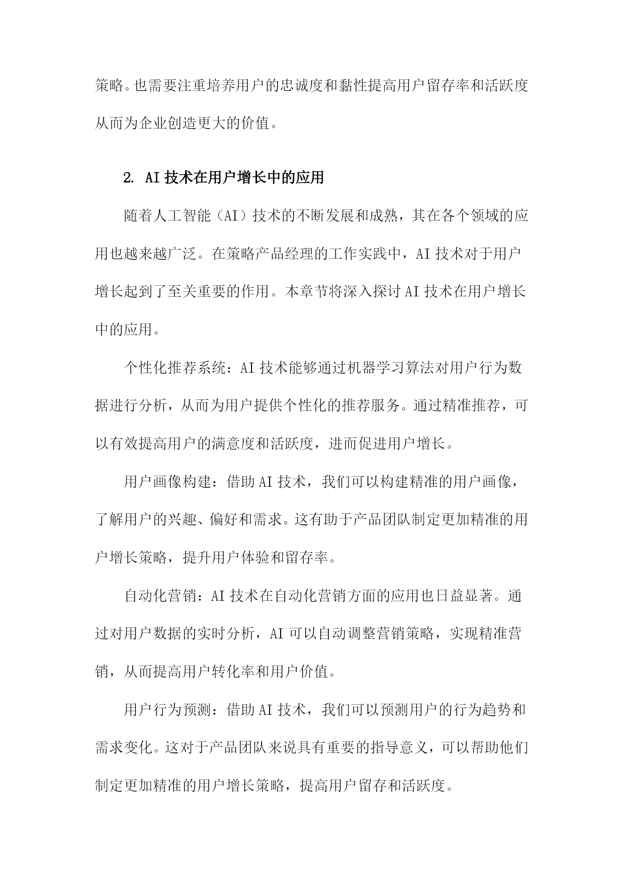 《策略产品经理实践指南AI时代的用户增长与智慧运营》读书记录一、书籍概述在当前的数字化时代,AI已经深入到各个领域,为各行各业带来了前所未有的变革。作为策略产品经理,在这个蓬勃发展的时代背景下,如何把握机遇,实现用户增长与智慧运营,成为了一项重要的课题。《策略产品经理实践指南AI时代的用户增长与智慧运营》一书应运而生,为众多策略产品经理提供了宝贵的经验和指导。本书概述了AI时代背景下的策略产品经理的角色定位与技能要求。书中首先介绍了AI技术的发展趋势及其对策略产品经理的影响,使读者从宏观角度理解当前的市场环境与技术背景。本书详细阐述了策略产品经理在AI时代所面临的主要任务,包括用户增长策略的制定与实施、智慧运营的实践与探索等。书中还强调了策略产品经理需要具备的核心能力,如数据分析、用户洞察、创新思维等。本书的内容结构清晰,逻辑严谨。作者结合多年的实践经验,通过大量的案例分析,深入剖析了AI时代策略产品经理的工作流程及方法。书中还涉及了诸多实用的工具和方法,为策略产品经理提供了具体的操作指导。《策略产品经理实践指南AI时代的用户增长与智慧运营》一书为策略产品经理提供了一个全面的实践指南,帮助他们在AI时代更好地实现用户增长与智慧运营。二、AI时代背景下的用户增长与智慧运营概述随着人工智能技术的飞速发展,AI时代已经到来,深刻地改变了我们的生活和工作方式。对于策略产品经理而言,如何在AI时代背景下把握用户增长和进行智慧运营成为了职业发展的核心能力之一。接下来将简要概述AI时代背景下的用户增长与智慧运营的关键内容。在AI时代,用户增长不再仅仅依赖于传统营销手段,而是需要结合智能化技术深入挖掘用户需求,精准定位目标用户群体。通过对大数据的分析和用户行为的精准跟踪,策略产品经理可以更准确地了解用户的喜好、习惯和需求,从而制定更加精准的营销策略,实现用户增长。借助AI技术,可以实现自动化营销和用户个性化推荐,提高营销效率和用户转化率。智慧运营是指在智能化技术的支持下,通过数据分析和智能化工具的运用,实现产品运营的智能化、自动化和精细化。其核心在于通过数据分析和挖掘,洞察用户需求和市场趋势,优化产品设计和运营策略,提升用户体验和产品价值。在AI时代,智慧运营已经成为产品成功的关键之一。AI技术在用户增长与智慧运营中发挥着重要作用。通过智能推荐系统,可以根据用户行为和偏好,为用户提供个性化的推荐服务;通过智能客服系统,可以自动化回答用户问题,提高用户体验;通过数据挖掘和分析,可以预测市场趋势和用户需求,为产品设计和运营提供有力支持。在AI时代背景下,策略产品经理需要不断学习和掌握新技术,结合产品特点和市场需求,制定有效的策略。也需要关注用户需求和体验,不断优化产品设计和运营策略。还需要加强团队建设,培养具备智能化技术和数据分析能力的人才队伍,为产品的用户增长和智慧运营提供有力支持。在AI时代背景下,用户增长与智慧运营已经成为策略产品经理的核心能力之一。需要不断学习和掌握新技术,关注用户需求和市场趋势,制定有效的策略和产品设计。同时还需要加强团队建设和技术创新力度不断提升产品的竞争力和用户体验价值。三、AI时代的用户增长策略在AI时代,用户增长策略主要围绕数据驱动、个性化推荐和智能化运营展开。数据驱动的用户增长策略是AI时代最显著的特点之一。通过大数据分析和挖掘,企业可以精准地识别目标用户群体,了解他们的需求和偏好,从而制定更加精准的产品策略和市场推广策略。个性化推荐算法在用户增长中扮演着至关重要的角色,借助AI技术,企业可以根据用户的兴趣、行为和偏好,为他们提供个性化的推荐服务。这不仅提高了用户的满意度和忠诚度,还能吸引新用户,促进用户增长。智能化运营也是实现用户增长的关键手段,通过智能化运营,企业可以实时监控用户的行为和反馈,及时调整产品策略,优化用户体验。借助AI技术,企业还可以实现精准营销,提高营销效率和转化率。在实施AI时代的用户增长策略时,需要注意以下几点。企业需要建立完善的数据收集和分析体系,确保能够收集到足够的数据并进行分析。企业需要拥有强大的算法团队或合作伙伴,能够开发出高效的个性化推荐算法。企业需要具备快速响应和迭代的能力,能够根据市场和用户的反馈及时调整产品策略。通过实施AI时代的用户增长策略,企业可以更好地满足用户需求,提高用户满意度和忠诚度,吸引更多新用户,实现用户增长。这也有助于企业实现智慧运营,提高运营效率和市场竞争力。在未来的发展中,AI时代的用户增长策略将成为企业不可或缺的一部分。1.用户增长的重要性及现状分析在当今数字化飞速发展的时代,随着科技的日新月异和竞争的加剧,无论是在互联网行业还是其他领域,用户增长已成为企业持续发展的核心驱动力之一。阅读《策略产品经理实践指南AI