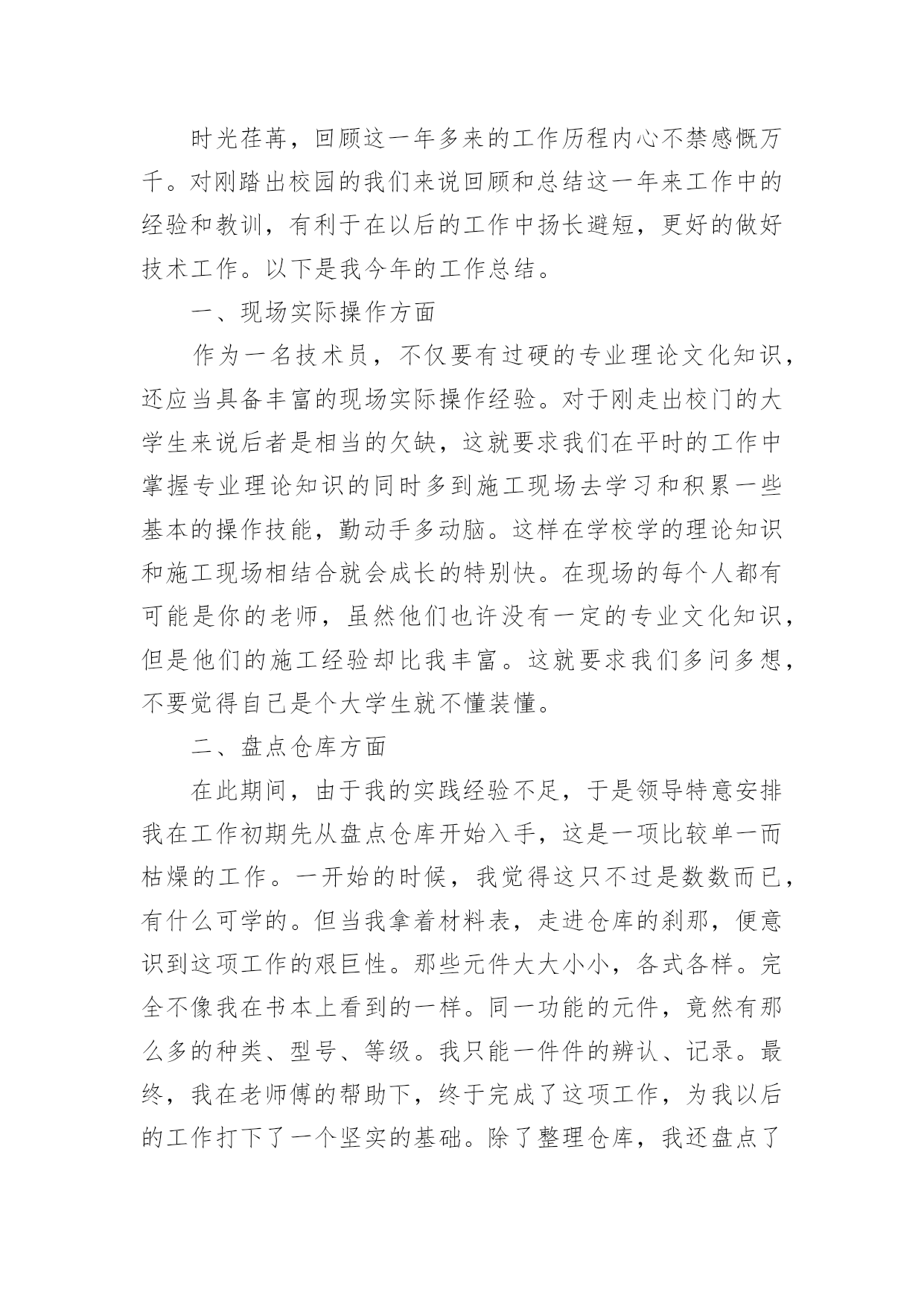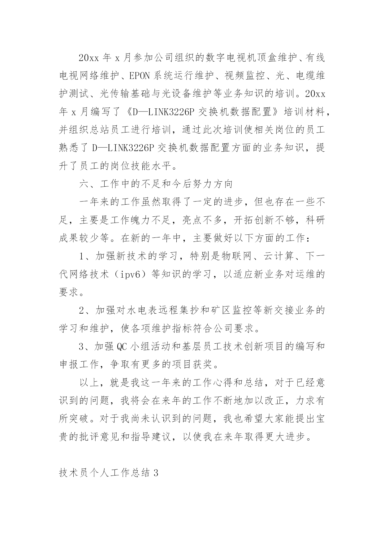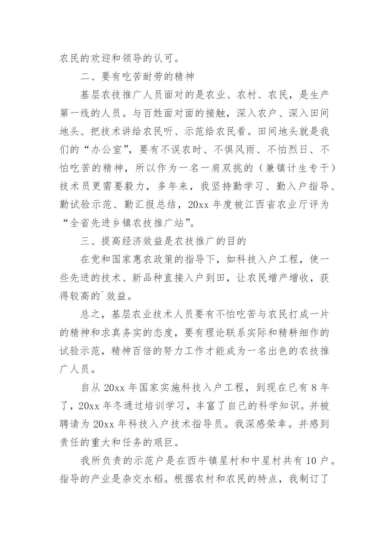 技术员个人工作总结技术员个人工作总结通用15篇总结是在一段时间内对学习和工作生活等表现加以总结和概括的一种书面材料,它是增长才干的一种好办法,让我们抽出时间写写总结吧。总结怎么写才是正确的呢?以下是小编整理的技术员个人工作总结,供大家参考借鉴,希望可以帮助到有需要的朋友。技术员个人工作总结1我是一名战斗在农村第一线的农业技术员,自参加工作以来热衷于农业技术推广事业,把所掌握的知识真正运用到生产第一线,为农民的增产增收起到了一定作用。作为一名基层农业工作者,我有如下心得体会:一、理论联系实践作为一名基层农技推广工作者,首先自己要具备推广农业技术知识、掌握农业生产技术、懂得技术操作过程。多年来,我们订了农村科学实验和植物保护等材料一年四季坚持不同时期不同阶段地印发病虫害情报,准确及时地把农业讯情传送到千家万户,系统地学习了五大作物栽培、病虫害防治、地膜覆盖栽培技术、农田杂草防除技术等。组织实施了各类试验示范,如我们在老屋场村、旁塘村进行了“3414”肥效试验和22个优良水稻品种的产量产值示范比对。受到农民的欢迎和领导的认可。二、要有吃苦耐劳的精神基层农技推广人员面对的是农业、农村、农民,是生产第一线的人员。与百姓面对面的接触,深入农户、深入田间地头、把技术讲给农民听、示范给农民看。田间地头就是我们的“办公室”,要有不误农时、不惧风雨、不怕烈日、不怕吃苦的精神,所以作为一名一肩双挑的(兼镇计生专干)技术员更需要毅力,多年来,我坚持勤学习、勤入户指导、勤试验示范、勤汇报总结,20xx年度被江西省农业厅评为“全省先进乡镇农技推广站”。三、提高经济效益是农技推广的目的在党和国家惠农政策的指导下,如科技入户工程,使一些先进的技术、新品种直接入户到田,让农民增产增收,获得较高的`效益。总之,基层农业技术人员要有不怕吃苦与农民打成一片的精神和求真务实的态度,要有理论联系实际和精耕细作的试验示范,精神百倍的努力工作才能成为一名出色的农技推广人员。自从20xx年国家实施科技入户工程,到现在已有8年了,20xx年冬通过培训学习,丰富了自己的科学知识。并被聘请为20xx年科技入户技术指导员。我深感荣幸。并感到责任的重大和任务的艰巨。我所负责的示范户是在西牛镇星村和中星村共有10户。指导的产业是杂交水稻。根据农村和农民的特点,我制订了自己的入户方法。首先是科技培训,除了对全镇113户种养能手统一培训以外,还入村入组集中培训,在培训中发放并指导填写了示范户手册。同时填写好了技术员手册。其次是及时入户指导,让示范户明白科技入户的目的和在农业生产中所起到的作用。我把入户时间安排在早、午、晚。这样不会耽误示范户干农活,还可以做到提前进行指导。从春播到秋收,根据具体情况做好入户安排,做好与示范户的衔接。不但要指导好示范户科学种田,还要带动周边农户。改变以往的粗放经营。通过入户指导,农民才知道要想高产、高效,首先就是要有优良的杂交种子,然后必须狠抓病虫害防治及大田管理。本人通过几次的技术指导员培训和入户工作,明白了一个道理,科技示范户指导员的责任是传播科学种植和养殖技术。并把生产中存在的问题和农户急需解决的问题。在自己能力范围内能解决的及时解决,不能解决的反映到专家组来解决。做好与示范户的沟通。有了我对科技入户这项工作的充分认识,我今后的工作方向是,益于农民,以农民为重,使农民真正都富裕起来。使科技入户工作做得更好,充分发挥技术指导员应有的作用,农业工作是一项比较辛苦的工作,这对于刚从事农业工作或已从事多年的人都深有体会,本人从事农村农业工作几十年,作为一名普通的农业技术员,对其中的“辛、酸、苦、辣”深有体会,那么怎么才能算是一名合格的农业技术员呢?以下谈谈要成为一名合格技术员应具备的基本素质:一、一流的态度:态度是决定你的思想,影响你的习惯,作用于你的行为,只有想立足于农业事业,坚信要在农业推广工作中成就一番事业,全心全意为人民服务的人才能做得更好,否则,请别轻易进入农业工作这一领域。态度包含以下几方面:1、责任:责任是每位有高级思想的动物都应具备的基本素质,既然从事这一工作,对于一种新技术、新品种、新经验,我们有责任推广好,让农民能够接受,能够应用,这就是我们作为一名普通农业技术员来说,应该负的责任。2、自信:自信的人最美,自信可以帮助你在困境中逆流而上,自信让你的生命充满活力,充满激情,自信能提升一个人的人格魅力,使你的一举一动都充满“引力”牵引群众的眼神,自信在农业工作中的重要性可想而知,缺乏自信的人很难把农业工作做好。3、勤奋:都说勤能补拙,这个道理不管在哪个行业都成立,农业工作本身就是个苦差,千万别想每天什么事都不做浑浑噩噩过日子。4、思考:思考是人类的本能,农业技术员要学会思考,懂得思考,要在思考中总结经验,农业技术推广工作中必定每天会遇到各种各样