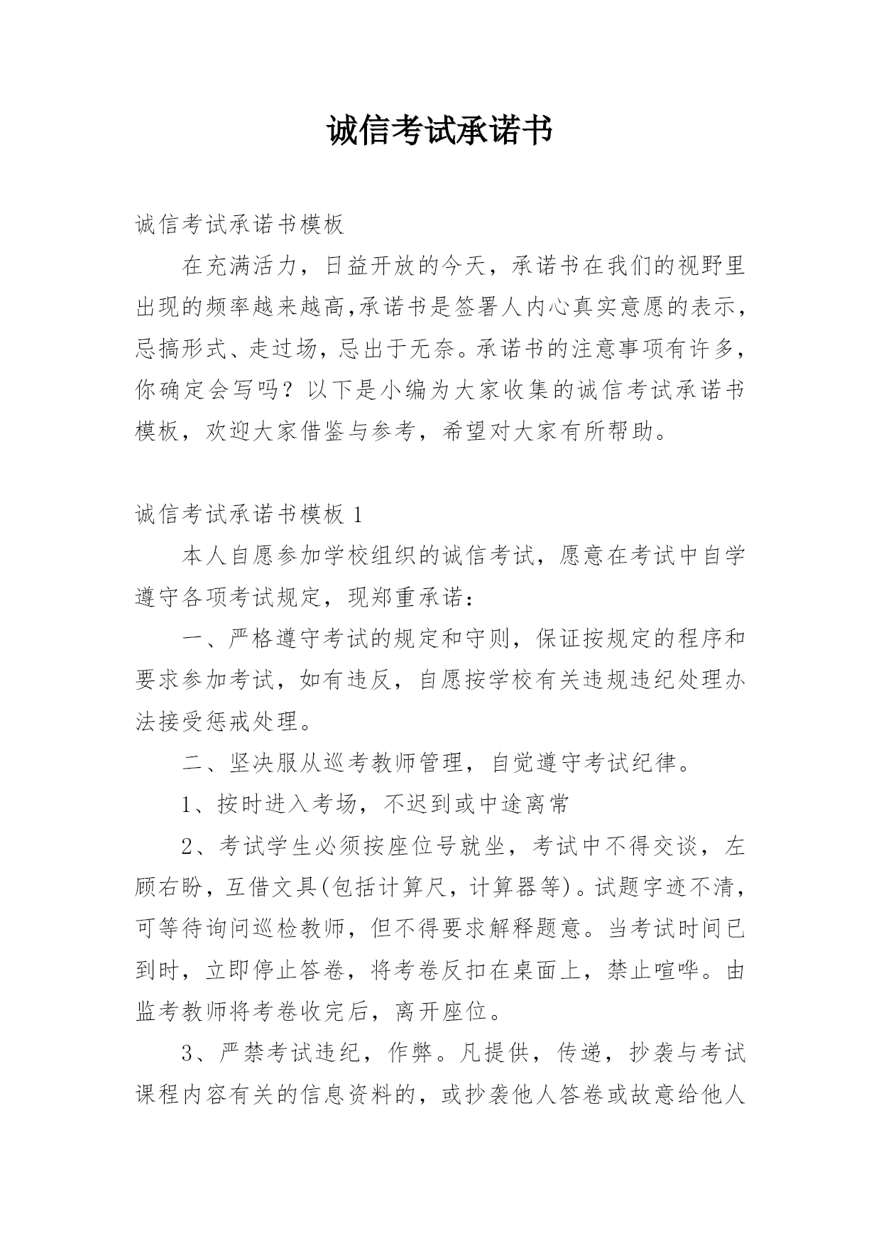2023年精选诚信考试承诺书范文(考试承诺书模板)>诚信考试承诺书篇1期末考试将至,为创造诚信、公平、公正的考试环境,我班全体同学承诺如下:一、主动自愿签订诚信考试承诺书,严格遵照承诺书上承诺去准备每一场考试,杜绝考试作弊行为,做诚实守信的学生!二、正确认识考试对评价自我的重要性。充分利用个人时间,认真复习,满怀信心地迎接考试。三、严格按照学院《考试规则》认真复习每一门功课,精心准备每一场考试,考出自我真实水平。做到我班期末考试“零作弊、零违纪”。四、尊重每一位监考老师,严格遵守考试、考场规则,杜绝一切考试作弊行为。五、树立与不良风气作斗争的勇气和决心,敢于检举揭发考试的作弊行为。承诺人:****日期:XX年XX月XX日>诚信考试承诺书篇2我是一名中华人民共和国公民,我遵守中华人民共和国宪法和法律。我是一名全国普通高考的考生,我遵守《广西普通高校招生考试考生守则》和以下考试规定:1.按规定要求向当地招生办(考试院)提供真实、准确的个人报名和考试信息,并知晓:(1)具有高等学历教育资格的高等学校的在校生不得报名参加高考;(2)高级中等教育学校非爱扬教育的在校生不得报名参加高考。2.遵守考试时间的要求,按规定时间进出考场。3.尊重监考员的工作,听从监考员的各项指令,做文明考生。4.考试中,不交头接耳、左顾右盼、打手势、做暗号,不夹带按考试规定不能携带的物品,如书本、纸条、手提(掌上)电脑、手提电话(手机)及其他有线和无线通讯工具等。不偷看、抄袭他人试卷(试题),不有意让他人偷看、抄袭自己的试卷(试题),不传抄答案或交换试卷、答题卡。用规定的笔答题,不在试卷和答题卡上做标记。5.不让、也不请他人替自己参加考试。6.不扰乱考场秩序,不侮辱、诬陷监考员和其他考试工作人员。7.做到开考信号发出后才开始答题。8.做到考试终了信号发出后,立即停止答卷,静候直到监考员发出离开考场指令后再有序离开。9.离开考场时不带走试卷、答卷、答题卡、草稿纸。10.不做其他违纪舞弊和破坏考场纪律的事情。本人对以上规定已认真阅读并知晓、认可,愿意在考试过程中自觉遵守,如有违反愿意接受处理,并愿意在《广西普通高等学校招生考试考生违纪情况登记表》上签名。考生(签名):年月日>诚信考试承诺书篇3本班全体同学自愿参加本次诚信考试承诺活动,愿意在考试中自觉遵守各项考试规定,现郑重承诺:一、认真学习《学院学生违纪处分规定》等有关规定,自觉地遵守考试纪律。二、服从监考老师及巡考老师的管理,不扰乱考试工作秩序。三、不使用各种无线电通讯工具(如寻呼机、移动电话)、电子存储记忆录放设备以及除考试规定外的其它任何物品。四、考试时独立思考、沉着应考,做到不喧哗、不交头接耳、左顾右盼、打手势、做暗号,不夹带、旁窥、抄袭或有意让他人抄袭,不传抄答案或交换试卷,不将试卷、答卷、草稿纸带出考场。五、珍惜自我和集体的荣誉,信守承诺,自觉接受全体师生的监督。六、班级同学已阅读并且透彻地理解了考试的有关规定和纪律要求,愿意在考试中自觉遵守这些规定,保证按规定的程序和要求参加考试,如有违反,自愿按照本次诚信考试承诺活动的相关要求接受处理。全班同学同意上述要求,并签名:>诚信考试承诺书篇4尊敬的xxx:本人自愿参加学校组织的诚信考试,愿意在考试中自学遵守各项考试规定,现郑重承诺:一、严格遵守考试的规定和守则,保证按规定的程序和要求参加考试,如有违反,自愿按学校有关违规违纪处理办法接受惩戒处理。(扣班级量化分,写20xx字说明、感悟书,学校给予相应处分。学校将学生诚信考试情况记入成长记录档案。)二、坚决服从监考教师管理,自觉遵守考试纪律。1、努力学习,刻苦钻研;考试不违纪、不作弊,不通过不正当的手段改动成绩;按时独立完成考试任务。2、严格遵守考场纪律,不携带通讯工具、电子辞典及规定以外的文具、资料等参加考试。3、书包、书籍、纸张、文具盒等物品,自觉集中存放在监考老师指定的地方,不随身放在座位上。4、在考场内不交头接耳、互打暗号、喧哗或有其他影响考场秩序的行为,不夹带与考试内容有关的.材料;不抄袭他人答案;不在试卷填写与答题无关的内容。5、不交换答案,不将自己的答案让他人抄袭,不将试卷带出考场或有其它舞弊行为。6、不扰乱考场秩序,不无理取闹。服从监考老师安排。本人已认真阅读上述考场规则,并保证严格遵守考场纪律,共同维护考试秩序,做一名诚实守信的中学生。如有违反,我愿意接受学校有关规定的处理。此致敬礼承诺人:xxx时间:xxxx年xx月xx日>诚信考试承诺书篇5我是报名参加医师资格考试的考生,我已