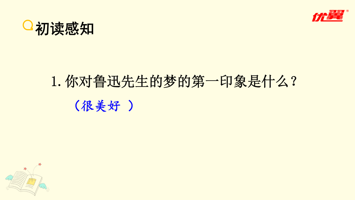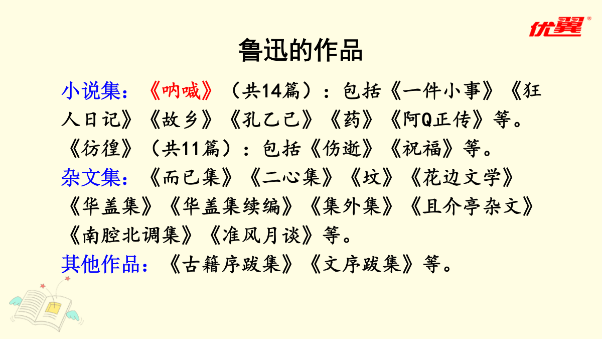 同学们做过梦吗?你的梦境是什么样子的?今天就让我们走进鲁迅先生的梦里。哪位同学为大家介绍下你认识的鲁迅?接下来让我们一起走进鲁迅先生的梦,看看他的梦是什么样子的。小说集:《呐喊》(共14篇):包括《一件小事》《狂人日记》《故乡》《孔乙己》《药》《阿Q正传》等。《彷徨》(共11篇):包括《伤逝》《祝福》等。杂文集:《而已集》《二心集》《坟》《花边文学》《华盖集》《华盖集续编》《集外集》《且介亭杂文》《南腔北调集》《准风月谈》等。其他作品:《古籍序跋集》《文序跋集》等。散文集:《朝花夕拾》。《朝花夕拾》是鲁迅