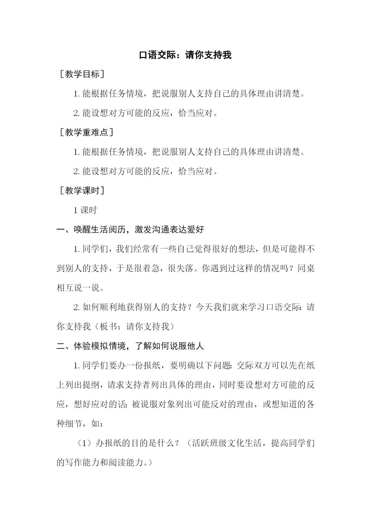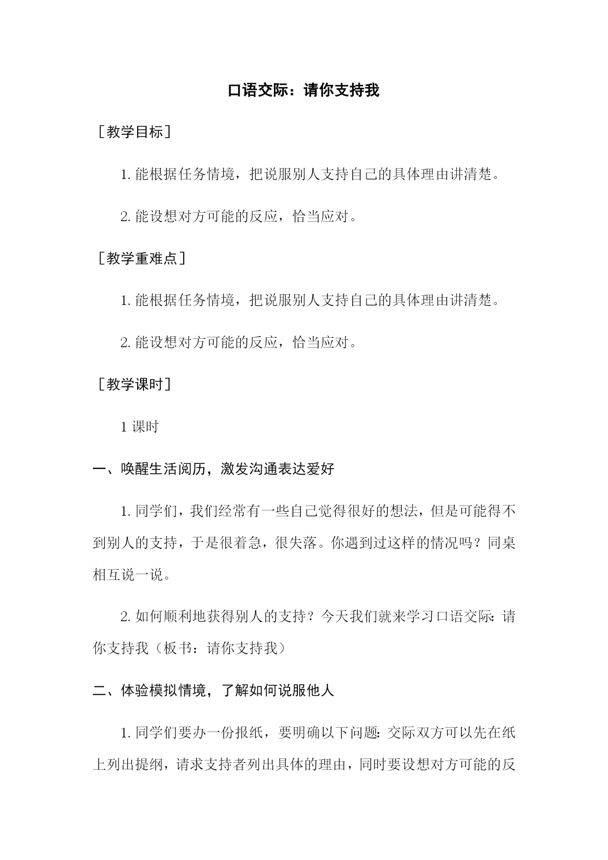(教案)口语交际:请你支持我-最新经典通用教辅资料.docx