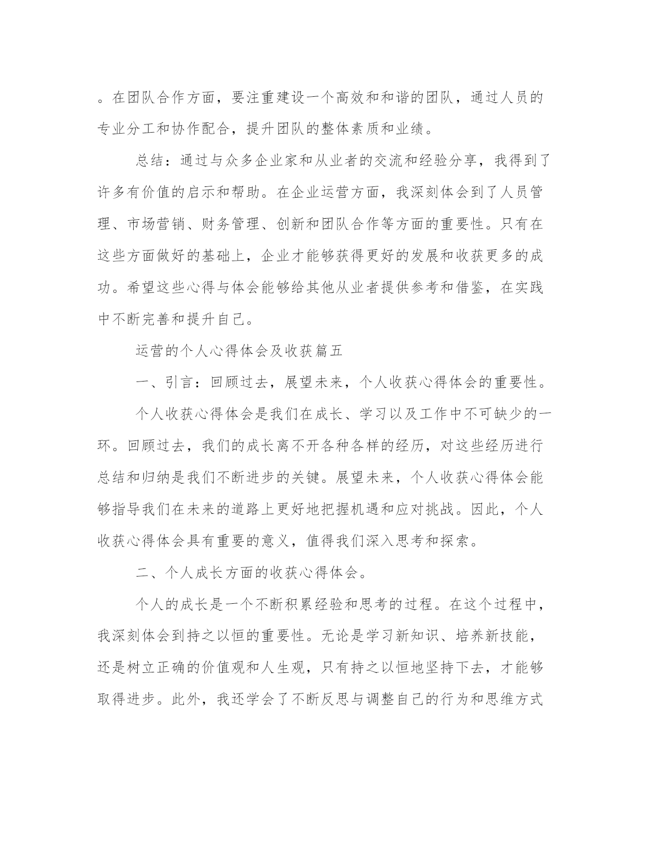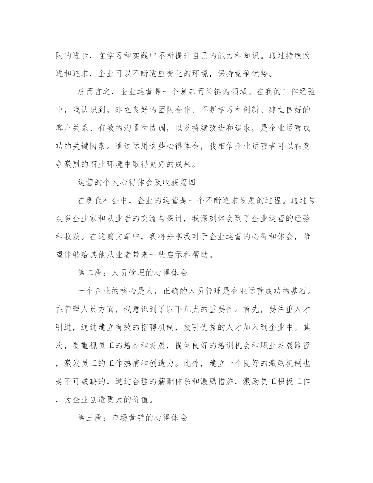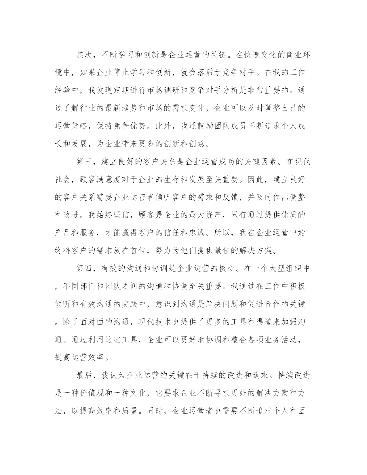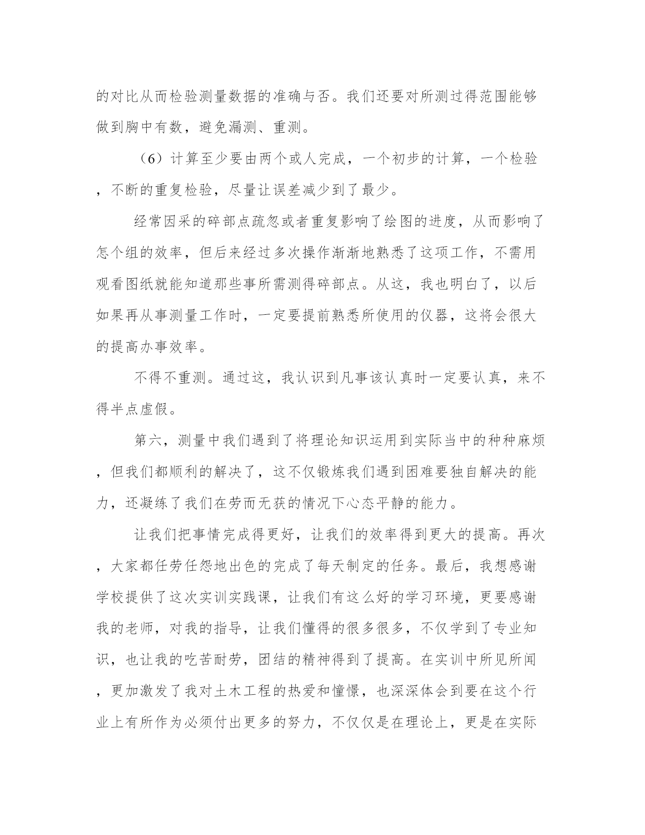 2023年运营的个人心得体会及收获大全(18篇)每个人的心得体会都是独特的,可以从不同的角度和层面来进行思考和归纳。写心得体会时,要注意语言简练、条理清晰,便于读者理解和吸收。小编特意搜集了一些精彩的心得体会范文,供大家参考和借鉴。运营的个人心得体会及收获篇一两周以来的测量实训,我得到了一次较全面的、系统的锻炼,也学到了许多书本上所学不到的知识和技能。通过这次测量实训,我从中学习到了好多实实在在的东西,很多在课本上不可能学到的知识。在实践操作中,巩固、扩大和加深我们从课堂上所学的理论知识。对水准仪、经纬仪的操作也更加熟练,还有对图纸的熟悉程度也大有提高,获得了一些测量实际工作的宝贵经验和重要技能。进一步熟练了测量仪器的操作技能,提高了快速计算和绘图能力,在一些细节小处培养了我们的工作能力。这些知识往往是我在学校很少接触、注意的,但又是十分重要、十分基础的知识。从而积累了许多经验,使我学到了很多实践知识。实训既培养了我们的独立工作能力,又发挥了我们的团队合作精神。测量工作不可能靠一个人完成,只有与同学团结合作才能快速而高效的完成测量工作。在此次测量实训过程中我总结出了一些经验第一:我们学到了测量的实际能力,更有面对困难的忍耐力,同时也认识到小组团结的重要性以及测量的步骤。在对数据的检查和校正的过程中,明白了各种测量误差的来源,其主要有三方面:仪器误差、外界影响误差(如温度、大气折射等)、观测误差。了解如何避免测量结果误差,最大限度地减少误差的出现,即要做到:在仪器选择上要选择精度较高的合适仪器。1、提高自身的测量水平,降低误差。2、通过各种处理数据的数学方法如:多次测量取平均数等来减少误差。积累,及时发现错误,更可以提高测量的效率。第三测量过程中我们注意到:(1)立标尺时,标尺要立直,尽量避免晃动,有晃动时,应该选择数据最小的时候进行读取。在读数前一定将视野的气泡调平(两侧的线重合),否则造成的误差会很大。(2)在测量时候一定要小心,因为稍微碰了一下仪器,就要重新调整对中水平,否则就会导致数据错误。3)在读取数据时要细心,既要看得准,还要果断,不能犹豫不决,任何一个错误都有可能导致最终的成果的报废。(4)选点非常重要,点一定要选在有代表性的地方,同时要注意并非点越多越好,相反选取的无用点过多不但会增加测量,计算和绘图的劳动量和多费时间,而且会因点多而杂乱产生较大的误差。(5)要先将道路和主要建筑物确定下来,然后在添加其余次要方面,这样不但条理清楚,有利于作图的准确和随时进行实物和图形的对比从而检验测量数据的准确与否。我们还要对所测过得范围能够做到胸中有数,避免漏测、重测。(6)计算至少要由两个或人完成,一个初步的计算,一个检验,不断的重复检验,尽量让误差减少到了最少。经常因采的碎部点疏忽或者重复影响了绘图的进度,从而影响了怎个组的效率,但后来经过多次操作渐渐地熟悉了这项工作,不需用观看图纸就能知道那些事所需测得碎部点。从这,我也明白了,以后如果再从事测量工作时,一定要提前熟悉所使用的仪器,这将会很大的提高办事效率。不得不重测。通过这,我认识到凡事该认真时一定要认真,来不得半点虚假。第六,测量中我们遇到了将理论知识运用到实际当中的种种麻烦,但我们都顺利的解决了,这不仅锻炼我们遇到困难要独自解决的能力,还凝练了我们在劳而无获的情况下心态平静的能力。让我们把事情完成得更好,让我们的效率得到更大的提高。再次,大家都任劳任怨地出色的完成了每天制定的任务。最后,我想感谢学校提供了这次实训实践课,让我们有这么好的学习环境,更要感谢我的老师,对我的指导,让我们懂得的很多很多,不仅学到了专业知识,也让我的吃苦耐劳,团结的精神得到了提高。在实训中所见所闻,更加激发了我对土木工程的热爱和憧憬,也深深体会到要在这个行业上有所作为必须付出更多的努力,不仅仅是在理论上,更是在实际的应用中,与此同时我也深深的体会到一份责任,希望能够通过自己的努力,扎实学好专业知识,为将来成为一个卓越的工程师打下良好的基础。运营的个人心得体会及收获篇二近年来,随着互联网的迅猛发展,个人运营逐渐成为一种新兴的创业方式。作为个人运营者,我也深刻体会到了其中的乐趣和挑战。在这个过程中,我积累了一些经验和体会,今天我想和大家分享一下。希望能为其他渴望尝试个人运营的人提供一些帮助和启发。第一段:明确目标并制订计划个人运营的第一步就是要明确目标。我们要清楚自己想要达到的是什么,并为此制订合理的计划。目标可以是开设自己的网店、写作、卖货等等。我曾经想要开设自己的网店,于是我设定了一个目标:在一年内实现网店的盈利。然后,我根据这个目标,制定了一份详细的计划表,每天都有具体的任务和时间安排。只有有了目标和计划,我们才能更有条理地推进个人运营,不至于遇到
