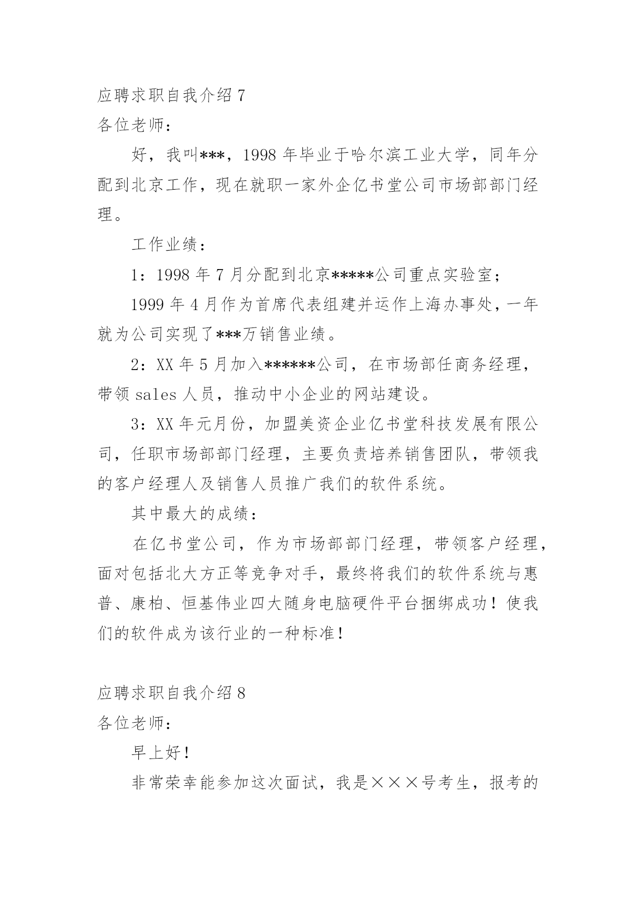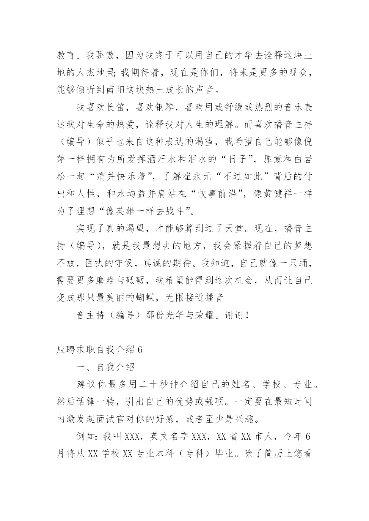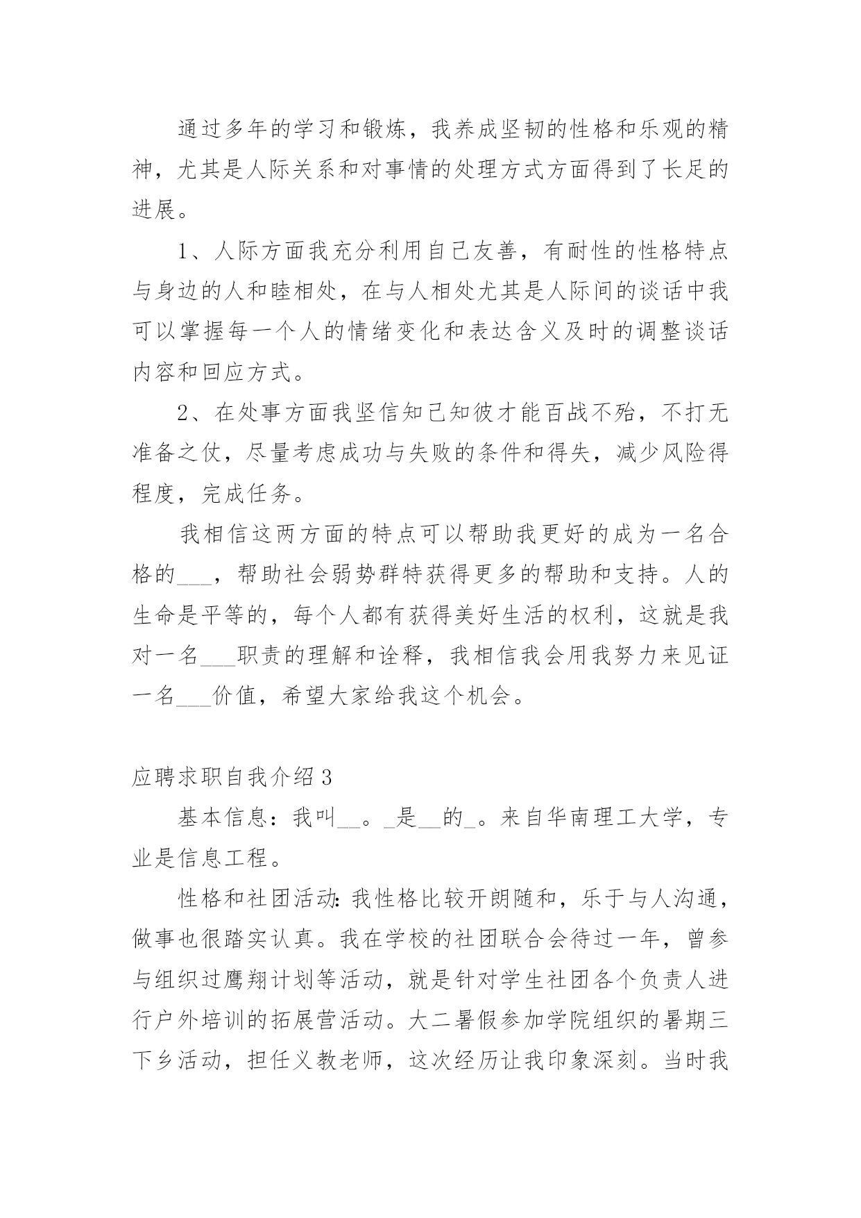 应聘求职自我介绍当进入一个新环境,常常需要我们进行自我介绍,用自我介绍往往可以让他人有一定的了解。那么什么样的自我介绍才合适呢?下面是小编为大家整理的应聘求职自我介绍,欢迎大家借鉴与参考,希望对大家有所帮助。应聘求职自我介绍1大家好,我叫___,应聘贵校的体育教师一职。首先向各位领导进行一下个人自我介绍__大学的四年时光,认真学习,刻苦训练,并且各课成绩优异。同时兼任体育学院院队、中长跑队队长,配合教练担任起院田径队中长跑的训练任务,从专项业务能力方面自己得到了充分发挥。自己不但专项突出,从第二专选及爱好方面发展自己的一技之长,而且通过教育实习证明自己有较强的组织能力,教学能力,力求教学方面新疑有效,且在实习中取得了优异成绩。在学习上,我积极进取,平时高标准严格要求自己,并采取先进的思维方式,客观地看待问题,学习运用辩证唯物主义分析解决问题。为了更加适应社会的需要,我坚持学习英语及计算机,就是靠这一点一滴的积累我逐渐的充实自己、完善自己。在生活上,我非常注重人际交往。因此我常常参加一些校院组织的公益活动及劳动当中,从中培养自己的交往能力,平时注意团结同学,乐于助人,往往以帮助他们摆脱困难为自己的快乐。在求学过程中,我犹深体会到作为一名人民教师的神圣职责,也由衷地感受到每一位老师犹如人梯,为成就攀登者而牺牲自己:犹如露珠,滋润着吐艳的花果。现在,我马上就要从一名受教者,到一名施教者,这是一直梦寐以求的愿望。因此,我将以满腔的热情、百倍的信心投入到我热爱的教育事业中去。经过四年的学习,我自信已具备走上教师岗位的条件,我坚信,贵校定会任贤唯举,慧眼识才,希望贵校能给我加入你们队伍的机会,我知道虽然我的讲台很窄,但我可以用青春和知识为己插上博空万里的翅膀,必尽我绵薄之力,为贵校作出贡献。应聘求职自我介绍2各位考官好,能参加这次面试我感到很荣幸,我希望通过这次面试将一个真实的自己展示给您,帮助自己抓住这个机会。我是___,来自于___。可能有的人知道___,那里就是我出生的地方,所以以此为名,同时它也有吉祥延绵之意。我平时喜欢阅读书籍和时事消息,尤其喜欢名人传记,在阅读他们时,我相信它们不光可以了解名人的风采,更可以增长自己的人生阅历,经历我生活中无法经历的精彩人生。而在事实方面更偏好于国际形势的了解。我相信在这个广泛合作的现代生活中,扩大自己的知识面是必然的。我毕业于___,在校期间多次参加专业实践活动和项目制定实施过程。成为一名合格的___是我一直不变的愿望。通过多年的学习和锻炼,我养成坚韧的性格和乐观的精神,尤其是人际关系和对事情的处理方式方面得到了长足的进展。1、人际方面我充分利用自己友善,有耐性的性格特点与身边的人和睦相处,在与人相处尤其是人际间的谈话中我可以掌握每一个人的情绪变化和表达含义及时的调整谈话内容和回应方式。2、在处事方面我坚信知己知彼才能百战不殆,不打无准备之仗,尽量考虑成功与失败的条件和得失,减少风险得程度,完成任务。我相信这两方面的特点可以帮助我更好的成为一名合格的___,帮助社会弱势群特获得更多的帮助和支持。人的生命是平等的,每个人都有获得美好生活的权利,这就是我对一名___职责的理解和诠释,我相信我会用我努力来见证一名___价值,希望大家给我这个机会。应聘求职自我介绍3基本信息:我叫__。_是__的_。来自华南理工大学,专业是信息工程。性格和社团活动:我性格比较开朗随和,乐于与人沟通,做事也很踏实认真。我在学校的社团联合会待过一年,曾参与组织过鹰翔计划等活动,就是针对学生社团各个负责人进行户外培训的拓展营活动。大二暑假参加学院组织的暑期三下乡活动,担任义教老师,这次经历让我印象深刻。当时我们由一名老师带领,组成33个人的团队,一起讨论备课和课后总结,组织学生做游戏,一起做饭和生活等等,是特别团结和互相帮助的一个团队,三下乡也取得了特别好的效果,跟那些孩子相处很好,结下了很深的情谊。而且我很乐于为别人服务,做过广交会志愿者,而且担任班级素拓委期间,不厌其烦地通知和统计同学参加的活动情况,几乎没出过错,大家对我的评价是很细心很负责。成绩和项目:信息工程这个专业的课程硬件、软件和通信都有涉及。到目前为止,我的学习成绩排名在前20%,获得过两年三好学生。英语过了六级,也考了口语证书,成绩是b。我参与过老师领导的一个项目,叫做基于contourlet的图像高分辨率重建。我们小组包括老师在内,共有七个人。我当时负责的是图像分割这个模块。这个过程从开始不懂搜索文献,到最后可以阅读中英文文献并根据算法用matlab实现,觉得是个很大的进步。体会科研的过程,提高自学和快速学习能力,我觉得这是最大的收获。对公司和岗位的认识:我应聘的是品质工程师的职位。品质工程师的工作职责:工作职责内容服务对象(主管)1、公司所有原材料、