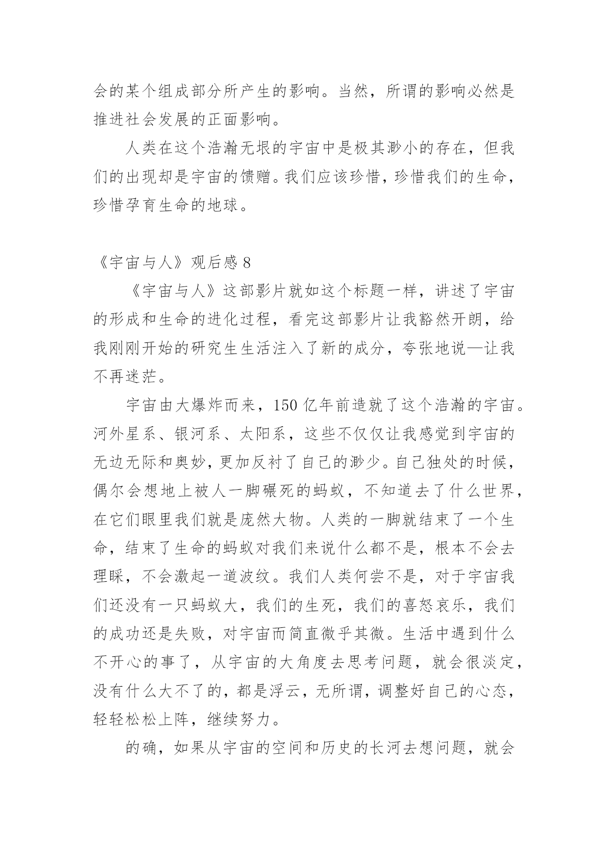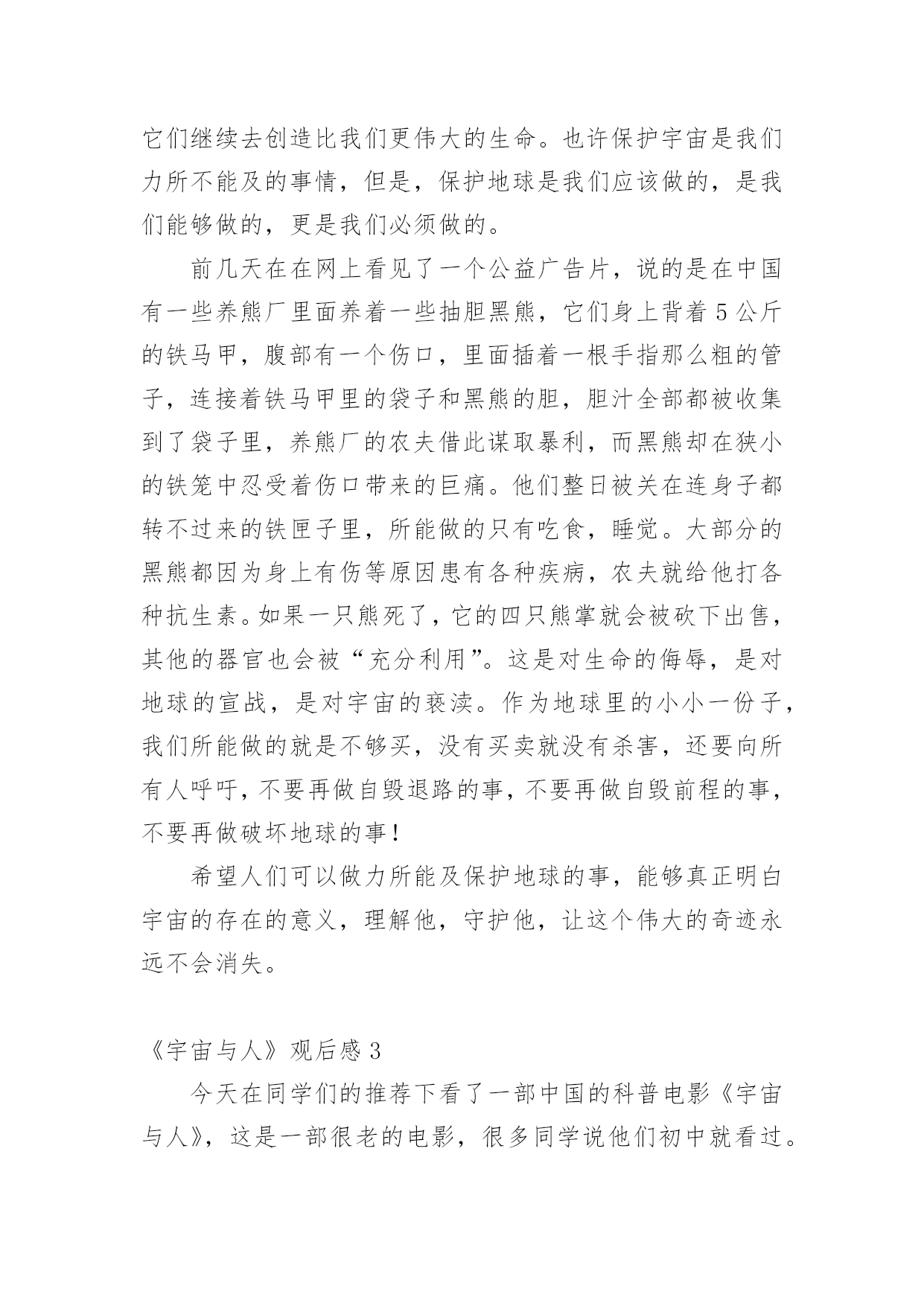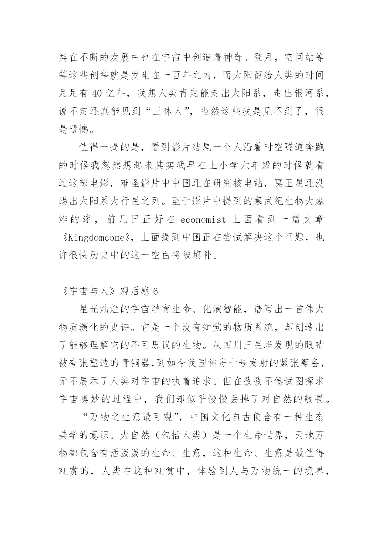 《宇宙与人》观后感认真观看完一部影视作品以后,你有什么总结呢?需要写一篇观后感好好地作记录了。到底应如何写观后感呢?以下是小编收集整理的《宇宙与人》观后感,仅供参考,欢迎大家阅读。《宇宙与人》观后感1高中的时候,政治教师就说过“事物联系的普遍性”的哲学观点。我真的想不明白天空中飞扬的尘埃和我们人类有什么关系,按我的观点,如果硬要把我们人类和尘埃来上关系,那就是,尘埃对我们的健康有影响。无机界又怎样和丰富多彩的有机界拉上关系呢,实在令人费解。影片中有这么一句话“自从人类发现了这种叫基因的机构之后,就能够相信,哪怕是尘埃,只要经过异常精致的编排,就能缔造出生命这样高级物质形态,并且,只要给它足够的时间和空间,它就能演化出质能。”一句多么蕴含科学哲理的话啊。再看看影片,我们明白宇宙的开端并不是那么的丰富,而是极端的单调,仅有氢元素和极少量的氦元素。我们都明白,没有重元素的参与,我们的这个生物大世界肯定不会这样丰富多样!而这些重元素必定就是靠氢、氦两种元素演化而来。所以,物质是普遍联系的,说的俗一点,他们就像有同样的祖先。当然,事物联系的普遍性并不能只是追溯到它们都是有氢、氦演化而来的。但这恰好能说明“哪怕是尘埃,只要经过异常精致的编排,就能缔造出生命这样高级物质形态,并且,只要给它足够的时间和空间,它就能演化出质能。”所以,我们人类和尘埃的联系并不只是限制于“尘埃对我们的健康有害”。同样,无机界和有机界的联系是那样的紧密,我们清楚,万物由氢、氦演化而来,无机发展到有机,过程是那样的漫长。这个世界,不会有孤立存在的事物,整个世界是相互联系的统一整体。恩格斯说过“当我们深思熟虑地研究自然界或人类历史或我们自我的精神活动的时候,首先呈此刻我们眼前的,是一幅有种种联系和相互作用无穷无尽地交织起来的画面。”是啊,事物是普遍联系的。事物的联系是多样的,就尘埃与基因的联系而言,我们能够去尝试演化出我们所需要的东西。我相信,联系必定有可取的一面,我们得好好利用那种本质联系,为我们这个生物世界,为我们的宇宙发展供给加速剂。《宇宙与人》观后感2马克思主义基本原理概论课上,老师给我们推荐看了一部视频——《宇宙与人》。这部纪录片深刻而又细致的给我们呈现了宇宙的形成与人的出现,这使我产生了不少的感触。宇宙是无比伟大的,他虽然是物质的,却能够孕育出生命,孕育出拥有智慧的人类。他用时间,创造出一个又一个的奇迹,星球、空气、水甚至是人。既然是宇宙给了我们生命,是小小核子给了我们生命。我们应该感谢它们,应该让它们继续去创造比我们更伟大的生命。也许保护宇宙是我们力所不能及的事情,但是,保护地球是我们应该做的,是我们能够做的,更是我们必须做的。前几天在在网上看见了一个公益广告片,说的是在中国有一些养熊厂里面养着一些抽胆黑熊,它们身上背着5公斤的铁马甲,腹部有一个伤口,里面插着一根手指那么粗的管子,连接着铁马甲里的袋子和黑熊的胆,胆汁全部都被收集到了袋子里,养熊厂的农夫借此谋取暴利,而黑熊却在狭小的铁笼中忍受着伤口带来的巨痛。他们整日被关在连身子都转不过来的铁匣子里,所能做的只有吃食,睡觉。大部分的黑熊都因为身上有伤等原因患有各种疾病,农夫就给他打各种抗生素。如果一只熊死了,它的四只熊掌就会被砍下出售,其他的器官也会被“充分利用”。这是对生命的侮辱,是对地球的宣战,是对宇宙的亵渎。作为地球里的小小一份子,我们所能做的就是不够买,没有买卖就没有杀害,还要向所有人呼吁,不要再做自毁退路的事,不要再做自毁前程的事,不要再做破坏地球的事!希望人们可以做力所能及保护地球的事,能够真正明白宇宙的存在的意义,理解他,守护他,让这个伟大的奇迹永远不会消失。《宇宙与人》观后感3今天在同学们的推荐下看了一部中国的科普电影《宇宙与人》,这是一部很老的电影,很多同学说他们初中就看过。不过“老”没有关系,我没看过,那对我来讲就是崭新的,再说,“老”的电影到如今依然有她的“关注度”,那可以叫“经典”啦~~总之,有一种相见恨晚的感觉,但与宇宙150亿年的时间跨度相比,也不算什么“晚”啦,呵呵~太强啦希望我们人类能够摆脱国家与国家之间狭隘的分界观念,共同为生命在宇宙中的延续与发展作出贡献!!我们都有一个共同的名字,不仅仅是“中国人”,也不是“美国人”,“英国人”,我们都叫做“人类”!!不要辜负太阳系,乃至宇宙对我们的厚爱,不要白白浪费掉这“天造地设”的生命的摇篮,不要让环境污染弄脏我们“生母”的面庞,不要让战争残酷地抹掉地球经过几十亿年辛辛苦苦才孕育出来的“我们”,要知道,DNA不是像插积木般轻易地堆砌起来的,想想地球几十亿年的历史,想想我们如今如此发达的文明社会竟是从“三叶虫”等简单生物一步步艰辛地走过来的,再想想当今世界人类为了争夺资源,为了各自的利益而争执,甚至引发国与国之间的战争,好好想想吧