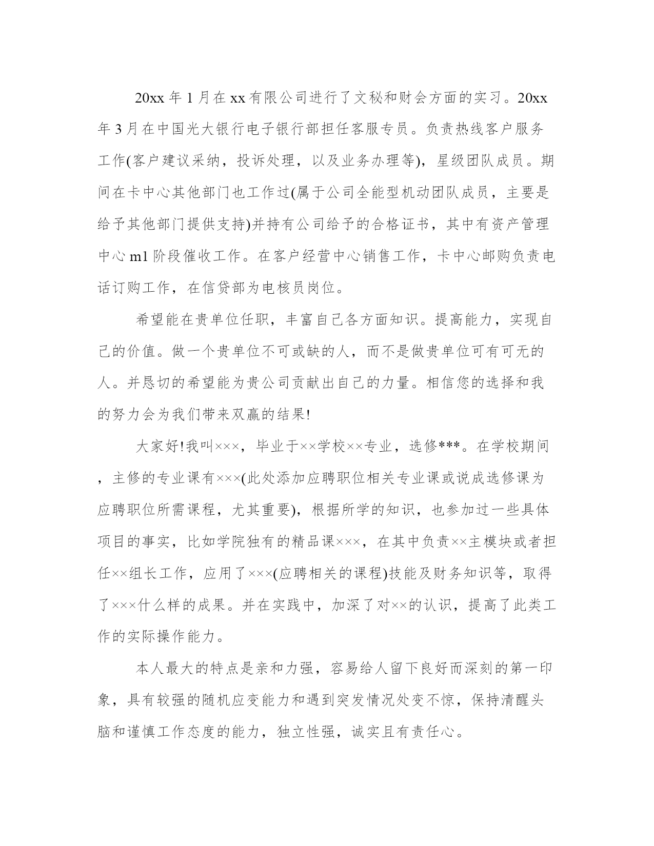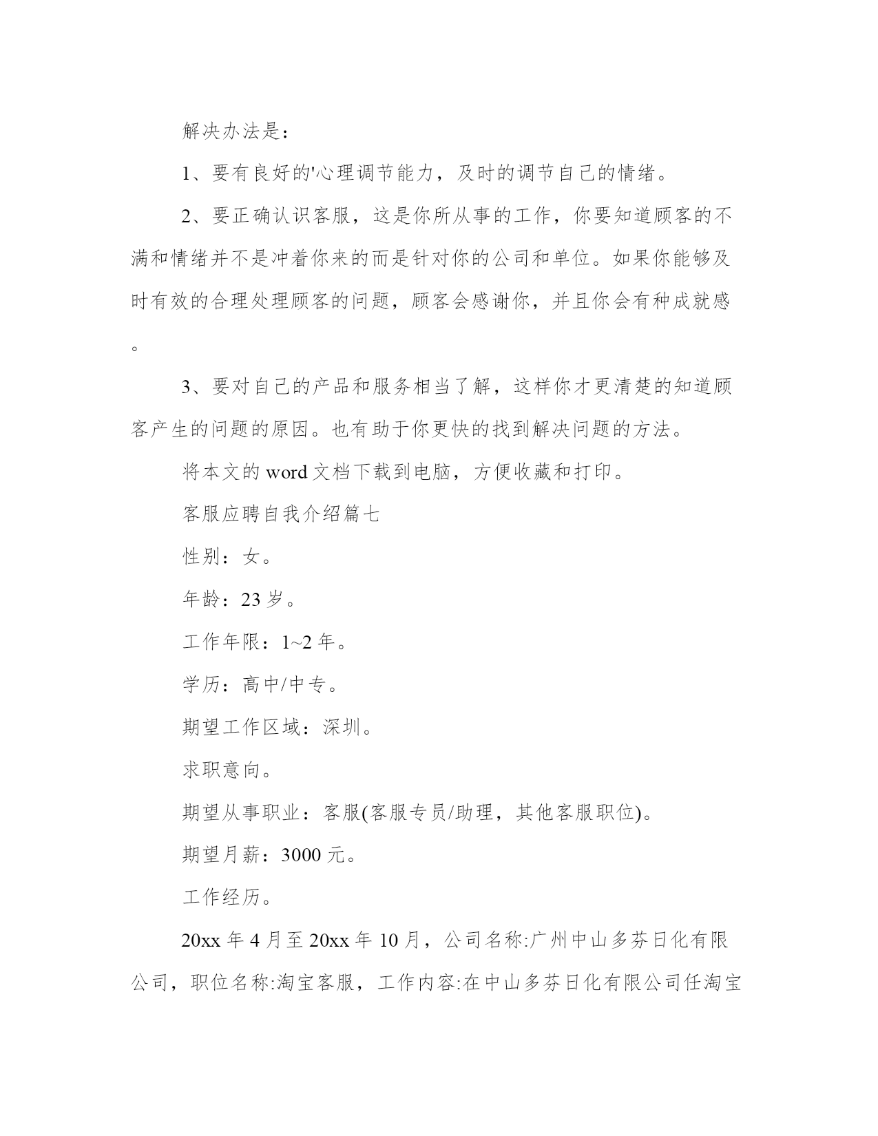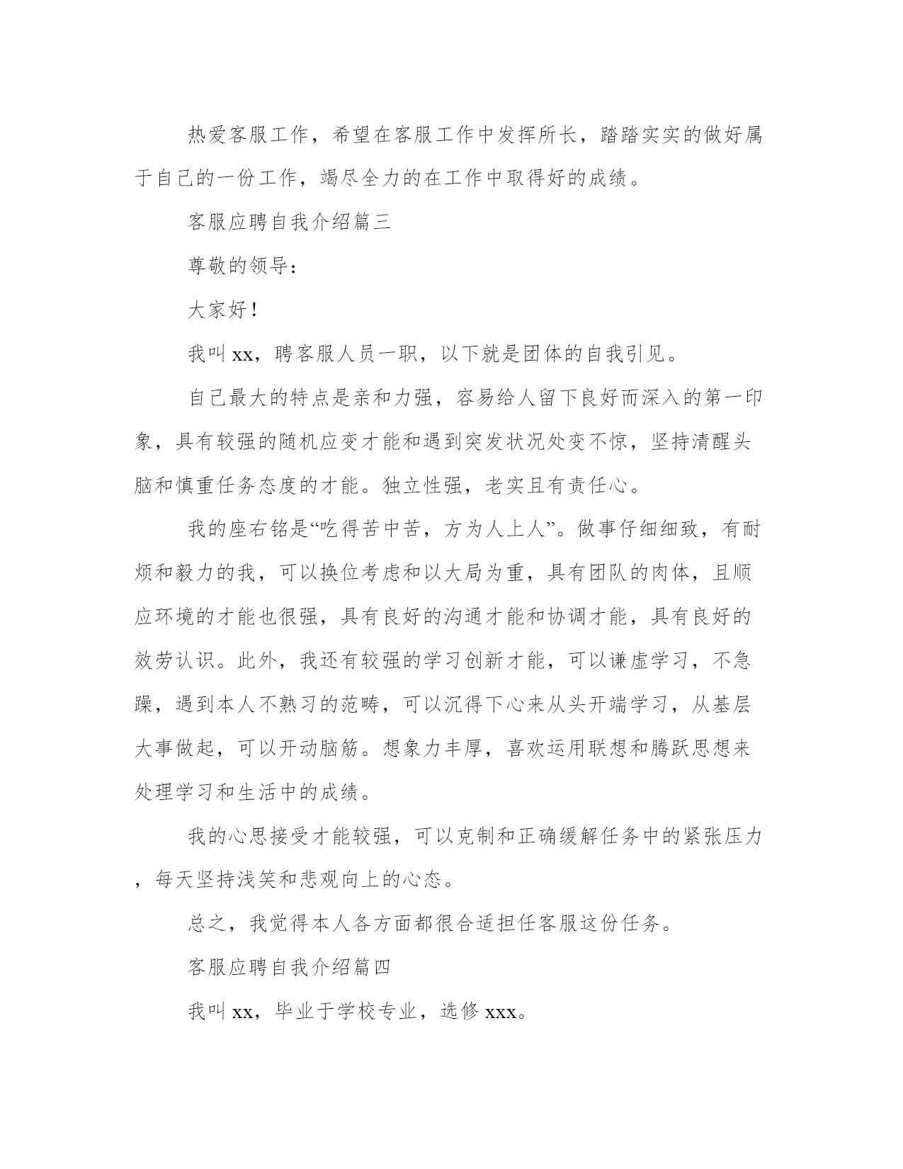 最新客服应聘自我介绍(大全8篇)人的记忆力会随着岁月的流逝而衰退,写作可以弥补记忆的不足,将曾经的人生经历和感悟记录下来,也便于保存一份美好的回忆。范文怎么写才能发挥它最大的作用呢?下面是小编帮大家整理的优质范文,仅供参考,大家一起来看看吧。客服应聘自我介绍篇一您好,我叫xx,市场营销与策划的大专学历、自考北京财贸学院设计专业。在校期间经常参与大型会议会展,并且在第九届中国(北京)国际园林博览会主展馆内担任导览主管一职,会期半年从20xx年5月18日至11月18日。性格上有三大特点:一大特色:善于洞察生活中的细节,对消费者需求尤为敏感!二种态度:实以务事,虚以待人。期望在一个地方长期发展,为公司带来最直接的效益,希望在工作中快乐成长和学习,创造属于自己的一片天。客服应聘自我介绍篇二您好,我来面试客服经理一职,我是个简单的人,简单的生活,简单的工作,平时有空的.时候喜欢游泳,跟朋友在一起,对于生活,我没有任何的不良嗜好,对于工作,勤恳,诚实,踏实稳重,喜欢一步一个脚印的走。热爱客服工作,希望在客服工作中发挥所长,踏踏实实的做好属于自己的一份工作,竭尽全力的在工作中取得好的成绩。客服应聘自我介绍篇三尊敬的领导:大家好!我叫xx,聘客服人员一职,以下就是团体的自我引见。自己最大的特点是亲和力强,容易给人留下良好而深入的第一印象,具有较强的随机应变才能和遇到突发状况处变不惊,坚持清醒头脑和慎重任务态度的才能。独立性强,老实且有责任心。我的座右铭是“吃得苦中苦,方为人上人”。做事仔细细致,有耐烦和毅力的我,可以换位考虑和以大局为重,具有团队的肉体,且顺应环境的才能也很强,具有良好的沟通才能和协调才能,具有良好的效劳认识。此外,我还有较强的学习创新才能,可以谦虚学习,不急躁,遇到本人不熟习的范畴,可以沉得下心来从头开端学习,从基层大事做起,可以开动脑筋。想象力丰厚,喜欢运用联想和腾跃思想来处理学习和生活中的成绩。我的心思接受才能较强,可以克制和正确缓解任务中的紧张压力,每天坚持浅笑和悲观向上的心态。总之,我觉得本人各方面都很合适担任客服这份任务。客服应聘自我介绍篇四我叫xx,毕业于学校专业,选修xxx。在学校期间,主修的专业课有(此处添加应聘职位相关专业课或说成选修课为应聘职位所需课程,尤其重要),根据所学的知识,也参加过一些具体项目的事实,比如学院独有的精品课,在其中负责主模块或者担任组长工作,应用了(应聘相关的课程)技能及财务知识等,取得了什么样的成果。并在实践中,加深了对顺丰客服的认识,提高了此类工作的实际操作能力。另外,在学校中也参加过一些社团活动,比如(此处最好说1-2样如学院周年校庆活动或院运会),在其中加强了和同学们的交流,全方面认识了团队协作的带来的效率,对团队合作和责任感有了新的`感受和知识。个性上,首先是比较诚实、乐观、热情;其次,具有团队精神,踏实努力,很强的责任心。在这里应聘贵公司顺丰客服的职位,是想将自己的所学得到充分发挥,并在这里学习成长。希望有这样的机会,能和诸位成为同事。我的情况大概就是这样,请问有什么其他方面想要了解的么?我会如实一一回答您的提问。谢谢!客服应聘自我介绍篇五本人刻苦努力,也不缺乏活动和交际能力。熟悉windows2操作系统和办公软件的使用,以及互联网的基本操作。20xx年1月在xx有限公司进行了文秘和财会方面的实习。20xx年3月在中国光大银行电子银行部担任客服专员。负责热线客户服务工作(客户建议采纳,投诉处理,以及业务办理等),星级团队成员。期间在卡中心其他部门也工作过(属于公司全能型机动团队成员,主要是给予其他部门提供支持)并持有公司给予的合格证书,其中有资产管理中心m1阶段催收工作。在客户经营中心销售工作,卡中心邮购负责电话订购工作,在信贷部为电核员岗位。希望能在贵单位任职,丰富自己各方面知识。提高能力,实现自己的价值。做一个贵单位不可或缺的人,而不是做贵单位可有可无的人。并恳切的希望能为贵公司贡献出自己的力量。相信您的选择和我的努力会为我们带来双赢的结果!大家好!我叫×××,毕业于××学校××专业,选修***。在学校期间,主修的专业课有×××(此处添加应聘职位相关专业课或说成选修课为应聘职位所需课程,尤其重要),根据所学的知识,也参加过一些具体项目的事实,比如学院独有的精品课×××,在其中负责××主模块或者担任××组长工作,应用了×××(应聘相关的课程)技能及财务知识等,取得了×××什么样的成果。并在实践中,加深了对××的认识,提高了此类工作的实际操作能力。本人最大的特点是亲和力强,容易给人留下良好而深刻的第一印象,具有较强的随机应变能力和遇到突发情况处变不惊,保持清醒头脑和谨慎工作态度的能力,独立性强,诚实且有责任