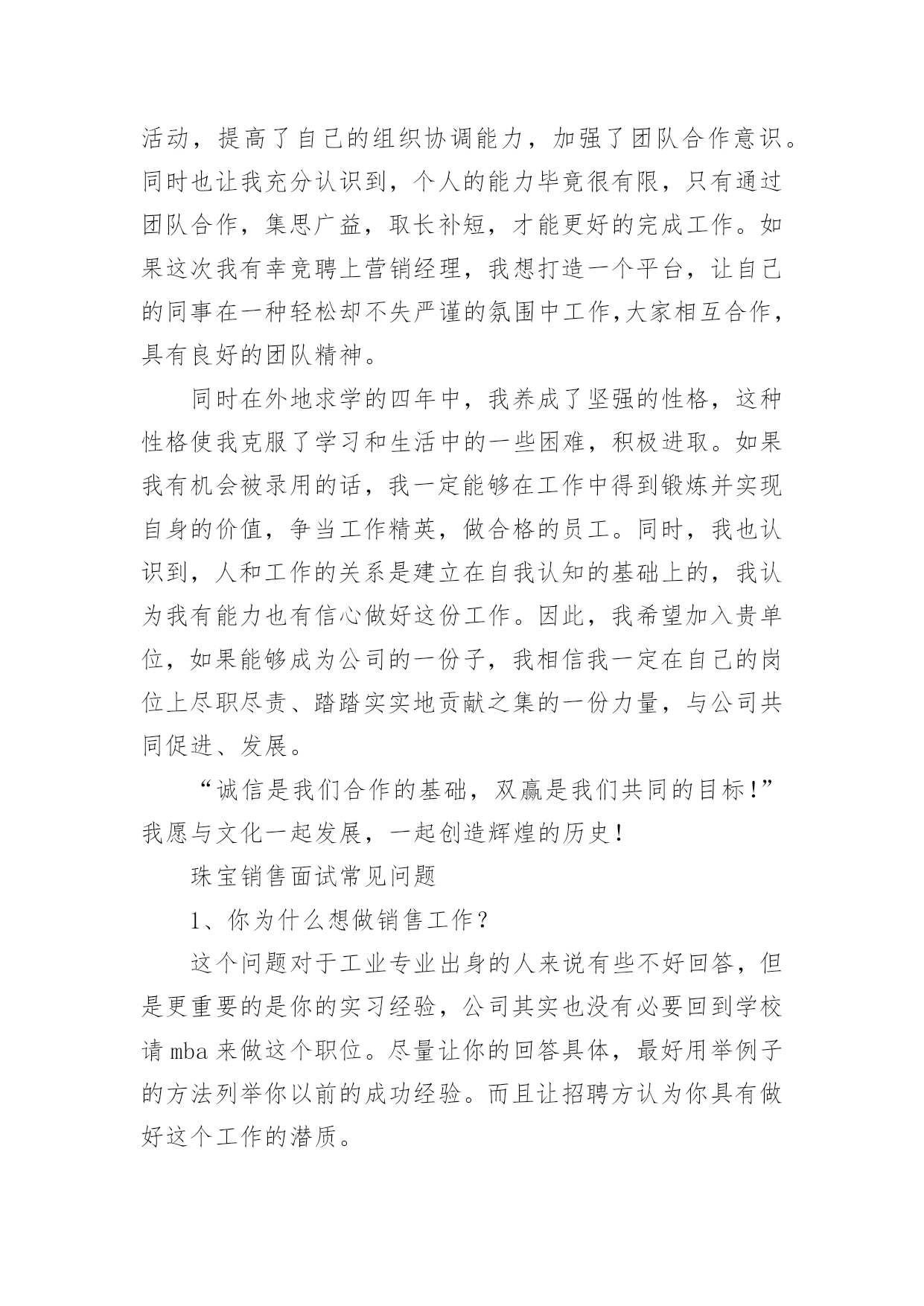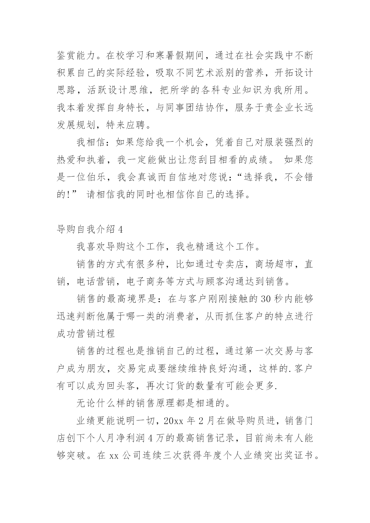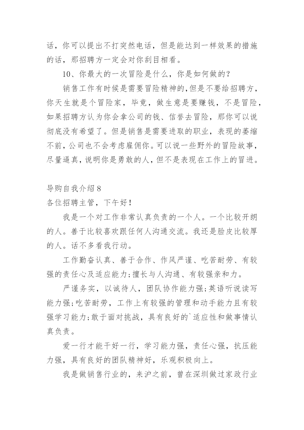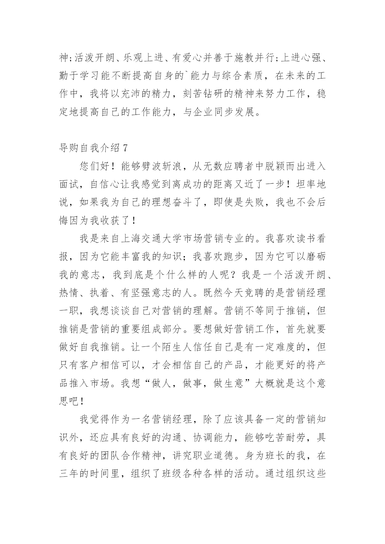 导购自我介绍当碰到陌生人时候,我们难以避免地要作出自我介绍,自我介绍可以满足我们渴望得到尊重的心理。怎么写自我介绍才能避免踩雷呢?下面是小编收集整理的导购自我介绍,欢迎阅读与收藏。导购自我介绍1我叫xxx,现年xx岁,x族,大专文化,平时我喜欢看书和上网流览信息,性格活泼开朗,能关心身边的人和事,和亲人朋友融洽相处,能做到理解和原谅,我对生活充满信心。我曾经在,在公司里先后在不同的岗位工作过,开始我从事工作,随后因公司需要到,有一定的经验,在工作上取得一些的成绩,同时也得到公司的认可。通过几年的工作我学到了很多知识,同时还培养了我坚韧不拔的意志和顽强拼搏的精神,使我能够在工作中不断地克服困难、积极进取。加入销售人员的行列是我多年以来的一个强烈愿望,同时我认识到人和工作的关系是建立在自我认知的基础上,而我感觉到我的.工作热情一直没有被激发到最高,我热爱我的工作,但每个人都是在不断地寻求取得更好的成绩,我的自我认知让我觉得销售人员是一个正确的选择,这些就坚定了我做好销售的信心和决心。将销售工作做好,给公司带来收益,使自身不仅在物质方面获得提高,更重要的是我的人生因我的选择而精彩。导购自我介绍2各位招聘主管,下午好!下面我将通过简单的面试自我介绍让您来了解我。我是来自xx大学市场营销专业的。本人自毕业以来曾在手机专卖店担任营业员、收银以及店长,曾在安利中国公司担任营销员,曾在安踏专卖店担任营销员、收银工作。本人热爱工作,不畏艰辛,任劳任怨,在学习与工作之佘能努力学习各种知识包括理财、营销、市场管理、与人员交流等等。本人熟悉电脑操作。有很好的统筹能力和协调沟通能力,配合领导完成全面工作并把领导的`思想更好地传达给每一位销售经理。在工作中获得过很高的评价及良好的客户满意度。思想严密、逻辑清晰、性格开朗、待人真诚、具有强烈的责任心和事业心,自我评价网具备很好的分析和解决问题的能力。喜欢接受难度较大的工作挑战,精通各种办公软件,英文口语流利。导购自我介绍3您好!我叫XXX,小时候我对绘画和美术设计就非常喜爱。我通过高考终于来到了心中的理想学府——**服装学院。在该院服装设计专业学习后,我强烈的感觉到服装设计是我人生当中最重要的`组成部分,并对服装设计行业有了更高的理解。平时我认真学习专业知识,注重提高自己的艺术修养和鉴赏能力。在校学习和寒暑假期间,通过在社会实践中不断积累自己的实际经验,吸取不同艺术派别的营养,开拓设计思路,活跃设计思维,把所学的各科专业知识为我所用。我本着发挥自身特长,与同事团结协作,服务于贵企业长远发展规划,特来应聘。我相信:如果您给我一个机会,凭着自己对服装强烈的热爱和执着,我一定能做出让您刮目相看的成绩。如果您是一位伯乐,我会真诚而自信地对您说:“选择我,不会错的!”请相信我的同时也相信你自己的选择。导购自我介绍4我喜欢导购这个工作,我也精通这个工作。销售的方式有很多种,比如通过专卖店,商场超市,直销,电话营销,电子商务等方式与顾客沟通达到销售。销售的最高境界是:在与客户刚刚接触的30秒内能够迅速判断他属于哪一类的消费者,从而抓住客户的特点进行成功营销过程销售的过程也是推销自己的过程,通过第一次交易与客户成为朋友,交易完成要继续维持良好沟通,这样的.客户有可以成为回头客,再次订货的数量有可能会更多.无论什么样的销售原理都是相通的。业绩更能说明一切,20xx年2月在做导购员进,销售门店创下个人月净利润4万的最高销售记录,目前尚未有人能够突破。在xx公司连续三次获得年度个人业绩突出奖证书。本次求职希望能找到一家公司长期发展下去,因为我觉得只要更长时间在一家公司才能发挥更大的作用。优秀销售管理者的管理经验都是从做销售的亲身经历中总结得出的,善于总结工作中经验教训的人都是业务熟练成长最快的人,这些都是经过多次失败和探索后总结而来,绝非书本上所能学到的东西。希望能给我个机会向您证明我的实力!导购自我介绍5我是来自上海交通大学市场营销专业的我喜欢读书看报,因为它能丰富我的知识;我喜欢跑步,因为它可以磨砺我的意志,我到底是个什么样的人呢?我是一个活泼开朗、热情、执着、有坚强意志的人。既然今天竞聘的是营销经理一职,我想谈谈自己对营销的`理解。营销不等同于推销,但推销是营销的重要组成部分。要想做好营销工作,首先就要做好自我推销。让一个陌生人信任自己是有一定难度的,但只有客户相信可以,才会相信自己的产品,才能更好的将产品推入市场。我想"做人,做事,做生意"大概就是这个意思吧!我觉得作为一名营销经理,除了应该具备一定的营销知识外,还应具有良好的沟通、协调能力,能够吃苦耐劳,具有良好的团队合作精神,讲究职业道德。身为班长的我,在三年的时间里,组织了班级各种各样的活动。通过组织这些活动,提高了自己的组织协调能力,加强了团队合作意识。同时也