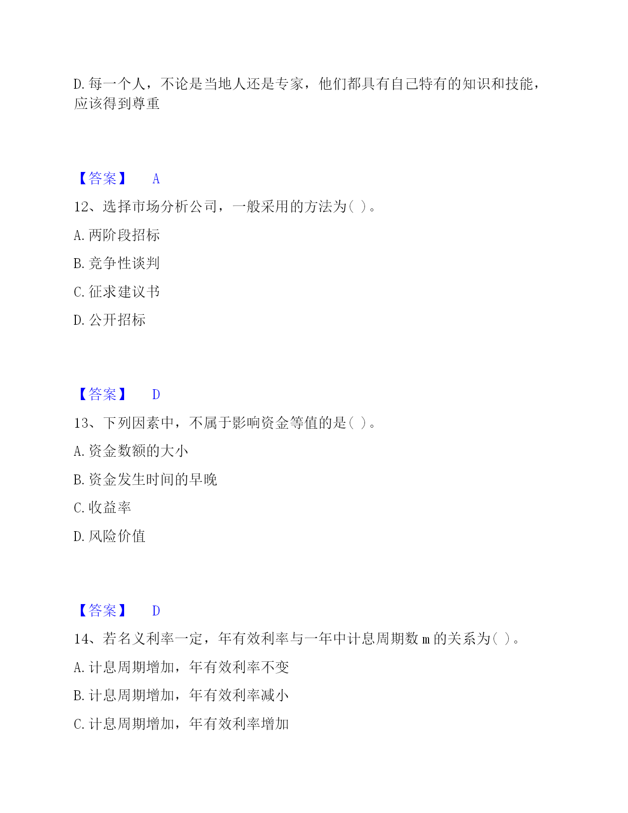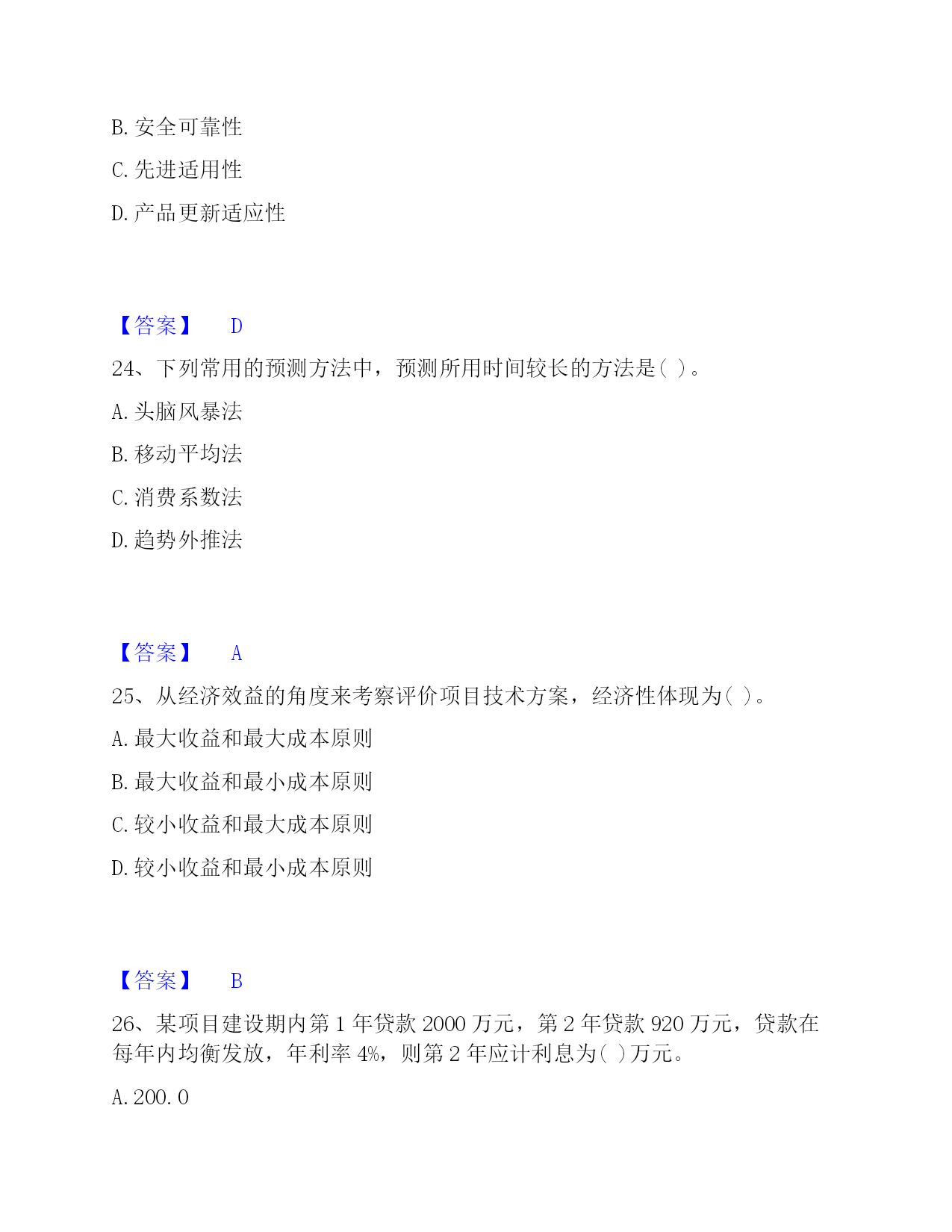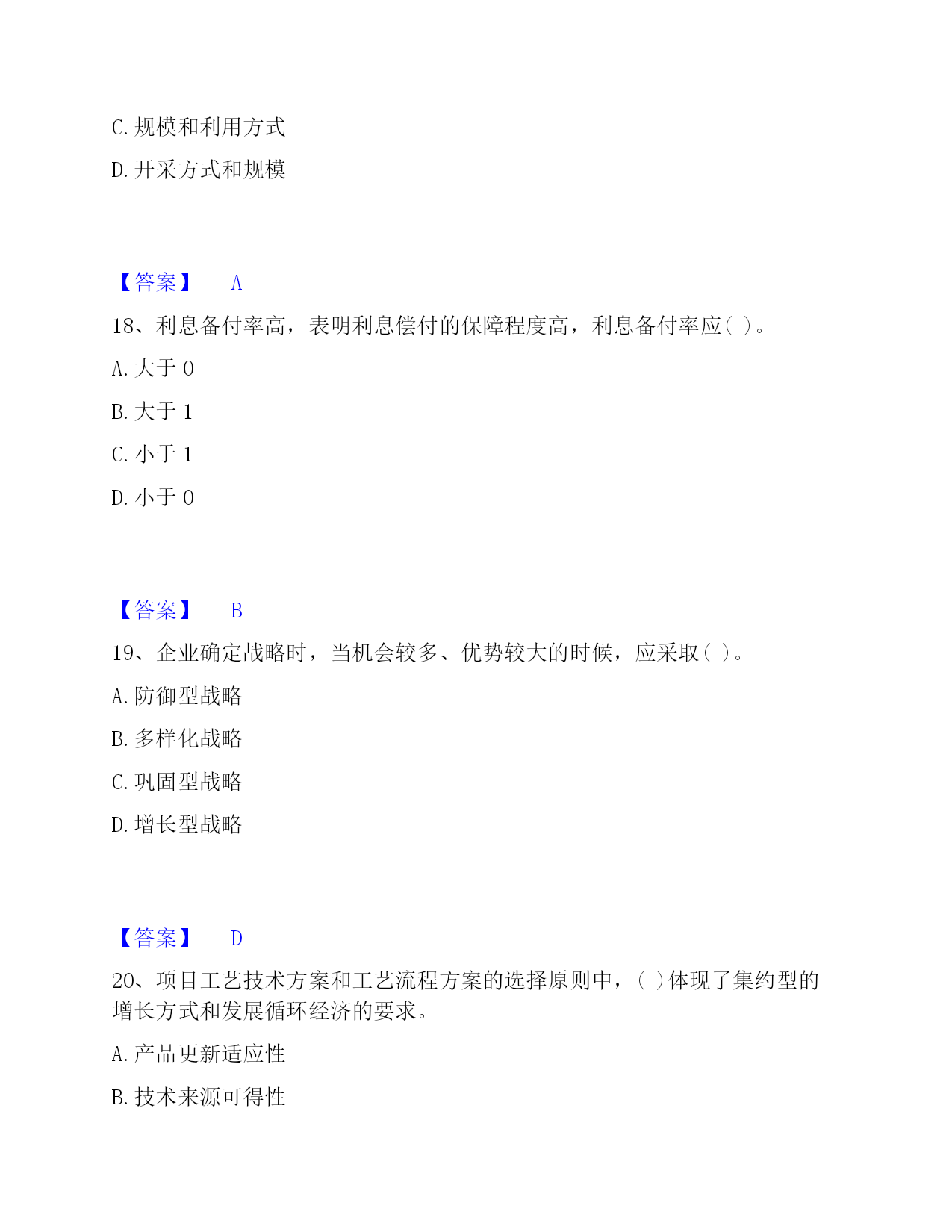 2022-2023年投资项目管理师之投资建设项目决策自我检测试卷B卷附答案单选题(共50题)1、项目投资回收期所需的时间,一般以()为单位。A.季度B.日C.年D.月【答案】C2、对评价项目环境影响的预测,重点是对能代表评价项目的各种环境()的预测。A.评价方案B.保护措施C.资源项目D.质量参数变化【答案】D3、以设备购置费为基础,乘以适当系数来推算项目的建设投资的估算方法是()。A.生产能力指数法B.比例估算法C.指标系数估算法D.朗格系数法【答案】D4、下列风险对策中,()策略适用于已知有风险存在,但可获高利甘愿冒险的项目。A.风险分析B.风险转移C.风险抑制D.风险自担【答案】D5、社会评价的原则中,()是科学发展观的本质和核心,也是社会评价的核心价值观。A.以人为本B.定性定量相结合C.动态适应性D.宏观微观相结合【答案】A6、征用耕地(包括菜地)的补偿标准,为该耕地被征用前3年平均年产值的()倍。A.1~5B.5~10C.6~10D.6~15【答案】C7、产业结构可以各产业()计算,反映各产业在国内生产总值中所占份额大小。A.增加值B.社会纯收入C.净产值D.总现值【答案】A8、产业结构可以各产业()计算,反映各产业在国内生产总值中所占份额大小。A.增加值B.社会纯收入C.净产值D.总现值【答案】A9、在工程分析的3种方法中,()最为简便,但所得数据准确性差。A.类比分析法B.物料平衡计算法C.资料查阅分析法D.可行性研究分析法【答案】C10、某新建项目,建设期为3年,第1年年初借款200万元,第2年年初借款300万元,第3年年初借款300万元,年利率为6%,每年计息一次,建设期内不支付利息。则计算该项目的建设期利息为()万元。A.30.72B.50.56C.65.60D.158.88【答案】C11、下列关于社会评价中应用参与式方法应牢记的基本理念表述不正确的是()。A.尊重内部支持B.外部的支持固然重要,但当地人一般情况下有能力认识和解决自己的问题C.分享知识,共同决策,共同行动,共同发展D.每一个人,不论是当地人还是专家,他们都具有自己特有的知识和技能,应该得到尊重【答案】A12、选择市场分析公司,一般采用的方法为()。A.两阶段招标B.竞争性谈判C.征求建议书D.公开招标【答案】D13、下列因素中,不属于影响资金等值的是()。A.资金数额的大小B.资金发生时间的早晚C.收益率D.风险价值【答案】D14、若名义利率一定,年有效利率与一年中计息周期数m的关系为()。A.计息周期增加,年有效利率不变B.计息周期增加,年有效利率减小C.计息周期增加,年有效利率增加D.计息周期减小,年有效利率增加【答案】C15、下列调查方法中,()的优点是可以留给被调查人员充分的独立思考时间,避免受到调查人员倾向性意见的影响,从而减少误差,提高调查质量。A.文案调查B.通信调查C.留置调查D.电话调查【答案】C16、运用数学模型,拟合一条趋势线,外推未来事物的发展,这种市场预测方法为()。A.指数平滑法B.回归分析法C.移动平均法D.趋势外推法【答案】D17、资源储量和品质的勘探深度应确保资源开发项目设定的()得以实现。A.规模和开采年限B.开采方式和年限C.规模和利用方式D.开采方式和规模【答案】A18、利息备付率高,表明利息偿付的保障程度高,利息备付率应()。A.大于0B.大于1C.小于1D.小于0【答案】B19、企业确定战略时,当机会较多、优势较大的时候,应采取()。A.防御型战略B.多样化战略C.巩固型战略D.增长型战略【答案】D20、项目工艺技术方案和工艺流程方案的选择原则中,()体现了集约型的增长方式和发展循环经济的要求。A.产品更新适应性B.技术来源可得性C.清洁生产环保性D.经济合理性【答案】C21、下列选项中,()是在风险估计的基础上,对风险程度进行划分,以揭示影响项目成败的关键风险因素,以便针对关键风险因素,采取防范对策。A.风险控制B.风险分析C.风险评价D.风险对策【答案】C22、按照目前有关规定,海关监管手续费费率一般为()。A.0.1%B.0.2%C.0.3%D.0.4%【答案】C23、项目工艺技术方案和工艺流程方案的选择原则中,()对某些高新技术项目尤为重要。A.经济合理性B.安全可靠性C.先进适用性D.产品更新适应性【答案】D24、下列常