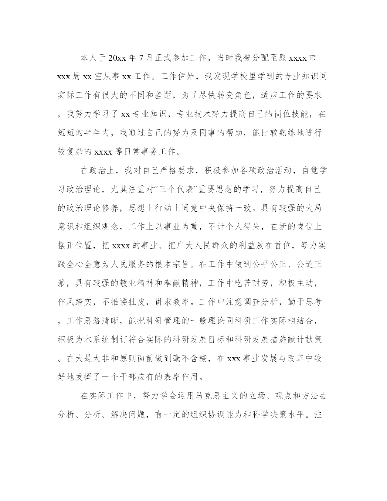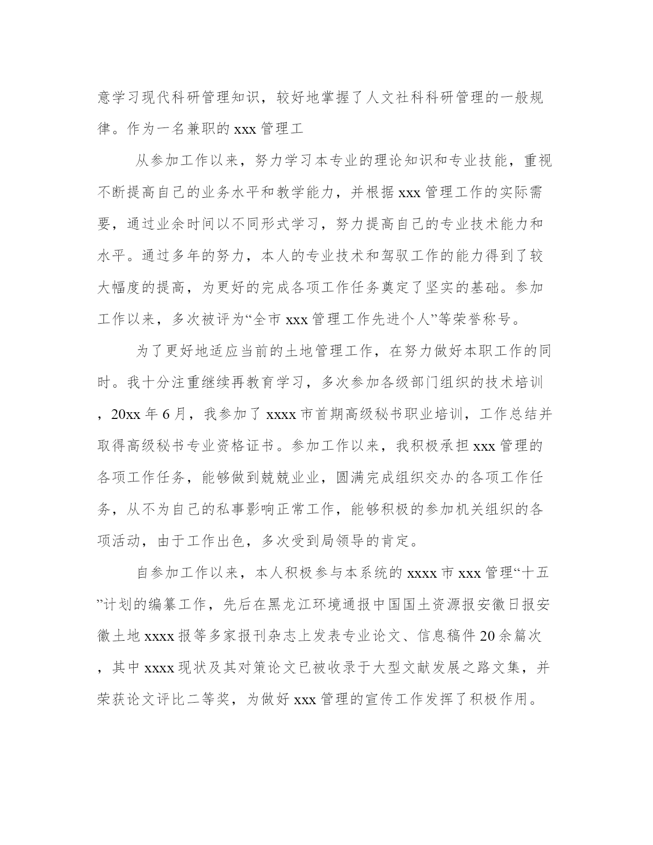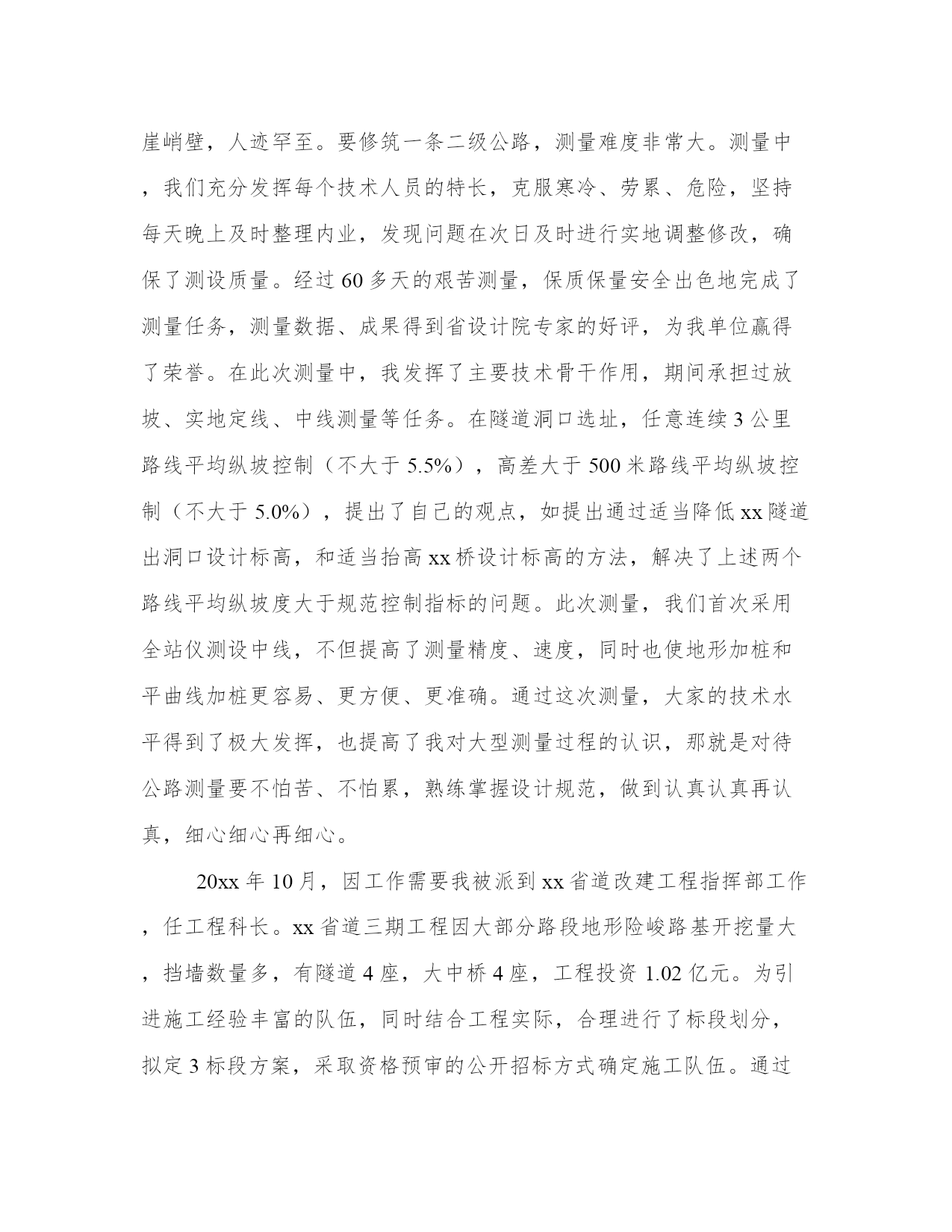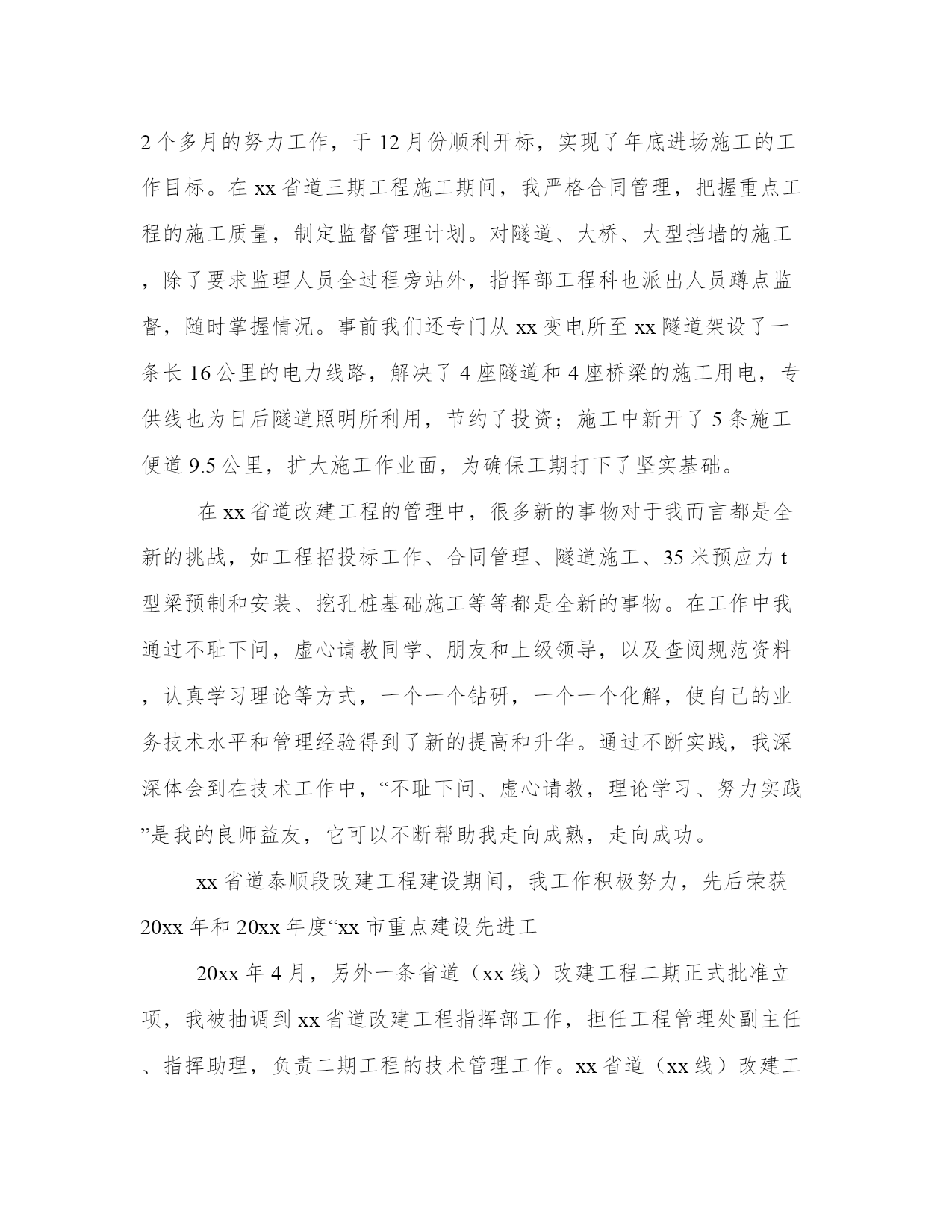 最新职称评审表专业技术工作总结(汇总8篇)当工作或学习进行到一定阶段或告一段落时,需要回过头来对所做的工作认真地分析分析一下,肯定成绩,找出问题,归纳出经验教训,提高认识,明确方向,以便进一步做好工作,并把这些用文字表述出来,就叫做总结。优秀的总结都具备一些什么特点呢?又该怎么写呢?下面是小编为大家带来的总结书优秀范文,希望大家可以喜欢。职称评审表专业技术工作总结篇一20xx年xx月,我顺利完成了学业,从吉林工程技术实验中专毕业,并于同年来到广州市花都区广东永高塑业发展有限公司工作。参加工作以来,我一直从事机械制造工作,20xx年6月,我取得了技术员的资格,并于同月被聘用至今。下面就从专业技术角度,对我这5年来的工作做一次全面总结:本人于20xx年2月正式参加工作,当时我被分配至广东永高塑业发展有限公司工作。工作伊始,我发现学校里学到的专业知识同实际工作有很大的不同和差距,为了尽快转变角色,适应工作的要求,我努力学习机械工程专业知识,努力提高自己的岗位技能,在短短的半年内,我通过自己的努力及同事的帮助,能比较熟练地进行较复杂的机械制造等日常事务工作。在政治上,我对自己严格要求,积极参加各项政治活动,自觉学习政治理论,努力提高自己的政治理论修养,思想上行动上具有较强的大局意识和组织观念,工作上以事业为重,不计个人得失,在新的岗位上摆正位置,把机械设计的事业、把广大人民群众的利益放在首位,努力实践全心全意为人民服务的根本宗旨。在工作中做到公平公正、公道正派,具有较强的敬业精神和奉献精神,工作中吃苦耐劳,积极主动,作风踏实,不推诿扯皮,讲求效率。工作中注意调查分析,勤于思考,工作思路清晰,能把科研管理的一般理论同科研工作实际相结合,积极为本系统制订符合实际的科研发展目标和科研发展措施献计献策。在大是大非和原则面前做到毫不含糊,在机械制造事业发展与改革中较好地发挥了一个干部应有的表率作用。在实际工作中,努力学会运用马克思主义的立场、观点和方法去分析、分析、解决问题,有一定的组织协调能力和科学决策水平。注意学习现代科研管理知识,较好地掌握了人文社科科研管理的一般规律。作为一名专职机械技术工从参加工作以来,努力学习本专业的理论知识和专业技能,重视不断提高自己的业务水平和教学能力,并根据机械设计工作的实际需要,通过业余时间以不同形式学习,努力提高自己的专业技术能力和水平。通过多年的努力,本人的专业技术和驾驭工作的能力得到了较大幅度的提高,为更好的完成各项工作任务奠定了坚实的基础。参加工作以来,多次被评为“我公司技术能手、优秀人才”等荣誉称号。为了更好地适应当前的机械设计工作,在努力做好本职工作的同时。我十分注重继续再教育学习,多次参加各级部门组织的技术培训,xx年9月,我参加了xx教育学院。并取得高等教育专业资格证书。参加工作以来,我积极承担机械设计的各项工作任务,能够做到兢兢业业,圆满完成组织交办的各项工作任务,从不为自己的私事影响正常工作,能够积极的参加公司组织的各项活动,由于工作出色,多次受到领导导的肯定。自参加工作以来,本人积极参与本公司的研发工作,先后在被广东永高塑业发展责任有限公司评为技术能手优秀人才,历年评为优秀员工等荣誉称号。技术管理工作的力作、亮点不多,开拓创新不够,在科研上投入不够,科研管理的决策能力和水平有待提高,重大成果较少等。在今后的工作中,我一定更加努力学习,运用所学知识努力探索研发保护工作的基本规律,不断改进工作方法,提高工作效率,踏踏实实,任劳任怨,勤奋工作,成为一名合格的机械专业技术人员。职称评审表专业技术工作总结篇二20xx年8月,我顺利完成了学业,从合肥工业大学土木工程系城市给水排水专业毕业,并于同年分配到原xxxx市xxxx局工作。参加工作以来,我一直从事xxx与管理工作,20xx年8月,我取得了助理工程师的资格,并于同月被聘用至今。下面就从专业技术角度,对我这8年来的工作做全面总结:本人于20xx年7月正式参加工作,当时我被分配至原xxxx市xxx局xx室从事xx工作。工作伊始,我发现学校里学到的专业知识同实际工作有很大的不同和差距,为了尽快转变角色,适应工作的要求,我努力学习了xx专业知识,专业技术努力提高自己的岗位技能,在短短的半年内,我通过自己的努力及同事的帮助,能比较熟练地进行较复杂的xxxx等日常事务工作。在政治上,我对自己严格要求,积极参加各项政治活动,自觉学习政治理论,尤其注重对“三个代表”重要思想的学习,努力提高自己的政治理论修养,思想上行动上同党中央保持一致。具有较强的大局意识和组织观念,工作上以事业为重,不计个人得失,在新的岗位上摆正位置,把xxxx的事业、把广大人民群众的利益放在首位,努力实践全心全意为人民服务的根本宗旨。在工作中做到公平公正、公道