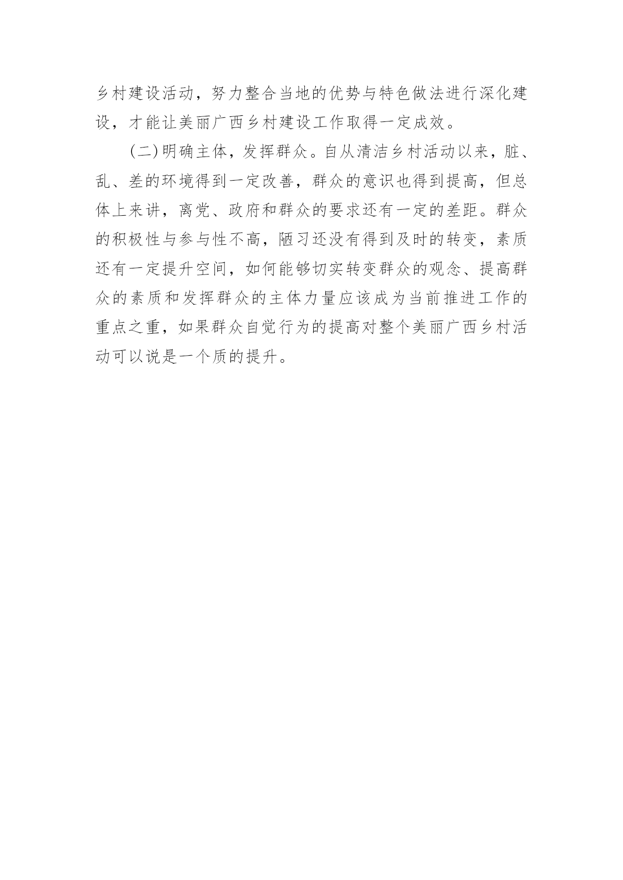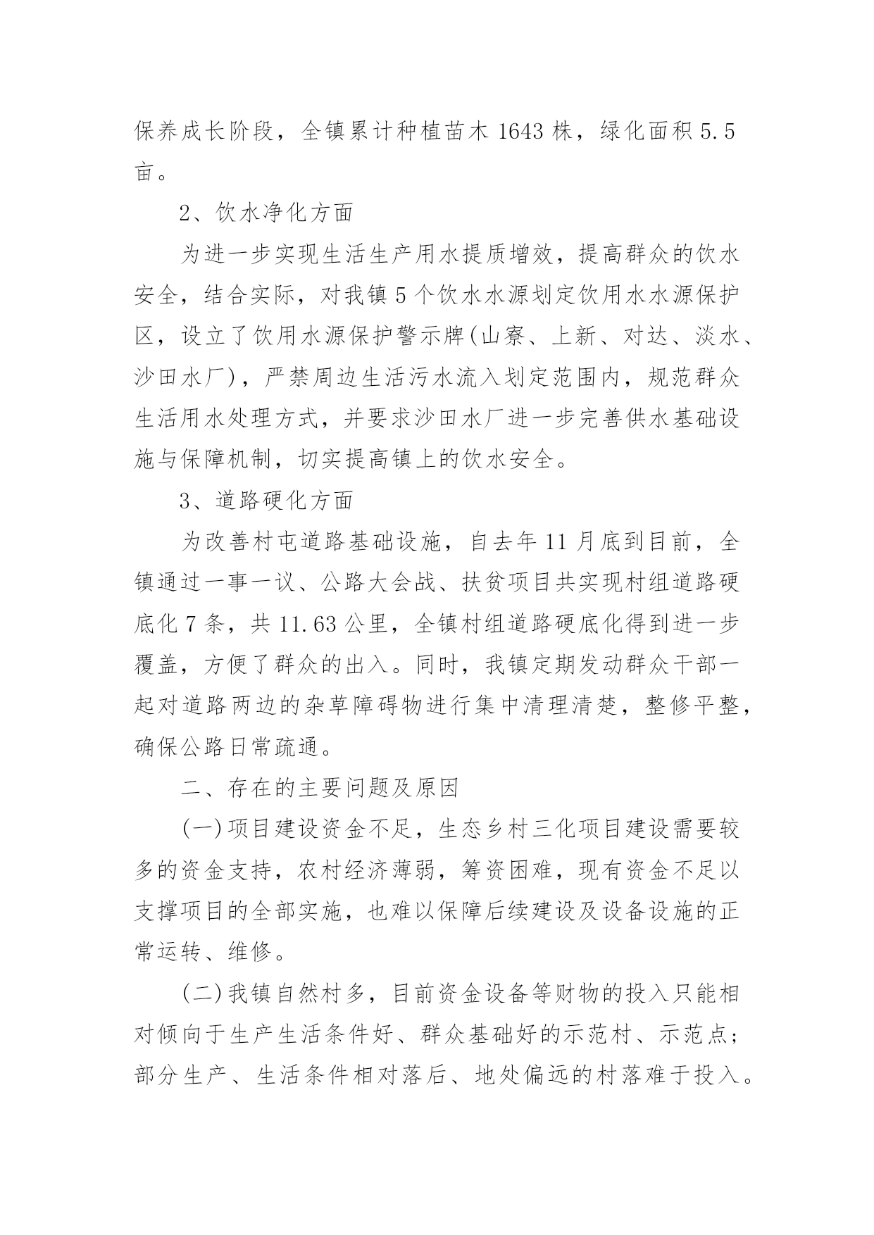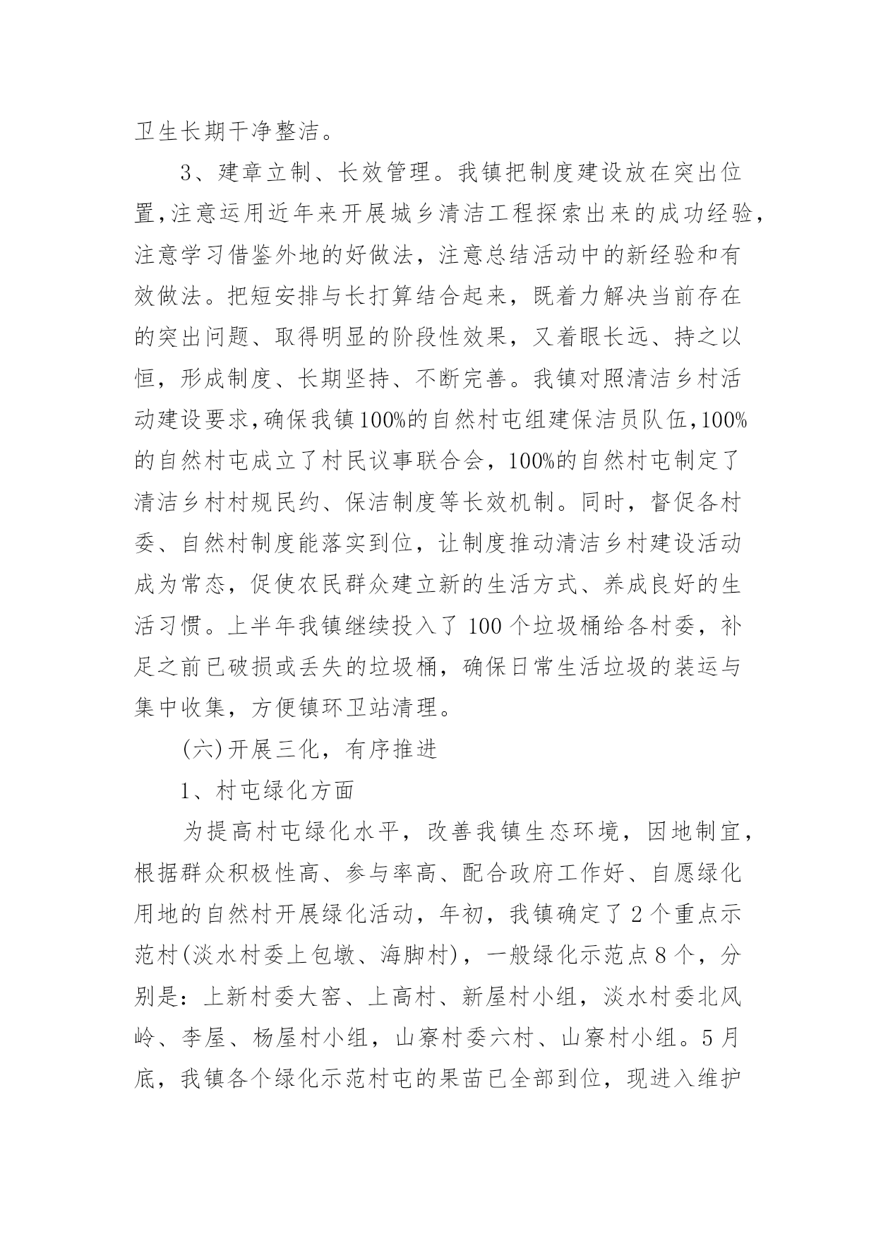 美丽乡村建设工作报告随着个人的素质不断提高,报告与我们的生活紧密相连,我们在写报告的时候要注意逻辑的合理性。相信很多朋友都对写报告感到非常苦恼吧,下面是小编整理的美丽乡村建设工作报告,希望能够帮助到大家。在美丽广西乡村活动不断推向深化过程中,按照上级部门与文件的精神要求,我镇及时对生态乡村建设工作进行了部署,重点打造典型的生态示范点,积极协调有关部门与挂点单位开展乡村建设活动,上半年沙田镇乡村建设工作已取得一定的成效,现将有关工作情况汇报如下:一、上半年工作情况(一)持续宣传,营造氛围自从去年底以来,美丽广西乡村建设活动升级为生态乡村活动,为了持续营造良好的活动氛围,充分调动广大群众的积极性与参与性,我镇开展春节慰问活动的同时,深入各村组开展走村串户宣传生态乡村活动的重要意义、目标任务、工作措施和我镇进展成效以及现存在的问题,切实让生态乡村活动深入人心,家喻户晓,入村入户,为推进沙田镇生态乡村建设奠定良好的基础。节前,我镇把美丽广西.清洁乡村图片粘贴摆在沙田政府门口外的宣传栏,利用春节期间镇篮球赛活动的有利契机,组织工作人员引导前来镇政府看球赛的群众观看,使广大干部群众对这活动过程有更加清晰、直观的印象。一幅幅美丽的清洁家园、清洁水源、清洁田园活动图片展示了山更青水更绿一派繁荣发展的大好景象,很多群众在看到图片展后,看到美丽整洁的环境、对比鲜明的村容村貌,纷纷感叹美丽广西乡村建设活动使我们的家乡已变得如此美丽,纷纷表示,日后会更加积极主动参与清洁乡村建设,争取把家乡建设得更美丽、更和谐。截止目前为止,观展人数约达700人次。结合春风行动农民工招聘活动、村级文化广场文艺演出、各村组开展的迎新春、文体活动,我镇组织工作人员到沙田大街、港湾市场、对达村委农贸市场、上新村委大窑市场等人流密集的地区发放《给全县农民工朋友的新年致词》,并采取拉横额,张贴标语、文艺演出、有奖问答等多种形式开展生态乡村建设宣传,以激发广大农民工和干部群众在新春佳节期间积极参与乡村建设的热情。目前已发放了《给全县农民工朋友的新年致词》850份,横额5条,张贴标语20张,文艺演出1场。(二)实地参观,组织交流去年12月份底,我镇组织了各村支书主任、驻村工作组长及镇全体党政领导干部共60多人到我镇美丽乡村活动中的示范村淡水村委上包墩、海脚村小组实地参观,与淡水村干部沟通交流,学习他们推进示范点工作的经验,为推进生态乡村建设活动打下了坚实基础。同时,为了提高镇村全体干部工作能力,4月初,我镇组织镇村全体干部到曲樟乡进行取经,到他们乡的示范点高坡村进行实地参观,镇主要领导希望镇村干部多多与高坡村干部学习经验和方法,结合辖区实际,逐步改善本村的环境卫生,把我镇美丽广西乡村建设活动推上新台阶。(三)集中整治,保持整洁为了让沙田群众过上一个干净整洁、欢乐和谐的五一假期,按照县委、县政府的要求,我镇广泛组织开展环境卫生大整治,消除卫生死角,力求为全镇群众和外来游客营造一个舒适整洁的环境。节前镇党委政府通知各村各单位搞好责任区清洁,务必做到干净、彻底,务必做到保持整洁。在镇党委政府的指导下,单位集中开展了卫生整治行动,特别对沿街、沿路、市场等重点区域的环境卫生整治力度。在此次环境综合整治行动中,全镇出动机关事业单位干部和村干部120多人,累计清理垃圾5车20余吨。(四)加强组织,强化责任为确保把乡村建设活动落实到位,打造美丽沙田,给广大群众营造一个舒适、宜居、和谐的生活环境。我镇乡村办完善了相关的工作制度,不定期派出督查组对各个村委、责任区单位进行暗访督查。截止目前为止,发放整改通知书15份,针对死角盲区整改不落实到位的单位负责人谈话3人,并在全镇实行实名通报。凡是年内被镇上通报3次以上,市县通报1次以上并整改不到位的,年终纳入绩效考评,取消优秀资格考评,实行严格问责制度。通过镇乡村办的暗访督查,我镇乡村建设活动工作水平整体得到了进一步地提高。4月中旬,根据上级部门的文件要求,为确保我镇美丽乡村建设活动规范、持久、深入开展,进一步强化责任担当,着力解决在活动中认识不深、为官不为、问责不严的问题,全面构建横到边、纵到底的责任体系。我镇对生态乡村工作进行全面动员部署,制定相关工作方案,印发《沙田镇开展美丽北海乡村建设责任单位、责任人一览表》,重新科学合理划,分确定了本镇各自然村乡村建设活动的相关责任单位及责任人;同时将市、县挂钩联系单位及负责人、工作队员列入本表,以便于联系,明确责任,确保各部门各单位主动配合,按照职责分工合作开展活动。(五)日常清洁,确保洁净1、村收镇运、服务外包。我镇将近50%自然村通过召开本村户主大会,均实行以村为单位,由各村按村民自治的方式收取各家各户垃圾服务费,议事联合会与镇环卫站签订服务合同,将本村的垃圾清运进行服务外包,根据各村实际情况实行一天一清