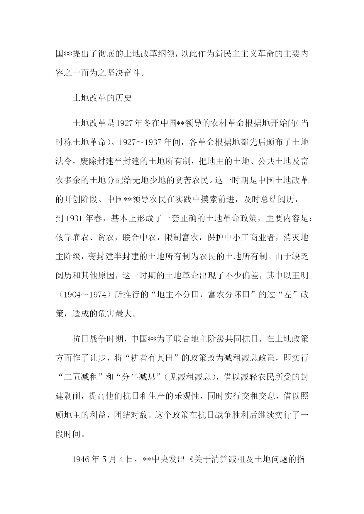 《三黑和土地》相关链接土地改革土地改革,亦称土地制度的改革或土地革命。是中国新民主主义革命时期,中国**领导广大农民废除封建半封建性的土地所有制,实行农民的土地所有制的革命运动。中国新民主主义革命时期,中国**领导广大农民废除封建半封建性的土地所有制,实行农民的土地所有制的革命运动。亦称土地制度的改革或土地革命。改革土地制度的必要性土地改革以前,中国的土地制度极不合理。一般情况是:占农村人口不到10%的地主、富农,占有70~80%的土地,占农村人口90%以上的雇农、贫农、中农及其他人民,总共只占有20~3