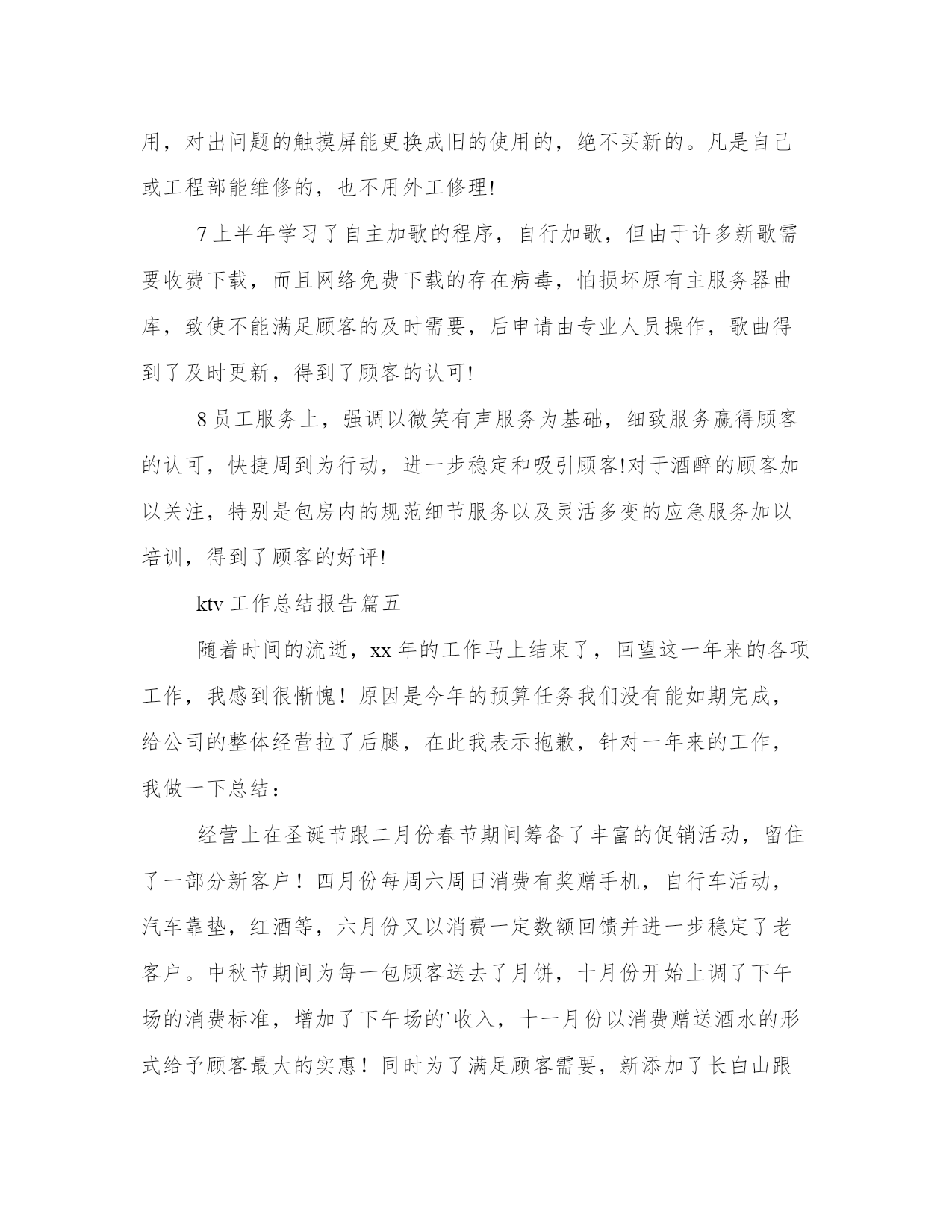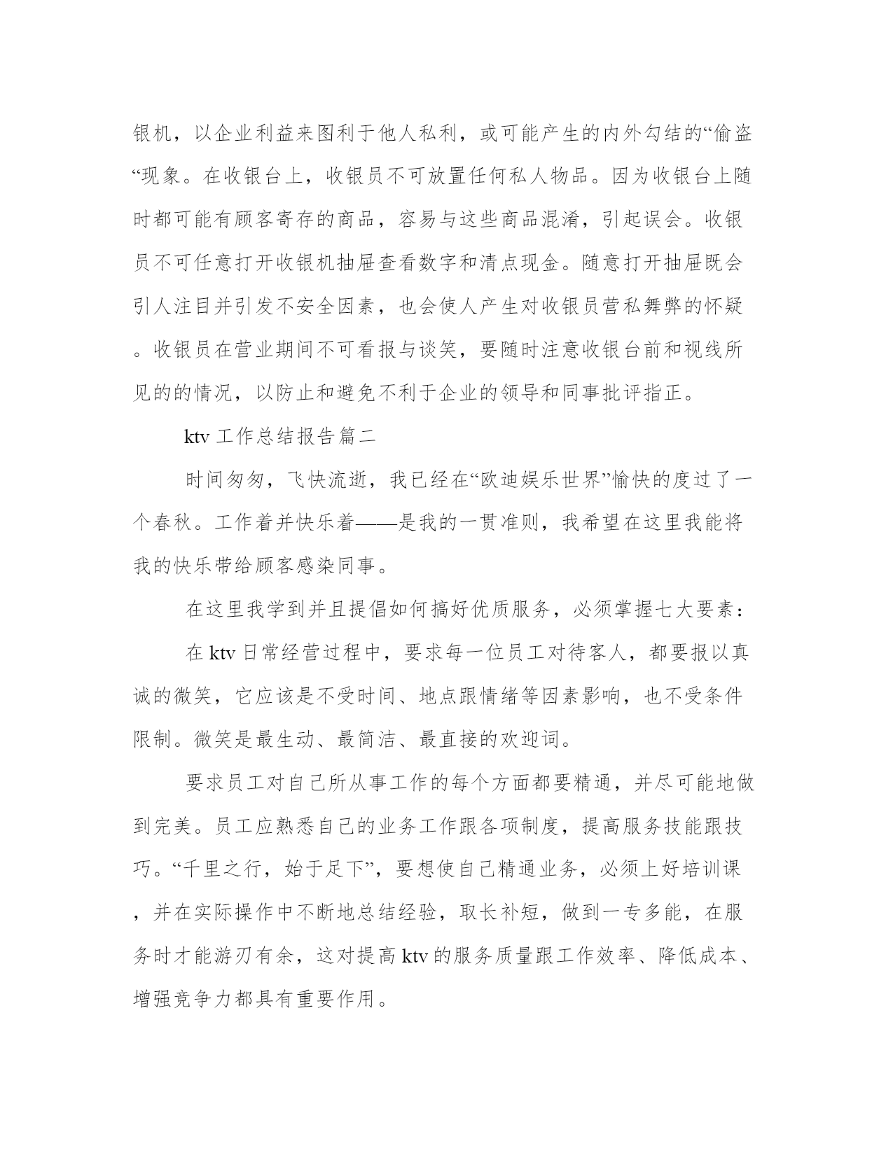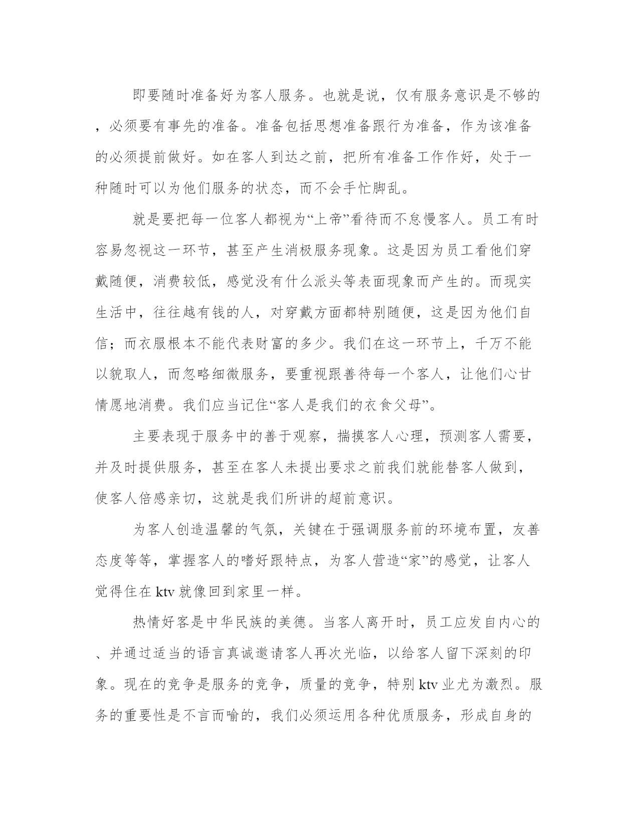 最新ktv工作总结报告ktv工作总结(模板10篇)“报告”使用范围很广,按照上级部署或工作计划,每完成一项任务,一般都要向上级写报告,反映工作中的基本情况、工作中取得的经验教训、存在的问题以及今后工作设想等,以取得上级领导部门的指导。报告书写有哪些要求呢?我们怎样才能写好一篇报告呢?下面是小编帮大家整理的最新报告范文,仅供参考,希望能够帮助到大家。ktv工作总结报告篇一我从事本公司收银工作的时间不是太长,自身的素质和业务水平离工作的实际要求还有一定的差距,但我能够克服困难,努力学习,端正工作态度,积极的向其他同志请教和学习,能踏实、认真地做好本职工作,为公司的发展作出了自己应有的贡献。现针对自己在工作中遇到的问题谈谈自己的心得和体会,也算是对自己工作的`一个总结吧。(一)作为与现金直接打交道的收银员,我认为必须遵守公司的作业纪律。收银员在营业时身上不可带有现金,以免引起不必要的误解和可能产生的公款私挪的现象。收银员在进行收银作业时,不可擅离收银台,以免造成钱币损失,或引起等候结算的顾客的不满与抱怨。收银员不可为自己的亲朋好友结算收款,以免引起不必要的误会和可能产生的收银员利用收银职务的方便,以低于原价的收款登录至收银机,以企业利益来图利于他人私利,或可能产生的内外勾结的“偷盗“现象。在收银台上,收银员不可放置任何私人物品。因为收银台上随时都可能有顾客寄存的商品,容易与这些商品混淆,引起误会。收银员不可任意打开收银机抽屉查看数字和清点现金。随意打开抽屉既会引人注目并引发不安全因素,也会使人产生对收银员营私舞弊的怀疑。收银员在营业期间不可看报与谈笑,要随时注意收银台前和视线所见的的情况,以防止和避免不利于企业的领导和同事批评指正。ktv工作总结报告篇二时间匆匆,飞快流逝,我已经在“欧迪娱乐世界”愉快的度过了一个春秋。工作着并快乐着——是我的一贯准则,我希望在这里我能将我的快乐带给顾客感染同事。在这里我学到并且提倡如何搞好优质服务,必须掌握七大要素:在ktv日常经营过程中,要求每一位员工对待客人,都要报以真诚的微笑,它应该是不受时间、地点跟情绪等因素影响,也不受条件限制。微笑是最生动、最简洁、最直接的欢迎词。要求员工对自己所从事工作的每个方面都要精通,并尽可能地做到完美。员工应熟悉自己的业务工作跟各项制度,提高服务技能跟技巧。“千里之行,始于足下”,要想使自己精通业务,必须上好培训课,并在实际操作中不断地总结经验,取长补短,做到一专多能,在服务时才能游刃有余,这对提高ktv的服务质量跟工作效率、降低成本、增强竞争力都具有重要作用。即要随时准备好为客人服务。也就是说,仅有服务意识是不够的,必须要有事先的准备。准备包括思想准备跟行为准备,作为该准备的必须提前做好。如在客人到达之前,把所有准备工作作好,处于一种随时可以为他们服务的状态,而不会手忙脚乱。就是要把每一位客人都视为“上帝”看待而不怠慢客人。员工有时容易忽视这一环节,甚至产生消极服务现象。这是因为员工看他们穿戴随便,消费较低,感觉没有什么派头等表面现象而产生的。而现实生活中,往往越有钱的人,对穿戴方面都特别随便,这是因为他们自信;而衣服根本不能代表财富的多少。我们在这一环节上,千万不能以貌取人,而忽略细微服务,要重视跟善待每一个客人,让他们心甘情愿地消费。我们应当记住“客人是我们的衣食父母”。主要表现于服务中的善于观察,揣摸客人心理,预测客人需要,并及时提供服务,甚至在客人未提出要求之前我们就能替客人做到,使客人倍感亲切,这就是我们所讲的超前意识。为客人创造温馨的气氛,关键在于强调服务前的环境布置,友善态度等等,掌握客人的嗜好跟特点,为客人营造“家”的感觉,让客人觉得住在ktv就像回到家里一样。热情好客是中华民族的美德。当客人离开时,员工应发自内心的、并通过适当的语言真诚邀请客人再次光临,以给客人留下深刻的印象。现在的竞争是服务的竞争,质量的竞争,特别ktv业尤为激烈。服务的重要性是不言而喻的,我们必须运用各种优质服务,形成自身的服务优势,以期其在激烈的市场竞争中创造更高的客人满意度,使ktv立于不败之地!每个职业都需要讲求团队精神,在快乐迪也一样。生意比较忙时,同事间都能互相谅解并齐心分担遇到的麻烦。平时也有遇到比较刁钻的顾客,一人有难,其他同事也会及时上去调节纷争,使情形不再恶劣。每个人员分工明确、工作积极,真正在行动上做到了一个好汉三个帮的效果。平时,我也会跟顾客谈天,了解他们所喜欢的歌曲并推荐新曲让顾客满意而归。这样就多了几个回头客,让顾客推荐朋友提高了消费率。之后我也会做一些小结,这样日积月累,使我的服务更能为顾客所接受跟喜欢。作为一名服务人员,也会碰到一些挫折跟无奈。有些人会觉得小小的一名后勤人员是微不足道的,有些人认为我这个职业是