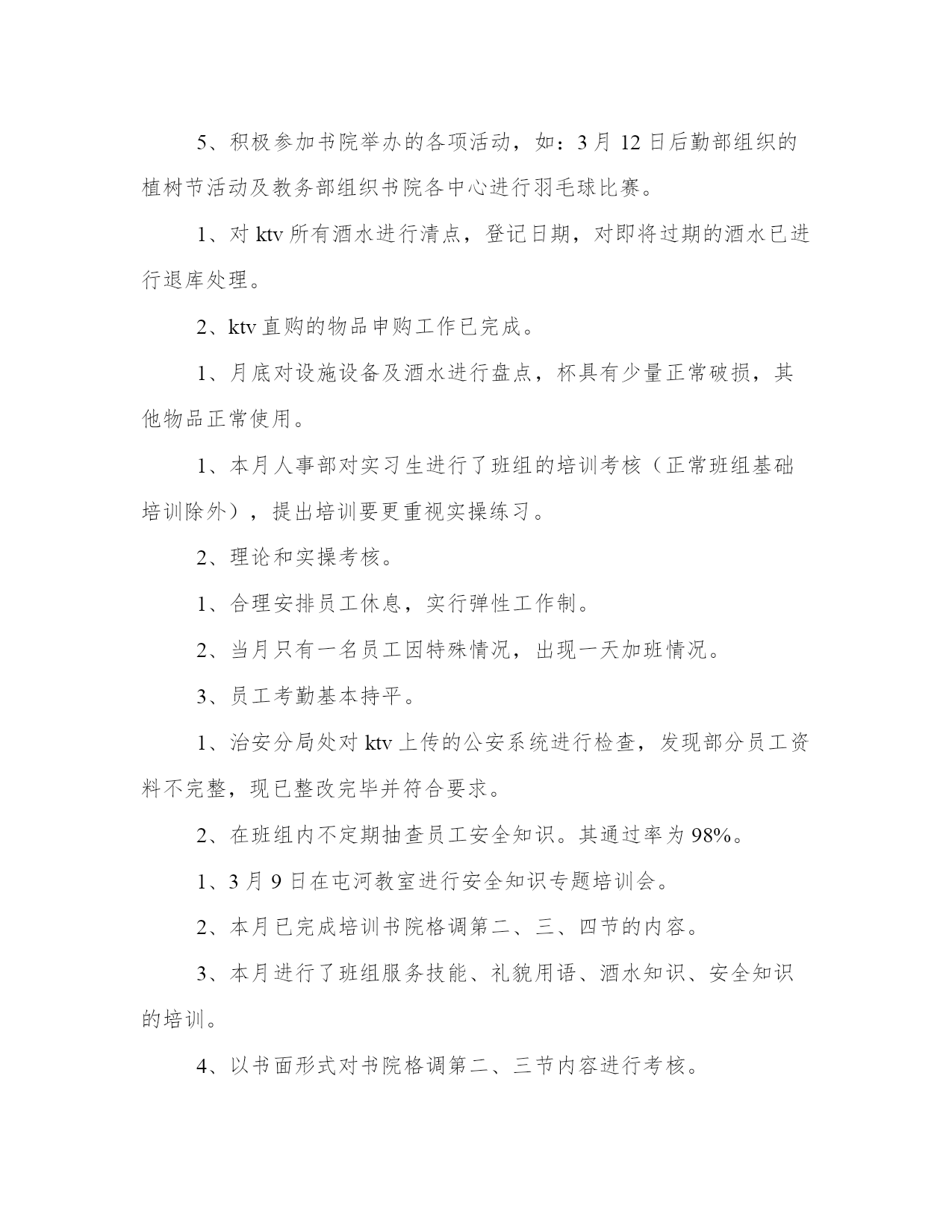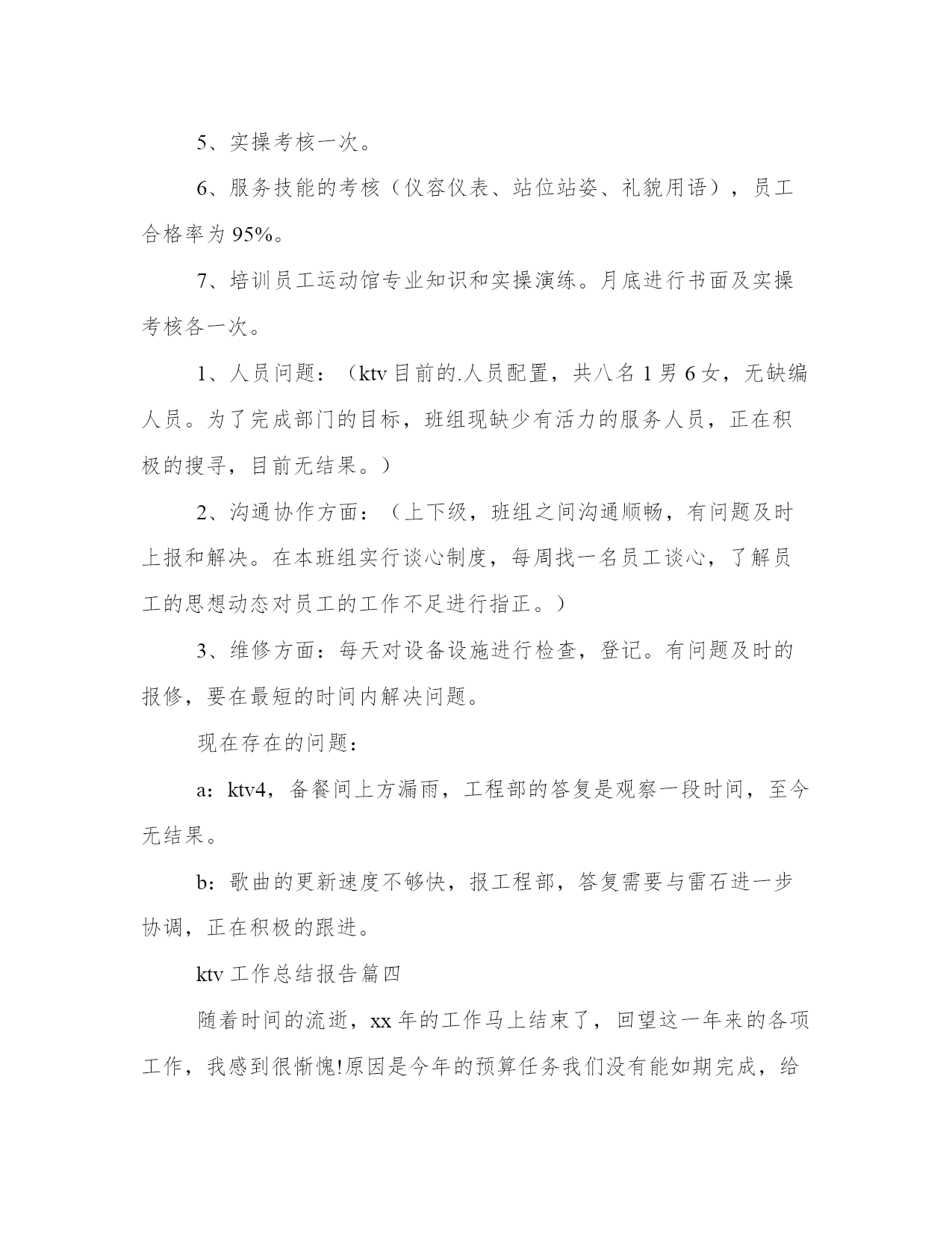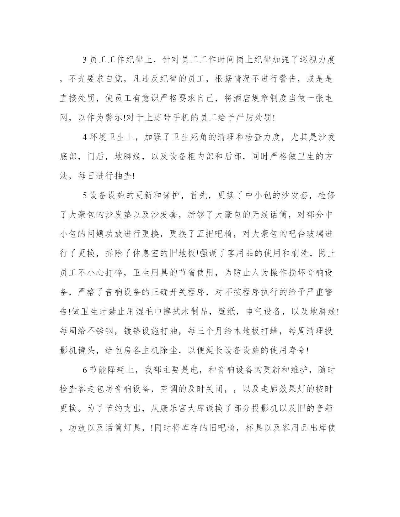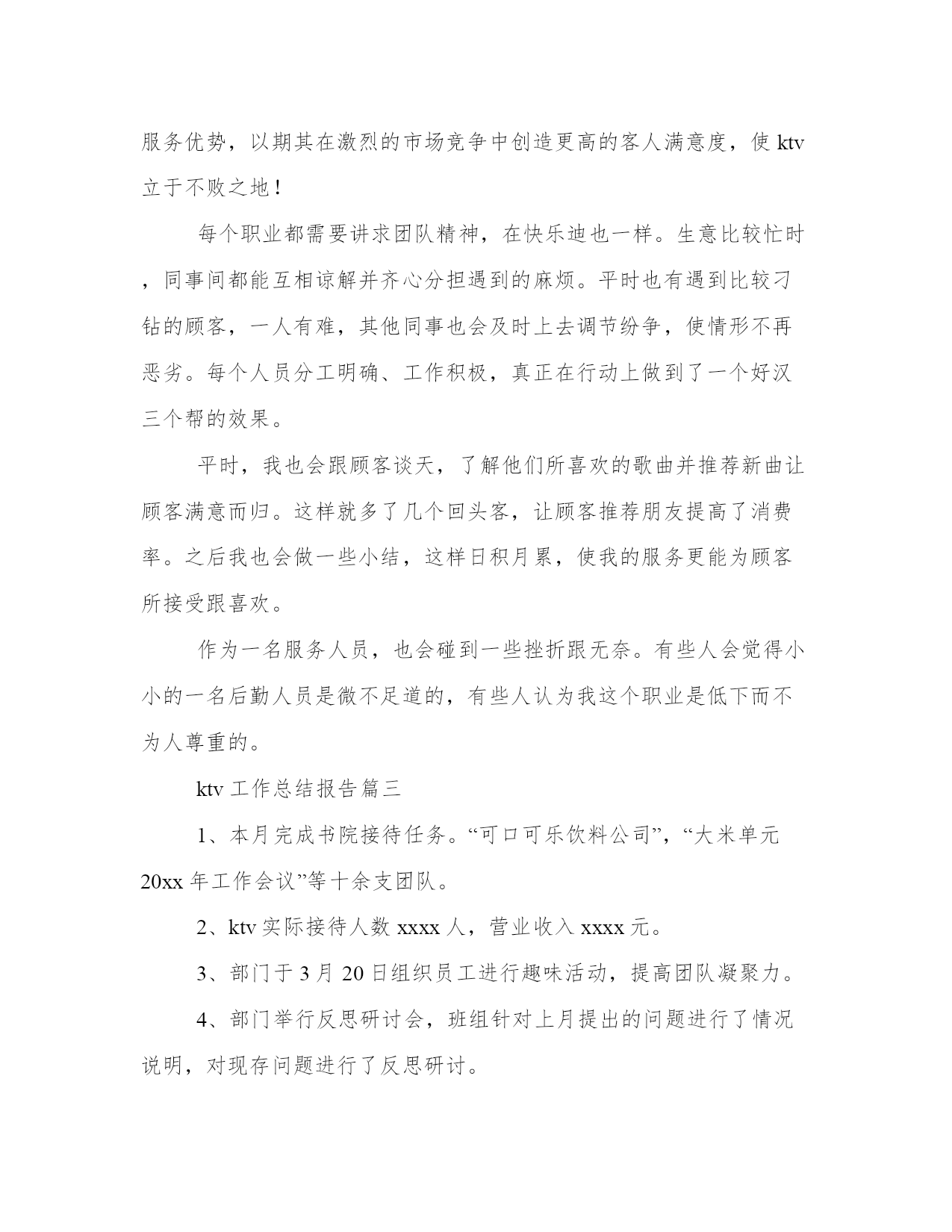 最新ktv工作总结报告ktv工作总结(模板10篇)“报告”使用范围很广,按照上级部署或工作计划,每完成一项任务,一般都要向上级写报告,反映工作中的基本情况、工作中取得的经验教训、存在的问题以及今后工作设想等,以取得上级领导部门的指导。报告书写有哪些要求呢?我们怎样才能写好一篇报告呢?下面是小编帮大家整理的最新报告范文,仅供参考,希望能够帮助到大家。ktv工作总结报告篇一我从事本公司收银工作的时间不是太长,自身的素质和业务水平离工作的实际要求还有一定的差距,但我能够克服困难,努力学习,端正工作态度,积极的向其他同志请教和学习,能踏实、认真地做好本职工作,为公司的发展作出了自己应有的贡献。现针对自己在工作中遇到的问题谈谈自己的心得和体会,也算是对自己工作的`一个总结吧。(一)作为与现金直接打交道的收银员,我认为必须遵守公司的作业纪律。收银员在营业时身上不可带有现金,以免引起不必要的误解和可能产生的公款私挪的现象。收银员在进行收银作业时,不可擅离收银台,以免造成钱币损失,或引起等候结算的顾客的不满与抱怨。收银员不可为自己的亲朋好友结算收款,以免引起不必要的误会和可能产生的收银员利用收银职务的方便,以低于原价的收款登录至收银机,以企业利益来图利于他人私利,或可能产生的内外勾结的“偷盗“现象。在收银台上,收银员不可放置任何私人物品。因为收银台上随时都可能有顾客寄存的商品,容易与这些商品混淆,引起误会。收银员不可任意打开收银机抽屉查看数字和清点现金。随意打开抽屉既会引人注目并引发不安全因素,也会使人产生对收银员营私舞弊的怀疑。收银员在营业期间不可看报与谈笑,要随时注意收银台前和视线所见的的情况,以防止和避免不利于企业的领导和同事批评指正。ktv工作总结报告篇二时间匆匆,飞快流逝,我已经在“欧迪娱乐世界”愉快的度过了一个春秋。工作着并快乐着——是我的一贯准则,我希望在这里我能将我的快乐带给顾客感染同事。在这里我学到并且提倡如何搞好优质服务,必须掌握七大要素:在ktv日常经营过程中,要求每一位员工对待客人,都要报以真诚的微笑,它应该是不受时间、地点跟情绪等因素影响,也不受条件限制。微笑是最生动、最简洁、最直接的欢迎词。要求员工对自己所从事工作的每个方面都要精通,并尽可能地做到完美。员工应熟悉自己的业务工作跟各项制度,提高服务技能跟技巧。“千里之行,始于足下”,要想使自己精通业务,必须上好培训课,并在实际操作中不断地总结经验,取长补短,做到一专多能,在服务时才能游刃有余,这对提高ktv的服务质量跟工作效率、降低成本、增强竞争力都具有重要作用。即要随时准备好为客人服务。也就是说,仅有服务意识是不够的,必须要有事先的准备。准备包括思想准备跟行为准备,作为该准备的必须提前做好。如在客人到达之前,把所有准备工作作好,处于一种随时可以为他们服务的状态,而不会手忙脚乱。就是要把每一位客人都视为“上帝”看待而不怠慢客人。员工有时容易忽视这一环节,甚至产生消极服务现象。这是因为员工看他们穿戴随便,消费较低,感觉没有什么派头等表面现象而产生的。而现实生活中,往往越有钱的人,对穿戴方面都特别随便,这是因为他们自信;而衣服根本不能代表财富的多少。我们在这一环节上,千万不能以貌取人,而忽略细微服务,要重视跟善待每一个客人,让他们心甘情愿地消费。我们应当记住“客人是我们的衣食父母”。主要表现于服务中的善于观察,揣摸客人心理,预测客人需要,并及时提供服务,甚至在客人未提出要求之前我们就能替客人做到,使客人倍感亲切,这就是我们所讲的超前意识。为客人创造温馨的气氛,关键在于强调服务前的环境布置,友善态度等等,掌握客人的嗜好跟特点,为客人营造“家”的感觉,让客人觉得住在ktv就像回到家里一样。热情好客是中华民族的美德。当客人离开时,员工应发自内心的、并通过适当的语言真诚邀请客人再次光临,以给客人留下深刻的印象。现在的竞争是服务的竞争,质量的竞争,特别ktv业尤为激烈。服务的重要性是不言而喻的,我们必须运用各种优质服务,形成自身的服务优势,以期其在激烈的市场竞争中创造更高的客人满意度,使ktv立于不败之地!每个职业都需要讲求团队精神,在快乐迪也一样。生意比较忙时,同事间都能互相谅解并齐心分担遇到的麻烦。平时也有遇到比较刁钻的顾客,一人有难,其他同事也会及时上去调节纷争,使情形不再恶劣。每个人员分工明确、工作积极,真正在行动上做到了一个好汉三个帮的效果。平时,我也会跟顾客谈天,了解他们所喜欢的歌曲并推荐新曲让顾客满意而归。这样就多了几个回头客,让顾客推荐朋友提高了消费率。之后我也会做一些小结,这样日积月累,使我的服务更能为顾客所接受跟喜欢。作为一名服务人员,也会碰到一些挫折跟无奈。有些人会觉得小小的一名后勤人员是微不足道的,有些人认为我这个职业是