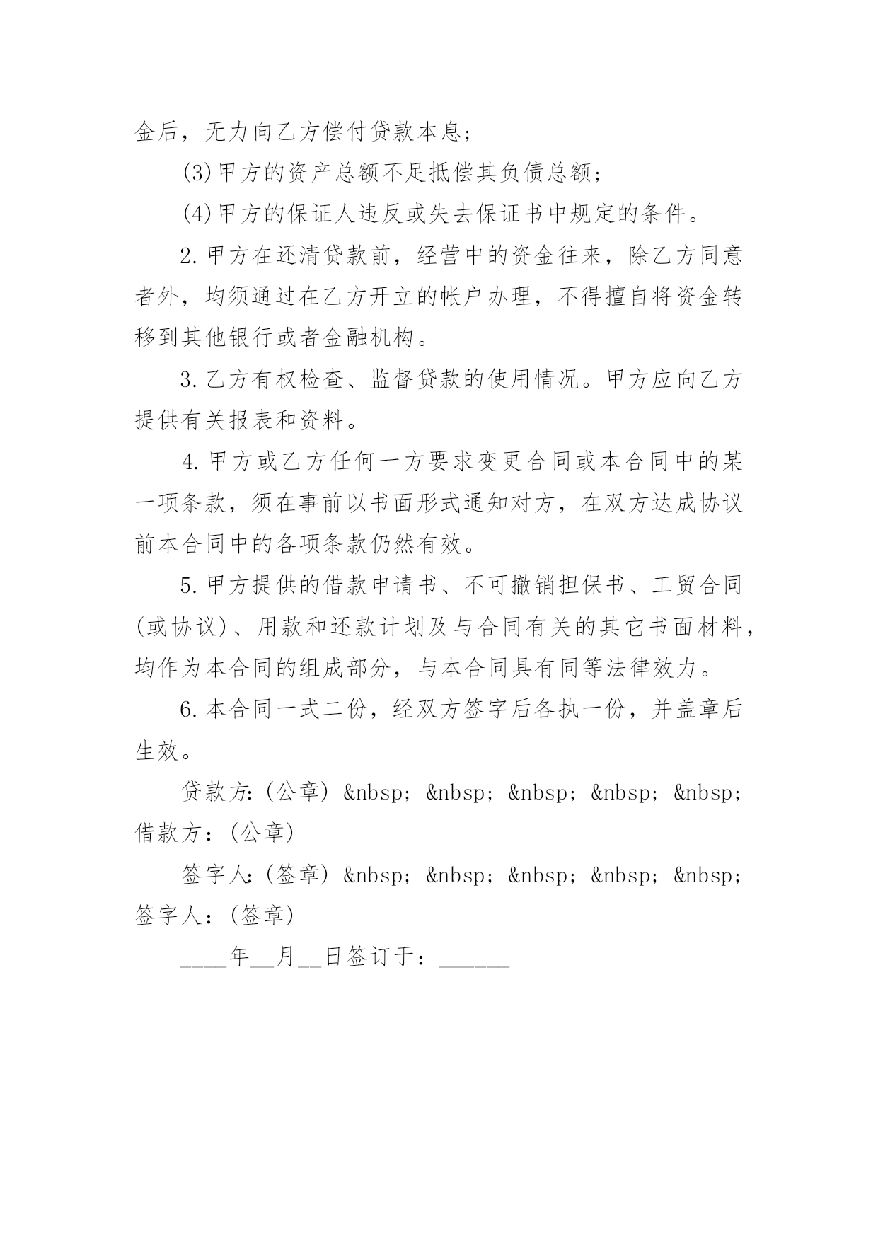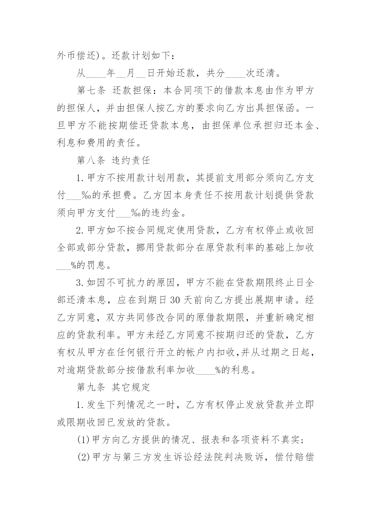 建设银行外汇借款合同参考建设银行外汇借款合同模板参考借款方:___(简称甲方)贷款方:中国人民建设银行(简称乙方)根据_____号文件批准的项目,所需资金经甲方申请,乙方审查同意发放外汇贷款。双方同意遵照《中华人民共和国合同法》和国务院颁发的《借款合同条例》的规定签订本合同,并共同遵守。第一条借款金额:外汇贷款____万美元。第二条借款用途:外汇贷款用于_____第三条借款期限:____年__月__日至____年__月__日。外汇贷款自第一笔用汇之日起,在___个月之内分期还清全部贷款本息。第四条借款利率:外汇贷款年利率为___%,按个月浮动。乙方每3个月计收一次利息,计息日为每季最后一个月的20日,第一次提款日到第一次计息日不足一浮动期限的也要浮动利率,此后利率浮动日即为某一计息日。如甲方不能按期付息,则转入贷款本金计收复利。第五条借款支用:甲方根据用款计划支用贷款,对到期未支用部分,乙方直接将贷款从甲方的贷款户转到存款户。第六条借款偿还:甲方保证在本合同规定的借款期限内按还款计划以所借同种外币偿还借款本息(若以其它可自由兑换的`外币偿还,按还款日的外汇买卖牌价折算成所借外币偿还)。还款计划如下:从____年__月__日开始还款,共分____次还清。第七条还款担保:本合同项下的借款本息由作为甲方的担保人,并由担保人按乙方的要求向乙方出具担保函。一旦甲方不能按期偿还贷款本息,由担保单位承担归还本金、利息和费用的责任。第八条违约责任1.甲方不按用款计划用款,其提前支用部分须向乙方支付___‰的承担费。乙方因本身责任不按用款计划提供贷款须向甲方支付___‰的违约金。2.甲方如不按合同规定使用贷款,乙方有权停止或收回全部或部分贷款,挪用贷款部分在原贷款利率的基础上加收___%的罚息。3.如因不可抗力的原因,甲方不能在贷款期限终止日全部还清本息,应在到期日30天前向乙方提出展期申请。经乙方同意,双方共同修改合同的原借款期限,并重新确定相应的贷款利率。甲方未经乙方同意不按期归还的贷款,乙方有权从甲方在任何银行开立的帐户内扣收,并从过期之日起,对逾期贷款部分按借款利率加收____%的利息。第九条其它规定1.发生下列情况之一时,乙方有权停止发放贷款并立即或限期收回已发放的贷款。(1)甲方向乙方提供的情况、报表和各项资料不真实;(2)甲方与第三方发生诉讼经法院判决败诉,偿付赔偿金后,无力向乙方偿付贷款本息;(3)甲方的资产总额不足抵偿其负债总额;(4)甲方的保证人违反或失去保证书中规定的条件。2.甲方在还清贷款前,经营中的资金往来,除乙方同意者外,均须通过在乙方开立的帐户办理,不得擅自将资金转移到其他银行或者金融机构。3.乙方有权检查、监督贷款的使用情况。甲方应向乙方提供有关报表和资料。4.甲方或乙方任何一方要求变更合同或本合同中的某一项条款,须在事前以书面形式通知对方,在双方达成协议前本合同中的各项条款仍然有效。5.甲方提供的借款申请书、不可撤销担保书、工贸合同(或协议)、用款和还款计划及与合同有关的其它书面材料,均作为本合同的组成部分,与本合同具有同等法律效力。6.本合同一式二份,经双方签字后各执一份,并盖章后生效。贷款方:(公章) 借款方:(公章)签字人:(签章) 签字人:(签章)____年__月__日签订于:______