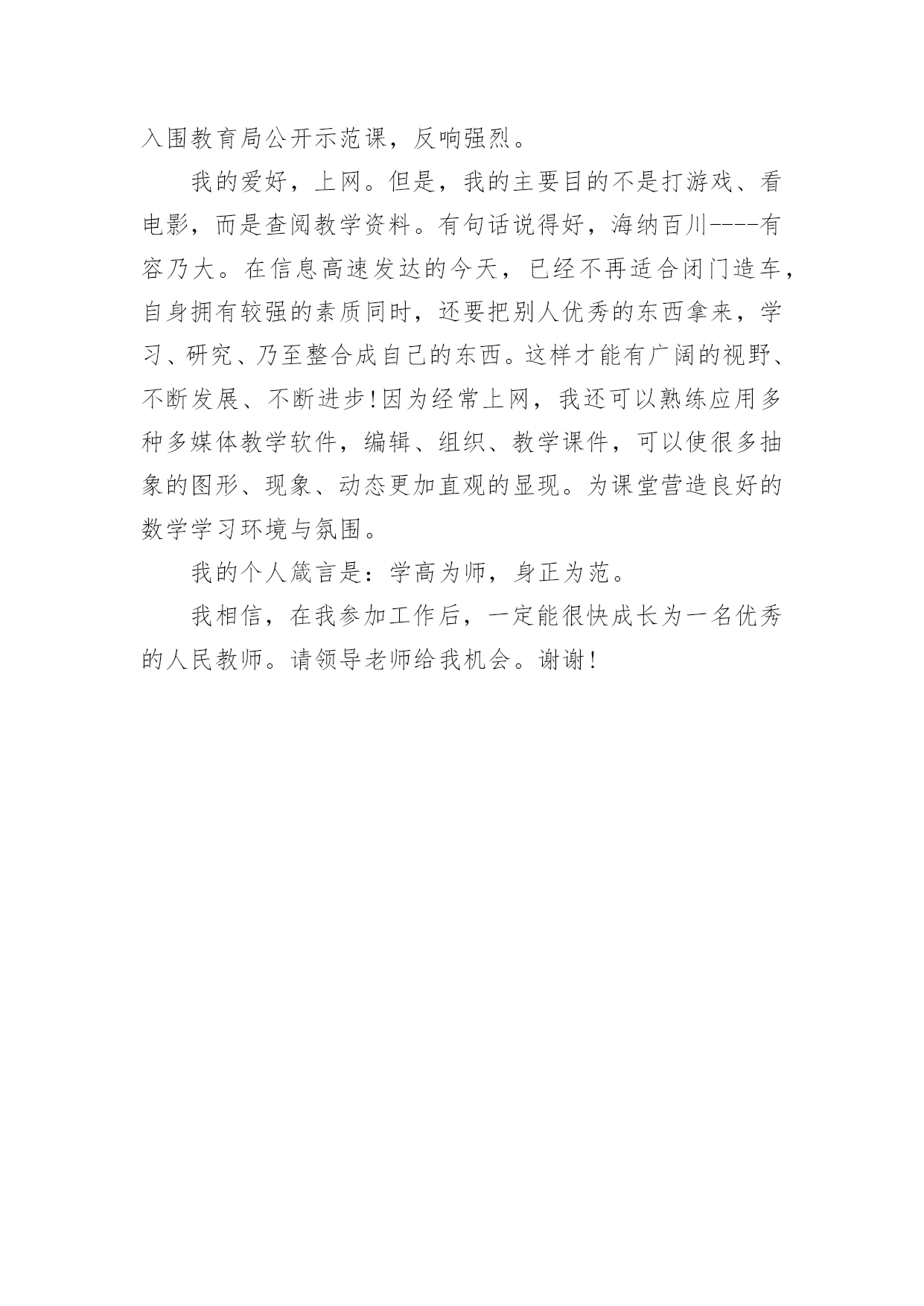 培训老师自我介绍培训老师自我介绍范文导语:面试时一份好的自我介绍能让面试官眼前一亮。下面是小编为大家整理的面试培训老师自我介绍范文。希望能为大家提供帮助。谢谢!培训老师自我介绍范文(一)尊敬的各位考官、各位评委老师:能参加今天的面试,并向各位考官和评委老师学习,我很高兴。同时通过这次面试也可以把我自己展现给大家,希望你们能记住我,下面我简单介绍我的基本情况。我叫***,今年**岁。毕业于**。我性格活泼开朗,大方热情,乐于助人,平时喜欢阅读、看书和上网流览信息。我曾经在**学校参加过教学实习,在实习期间我严格按照正式老师的标准来要求自己,进行语文教学和班级管理。我深入学生,和他们相处融洽,和他们一起布置文明教室,开主题班会,组织大家开展篮球赛,参与诗歌朗诵比赛等,学习了语文教学的各种知识,掌握了一定的中学语文教学技巧,也对班主任工作和学生工作有了一定的认识,找到了自己的管理班级的一套方法。同时,在实习当中,身边教师无私奉献的精神和天真、求知若渴的学生们勤奋的学习态度深深地感染了我。我也深深体会到了作为一名人类灵魂的工程师的乐趣和重要意义,更加坚定了自己做一名教师的决心,成为一名教师也成了我的愿望。教师这个职业是神圣而伟大的,他要求教师不仅要有丰富的知识,还要有高尚的情操。为了成为一名教师,我在自己掌握了专业知识的基础上,不断拓展自己的.各种能力,培养自己的爱心、责任心和耐心,创新能力、竞争能力和分析、处理问题的能力,并参与各种活动,广泛培养自己的兴趣爱好,并学有专长,做到除擅长写作和气排球外,还能会唱、会说、会讲。学高仅能为师,身正方能为范,在注重知识学习的同时我还注意培养自身的道德情操,自觉遵纪守法,遵守社会公德。使自己具有一名教育工作者应该具备的最起码的素养。如果,我通过了面试,成为该校教师队伍中的成员,我将继续虚心学习,努力工作,发挥自身所长,为教育事业贡献自己的一份力量,决不辜负人类灵魂的工程师这个光荣的称号。培训老师自我介绍范文(二)尊敬的领导老师:您好,我是东北师范大学2010届本科毕业生,我叫刘桂花,江苏徐州人,民族,汉;政治面貌,团员。下面将我的大学经历向您做简单的介绍。在大学期间,我获得的奖项与证书有:东北师范大学第四届数学建模大赛校一等奖;2009年全国数学建模大赛吉林省三等奖;数学奥林匹克竞赛培训证,由吉林省数学会颁发;英语国家四级证;计算机国家二级证;普通话二级乙等。从以上奖项可以看出,我比较热衷于数学建模。因为我觉得,既然数学是一个工具学科,在现实社会中就应该能够有所应用,就一定有他工具性、实用性的价值。不能一提到数学就只知道x,y,z,却不知道数学具体能干什么,那---将是数学的悲哀!在教学方面:我大学期间,一直在做家教,而且家教口碑良好。主要原因是---我不仅有较强的解题能力,而且还能够从培养学生学习兴趣入手,并在适当的时候,讲述建模的思想,让学生知道---数学不只局限于x,y,z,数学是有着很强的实用意义的重要学科;这样适时而动,给学生以目的、方向、动力,并结合因材施教,兴趣导学,使学生从内心深处自觉的、想学好数学,这样,作为一个教师的我,才能事半功倍,学生成绩的进步速度,才会出人意外,也因此我的学生、家长都满意。(实例:一个厌学情绪严重,家长都没有信心的孩子(于晨天),一个月下来,成绩从二十几分上升到五十几分,再一个月下来,又上升到七十几分,最后稳定在八九十分(初二、百分制))另外:《新课程标准》已实施多年,但是能够真正做到位的少之又少,一个情景导课就让很多在职老教师反感不已,我在实习期间重点研究了《新课程标准》,并且实际践行了情景导课,对情景导课领会颇深,受到实习学校老师、领导的一致好评,学生上课的积极性、热情,明显高涨。也因此,入围教育局公开示范课,反响强烈。我的爱好,上网。但是,我的主要目的不是打游戏、看电影,而是查阅教学资料。有句话说得好,海纳百川----有容乃大。在信息高速发达的今天,已经不再适合闭门造车,自身拥有较强的素质同时,还要把别人优秀的东西拿来,学习、研究、乃至整合成自己的东西。这样才能有广阔的视野、不断发展、不断进步!因为经常上网,我还可以熟练应用多种多媒体教学软件,编辑、组织、教学课件,可以使很多抽象的图形、现象、动态更加直观的显现。为课堂营造良好的数学学习环境与氛围。我的个人箴言是:学高为师,身正为范。我相信,在我参加工作后,一定能很快成长为一名优秀的人民教师。请领导老师给我机会。谢谢!
