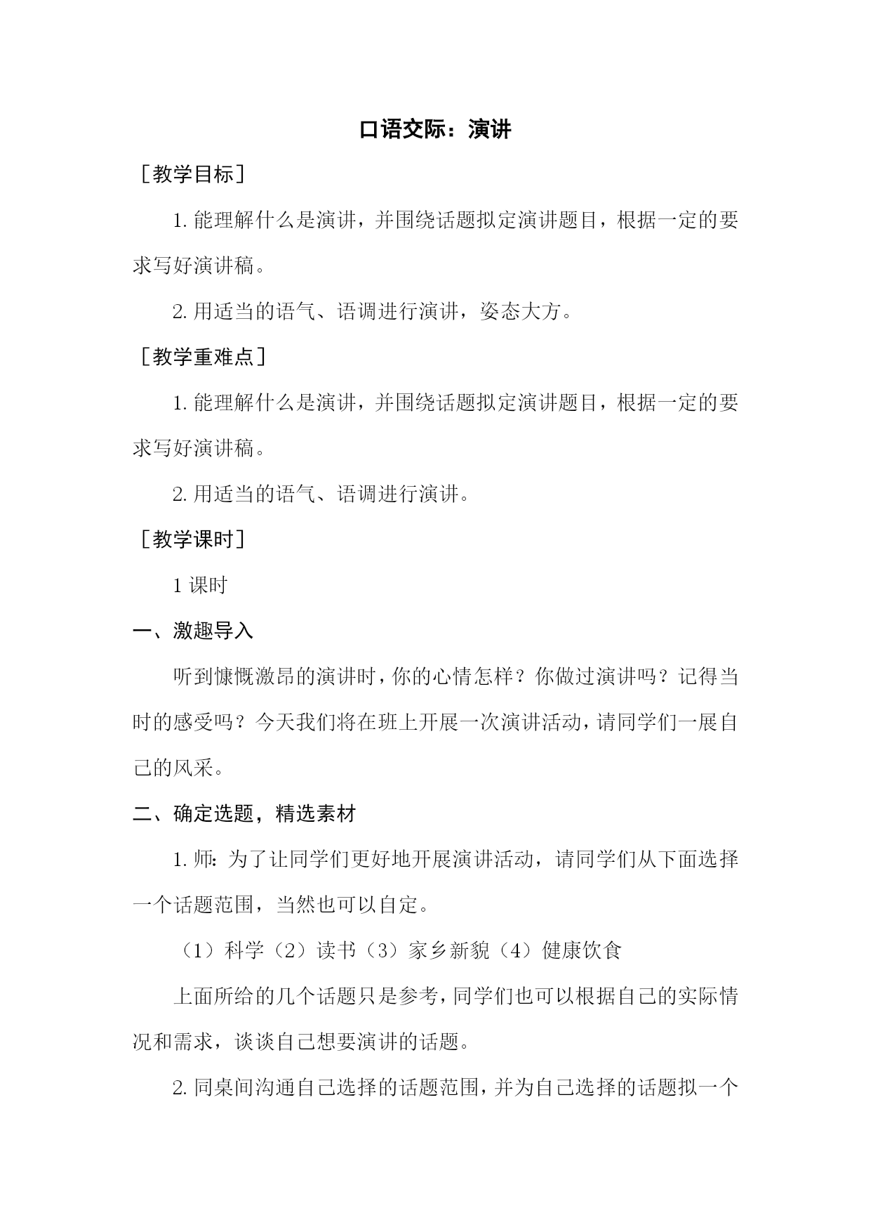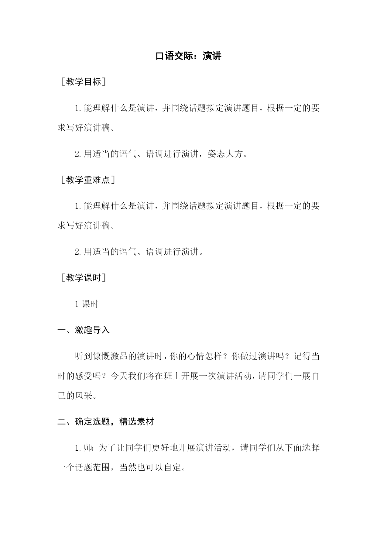 (教案)口语交际:演讲-最新经典通用教辅资料.docx