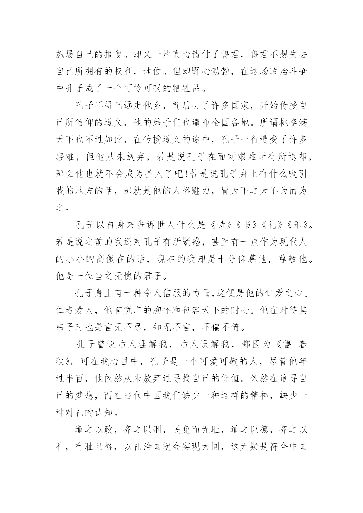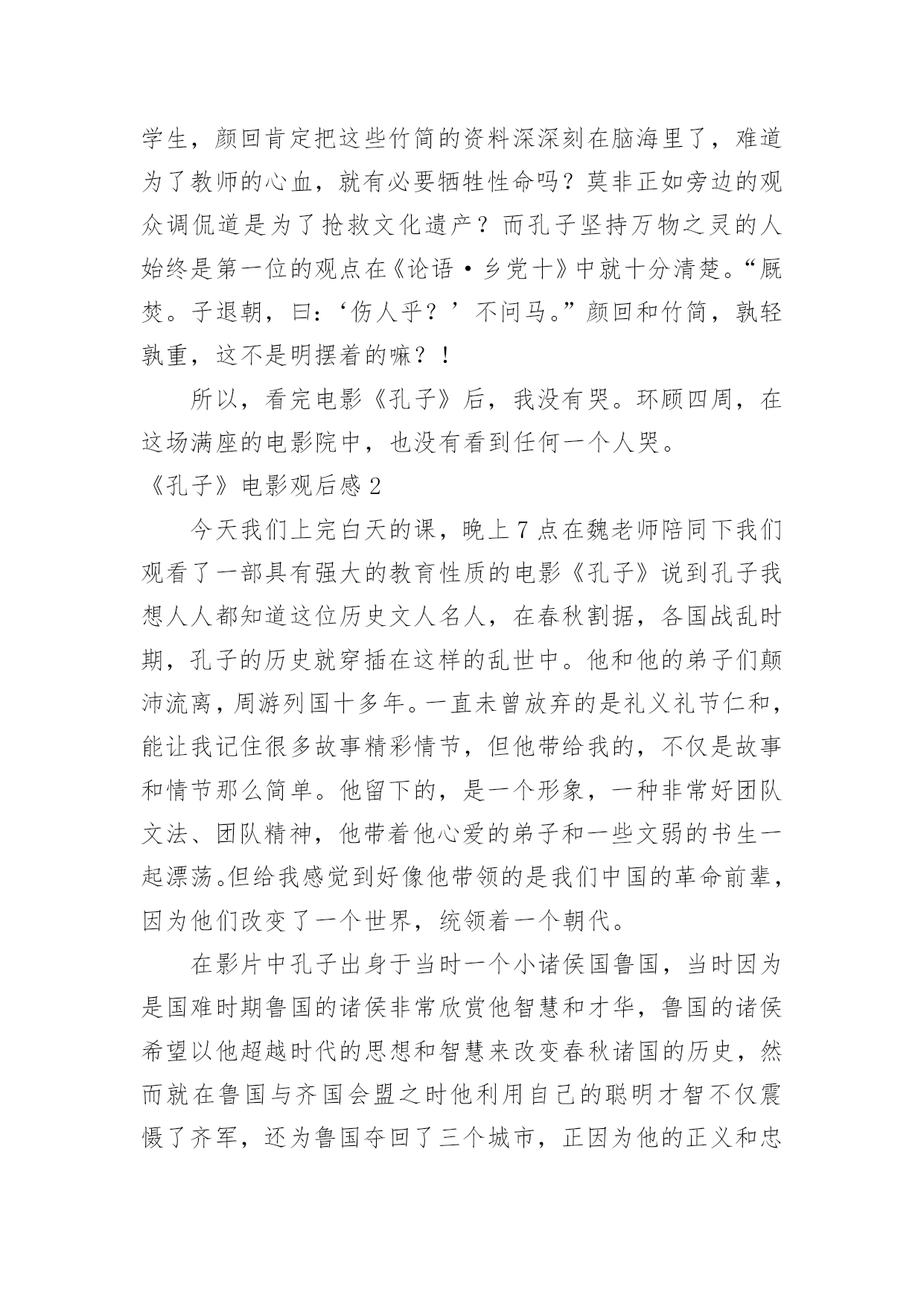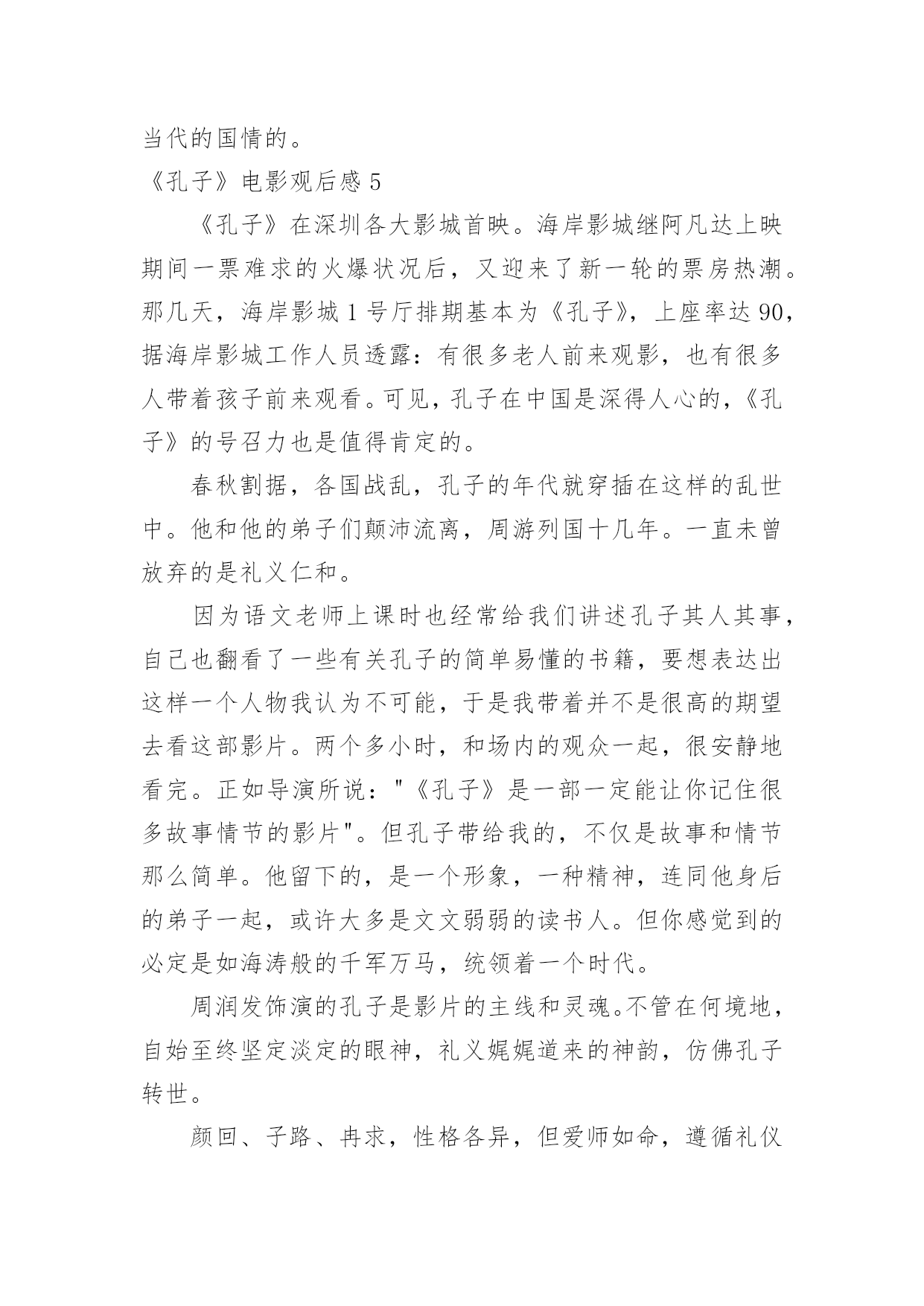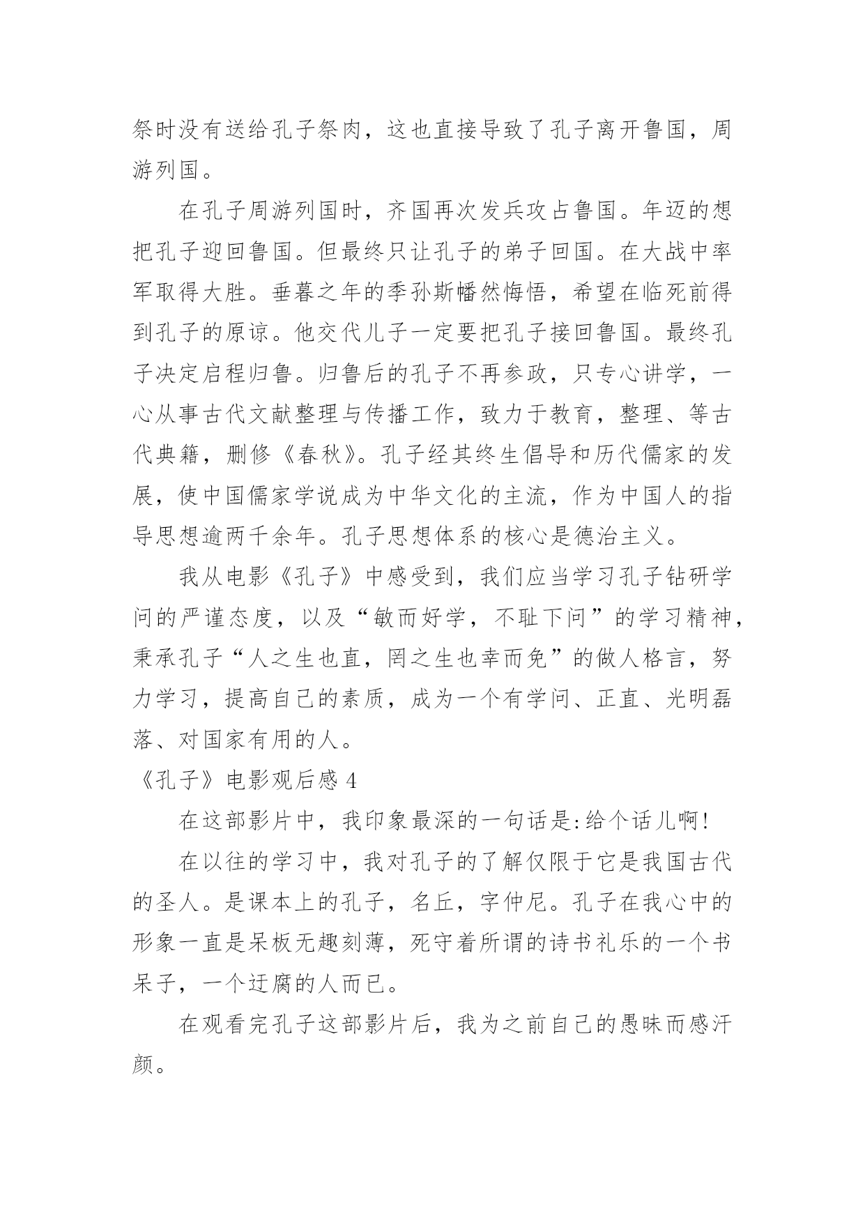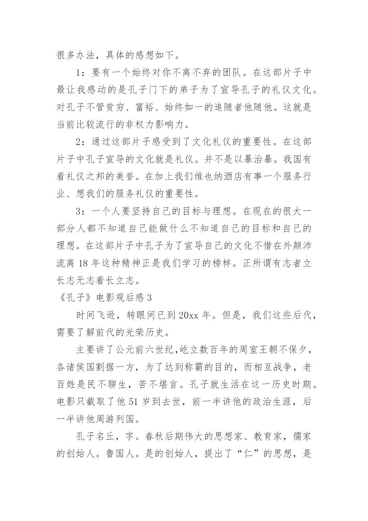 《孔子》电影观后感《孔子》电影观后感看完某一作品后,相信大家的视野一定开拓了不少吧,记录下来很重要哦,一起来写一篇观后感吧。那要怎么写好观后感呢?以下是小编为大家整理的《孔子》电影观后感,欢迎大家分享。《孔子》电影观后感1昨晚,去看了这个新年里声势造得很足的电影《孔子》。尽管明白凡动辄投资上千万的大片都是要研究票房的,既要票房就得研究观众的欣赏口味,不可能完全按照或者接近历史的真实去拍,那么编剧和导演究竟会把经过人们千百年的认识并且已经基本定型的孔夫子拍成什么样呢,的确很想明白,却又担心期望越大,失望越大。但听电影《孔子》的某主创人员说,观众看电影《孔子》,如果不哭,就不是人。如此信心满满,言之凿凿,更让人充满期待。影片从51岁的孔子作为政坛新星在鲁国崛起讲起,前半部分一开始便是残忍的活人陪葬,表现了当时周天子已无力掌控天下,而鲁国国君衰微,国家政权实际上由当时掌握军权的三桓掌控,他们嚣张跋扈,为所欲为的时代背景,之后叙述了孔子一生中最值得一提的两大政绩——夹谷之会和隳三都。后半部分则主要讲述孔子如何带领弟子周游列国,包括“子见南子”、“陈蔡绝粮”、“子路问津”等片段,最终是鲁国大夫季氏在内忧外患中幡然醒悟,孔夫子的治国才能不可小觑,于是放下身段,诚邀孔子回国,并理解了在外颠沛流离十九年的孔子提出回国后绝政治,治教育的条件。看完影片后,感到有三点不可思议之处:一是我们只明白孔子是政治家、思想家和教育家,没想到他老先生还是一个军事家。在“夹谷之会”和“隳三都”中,设计之巧妙,布局之合理,安排之周到,仅仅凭着一腔浩然正气和对道义的坚定信念,与妄自尊大、恃强凌弱的齐国针锋相对,舌战齐国君臣,生生迫使齐国退回了侵占已久的“汶上三城”。这当然大快人心了,谁说孔子一介书生,手无缚鸡之力,却做成了很多军事家想做而做不成的事情。二是影片后半段的“陈蔡绝粮”中,孔子师徒被困陈蔡间多日,七天七夜粒米未进,而孔子却依然气定神闲地抚琴,以这种方式转移饥饿的注意力当然是能够理解的,但师徒们一人一口分食最终一碗马肉汤后,弟子们不是倒卧在地以保存体力,而是居然有力气围着老夫子和他的琴声运动起来,这不合常理的举动,真是让人匪夷所思。三是师徒们周游列国途中遇到了冰裂,当时孔子的一车书掉入冰窟,孔子最器重的弟子颜回像罗盛教那样,一而再、再而三地潜入冰下打捞竹简,孔子及其众弟子趴在冰窟边缘呼喊痛哭,但既无人和颜回一道下水捞竹简,也无人下水力阻颜回的愚蠢行为,直至颜回冻死。这个极不靠谱的煽情情节,既亵渎了孔子,又亵渎了颜回。毫不夸张地说,作为好学生,颜回肯定把这些竹简的资料深深刻在脑海里了,难道为了教师的心血,就有必要牺牲性命吗?莫非正如旁边的观众调侃道是为了抢救文化遗产?而孔子坚持万物之灵的人始终是第一位的观点在《论语·乡党十》中就十分清楚。“厩焚。子退朝,曰:‘伤人乎?’不问马。”颜回和竹简,孰轻孰重,这不是明摆着的嘛?!所以,看完电影《孔子》后,我没有哭。环顾四周,在这场满座的电影院中,也没有看到任何一个人哭。《孔子》电影观后感2今天我们上完白天的课,晚上7点在魏老师陪同下我们观看了一部具有强大的教育性质的电影《孔子》说到孔子我想人人都知道这位历史文人名人,在春秋割据,各国战乱时期,孔子的历史就穿插在这样的乱世中。他和他的弟子们颠沛流离,周游列国十多年。一直未曾放弃的是礼义礼节仁和,能让我记住很多故事精彩情节,但他带给我的,不仅是故事和情节那么简单。他留下的,是一个形象,一种非常好团队文法、团队精神,他带着他心爱的弟子和一些文弱的书生一起漂荡。但给我感觉到好像他带领的是我们中国的革命前辈,因为他们改变了一个世界,统领着一个朝代。在影片中孔子出身于当时一个小诸侯国鲁国,当时因为是国难时期鲁国的诸侯非常欣赏他智慧和才华,鲁国的诸侯希望以他超越时代的思想和智慧来改变春秋诸国的历史,然而就在鲁国与齐国会盟之时他利用自己的聪明才智不仅震慑了齐军,还为鲁国夺回了三个城市,正因为他的正义和忠诚遭到了奸人三桓相国的陷害,后来回到鲁国后遇到三桓相国的反对势力欺压,随后孔子为了理想率领众弟子奔走在列国之间长达十四年之久,传播其文化思想,想与整个时代抗争,只可惜霸道如此世间,不容其主张。他曾被魏国宋国乱军围困而身陷绝境,还曾被卷入政治阴谋的旋涡,甚至曾被世人误解,后来经三桓相国的多次邀请,见到相国的玉环后才同意回到鲁国。孔子临终说的那句话:“后人对我的赞赏是因为这部书《鲁春秋》,对我的误解也是因为这部书,孔子生前颠沛流离如丧家之犬,死后极尽哀荣成万世师表,他拥有一个强大的精神世界,并且为了一个理想不断前进,能够在困境中始终坚持自己认为正确的东西这才是孔子的伟大之处。我从电影《孔子》中感受到,在我们平时工作和生活中要多关心自己身边的每一个人,多组建像孔子那样的团队,不要犯我们鲁国