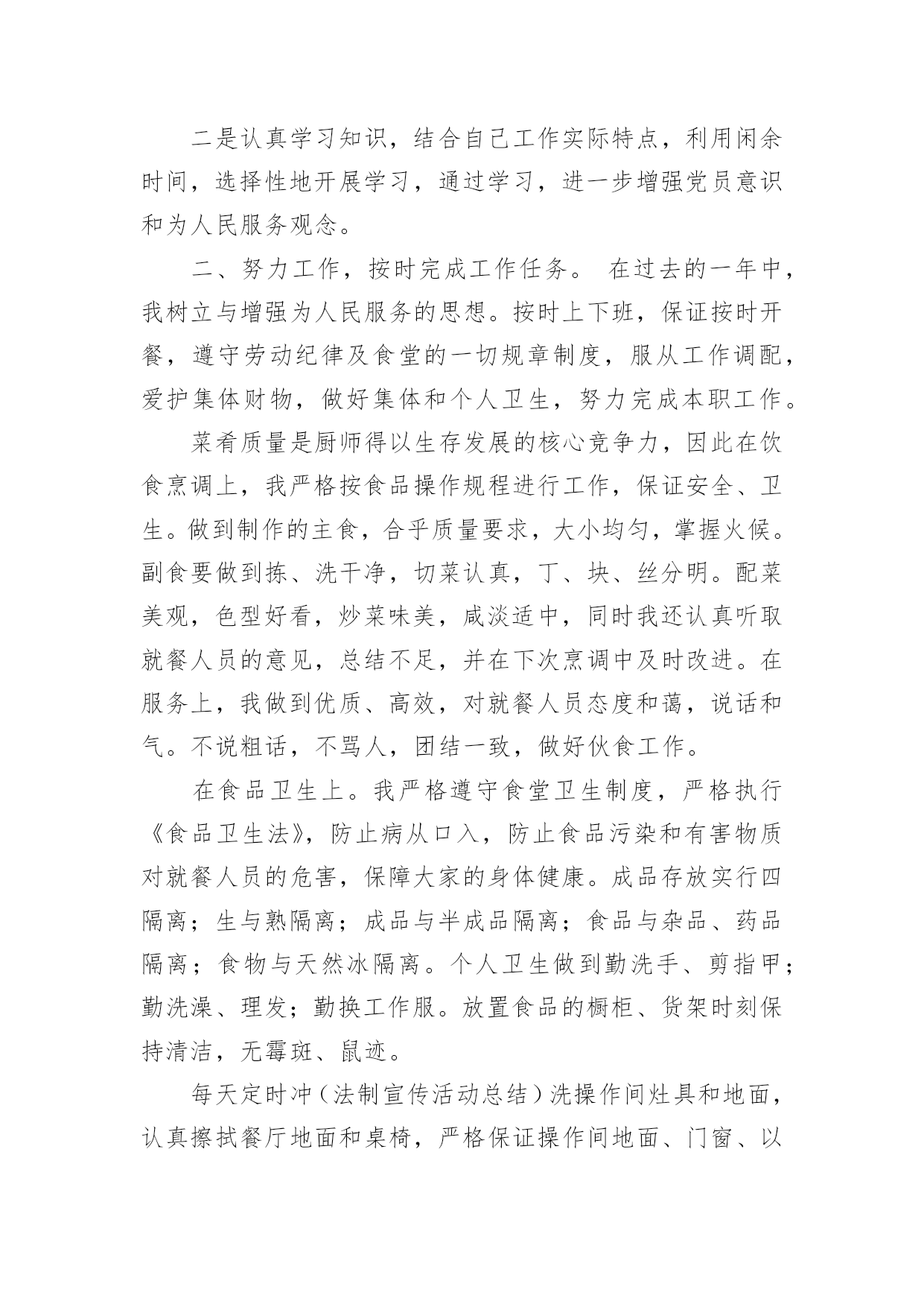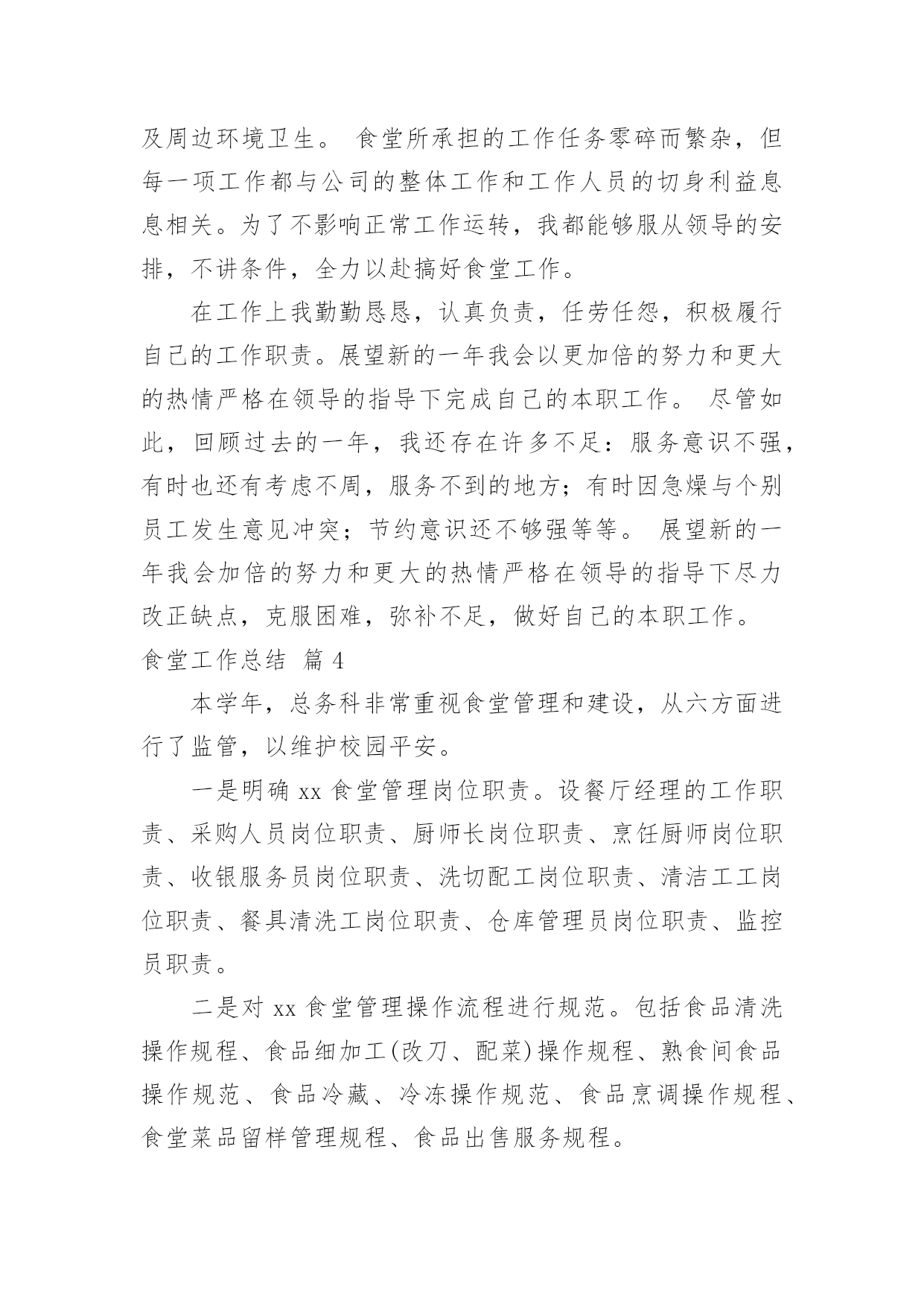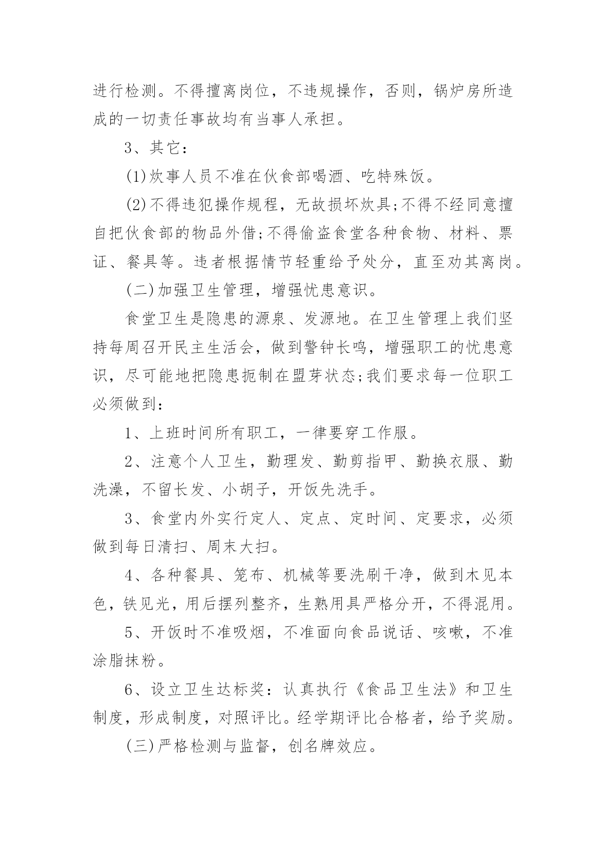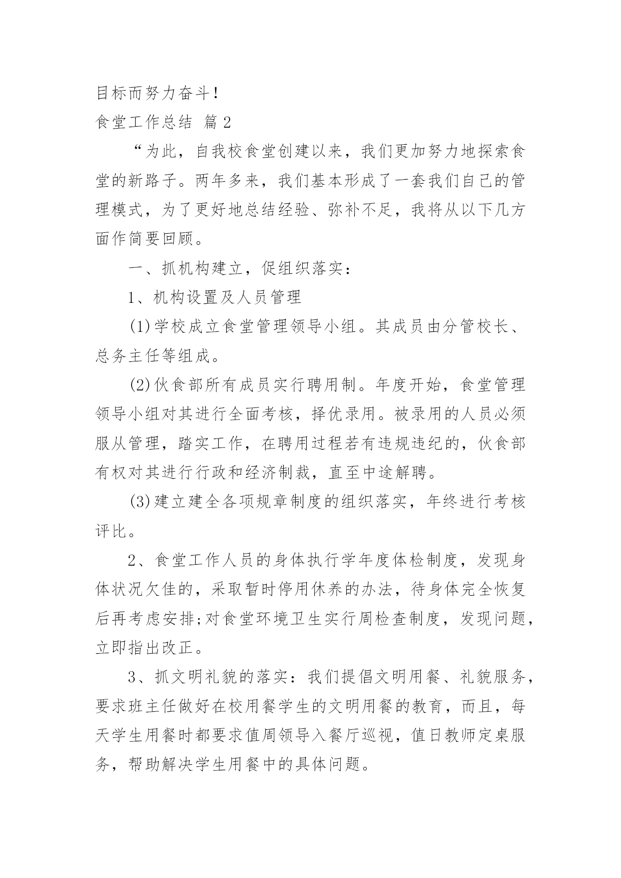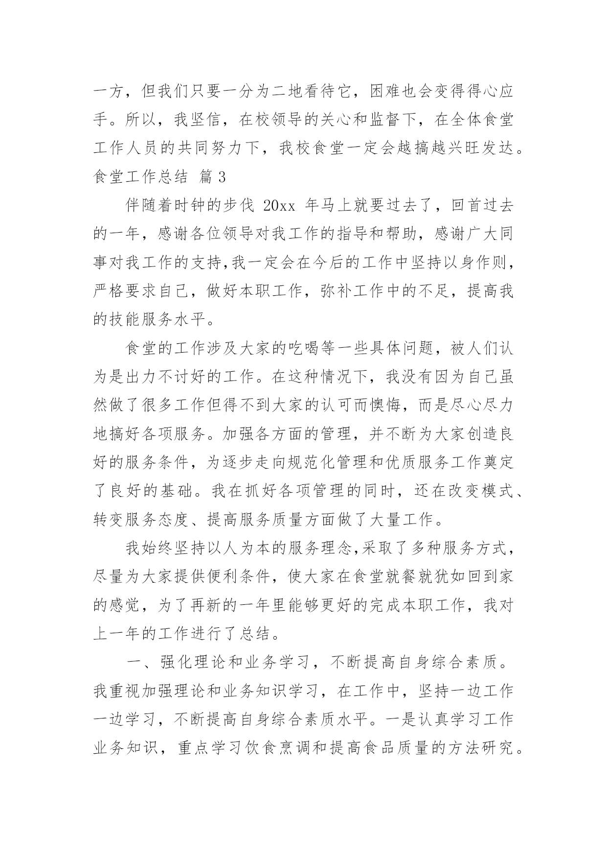 食堂工作总结食堂工作总结范文合集六篇总结是事后对某一阶段的学习、工作或其完成情况加以回顾和分析的一种书面材料,它可使零星的、肤浅的、表面的感性认知上升到全面的、系统的、本质的理性认识上来,让我们一起来学习写总结吧。总结怎么写才能发挥它的作用呢?以下是小编收集整理的食堂工作总结7篇,仅供参考,大家一起来看看吧。食堂工作总结篇1伴随着“突出重点,克难攻坚,为全面提高全市***行业综合经济效益水平和整体竞争实力而努力奋斗”的主旋律,我走过了极其不平凡的一年。一年来,在办公室的领导下,在食堂全体同志的相互配合下,紧紧围绕让每位职工满意就餐的目标,强化服务意识,提高服务质量,为免除职工的后顾之忧,千方百计保障全体职工全身心的投入到经营销售工作中去而努力。现就一年来的工作情况总结食堂是我们***公司全体职工用餐的地方,也是对疾病最为敏感的地方,为了使全体职工都能心情舒畅的放心用餐,作为食堂的工作人员,我有责任有义务搞好食堂的卫生工作。一年来我始终坚持对餐具及时清洗消毒,始终保持食堂地面的干洁,由于人多每天都要分两拨就餐,为了使第二拨就餐人员吃好饭,我总是以最快的速度收拾干净餐桌,换上新的桌布,使第二拨就餐人员也能在干净整洁的环境中就餐。我在食堂负责打饭打菜,经过这一年来的工作,我已经能够对每位职工谁喜欢吃什么、不喜欢吃什么、能吃多少都做到心中有数了,在打饭菜的时候在饭菜量的掌握上自然也就心中有数了,这样既达到了就餐人员的满意,又避免造成不必要的浪费。同时我还是食堂的保管员,负责保管食堂的油、盐、酱、醋、米等物品,这一年来我始终保持保管帐的帐目清晰,做到每一收每一支都在保管帐上体现,不占公家一丝便宜。当然工作的同时也不能忘了学习,从我进***公司第一天起,我就已经感觉到这里学习氛围的浓厚,200*年是全省企业文化建的开局之年,做为公司的一员,我有责任有义务去学习企业文化建设的精神实质,通过学习使我懂得了,我们食堂的成立本身就是我们******企业文化的一种形式体现。我原来认为,我只是食堂的一个小小的服务员,什么企业文化、什么公司盛衰似乎都与我没有什么关系,通过学习我发现我的想法的错的,生活在我们这个***大家庭中,我们每个成员只有分工的不同,没有高低贵贱之分。全公司几十号人都吃的是我打的饭,只有他们都吃好了,才有精力去搞经营,搞销售。所以我做为食堂的一员应是感到骄傲和自豪。如果我过去的工作能得到大家的认可,那么在今后的工作中,我会更加积极努力的工作,让大家吃上更舒适的环境中吃上更可口的饭菜。为张经理在年初工作会上所讲的“让各项福利事业搞的更好一些,让职工的精神面貌更加愉快一些”的目标而努力奋斗!食堂工作总结篇2“为此,自我校食堂创建以来,我们更加努力地探索食堂的新路子。两年多来,我们基本形成了一套我们自己的管理模式,为了更好地总结经验、弥补不足,我将从以下几方面作简要回顾。一、抓机构建立,促组织落实:1、机构设置及人员管理(1)学校成立食堂管理领导小组。其成员由分管校长、总务主任等组成。(2)伙食部所有成员实行聘用制。年度开始,食堂管理领导小组对其进行全面考核,择优录用。被录用的人员必须服从管理,踏实工作,在聘用过程若有违规违纪的,伙食部有权对其进行行政和经济制裁,直至中途解聘。(3)建立建全各项规章制度的组织落实,年终进行考核评比。2、食堂工作人员的身体执行学年度体检制度,发现身体状况欠佳的,采取暂时停用休养的办法,待身体完全恢复后再考虑安排;对食堂环境卫生实行周检查制度,发现问题,立即指出改正。3、抓文明礼貌的落实:我们提倡文明用餐、礼貌服务,要求班主任做好在校用餐学生的文明用餐的教育,而且,每天学生用餐时都要求值周领导入餐厅巡视,值日教师定桌服务,帮助解决学生用餐中的具体问题。二、食堂管理的具体做法:(一)严格管理制度,共创文明服务。学校的主要工作是教学工作,后勤管理的宗旨是坚持为教学服务,而作为后勤管理重重之重的工作——食堂管理工作更是直接影响学校工作的正常开展,为此,我们特制订了一些例的规章制度,确保食堂工作的正常开展。1、出勤制度:不随意更改作息时间2、劳动管理:(1)和睦相处、礼貌待人,杜绝与就餐人员或是内部职工吵架、打骂,违犯一次,扣除当事者当月奖金,情节严重者送司法机关依法追究刑事责任。(2)出售饭菜及其他食品一律不准收现金,违犯一次,收一罚十,并点名批评,情节严重者,劝其离岗。(3)职工内部来客就餐者,一律先买票后拿饭菜。(4)要节约水电,做到人走灯灭,水用即关,违犯一次,罚当事者2元。(5)按规定时间上交各种票证。如不按时上交,造成被盗或其它损失,按其金额处以2倍罚款;如发现私留或转卖票证发现一次,立即辞退。(6)月底结帐需要实事求是,不准隐瞒不报,若扣留票证或实物,发现一次,除追回票证或实物外,扣除当事者当月奖金