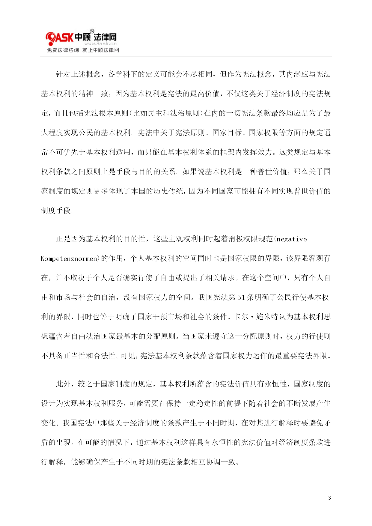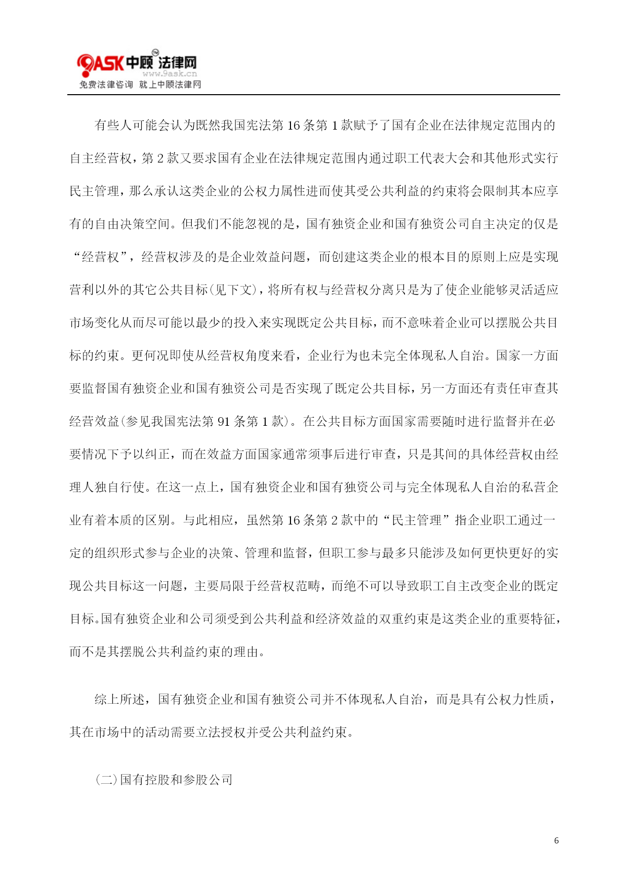 PAGEPAGE22国家从事经济活动的宪法界限一、国家从事经济活动的相关概念一般认为,市场是生产和交换的自由场所,是个人自由权利在经济领域的体现,是最自由且最直接的资源配置手段;而国家则代表公共权威,通常具有强制性和垄断性,采用人为的资源配置手段。当前在我国,国家干预市场的现象仍然较为普遍,这主要有三方面原因:第一,我国有着国家与社会不分的历史文化传统并在较长时期内实行了计划经济,在向市场经济转轨过程中,一些传统思维模式很难一时得到根本改变;第二,在国民经济的过渡和转轨阶段,国家可以利用自身优势来集中大量社会经济资源从而促使某些领域迅速发展;第三,当前我国各级机关的公共财政支出总体上呈现上升趋势,而干预经济生活在很多情况下可以增加财政收入,甚至被认为能够创造就业机会。国家可以通过多种方式和手段影响国民经济的运转,比如规制经济秩序、宏观调控、亲自参与经济活动等。而本文仅分析国家亲自参与经济活动的宪法界限。国家从事经济活动主要指国家权力机关在市场中直接向社会成员提供产品和服务或者通过由其出资的企业提供相关商品的营利行为。在我国现阶段,后一情况明显更为普遍。其中,全部资产归国家所有的非公司制经济组织通常被称为国有独资企业,包括由中央和地方政府部门投资控制的经济组织。而在今天,国家越来越多的作为有限责任公司或股份有限公司的出资人参与经济活动。国家单独出资、由国务院或者地方人民政府的国有资产监督管理机构履行出资人职责的有限责任公司被称为国有独资公司(公司法第65条第2款)。除了国有独资形式以外,国家还通过由其控股或参股的公司从事经济活动。虽然针对国有控股公司和国有参股公司的划分标准尚存在争议,但这一争议对于下文的分析并无影响。在本文中,这两类公司包括了国家持部分股份的所有公司,无论持股比例是多少。此外,本文所提到的私营企业是指完全由自然人投资或持股的营利性经济组织,而私营企业家则是私营企业所有者和经营者的统称二、经济制度规定与作为消极权限规范的基本权利条款与大部分西方国家的宪法不同,我国宪法中存在不少关于经济制度的规定。宪法第6条第1款和第2款规定:“中华人民共和国的社会主义经济制度的基础是生产资料的社会主义公有制,即全民所有制和劳动群众集体所有制。社会主义公有制消灭人剥削人的制度,实行各尽所能、按劳分配的原则。国家在社会主义初级阶段,坚持公有制为主体、多种所有制经济共同发展的基本经济制度,坚持按劳分配为主体、多种分配方式并存的分配制度。”第7条:“国有经济,即社会主义全民所有制经济,是国民经济中的主导力量。国家保障国有经济的巩固和发展。”第11条第1款和第2款:“在法律规定范围内的个体经济、私营经济等非公有制经济,是社会主义市场经济的重要组成部分。国家保护个体经济、私营经济等非公有制经济的合法的权利和利益。国家鼓励、支持和引导非公有制经济的发展,并对非公有制经济依法实行监督和管理。”第15条第1款和第2款:“国家实行社会主义市场经济。国家加强经济立法,完善宏观调控。”此外,市场经济制度的规定还出现在宪法序言中。其中第6、7条等条款不可能为国家随意从事经济活动开绿灯,否则宪法不会同时确立市场经济制度并保护非公有制经济。反之,市场经济制度的规定也不可能对国家的一切经济活动都亮红灯,否则将会与其它宪法条款产生冲突。那我们又应当如何理解宪法文本中“社会主义经济制度的基础”、“公有制为主体”、“国民经济中的主导力量”、“社会主义市场经济”、“社会主义市场经济的重要组成部分”这一系列概念呢?针对上述概念,各学科下的定义可能会不尽相同,但作为宪法概念,其内涵应与宪法基本权利的精神一致,因为基本权利是宪法的最高价值,不仅这类关于经济制度的宪法规定,而且包括宪法根本原则(比如民主和法治原则)在内的一切宪法条款最终均应是为了最大程度实现公民的基本权利。宪法中关于宪法原则、国家目标、国家权限等方面的规定通常不可优先于基本权利适用,而只能在基本权利体系的框架内发挥效力。这类规定与基本权利条款之间原则上是手段与目的的关系。如果说基本权利是一种普世价值,那么关于国家制度的规定则更多体现了本国的历史传统,因为不同国家可能拥有不同实现普世价值的制度手段。正是因为基本权利的目的性,这些主观权利同时起着消极权限规范(negativeKompetenznormen)的作用,个人基本权利的空间同时也是国家权限的界限,该界限客观存在,并不取决于个人是否确实行使了自由或提出了相关请求。在这个空间中,只有个人自由和市场与社会的自治,没有国家权力的空间。我国宪法第51条明确了公民行使基本权利的界限,同时也等于明确了国家干预市场和社会的条件。卡尔·施米特认为基本权利思想蕴含着自由法治国家最基本的分配原则。当国家未遵守这一分配原则时,权力的行