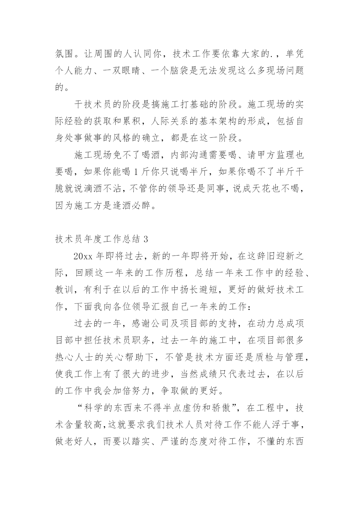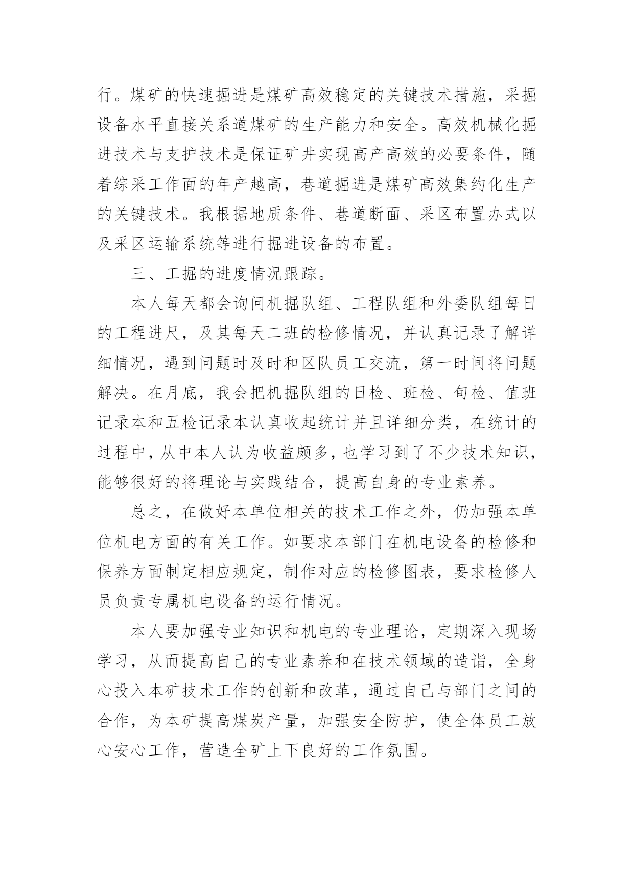 技术员年度工作总结总结就是把一个时间段取得的成绩、存在的问题及得到的经验和教训进行一次全面系统的总结的书面材料,它能够给人努力工作的动力,让我们好好写一份总结吧。那么总结应该包括什么内容呢?下面是小编帮大家整理的技术员年度工作总结,欢迎阅读与收藏。技术员年度工作总结1我是一名机电技术员,于20xx年7月毕业于太原理工大学机械制造程及其自动化专业,20xx年7月到xx矿掘进队参加工作,20xx年11月被聘为助理工程师。在机电科的工作中我主要负责全队工作面的设备布置及设备维修和综采设备的维修。在此期间本人尽职尽责、严格按照要求顺利完成了在生产过程中的各项工作任务。现将我任职期间的具体工作总结如下。一、积极参与各项技术创新工作创新是民族进步的灵魂,是我矿安全生产的不竭动力。对于煤矿企业来说,更是需要不断进行技术改革,积极探索煤矿新技术,源源不断的为煤矿生产注入新的动力。因此本人多次参与了本单位的技术创新工作,在本矿要求少投入、多产出的原则下取得了一定的成效,并多项技术创新获奖。二、完成全矿工掘工作面的设备布置掘进和回采是煤矿生产的重要环节,采掘并重、掘进先行。煤矿的快速掘进是煤矿高效稳定的关键技术措施,采掘设备水平直接关系道煤矿的生产能力和安全。高效机械化掘进技术与支护技术是保证矿井实现高产高效的必要条件,随着综采工作面的年产越高,巷道掘进是煤矿高效集约化生产的关键技术。我根据地质条件、巷道断面、采区布置办式以及采区运输系统等进行掘进设备的布置。三、工掘的进度情况跟踪。本人每天都会询问机掘队组、工程队组和外委队组每日的工程进尺,及其每天二班的检修情况,并认真记录了解详细情况,遇到问题时及时和区队员工交流,第一时间将问题解决。在月底,我会把机掘队组的日检、班检、旬检、值班记录本和五检记录本认真收起统计并且详细分类,在统计的过程中,从中本人认为收益颇多,也学习到了不少技术知识,能够很好的将理论与实践结合,提高自身的专业素养。总之,在做好本单位相关的技术工作之外,仍加强本单位机电方面的有关工作。如要求本部门在机电设备的检修和保养方面制定相应规定,制作对应的检修图表,要求检修人员负责专属机电设备的运行情况。本人要加强专业知识和机电的专业理论,定期深入现场学习,从而提高自己的专业素养和在技术领域的造诣,全身心投入本矿技术工作的创新和改革,通过自己与部门之间的合作,为本矿提高煤炭产量,加强安全防护,使全体员工放心安心工作,营造全矿上下良好的工作氛围。技术员年度工作总结2转眼间,辞旧迎新、平凡而又不太忙碌的一年已到尽头,不知不觉时间过的真快,悄然无息、20xx年的日历即将翻过去。伴随着时代前进的步伐、回首自己一年来经历的风雨路程、对自己工作中的不足、我做出如下工作总结:一、务实工作、自我加压、认真工作、有得有失20xx年、值得一庆,(xx楼)自己着手参加的第一个住宅工程已经竣工,我们主抓质量、进度使规定期间内竣工。同时也让我学会了一些施工工序、包括图纸的一些细部构造、及公司规定的一些细部做法、及技术资料的整理等。包括为人处事都有很大的改进,也为自己积累了一定的经验。主体施工完毕后、主要参与砌体的放线、拉结筋的植设、及最后砌体的验收等。后期主要和甲方人员及监理人员做分户验收、及室外污水管道的标高抄测。泛泛的工作岗位维护的是一团氛围。做为一名新手、同样也出现了很多的错误、(楼层外飘窗的砌筑)造成返工、但我会汲取教训、认真熟读图纸、问题考虑全面。坚决不会在让同样的问题出现。20xx年、新的工程开工、位于威海市高技区、楼座为三栋小高层axx、三栋多层xx及一个大车库总面积由于xxm2由于开始技术人员人手紧张、相当忙碌、虽说忙碌、但很快乐、对自己有很大的信心。因为这是我第一个从基础来挖到最后封顶的工程、所以我很期待。二、工作要有责任心,合理安排工作在这里更让巩固加深了20xx年所学到的知识。更明白了:趁年轻多学习的道理。业余时间我会拿出一定的时间多去看规范、图集。唯一不足就是:工作没有计划性。所谓有失必有得,总结一年的工作后,我认识到工作计划的重要性,合理的安排工作可以大力的提高工作效率,使工作更好的顺利进行。数据的统计要从实际出发,以计算量为参考,经多方讨论确认后,再进行数据上报,以确保数据的准确性。做事要有责任心,发扬三勤管理精神,多看、多问、多查,只有这样才可以更好的发现工程中的问题并及时采取方法解决问题。在今后的施工过程中不能一味的按照图纸进行施工还要考虑到现场实际情况,有什么问题及时向领导汇报,只有这样才可以减少施工问题及返工现象的发生。最后,不管做什么事都应该有正确积极的态度,所谓态度决定一切。吸取20xx年的失败、为了我能够在20xx年取得更好的成绩、减少返工及维修使自己自我完善。我做出如下建议:1、xx年开春将会进行拉结筋植设及砌体抹灰
