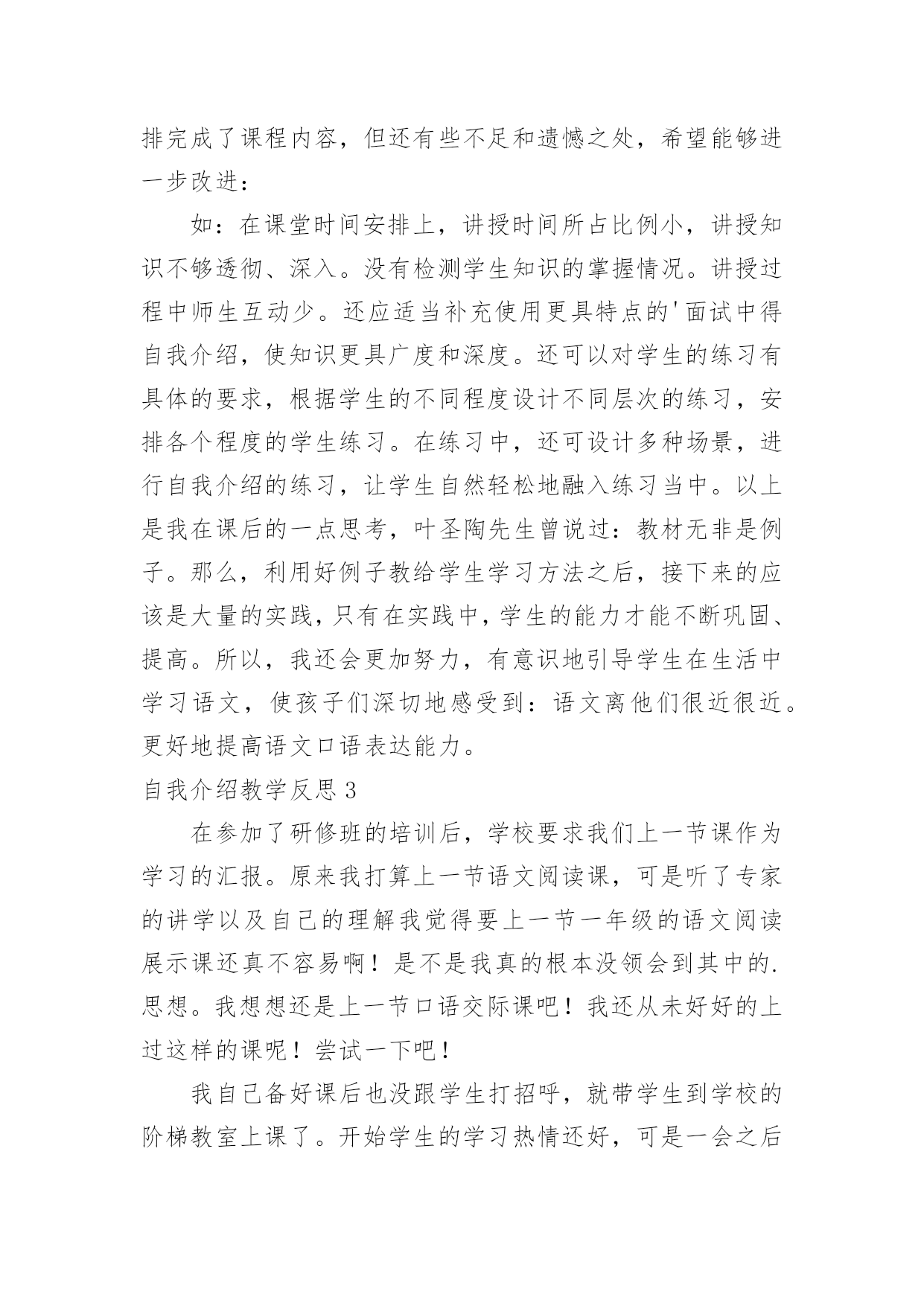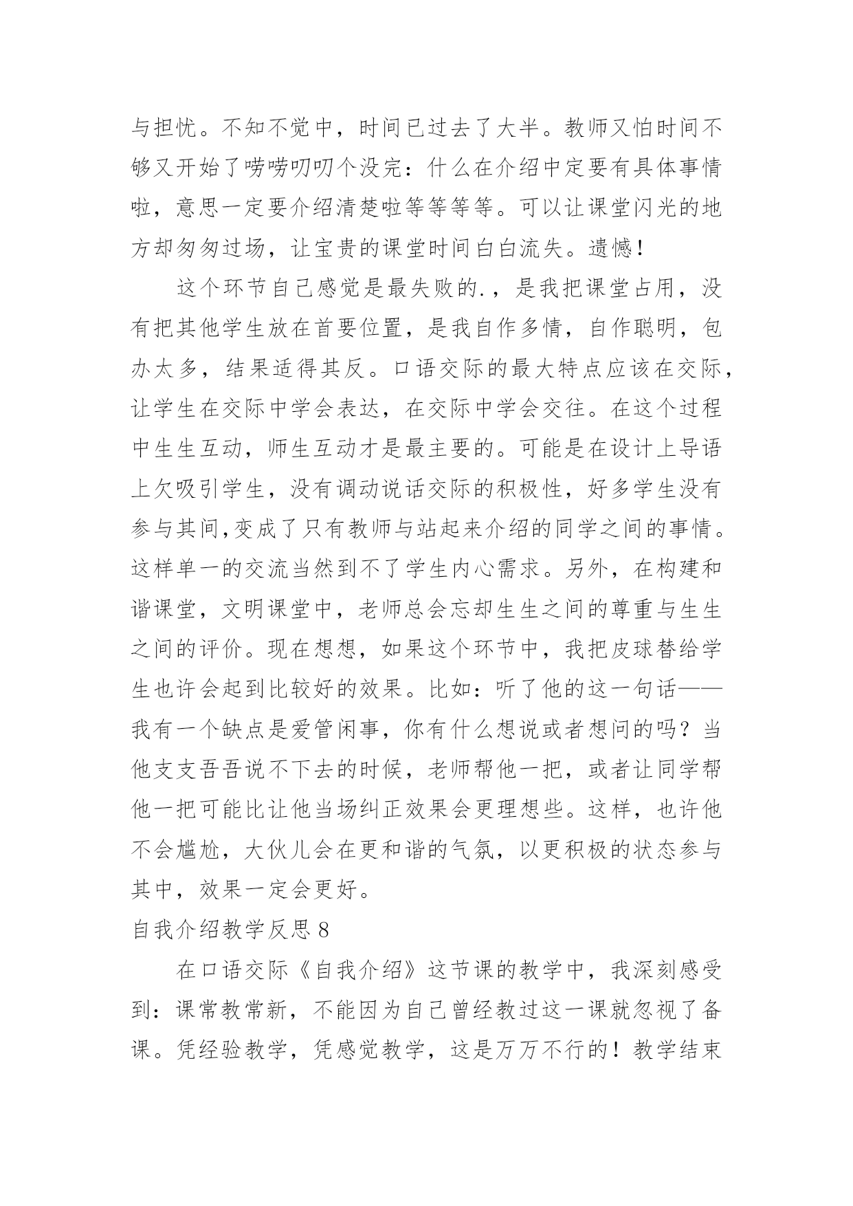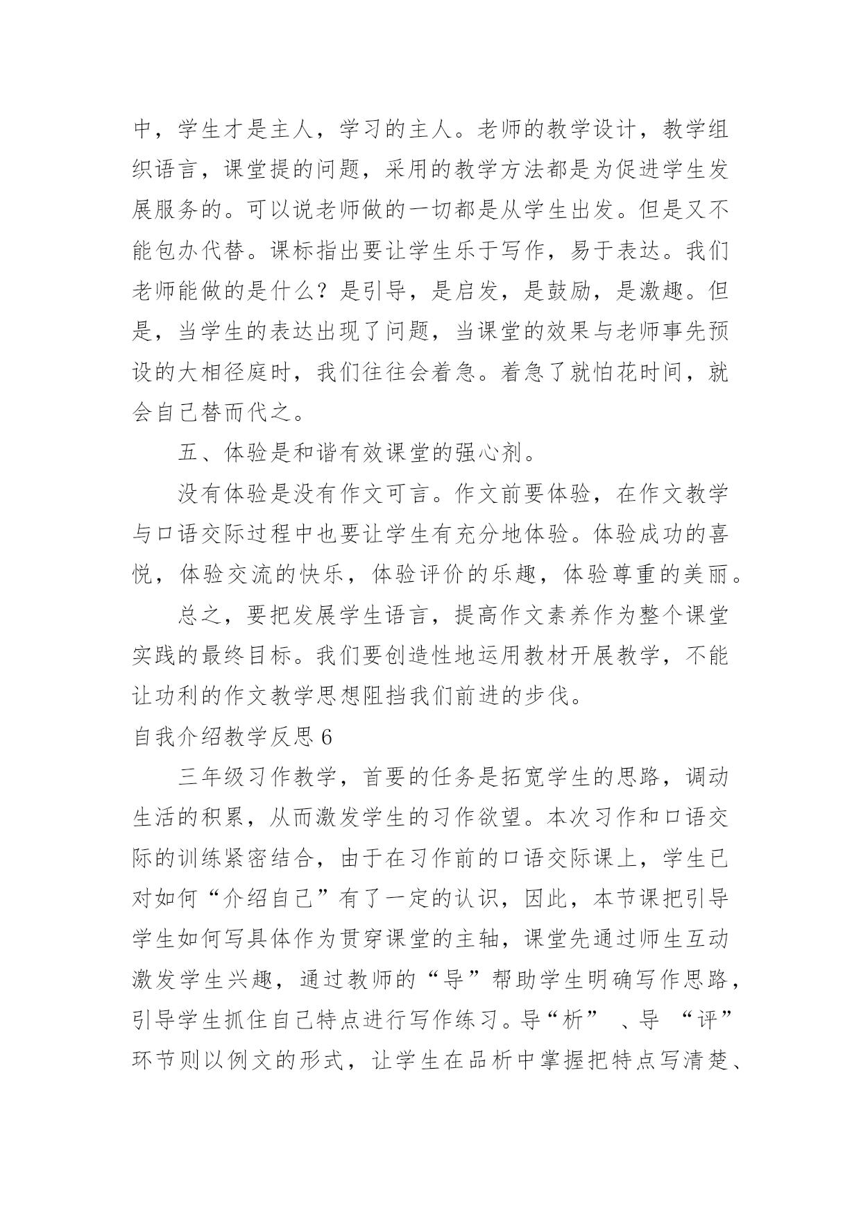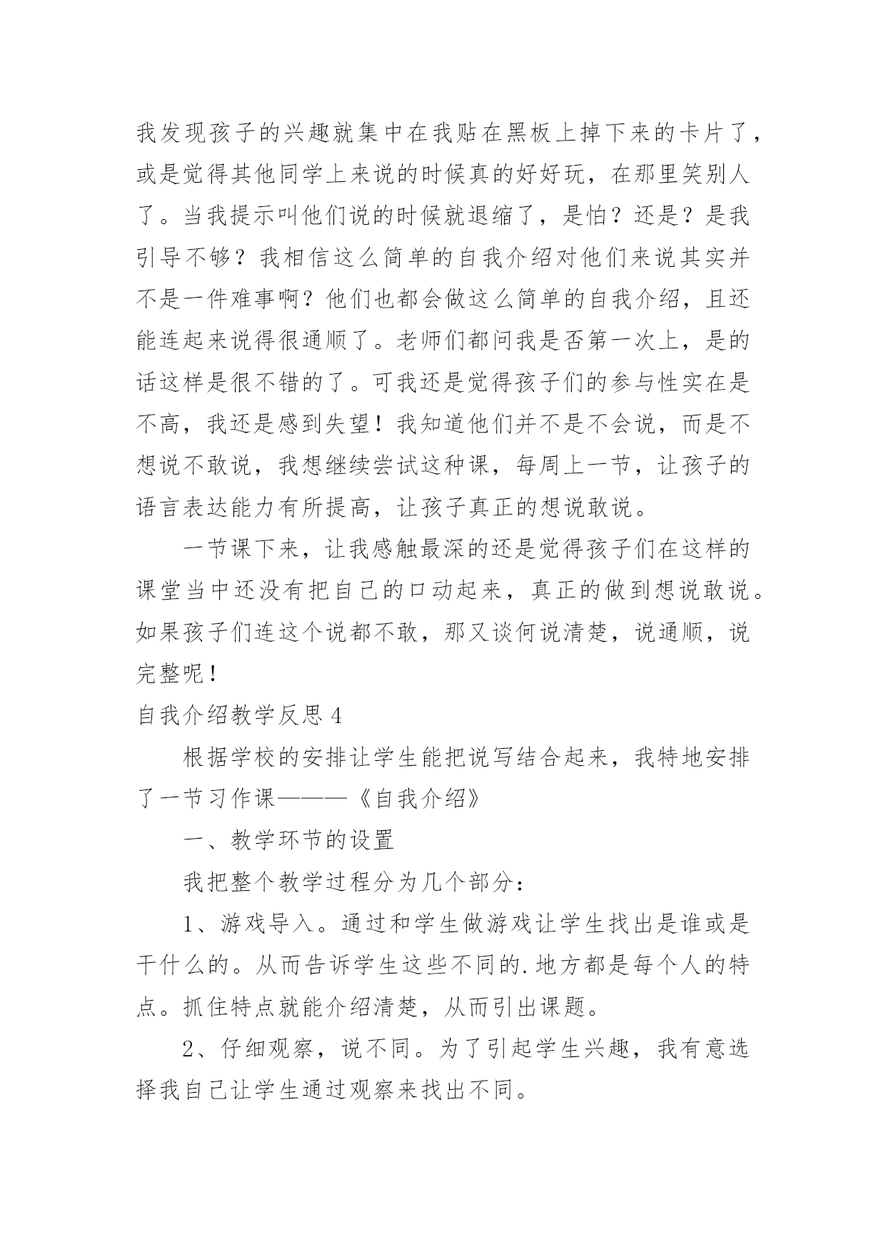 自我介绍教学反思自我介绍教学反思当来到一个陌生环境中,我们难以避免地要作出自我介绍,自我介绍可以给陌生人留下一个好的印象。写自我介绍时总是没有新意?下面是小编收集整理的自我介绍教学反思,欢迎阅读与收藏。自我介绍教学反思1语言发展既非纯粹天赋遗传,也不是后天的机械模仿所得,幼儿是在与人和环境的交互作用中创造性地学习语言的。在生活中让大家认识自己,自我介绍是向别人展示你自己的一个重要手段。幼儿阶段,是孩子发展语言的黄金阶段。提高口头表达能力,让他们灵活而富有创造性的说,是语言教学的工作重点。1、培养幼儿有礼貌的好习惯。2、培养幼儿的自我认识及口头表达能力。3、初步培养幼儿有礼貌的行为。4、让幼儿能在集体面前大胆表演、表现自己。5、培养幼儿与同伴之间的'相互配合。小熊布绒玩具一个集中活动宝宝们把你们的小手伸出来和老师一起来拍拍手。活动流程:今天我要和大家一起做五个亲子游戏,社会活动《自我介绍》,语言几款《两只小象》,音乐活动《好孩子》,美术活动《月亮姐姐的女朋友》体能活动《小兔拔萝卜》。1、导入活动拿出玩具小熊和小朋友打招呼:。2、展开活动请这位小朋友过来介绍自己(介绍过程),ⅹⅹ很棒,妈妈们鼓励下,ⅹⅹ欢迎你,(依次介绍到最后)小朋友都相互知道了名字,下面请妈妈带自己的孩子相互认识一下,握个手交个朋友(认识过程,老师巡回指导)3、结束活动现在请妈妈和小朋友回到自己的位子上,我们的这个社会活动主要是教小朋友要有礼貌,培养他们的表达能力。鼓励孩子多交朋友,提高社会交往能力。自我介绍教学反思2教材要求口语训练要将案例和相关知识分别讲解,让学生在参与活动的基础上掌握“自我介绍”的知识,学会自我介绍的技能。因此我采用了讲练结合,以讲促练,以练促学的教学模式。在讲课过程中,我先安排了情景导入,引起学生学习的兴趣;接着安排了自我介绍的相关知识学习;较为经典的自我介绍案例学习、分析;视频的案例学习;最后进行学生的小组合作学习、展示。在整个授课过程中,按照预先设计安排完成了课程内容,但还有些不足和遗憾之处,希望能够进一步改进:如:在课堂时间安排上,讲授时间所占比例小,讲授知识不够透彻、深入。没有检测学生知识的掌握情况。讲授过程中师生互动少。还应适当补充使用更具特点的'面试中得自我介绍,使知识更具广度和深度。还可以对学生的练习有具体的要求,根据学生的不同程度设计不同层次的练习,安排各个程度的学生练习。在练习中,还可设计多种场景,进行自我介绍的练习,让学生自然轻松地融入练习当中。以上是我在课后的一点思考,叶圣陶先生曾说过:教材无非是例子。那么,利用好例子教给学生学习方法之后,接下来的应该是大量的实践,只有在实践中,学生的能力才能不断巩固、提高。所以,我还会更加努力,有意识地引导学生在生活中学习语文,使孩子们深切地感受到:语文离他们很近很近。更好地提高语文口语表达能力。自我介绍教学反思3在参加了研修班的培训后,学校要求我们上一节课作为学习的汇报。原来我打算上一节语文阅读课,可是听了专家的讲学以及自己的理解我觉得要上一节一年级的语文阅读展示课还真不容易啊!是不是我真的根本没领会到其中的.思想。我想想还是上一节口语交际课吧!我还从未好好的上过这样的课呢!尝试一下吧!我自己备好课后也没跟学生打招呼,就带学生到学校的阶梯教室上课了。开始学生的学习热情还好,可是一会之后我发现孩子的兴趣就集中在我贴在黑板上掉下来的卡片了,或是觉得其他同学上来说的时候真的好好玩,在那里笑别人了。当我提示叫他们说的时候就退缩了,是怕?还是?是我引导不够?我相信这么简单的自我介绍对他们来说其实并不是一件难事啊?他们也都会做这么简单的自我介绍,且还能连起来说得很通顺了。老师们都问我是否第一次上,是的话这样是很不错的了。可我还是觉得孩子们的参与性实在是不高,我还是感到失望!我知道他们并不是不会说,而是不想说不敢说,我想继续尝试这种课,每周上一节,让孩子的语言表达能力有所提高,让孩子真正的想说敢说。一节课下来,让我感触最深的还是觉得孩子们在这样的课堂当中还没有把自己的口动起来,真正的做到想说敢说。如果孩子们连这个说都不敢,那又谈何说清楚,说通顺,说完整呢!自我介绍教学反思4根据学校的安排让学生能把说写结合起来,我特地安排了一节习作课———《自我介绍》一、教学环节的设置我把整个教学过程分为几个部分:1、游戏导入。通过和学生做游戏让学生找出是谁或是干什么的。从而告诉学生这些不同的.地方都是每个人的特点。抓住特点就能介绍清楚,从而引出课题。2、仔细观察,说不同。为了引起学生兴趣,我有意选择我自己让学生通过观察来找出不同。二、教学中反映出的问题。虽然自己经过准备,并且做了大量的铺垫,但是在实际教学中学生掌握的情况却并不理想。主要存在以下问题:1、学生的概念模糊不清。在教学中涉及到“特点”、“身材”