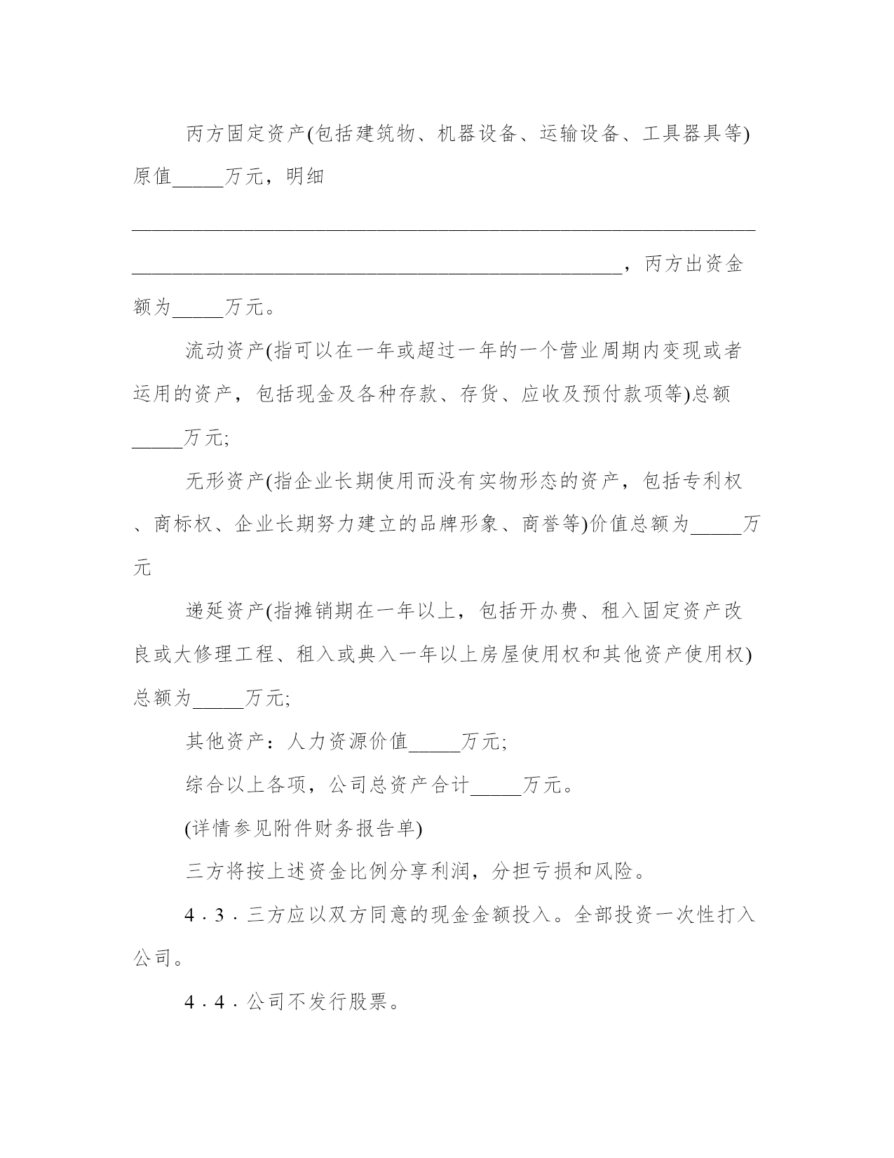 2024年投资入股方案模板(15篇)“方”即方子、方法。“方案”,即在案前得出的方法,将方法呈于案前,即为“方案”。方案书写有哪些要求呢?我们怎样才能写好一篇方案呢?接下来小编就给大家介绍一下方案应该怎么去写,我们一起来了解一下吧。投资入股方案模板篇一第一条、乙方自愿入股甲方投入_____产业。风险提示:投资协议最重要的部分便是出资问题,因此一定要在协议中载明出资的方式,以此方式认缴的出资额是多少,确定该出资额所占的出资比例等。其中,最为重要的是,出资实际缴付的时间确定。实践中不乏有投资人在签订出资协议后,因各种原因而迟迟不予缴付出资,从而导致整个合作项目进程延缓。若未在协议中对此约定,或使迟延履行出资义务人逃脱责任。第二条、公司注册资本为人民币_____万元。本次将公司资本金增加至_____万元人民币。公司现有股东实持资本金_____万元人民币,本次各股东出资额_____万元人民币,出资方式为:现金方式。投资各方的出资方式、出资额和占股比例:甲方以_____作为出资,出资额_____万元人民币,占公司注册资本的_____%。乙方以_____作为出资,出资额_____万元人民币,占公司注册资本的_____%。第三条、本协议各方的权利和义务1、根据公司法的规定组成股东大会及董事会,投资各方承诺公司的机构及其产生办法、职权、议事规则、法定代表人的担任和财务会计按照公司法a;等国家相关法律规定制定。具体内容见有限责任公司章程。2、投资各方的责任以其投入资金比例为限,各方的责任以各自对注册资本的出资为限。公司的税后利润按各方对注册资本出资的比例由各方分享。3、公司增资扩股成立后,应当在10天内到银行开设公司临时账户。股东以货币出资的,应当在公司临时账户开设后60天内,将货币出资足额存入公司临时账户。4、本协议各方未经其他各方书面同意不得擅自泄露本协议内容(为本协议服务人员和甲乙丙丁四方授权从事与本协议有关事项人员以及按照法律规定必须得知人员除外)。第四条、投资各方认为需要约定的其他事项1、成立公司筹备组,成员由各股东方派员组成,出任法人代表一方的股东代表为组长,组织起草申办设立公司的各类文件。2、出任法人代表的股东方先行垫付筹办费用,公司设立后该费用由公司承担。3、上述各股东方委托出任法人代表方代理申办公司的各项注册事宜。第五条、本协议的修改、变更和终止1、本协议一经签订,投资各方不得中途撤股、撤资,但允许投资各方之间或与其他投资股东实行购买、转让、合并等。2、对本协议及其补充协议所作的任何修改、变更,须经投资各方共同在书面协议上签字方能生效。第六条、违约责任风险提示:为避免发生潜在风险,合同各方将违约责任条款作出明确约定,就会使签约人谨慎签约,全面系统的估计自己的履约能力,防止签约人故意违约,提高签约人履行合同的自觉性,并在履约过程中积极按合同约定履行义务,使合同风险消弭于签约阶段。其次,合同中,许多当事人常约定因违约造成对方损失的,应当承担赔偿责任,但确忽略对具体违约金的确定,而在后续纠纷争议中,守约方又对损失的大小无法确切举证,而造成无法弥补全部损失,因此在设置违约责任条款时应当多费些心思。1、投资各方如有不按期履行本协议约定的出资义务的,则视作违约方单方终止本协议,其他守约方有权共同书面决定取消违约方的股东资格,违约方所出的投资金额将作为违约金赔偿给守约方;违约方未出资的,其他守约方有权共同书面决定取消违约方的股东资格,并有权按照违约方应当出资额追究违约方的违约责任。2、投资各方如有违反本协议其他约定的,则视作违约方单方终止本协议,其他守约方有权共同书面决定取消违约方的股东资格,违约方所出的投资金额将作为违约金赔偿给守约方。第七条、争议的解决凡因执行本协议所发生的或与本协议有关的一切争议,双方应通过友好协商解决;如果协商不能解决的,则任何各方均有权通过诉讼途径解决。第八条、本协议未尽事宜,由投资各方另行签订补充协议,补充协议为本协议的有效组成内容部分,与本协议具有同等法律效力。本协议签订之前,各方之间所协商的任何协议内容与本协议内容有冲突的,以本协议所规定的内容为准。第九条、本协议自投资各方签字之日起生效。一式_______份,每方各执一份,每份具有同等法律效力。甲方(盖章):法人代表(签字):签字日期:________年____月____日乙方(盖章):签约代表(签字):签字日期:________年____月____日投资入股方案模板篇二甲方:_______________________身份证号码:_______________________地址:_______________________联系电话:_______________________乙方:___