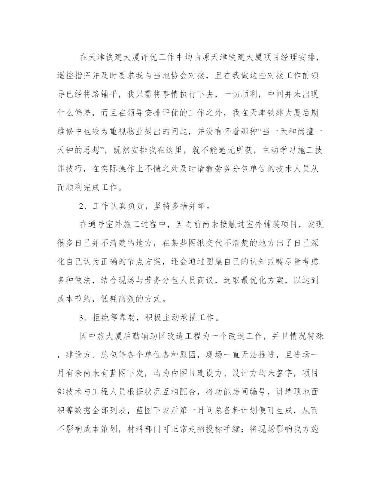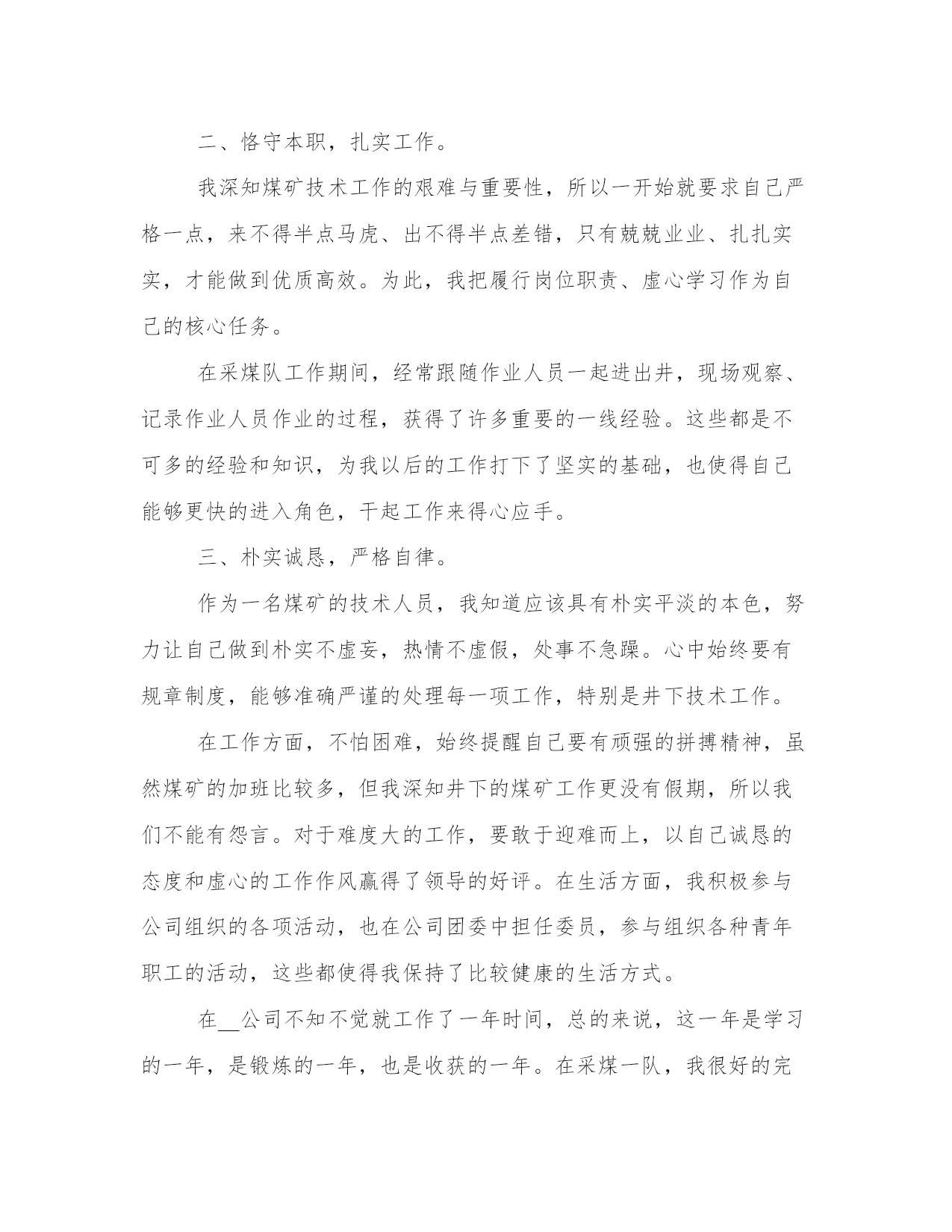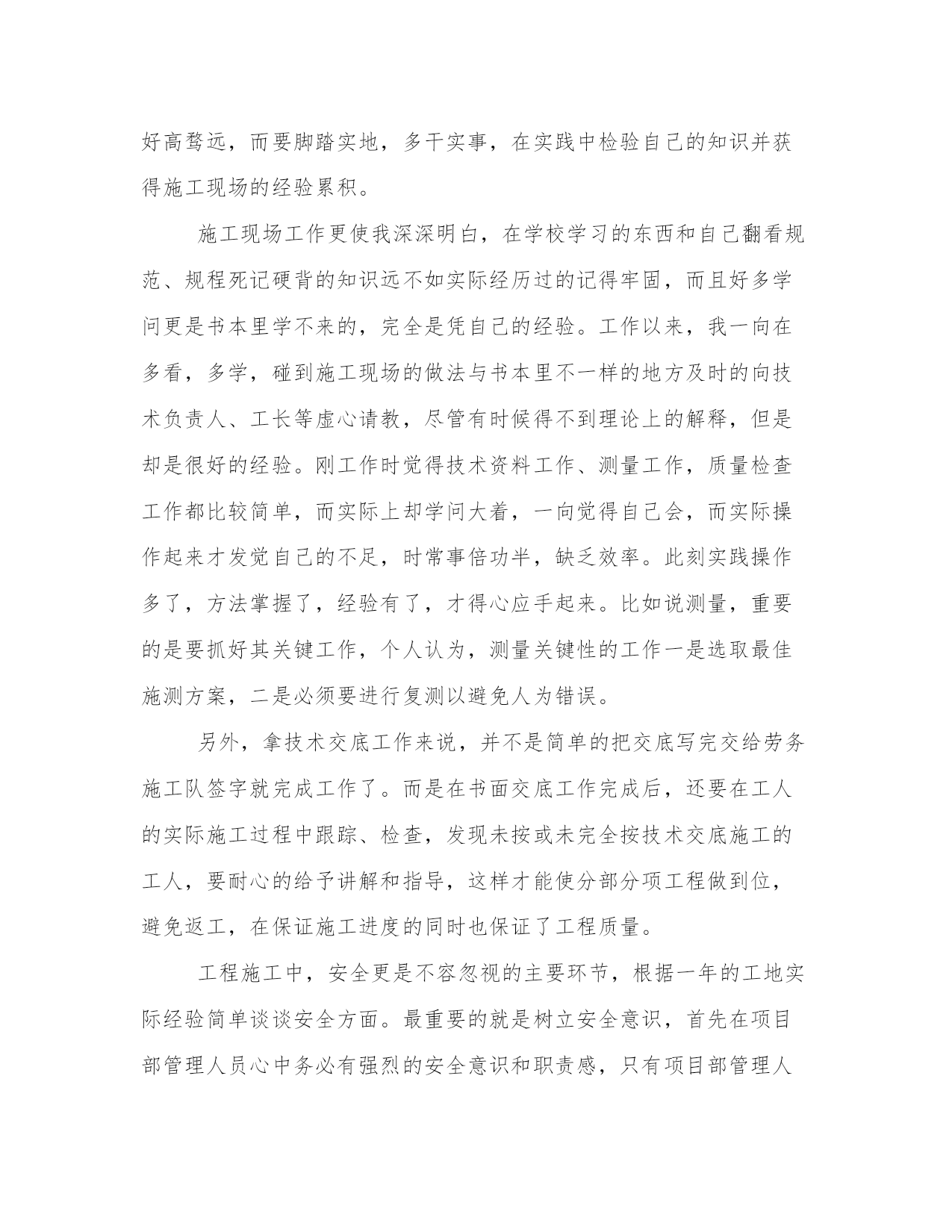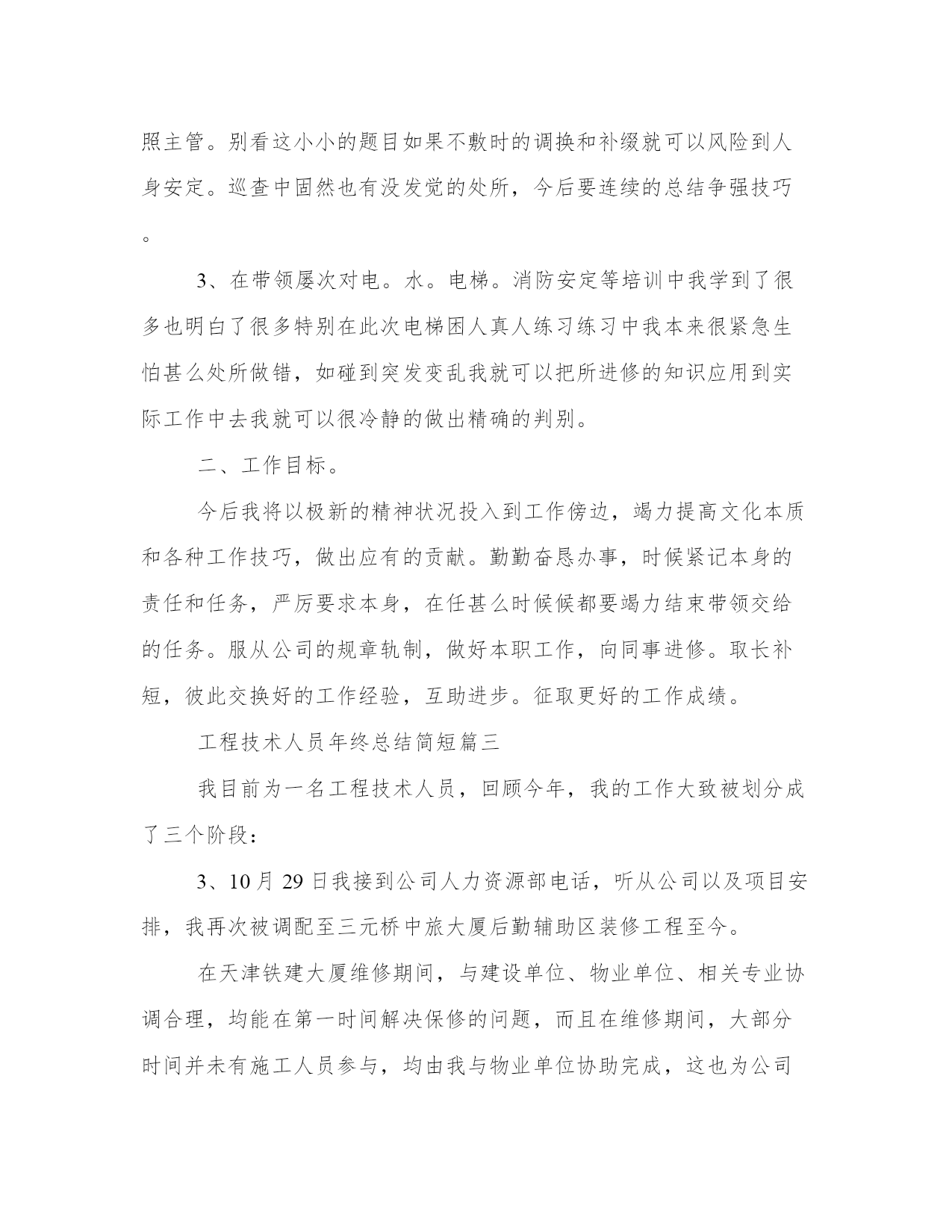 最新工程技术人员年终总结简短(模板9篇)通过总结,我们可以准确地描述和分享我们的经验和见解,帮助他人更好地理解和学习。写总结时,我们可以选择适当的词汇和表达方式,给读者留下深刻的印象。在阅读这些总结范文时,我们可以学习到一些写作技巧和方法,提升我们的写作能力。工程技术人员年终总结简短篇一我从年初开始在__公司工作,已将近一年,在这一年当中,我尽量弥补自身知识的不足之处,熟悉掌握多元的专业业务知识,能够比较得心应手的开展各项工作,这些可以说都受益于各位领导的栽培和各位同事的赐教。下面,我将这一年来的工作总结如下。一、虚心学习,努力进步。工作期间,我清醒的认识到自己在实际工作中的不足之处,缺少实践经验,井下现场经验匮乏,所以在日常工作中,我不断向领导和井下工人学习,加快补充自己的现场实践经验。以严谨的科学态度对待煤矿的每一项工作,争取不断进步,提高自己的专业技术能力。在采煤队工作期间,开始总会遇到很多不懂的事,要做的报表,要填的资料以及要开的连队会议等,都在队领导的悉心指导下慢慢掌握,在井下采煤工作面时,总会看见很多实际应用中才会有的技术问题,这些都是书本上学不到的,所以现场的工人,跟班人员,他们便是我的指导老师,他们使我得到了很大的进步。二、恪守本职,扎实工作。我深知煤矿技术工作的艰难与重要性,所以一开始就要求自己严格一点,来不得半点马虎、出不得半点差错,只有兢兢业业、扎扎实实,才能做到优质高效。为此,我把履行岗位职责、虚心学习作为自己的核心任务。在采煤队工作期间,经常跟随作业人员一起进出井,现场观察、记录作业人员作业的过程,获得了许多重要的一线经验。这些都是不可多的经验和知识,为我以后的工作打下了坚实的基础,也使得自己能够更快的进入角色,干起工作来得心应手。三、朴实诚恳,严格自律。作为一名煤矿的技术人员,我知道应该具有朴实平淡的本色,努力让自己做到朴实不虚妄,热情不虚假,处事不急躁。心中始终要有规章制度,能够准确严谨的处理每一项工作,特别是井下技术工作。在工作方面,不怕困难,始终提醒自己要有顽强的拼搏精神,虽然煤矿的加班比较多,但我深知井下的煤矿工作更没有假期,所以我们不能有怨言。对于难度大的工作,要敢于迎难而上,以自己诚恳的态度和虚心的工作作风赢得了领导的好评。在生活方面,我积极参与公司组织的各项活动,也在公司团委中担任委员,参与组织各种青年职工的活动,这些都使得我保持了比较健康的生活方式。在__公司不知不觉就工作了一年时间,总的来说,这一年是学习的一年,是锻炼的一年,也是收获的一年。在采煤一队,我很好的完成了队领导交办的各项工作,从是职工的学习,会议的记录,连队的精神文明建设到现场的跟班,我都能较好的完成;在公司机关,也积极的做自己力所能及的事情,虽然没在科室上班,但是我很想跟科室的同事们学习,所以积极的在各科室间驻足,希望能多看到,多学到,偶尔能帮上忙的地方也积极参与。由于前期自身经验的不足,使得我养成了虚心学习的好习惯,我知道未来的学习和工作之路还很长,我也将以一百分的热情投入到煤矿技术的工作当中,始终保持严谨扎实的态度,积极思考,善于开拓,争取在自己的岗位上为企业和社会贡献力量。工程技术人员年终总结简短篇二一、工作方面。1、为包管夏季制冷,冷却塔有更好的散热结果在带领的安排和批示下对冷却塔里的加添物进行了周全的排除,完全的'对加添物上面留下的药渣进行了清除,清除药渣后把加添物按原样进行复兴复兴,包管了夏季制冷冷却塔散热结果,在对此次冷却塔加添物的排除中,固然有点辛苦但苦中带甜,让我学会明白了怎样样来保养,和补缀。2、运行配置、来电来访、巡查,是一件很紧张的事,配置运行期间当真做好运行记录发觉题目及时关照带领和补缀,带领。客户来电当真听讲并做好记录。主管法则每天8点40巡查,在我巡查期间我对全楼当真细致的查看,每次的巡查都有点发觉,客户办公区灯管坏,卫生间水龙头松动,软管的破裂。发觉题目及时的调换和补缀并关照主管。别看这小小的题目如果不敷时的调换和补缀就可以风险到人身安定。巡查中固然也有没发觉的处所,今后要连续的总结争强技巧。3、在带领屡次对电。水。电梯。消防安定等培训中我学到了很多也明白了很多特别在此次电梯困人真人练习练习中我本来很紧急生怕甚么处所做错,如碰到突发变乱我就可以把所进修的知识应用到实际工作中去我就可以很冷静的做出精确的判别。二、工作目标。今后我将以极新的精神状况投入到工作傍边,竭力提高文化本质和各种工作技巧,做出应有的贡献。勤勤奋恳办事,时候紧记本身的责任和任务,严厉要求本身,在任甚么时候候都要竭力结束带领交给的任务。服从公司的规章轨制,做好本职工作,向同事进修。取长补短,彼此交换好的工作经验,互助进步。征取更好的工作成绩。工程技术人员年终总结简短篇三我目
