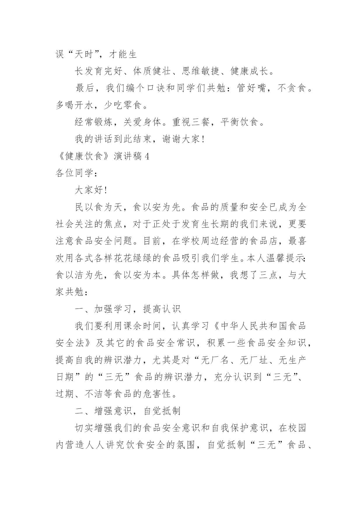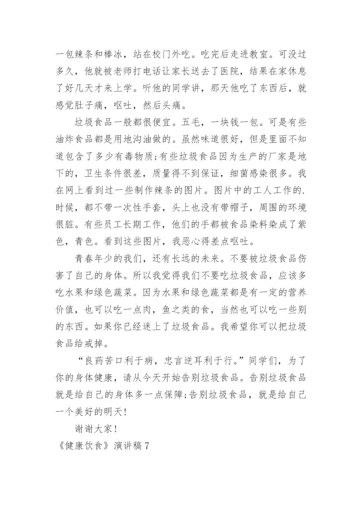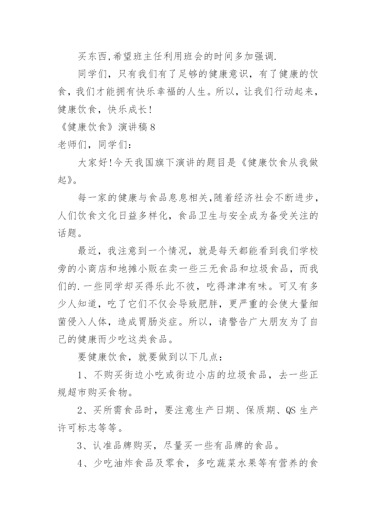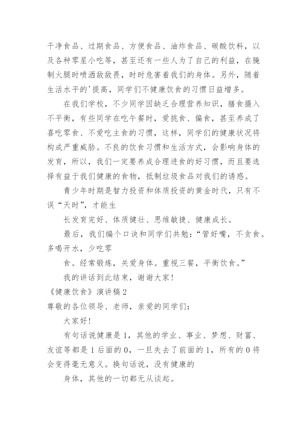 《健康饮食》演讲稿《健康饮食》演讲稿演讲稿的内容要根据具体情境、具体场合来确定,要求情感真实,尊重观众。在充满活力,日益开放的今天,演讲稿的使用频率越来越高,大家知道演讲稿的格式吗?下面是小编精心整理的《健康饮食》演讲稿,希望对大家有所帮助。《健康饮食》演讲稿1老师们,同学们:早上好!今天演讲的题目是“健康饮食,让我们更健康”。同学们,全国学生营养日即将到来,让我们暂且放下手头上的书本,一起来关爱一下自己的身体。下午四点左右,随着下课铃声的响起,同学们三五成群地走出校门,争先恐后地来到学校附近的各种小摊,冷清的街道顿时热闹起来,炸肉串、煎蛋饼等小吃摊前霎时围满了身着校服的学生身影。这些摊点的工作人员很少有人戴手套,他们边收钱,边操作,忙得不亦乐乎,但同学们全然不顾,这样的场景我们随处都可以看到。常言道:“身体是革命的本钱”,没错,好身体对每个人来说是多么的重要,可现在的食品五花八门,各种食品厂如雨后春笋般出现,各类垃圾食品也紧跟着出现在市场上,不干净食品、过期食品、方便食品、油炸食品、碳酸饮料,以及各种零星小吃等,甚至还有一些人为了自己的利益,在腌制火腿时喷洒敌敌畏,时时危害着我们的身体。另外,随着生活水平的'提高,同学们不健康饮食的习惯日益增多。在我们学校,不少同学因缺乏合理营养知识,膳食摄入不平衡,有些同学在吃午餐时,爱挑食、偏食,甚至养成了喜吃零食、不爱吃主食的习惯,这样,同学们的健康状况将构成严重威胁。不良的饮食习惯和生活方式,会影响身体的发育,所以,我们一定要养成合理进食的好习惯,而且要选择有益于我们健康的食物,抵制垃圾食品对我们的诱惑。青少年时期是智力投资和体质投资的黄金时代,只有不误“天时”,才能生长发育完好、体质健壮、思维敏捷、健康成长。最后,我们编个口诀和同学们共勉:“管好嘴,不贪食。多喝开水,少吃零食。经常锻炼,关爱身体。重视三餐,平衡饮食。”我的讲话到此结束,谢谢大家!《健康饮食》演讲稿2尊敬的各位领导、老师,亲爱的同学们:大家好!有句话说健康是1,其他的学业、事业、梦想、财富、友谊等都是1后面的0,一旦失去了前面的1,所有的0将会变得毫无意义。换句话说,没有健康的身体,其他的一切都无从谈起。那么,如何才能拥健康的身体呢?除了要参加一定的体育活动外,首先从小养成良好的饮食习惯:例如早上起来喝一杯温开水,早饭一定要吃;不喝生水、不吃不熟食物;不暴饮暴食等等.其次保证全面、均衡、适量的营养:因为我们正处在生长发育期,需要的营养比较多,这就要求我们不能偏食、不能挑食,不能说我想吃什么就吃什么,不想吃什么就不吃。因为每种食品都有不同的.营养成份,偏食和挑食会引起某种营养素的缺乏,从而影响身体健康。另外做到拒绝垃圾食品:对于我们小学生而言,诱惑最大的莫过于路边、大街上、小巷中那些小摊小贩摊子上的食品了。为了求方便,有些同学放学后会从路边的小摊随意买一些零食解解馋,却不知这些食品大多是过期食品、含有色素和防腐剂,甚至有些是地下工厂生产的不合格食品。再加上摆摊的地方很不卫生,灰尘很容易沾到食物,吃了容易生病,轻则腹痛,重则呕吐、腹泻、以至食物中毒。经过近两周我的观察,每天下午都有学生放学后在学校门口南侧的小吃车上买东西,希望班主任利用班会的时间多加强调.同学们,只有我们有了足够的健康意识,有了健康的饮食,我们才能拥有快乐幸福的人生。所以,让我们行动起来,健康饮食,快乐成长!《健康饮食》演讲稿3老师们,同学们:早上好!今天演讲的题目是“健康饮食,让我们更健康”。同学们,全国学生营养日即将到来,让我们暂且放下手头上的书本,一起来关爱一下自己的身体。下午四点左右,随着下课铃声的响起,同学们三五成群地走出校门,争先恐后地来到学校附近的各种小摊,冷清的街道顿时热闹起来,炸肉串、煎蛋饼等小吃摊前霎时围满了身着校服的学生身影。这些摊点的工作人员很少有人戴手套,他们边收钱,边操作,忙得不亦乐乎,但同学们全然不顾,这样的`场景我们随处都可以看到。常言道:“身体是革命的本钱”,没错,好身体对每个人来说是多么的重要,可现在的食品五花八门,各种食品厂如雨后春笋般出现,各类垃圾食品也紧跟着出现在市场上,不干净食品、过期食品、方便食品、油炸食品、碳酸饮料,以及各种零星小吃等,甚至还有一些人为了自己的利益,在腌制火腿时喷洒敌敌畏,时时危害着我们的身体。另外,随着生活水平的提高,同学们不健康饮食的习惯日益增多。在我们学校,不少同学因缺乏合理营养知识,膳食摄入不平衡,有些同学在吃午餐时,爱挑食、偏食,甚至养成了喜吃零食、不爱吃主食的习惯,这样,同学们的健康状况将构成严重威胁。不良的饮食习惯和生活方式,会影响身体的发育,所以,我们一定要养成合理进食的好习惯,而且要选择有益于我们健康的食物,抵制垃圾食品对我们的诱惑。青少年时期是智力投资和体质投资的黄金