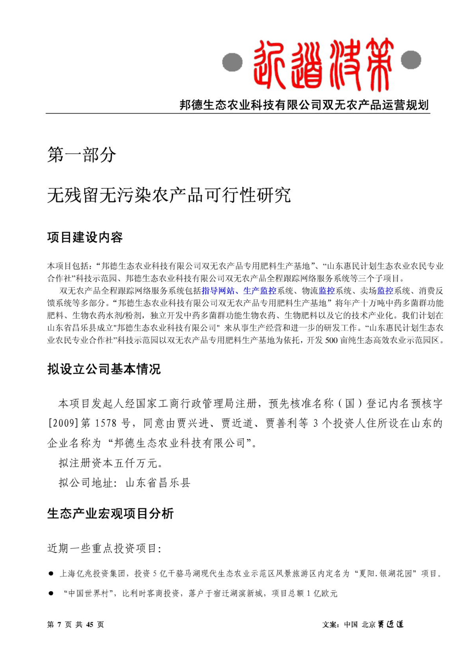 邦德生态农业科技有限公司双无农产品运营规划.pdf